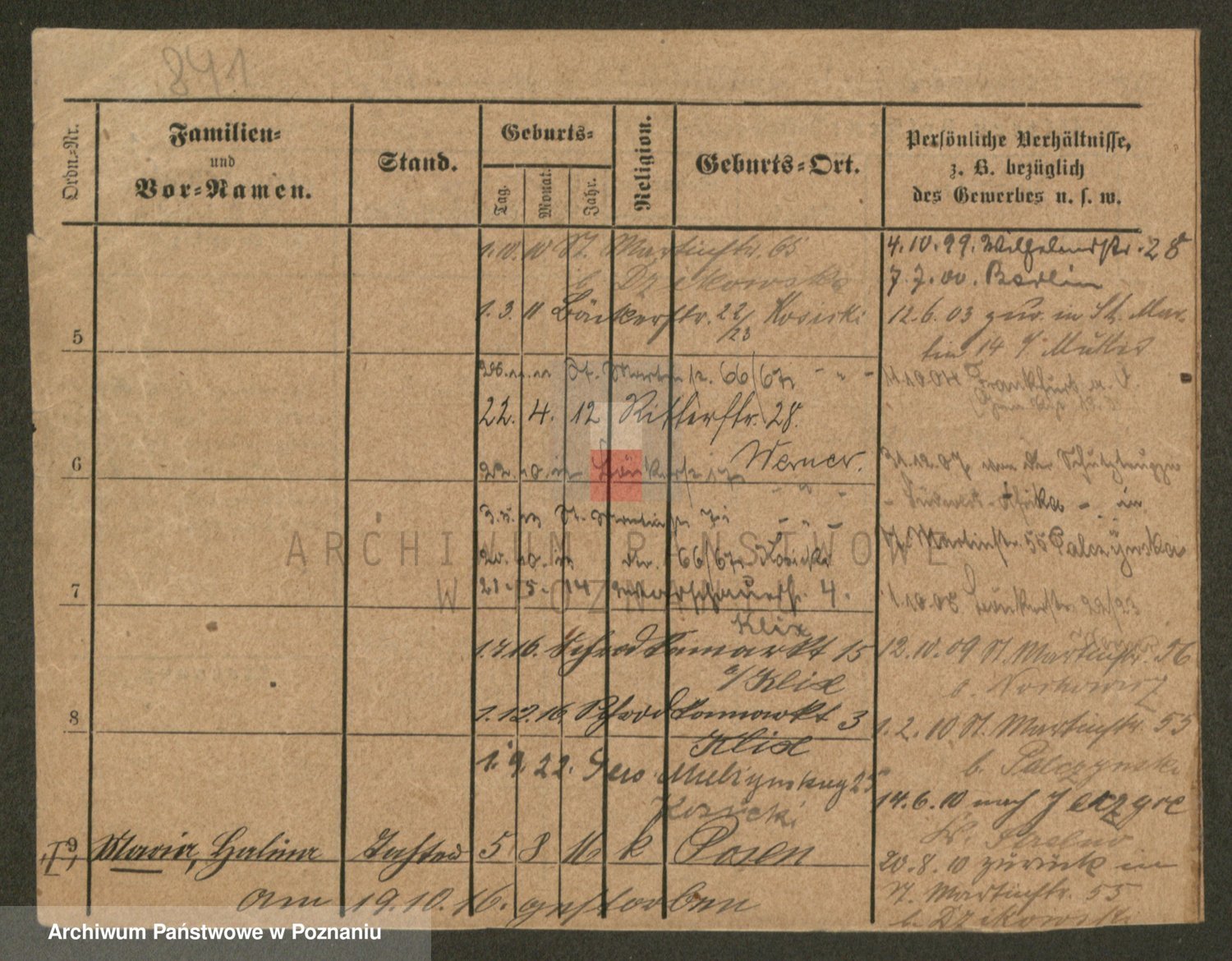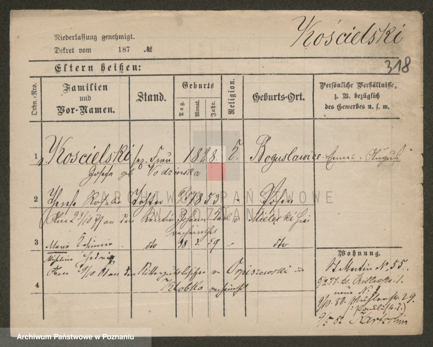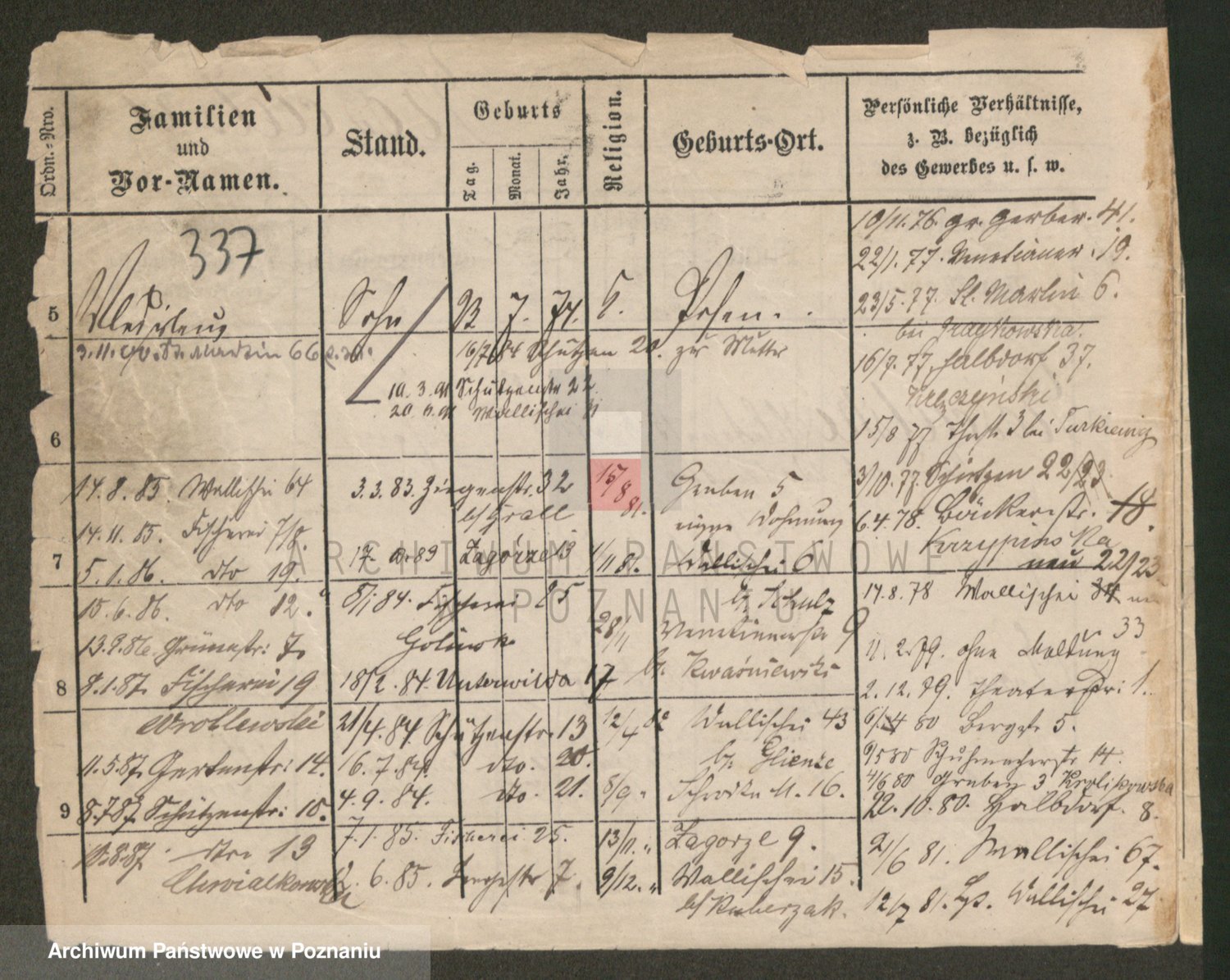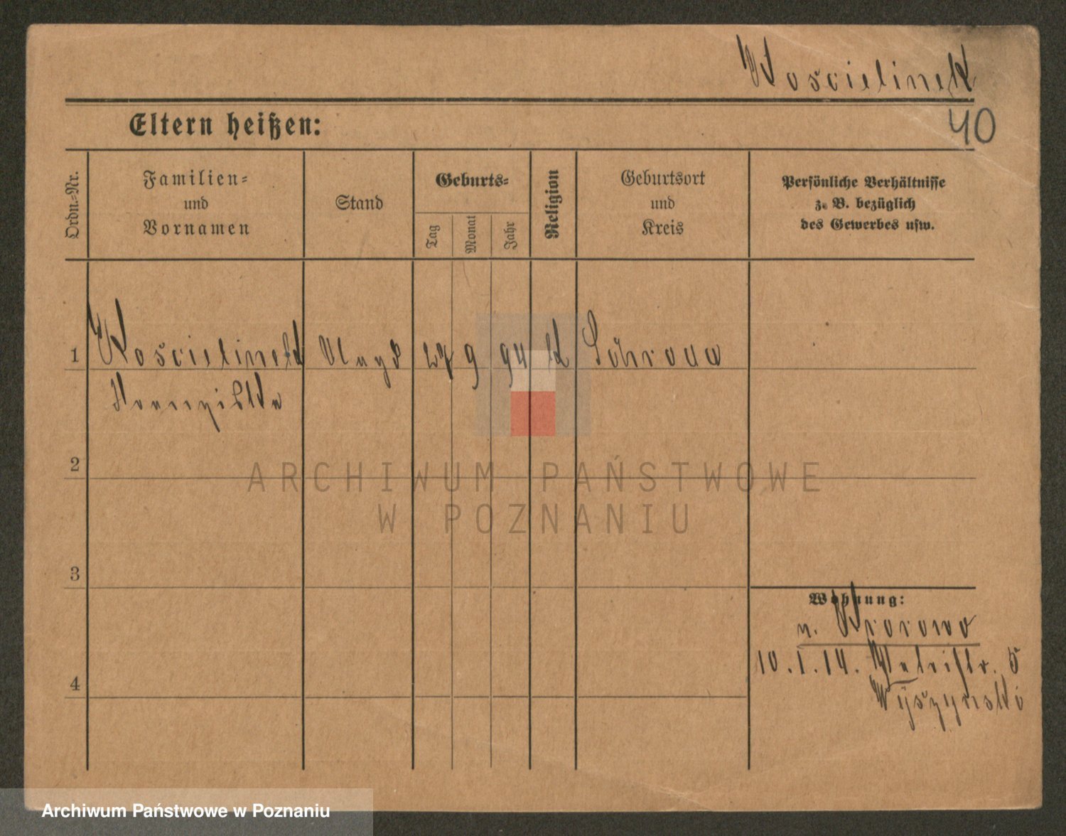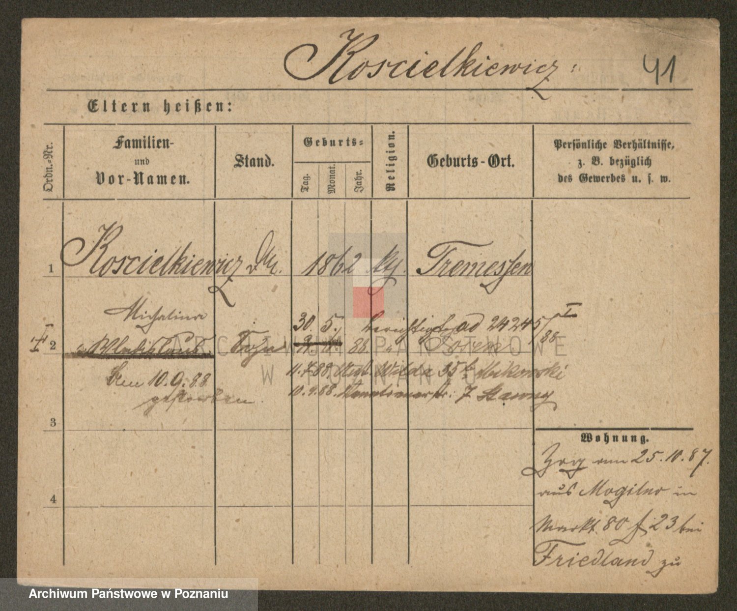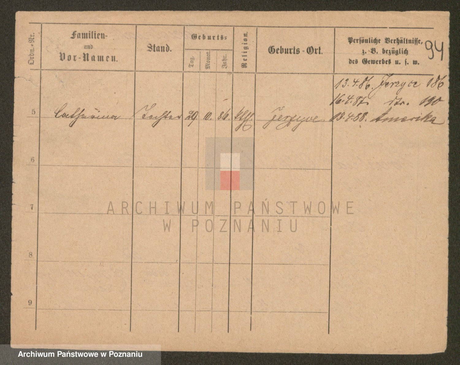 Podgląd karty osobowej dostępny jest po kliknięciu na nazwisko lub ikonkę karty. Można dokonywać powiększenia (ikony na górze) lub przechodzić między kolejnymi skanami (strzałki po bokach).