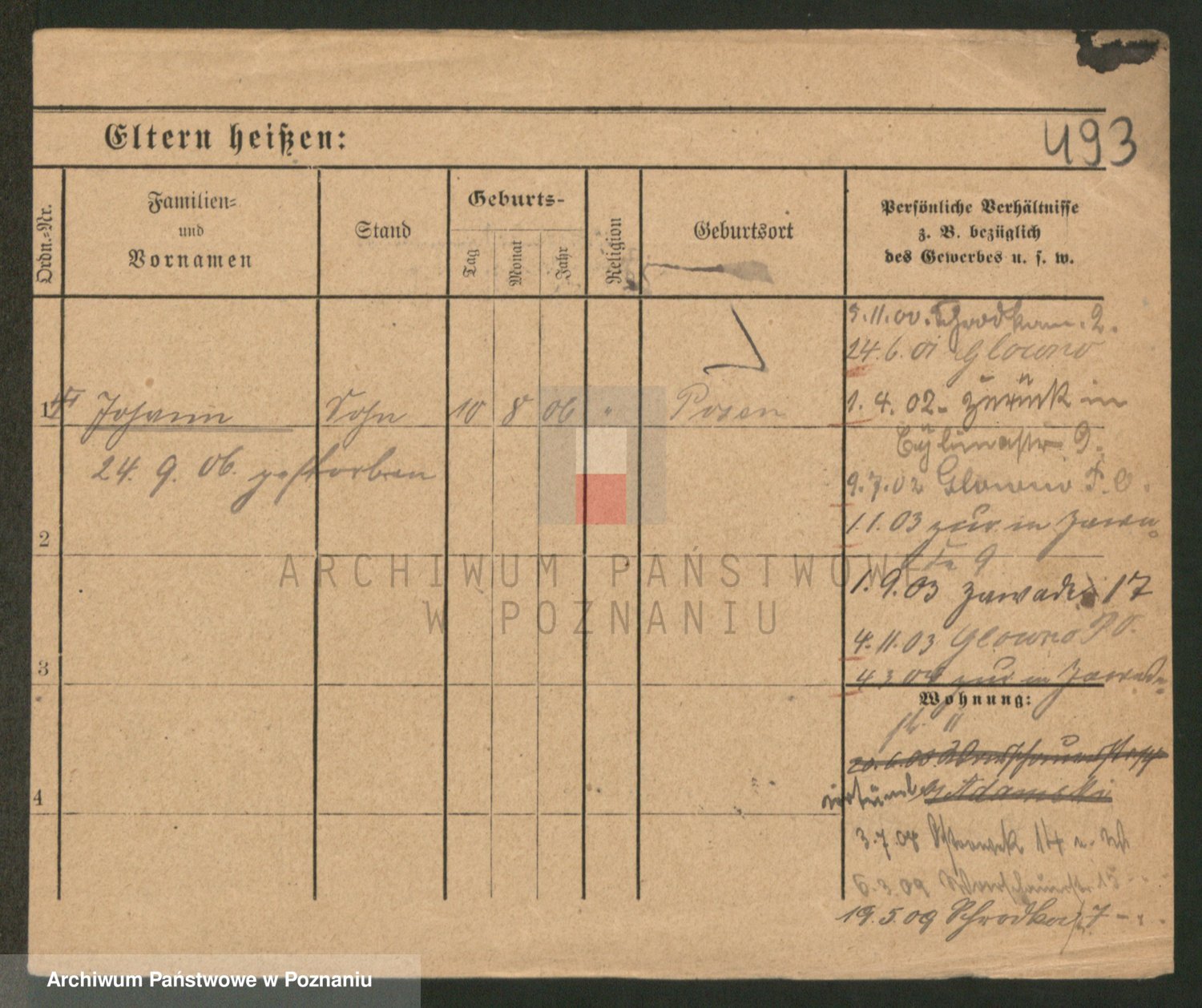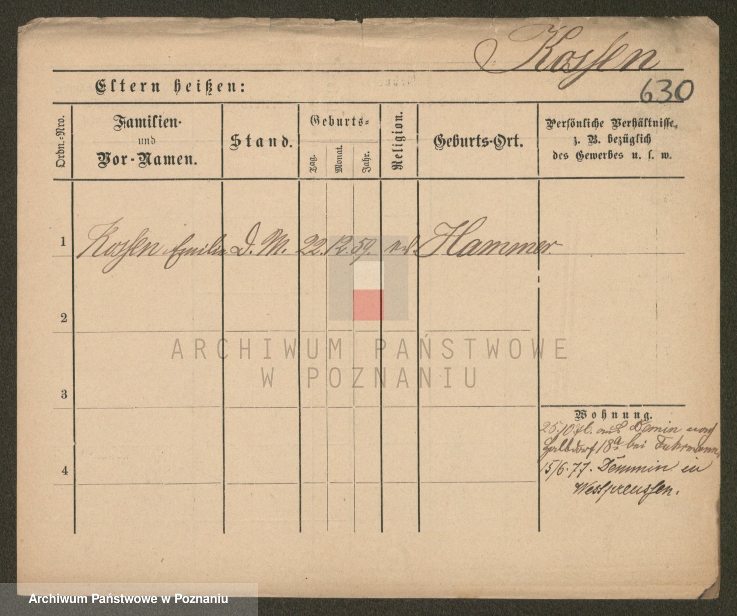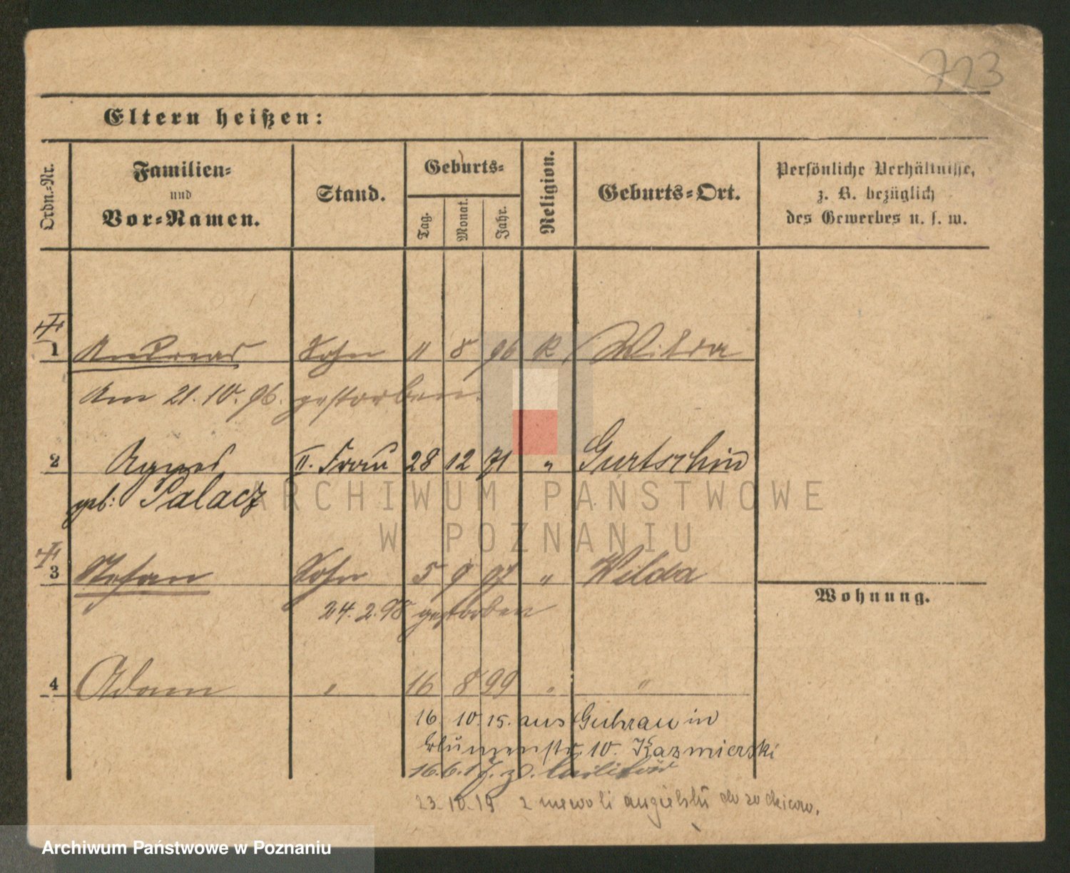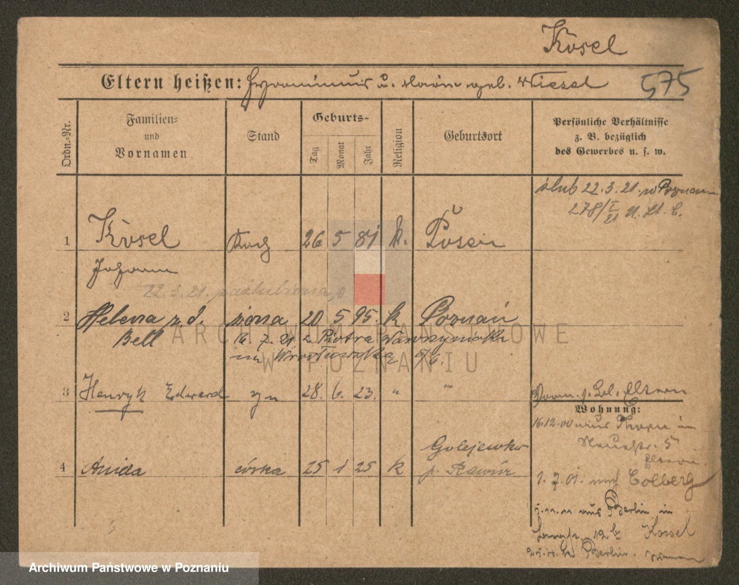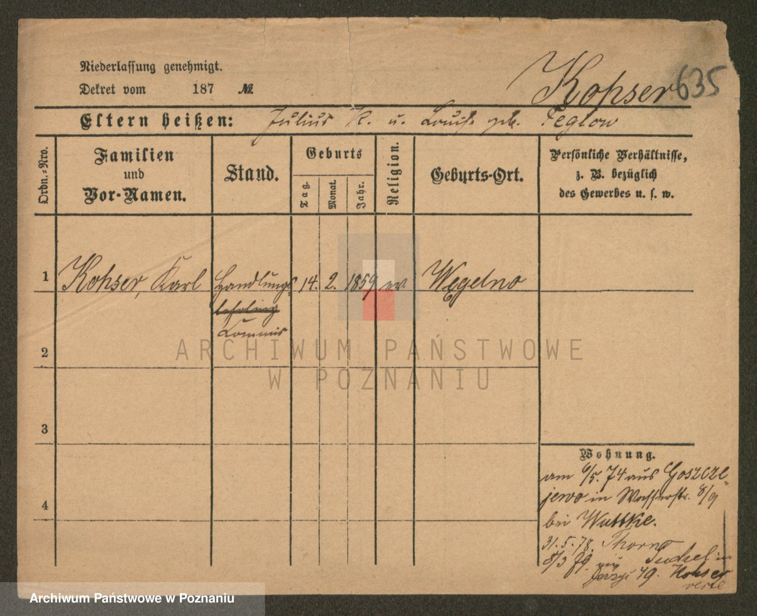 Podgląd karty osobowej dostępny jest po kliknięciu na nazwisko lub ikonkę karty. Można dokonywać powiększenia (ikony na górze) lub przechodzić między kolejnymi skanami (strzałki po bokach).