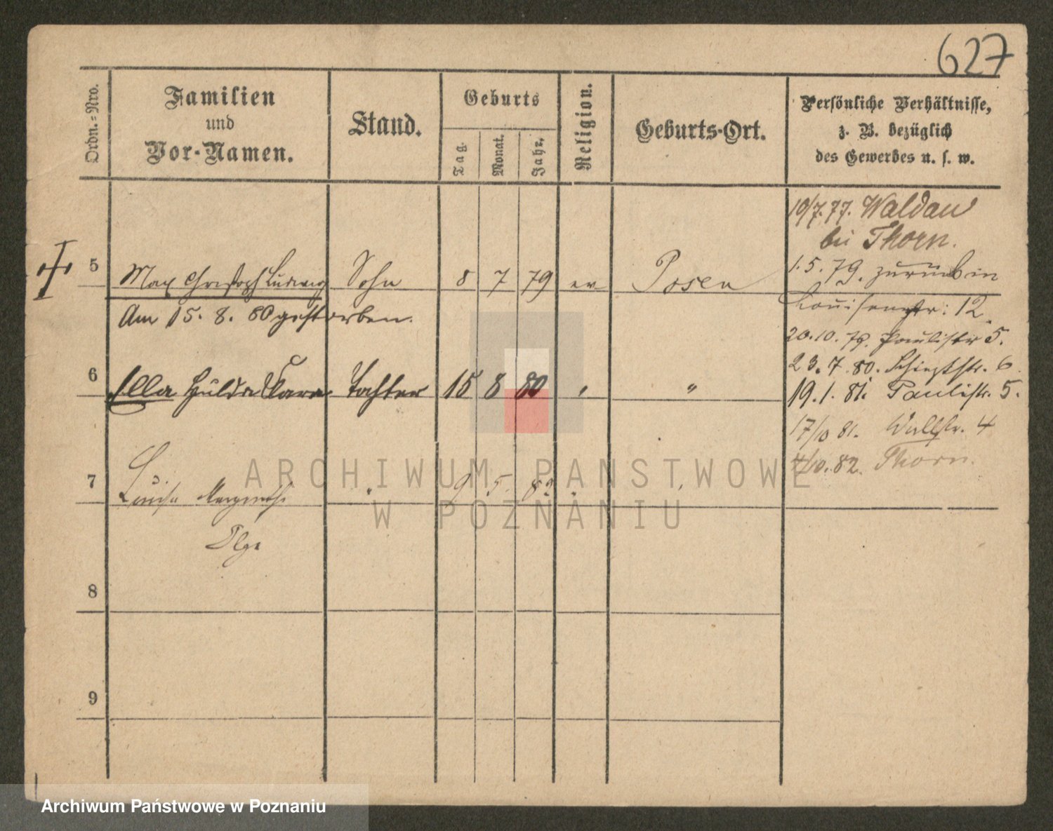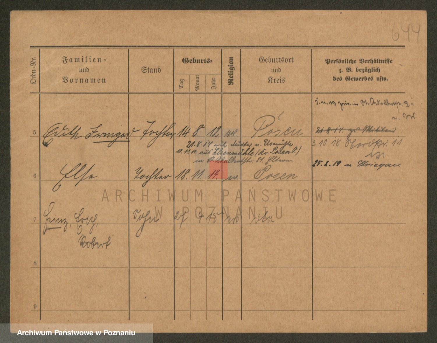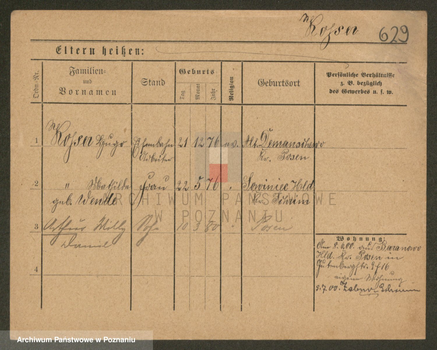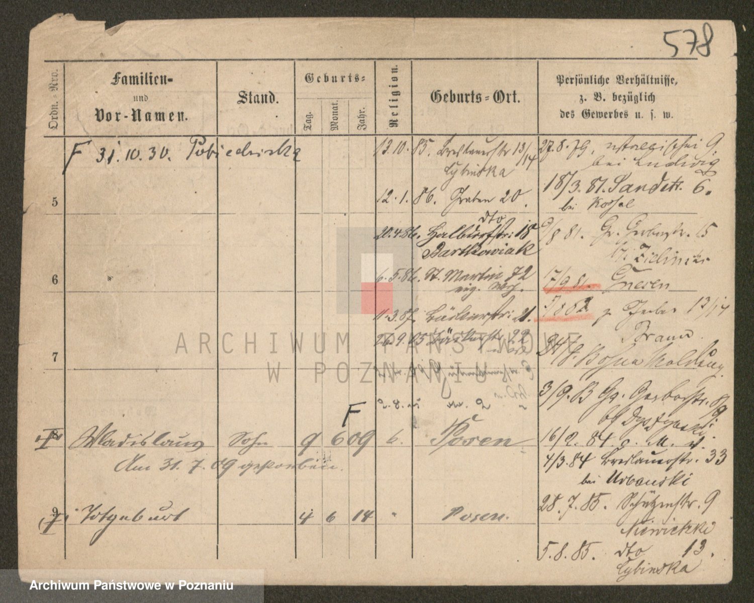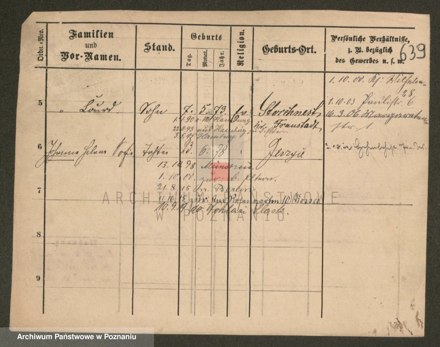 Podgląd karty osobowej dostępny jest po kliknięciu na nazwisko lub ikonkę karty. Można dokonywać powiększenia (ikony na górze) lub przechodzić między kolejnymi skanami (strzałki po bokach).
