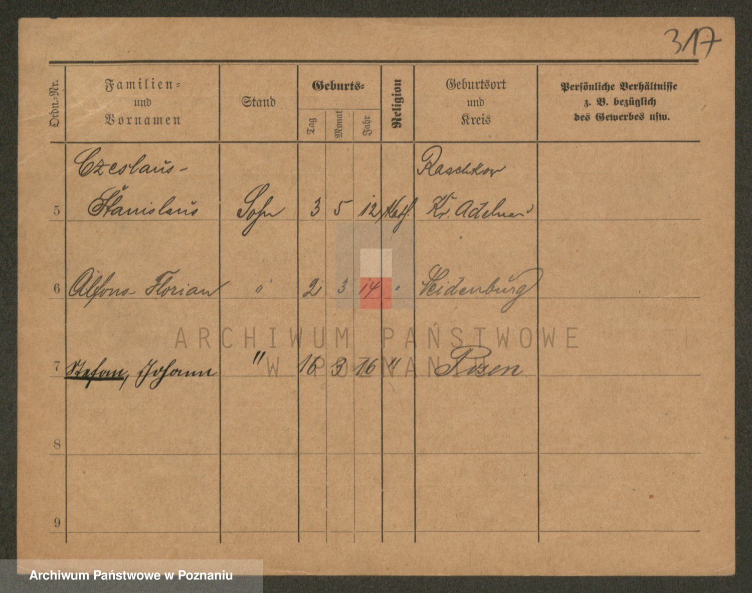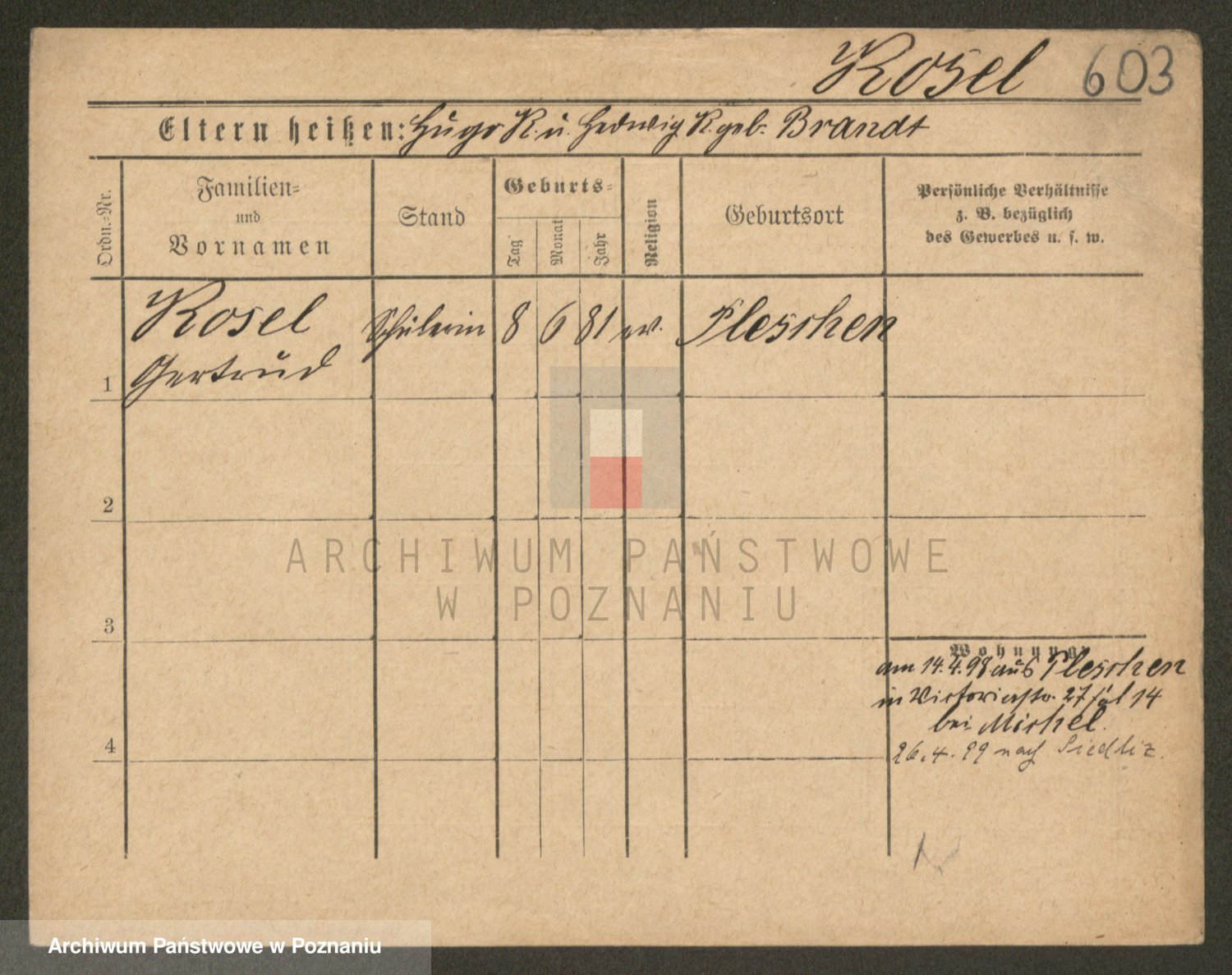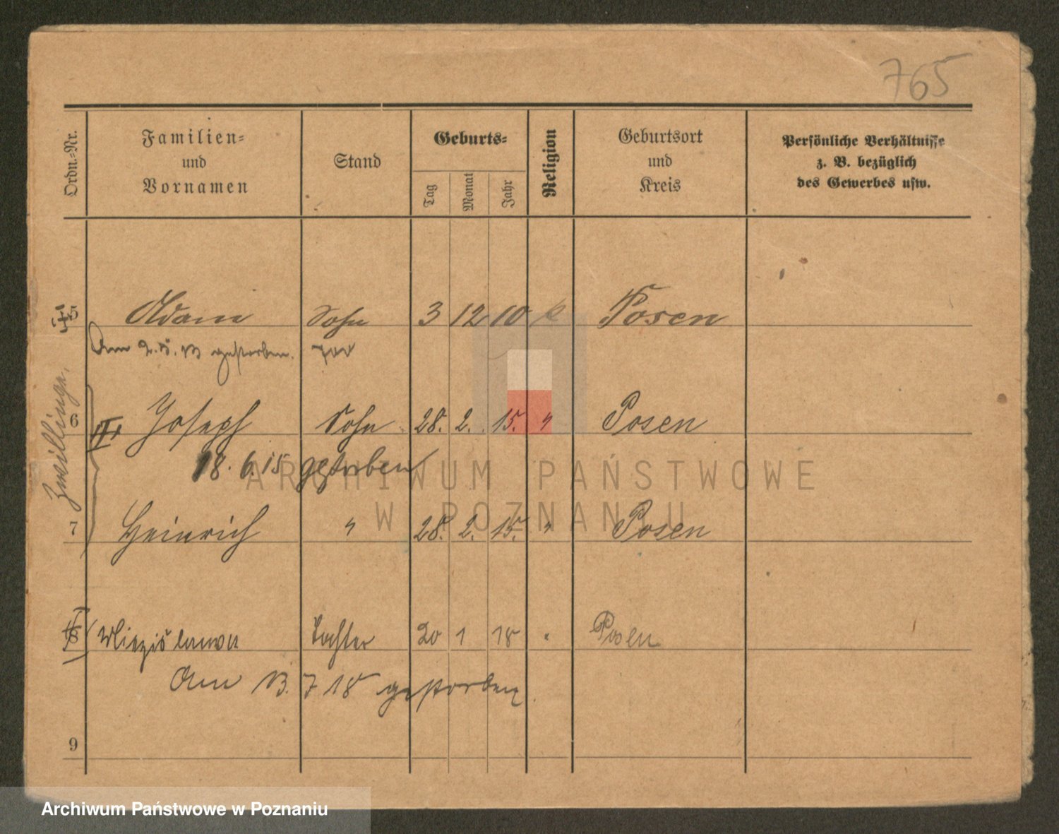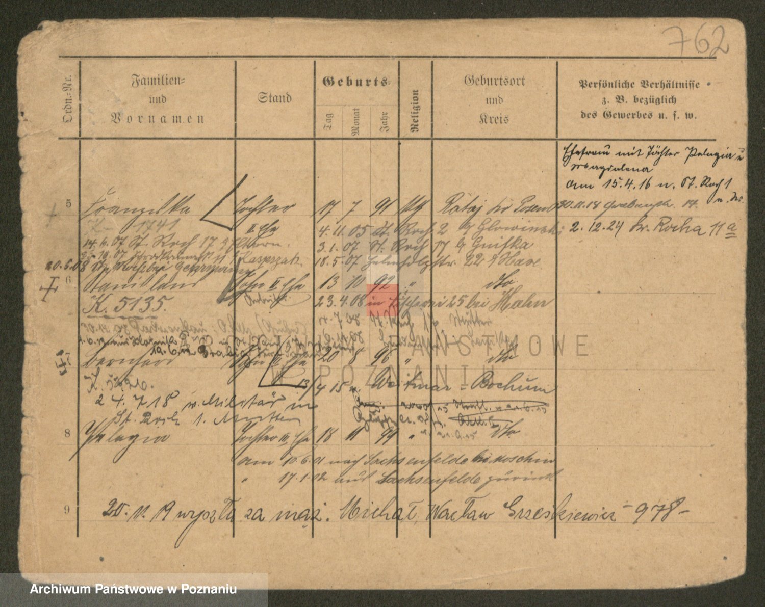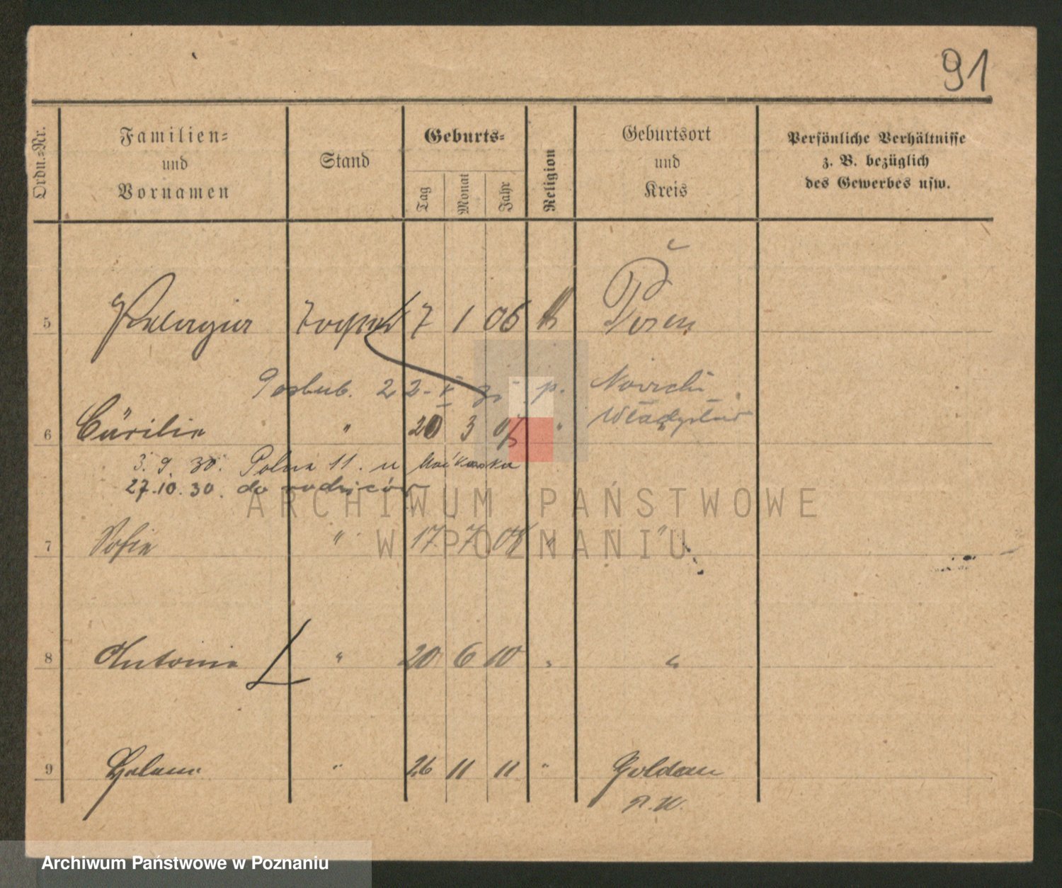 Podgląd karty osobowej dostępny jest po kliknięciu na nazwisko lub ikonkę karty. Można dokonywać powiększenia (ikony na górze) lub przechodzić między kolejnymi skanami (strzałki po bokach).