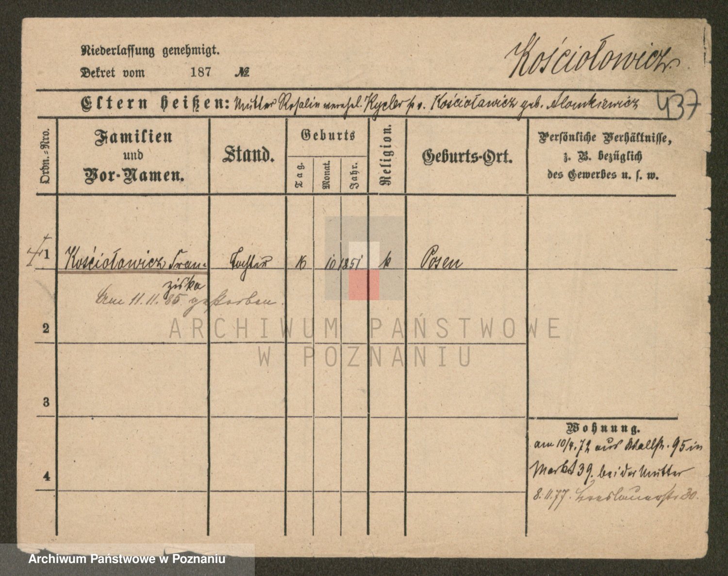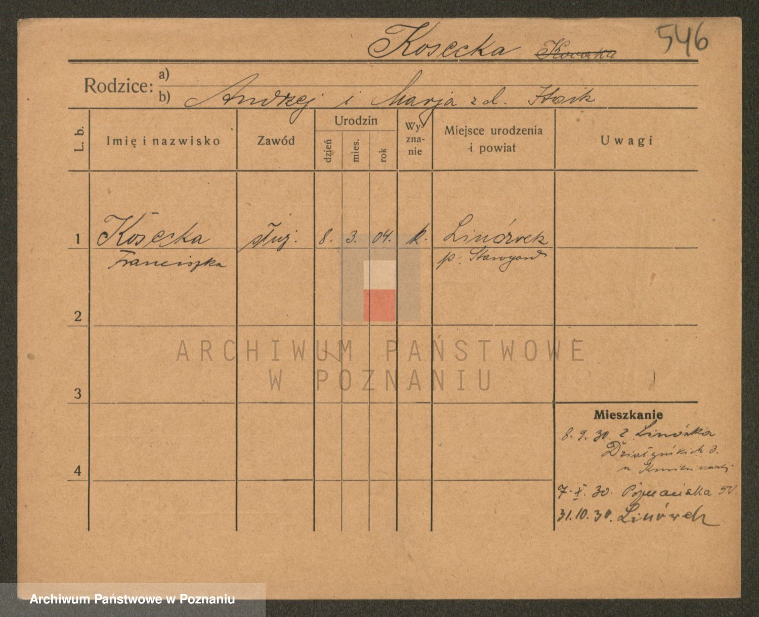 Kosicka z d. Bąkowska, Franziska