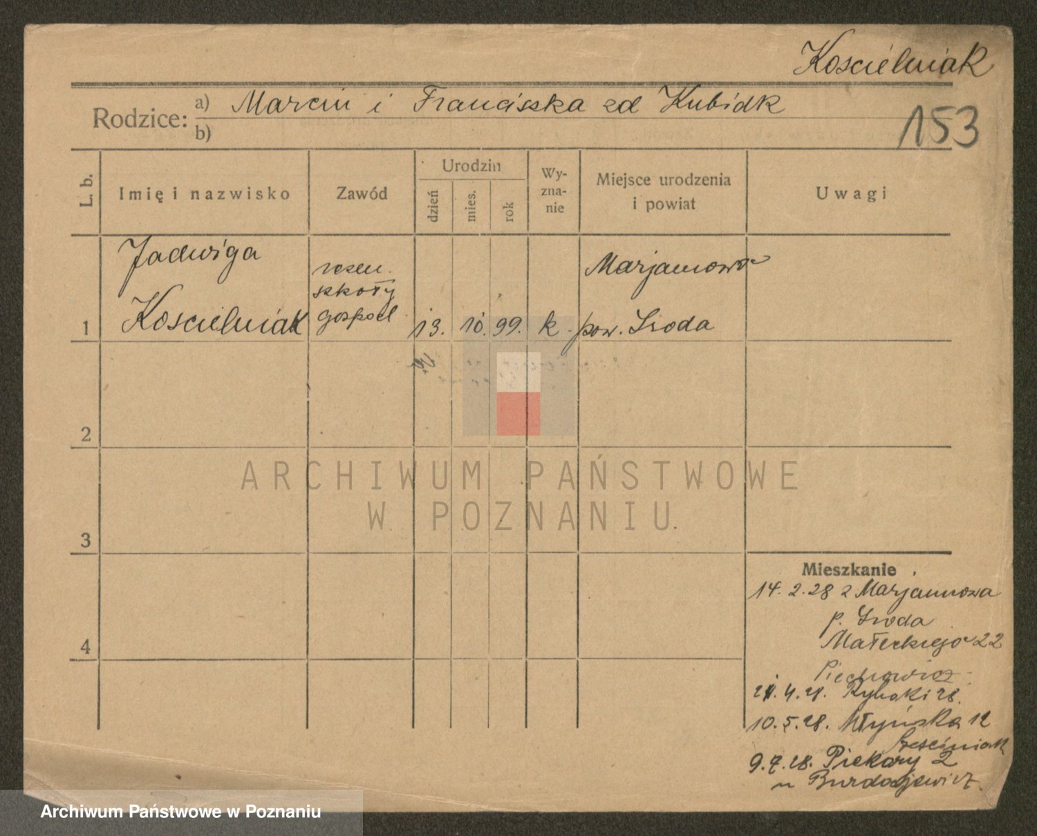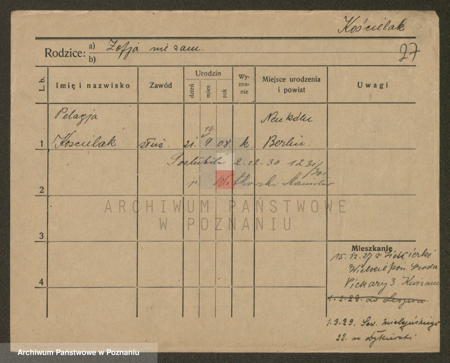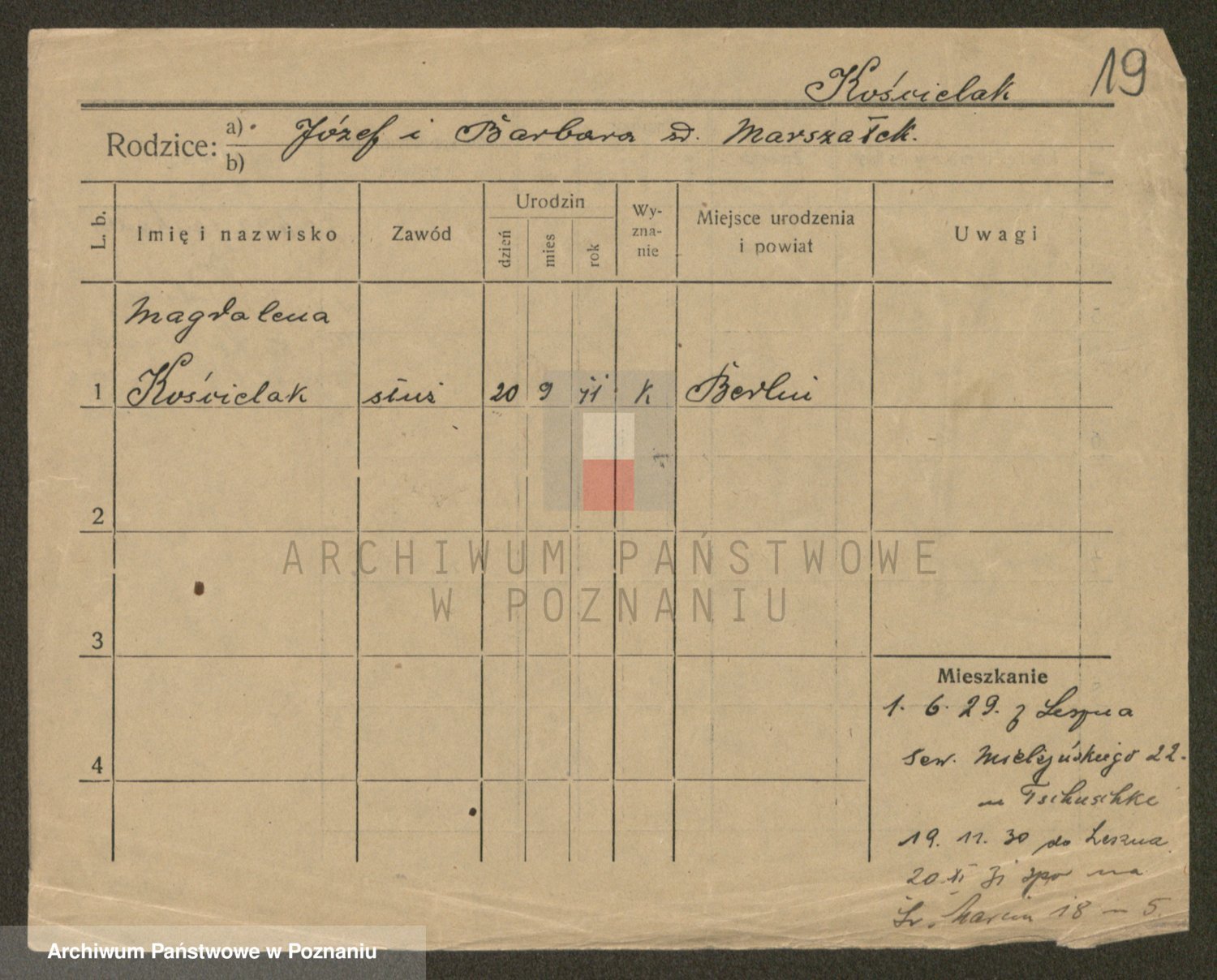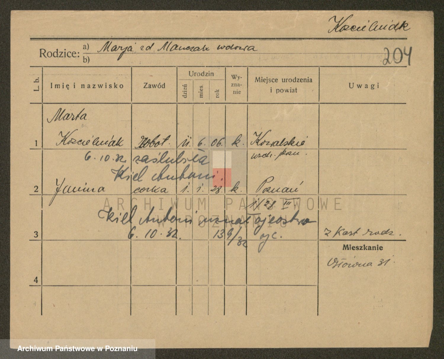 Kościelniak z d. Uklej I v. Walkowiak, Marie