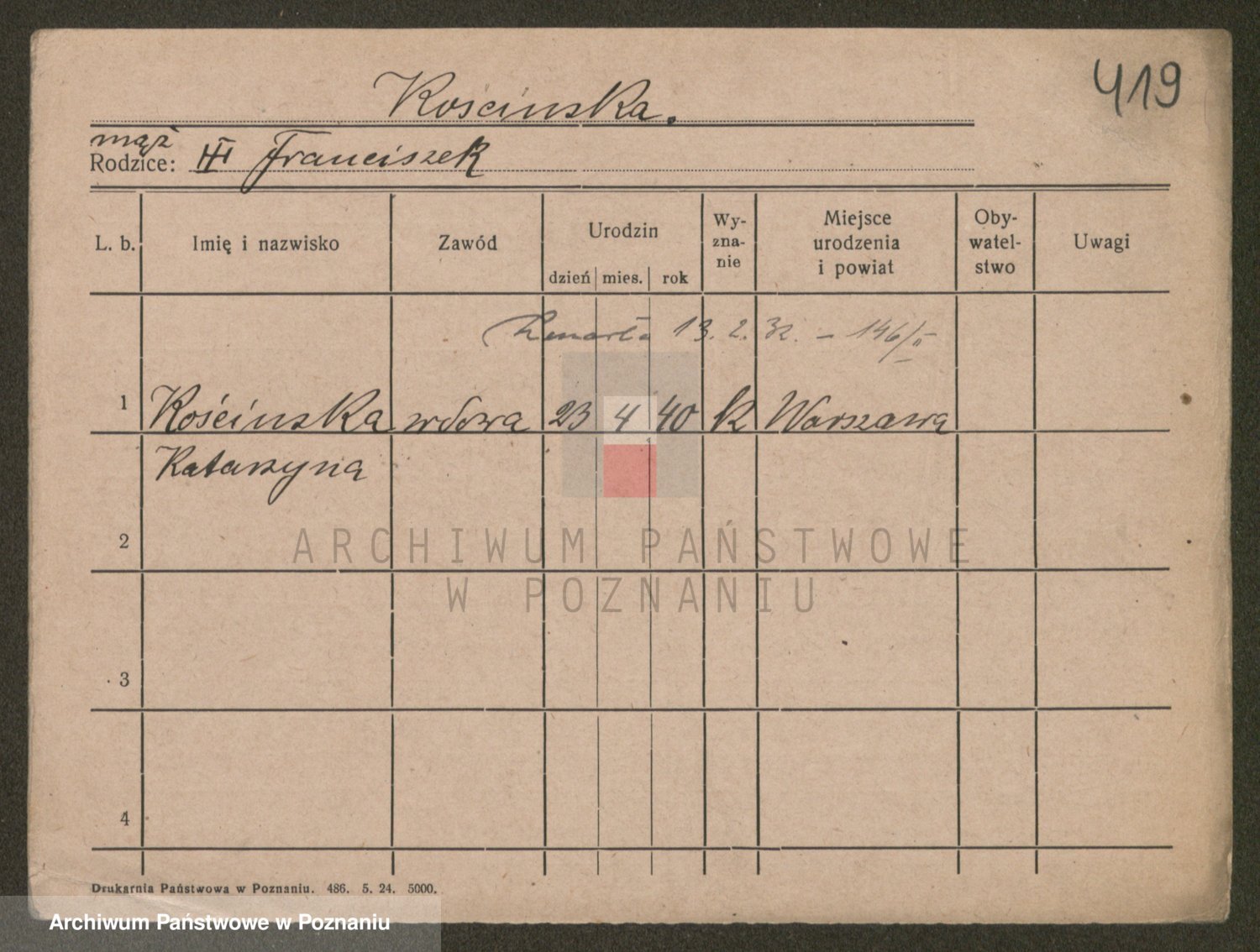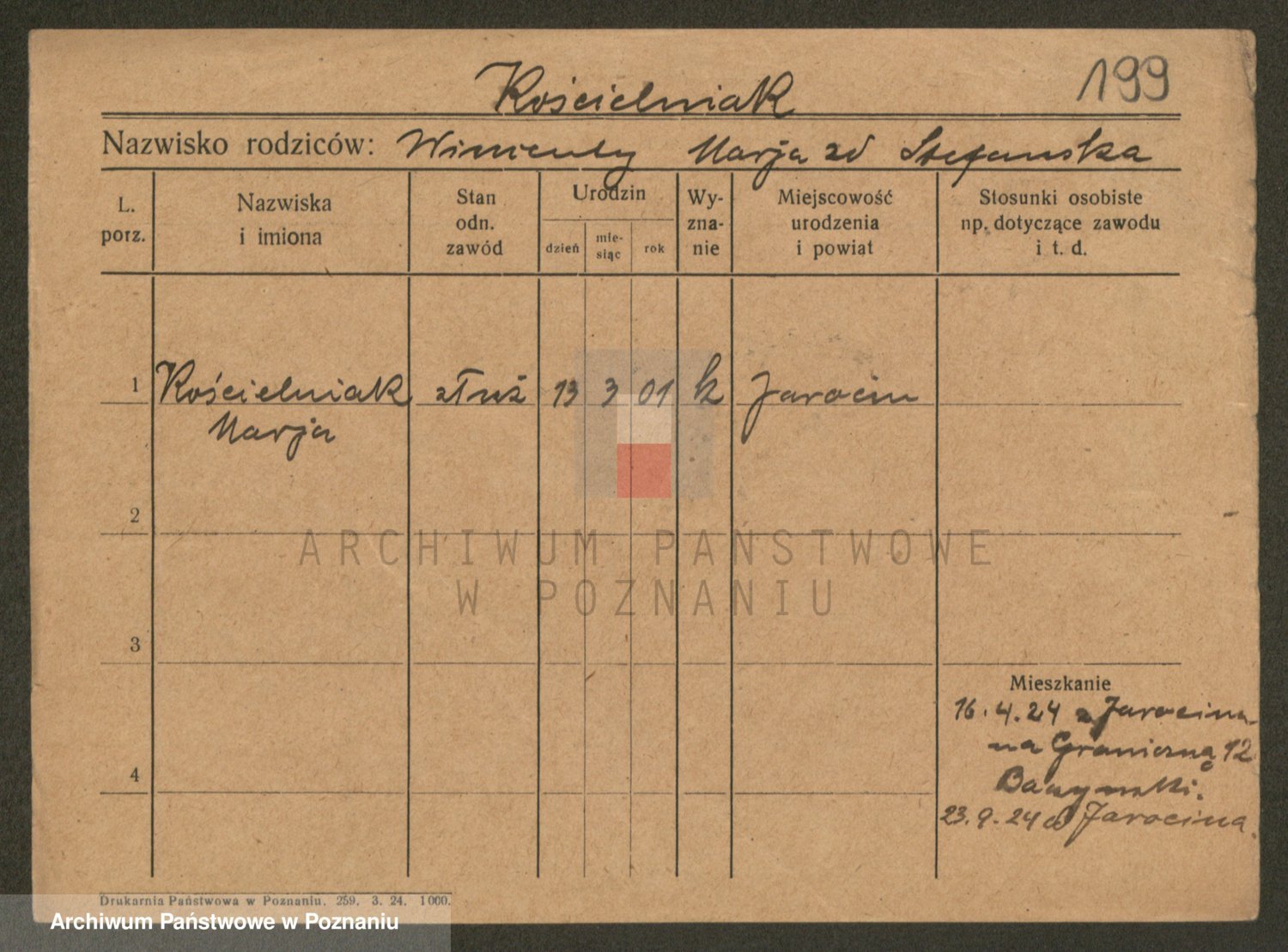 Kościelak z d. Warocyk, Marja