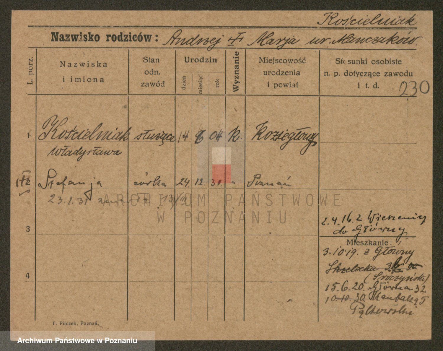 Kosicki z d. Pańczak, Stefanja