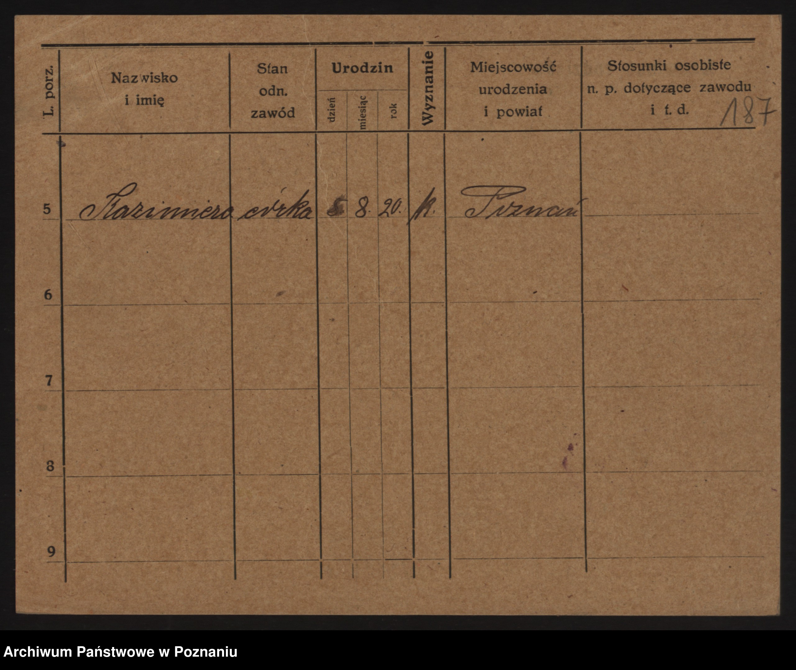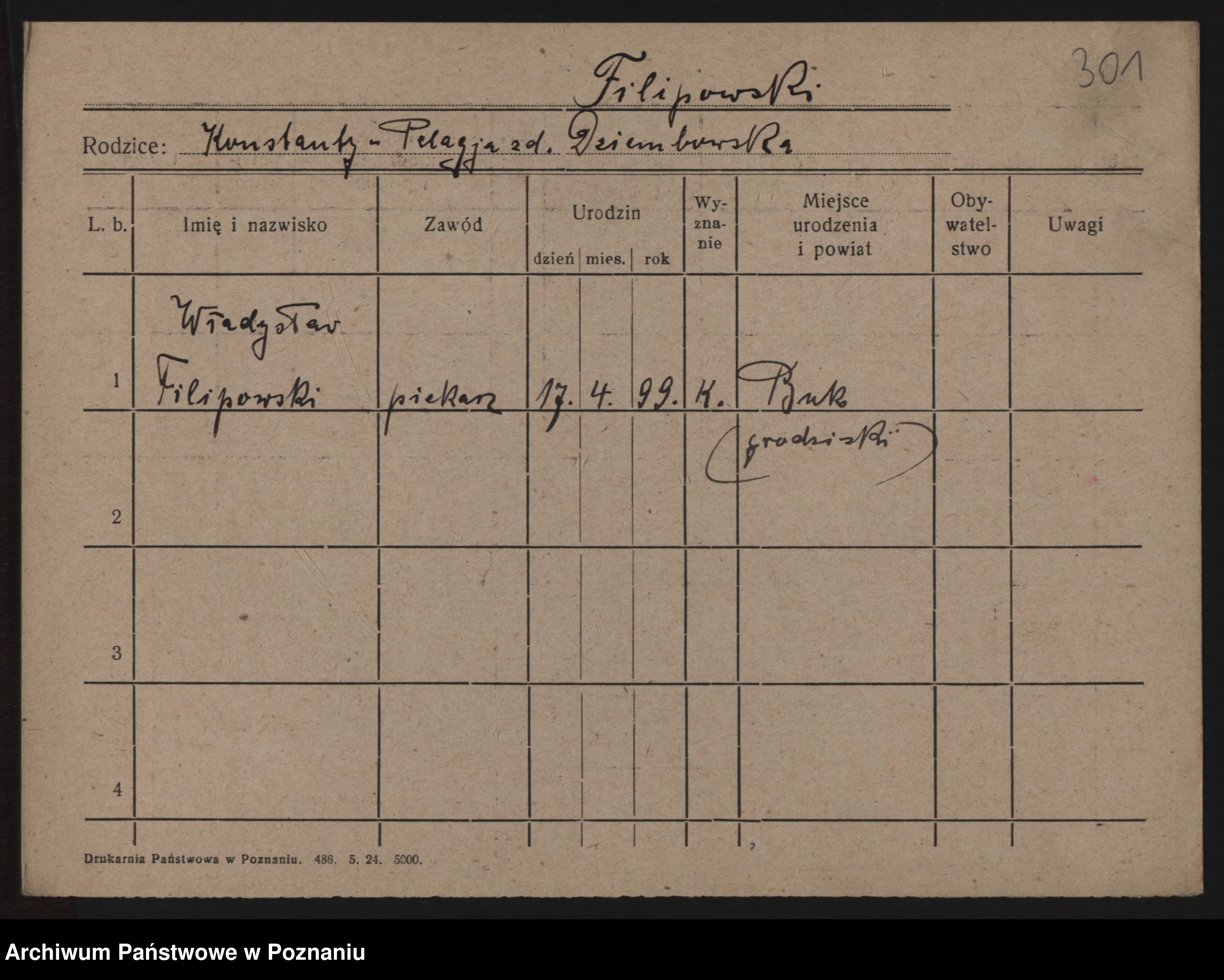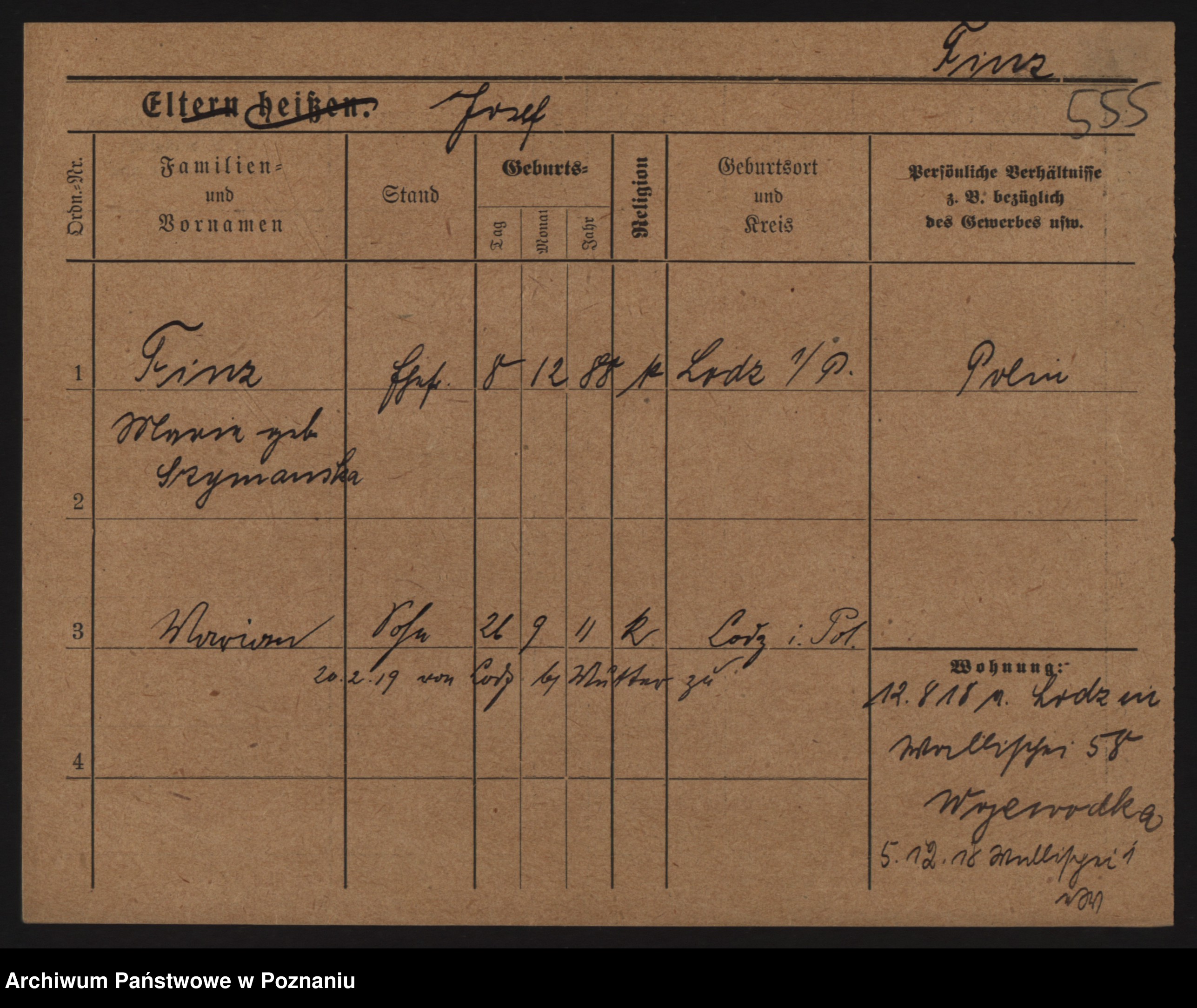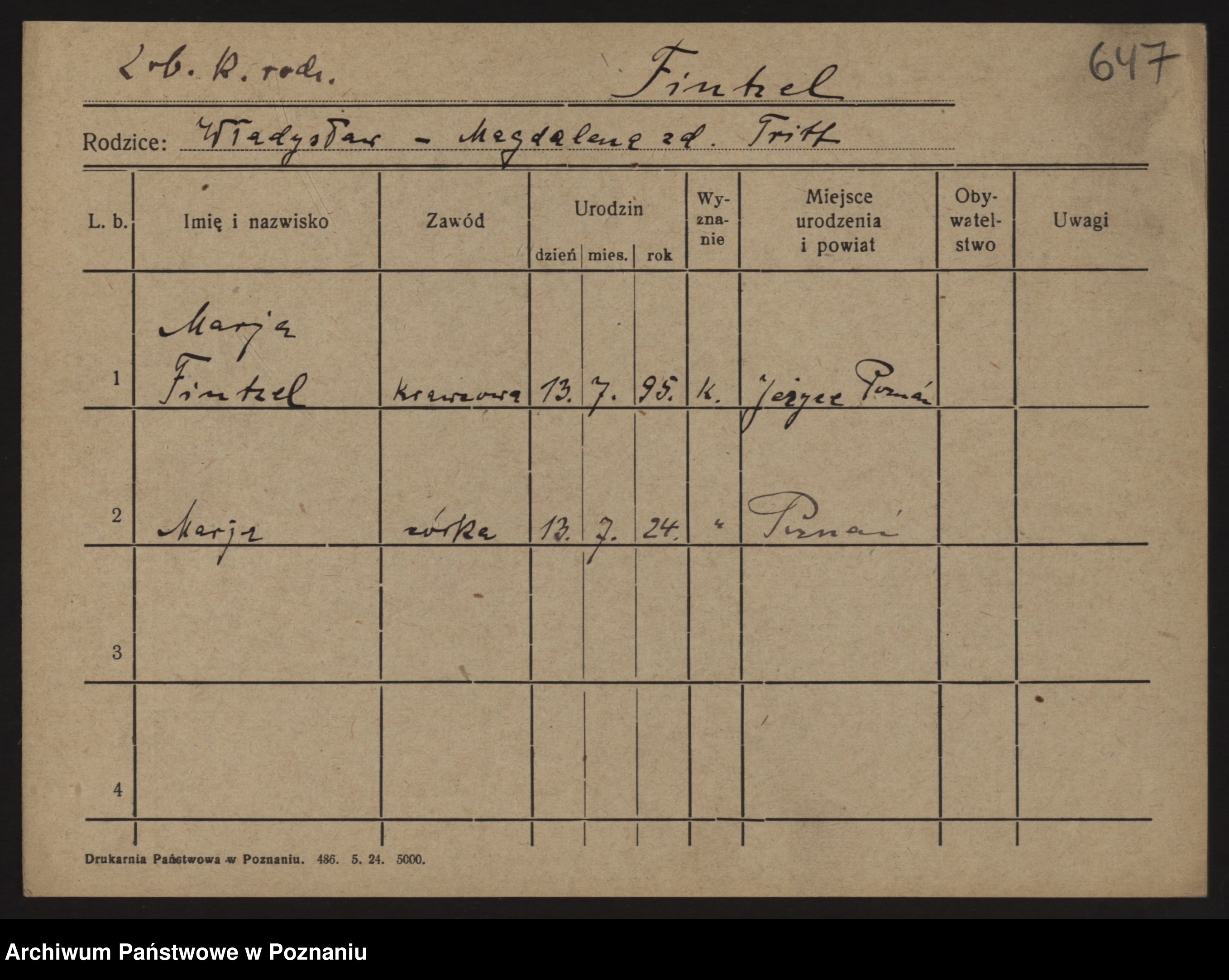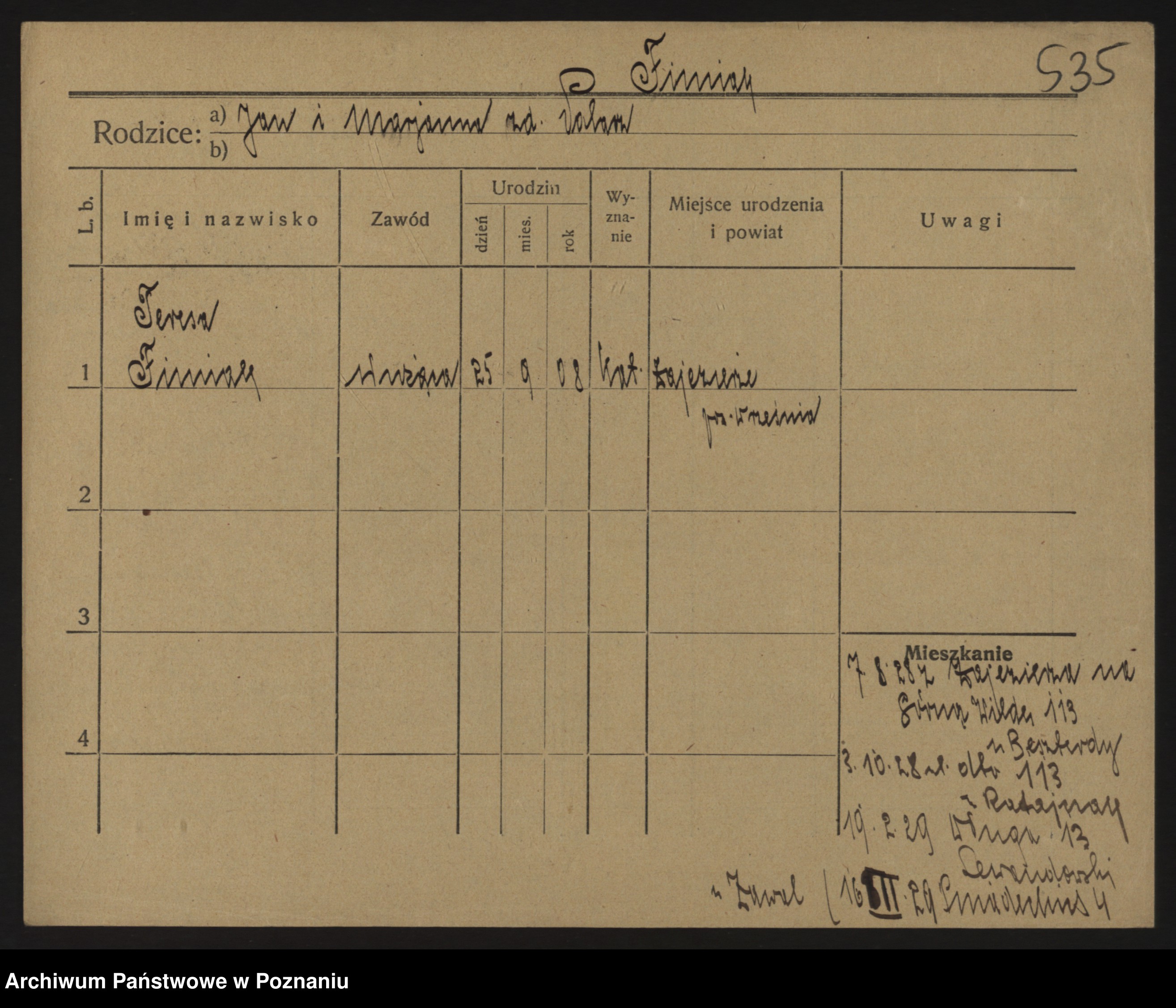 Podgląd karty osobowej dostępny jest po kliknięciu na nazwisko lub ikonkę karty. Można dokonywać powiększenia (ikony na górze) lub przechodzić między kolejnymi skanami (strzałki po bokach).