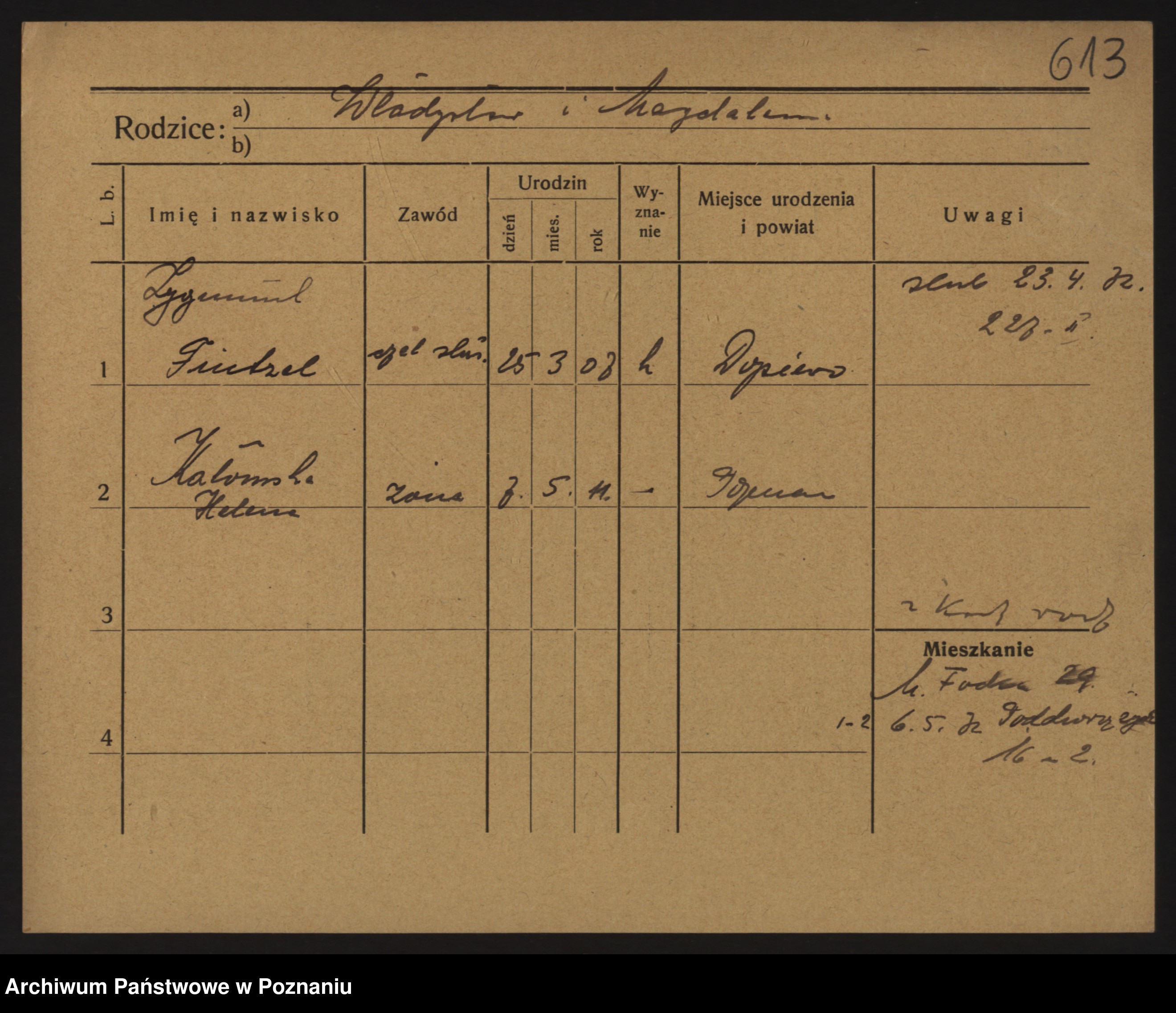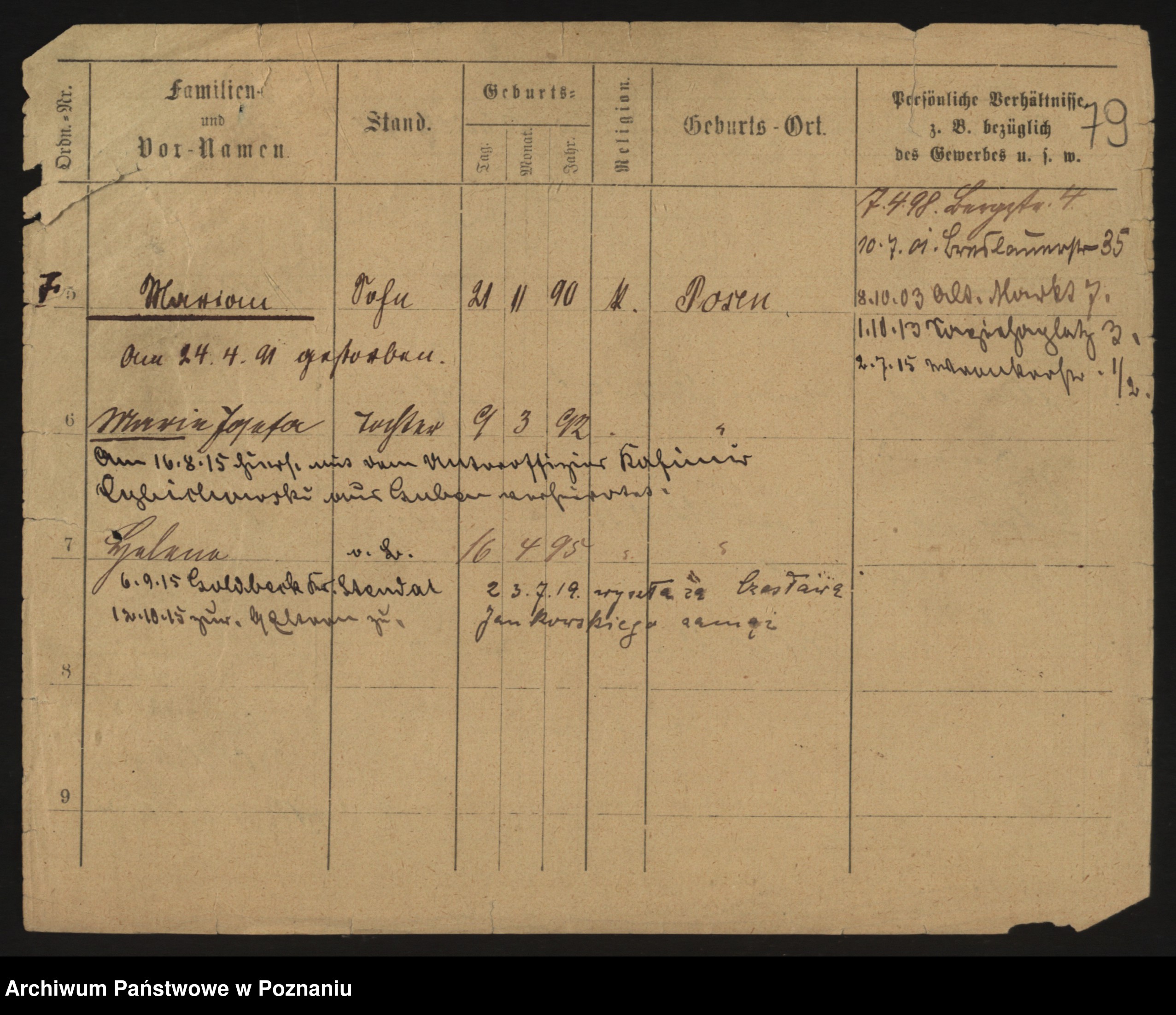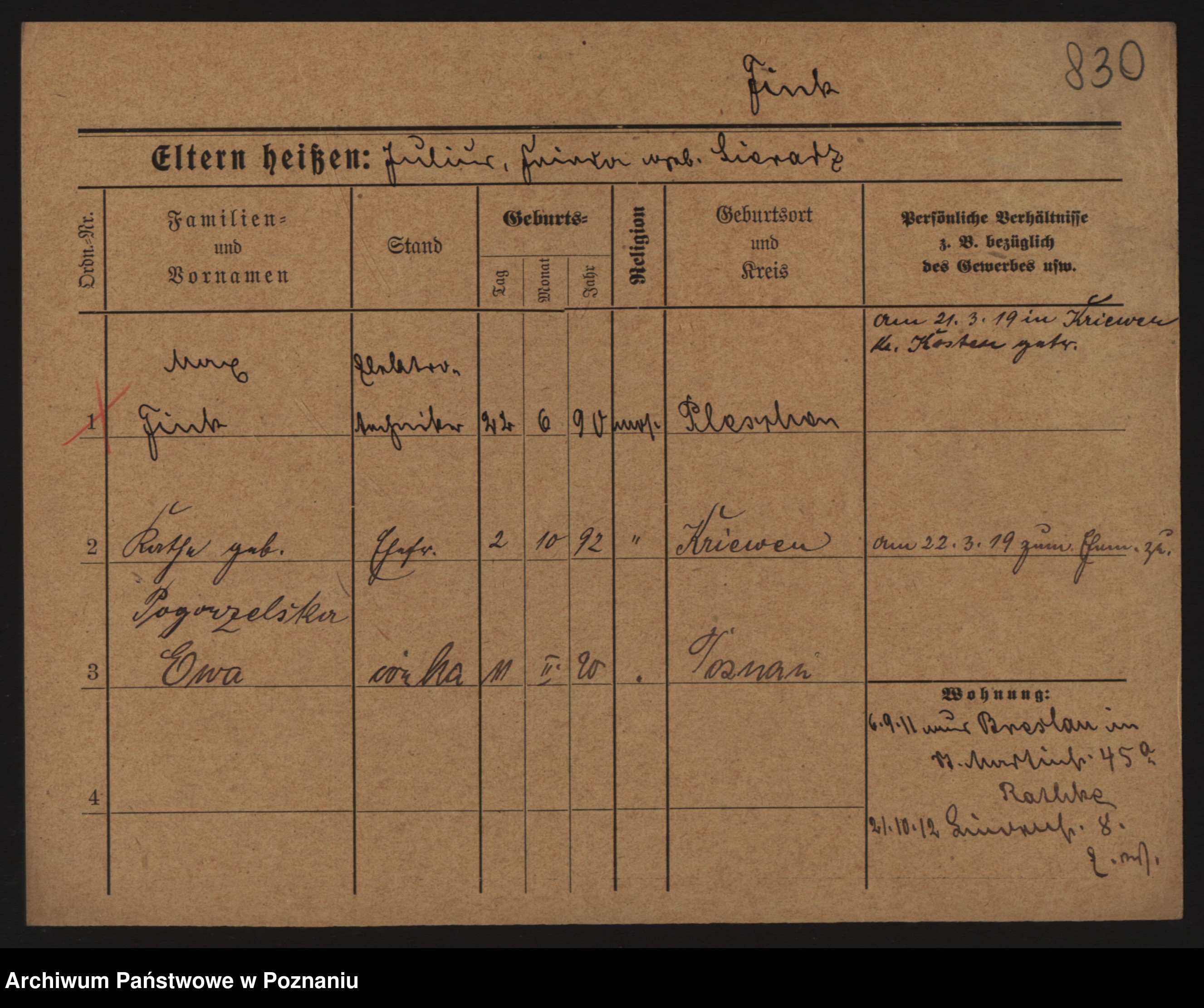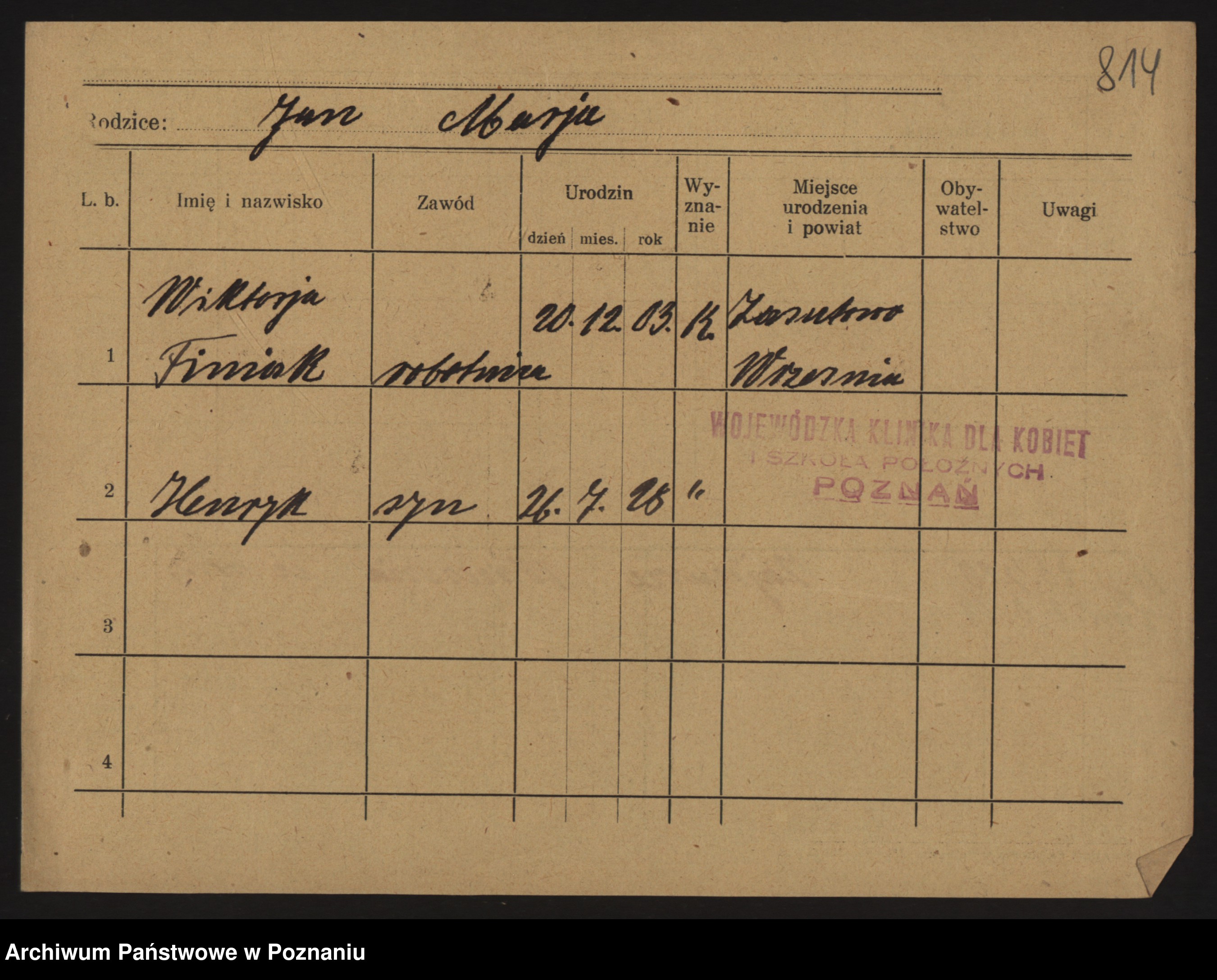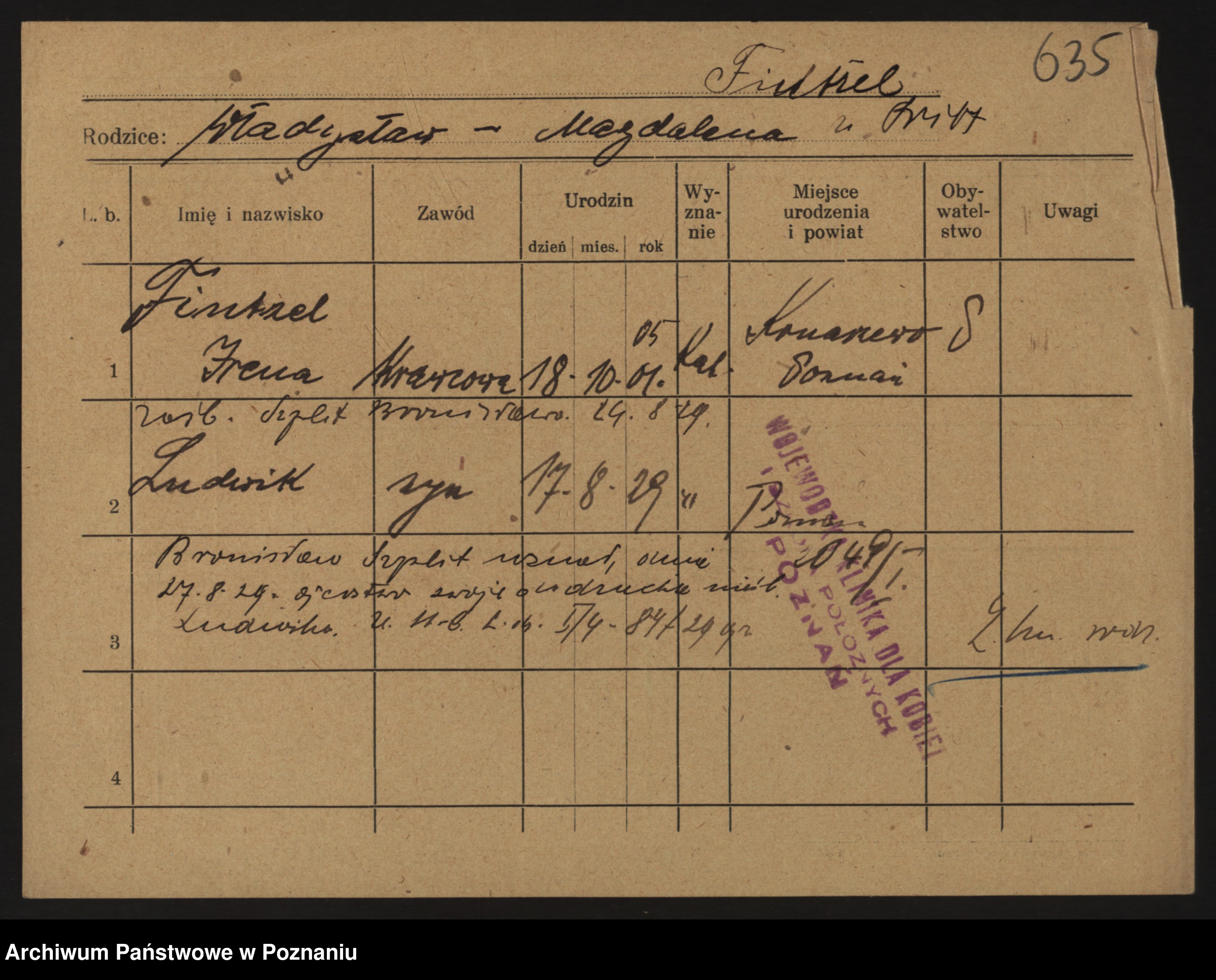 Podgląd karty osobowej dostępny jest po kliknięciu na nazwisko lub ikonkę karty. Można dokonywać powiększenia (ikony na górze) lub przechodzić między kolejnymi skanami (strzałki po bokach).