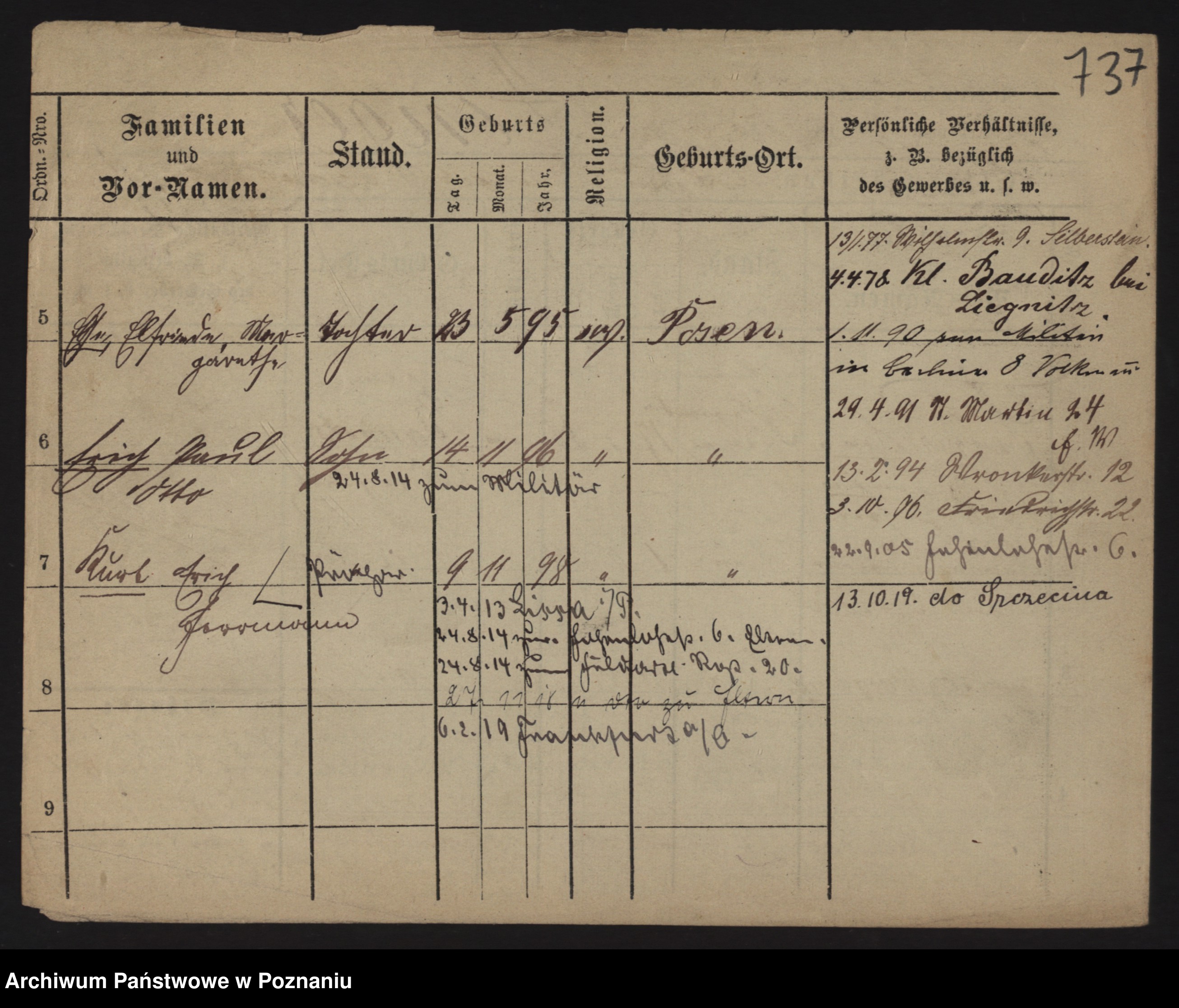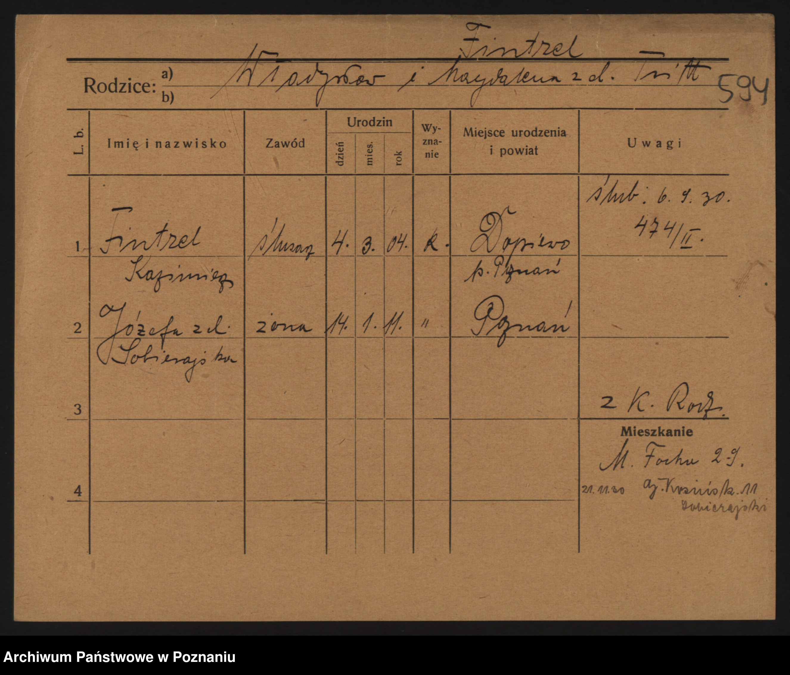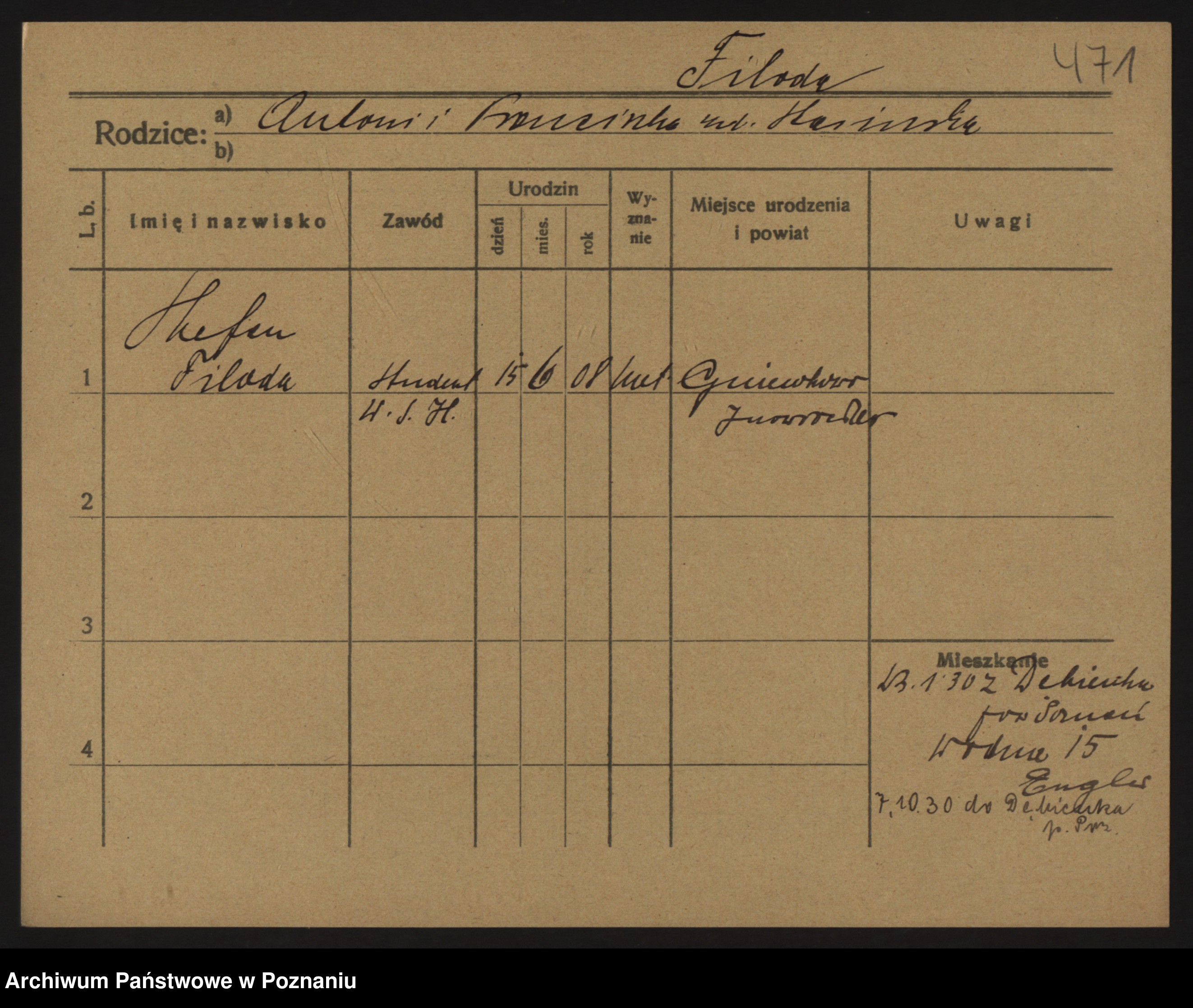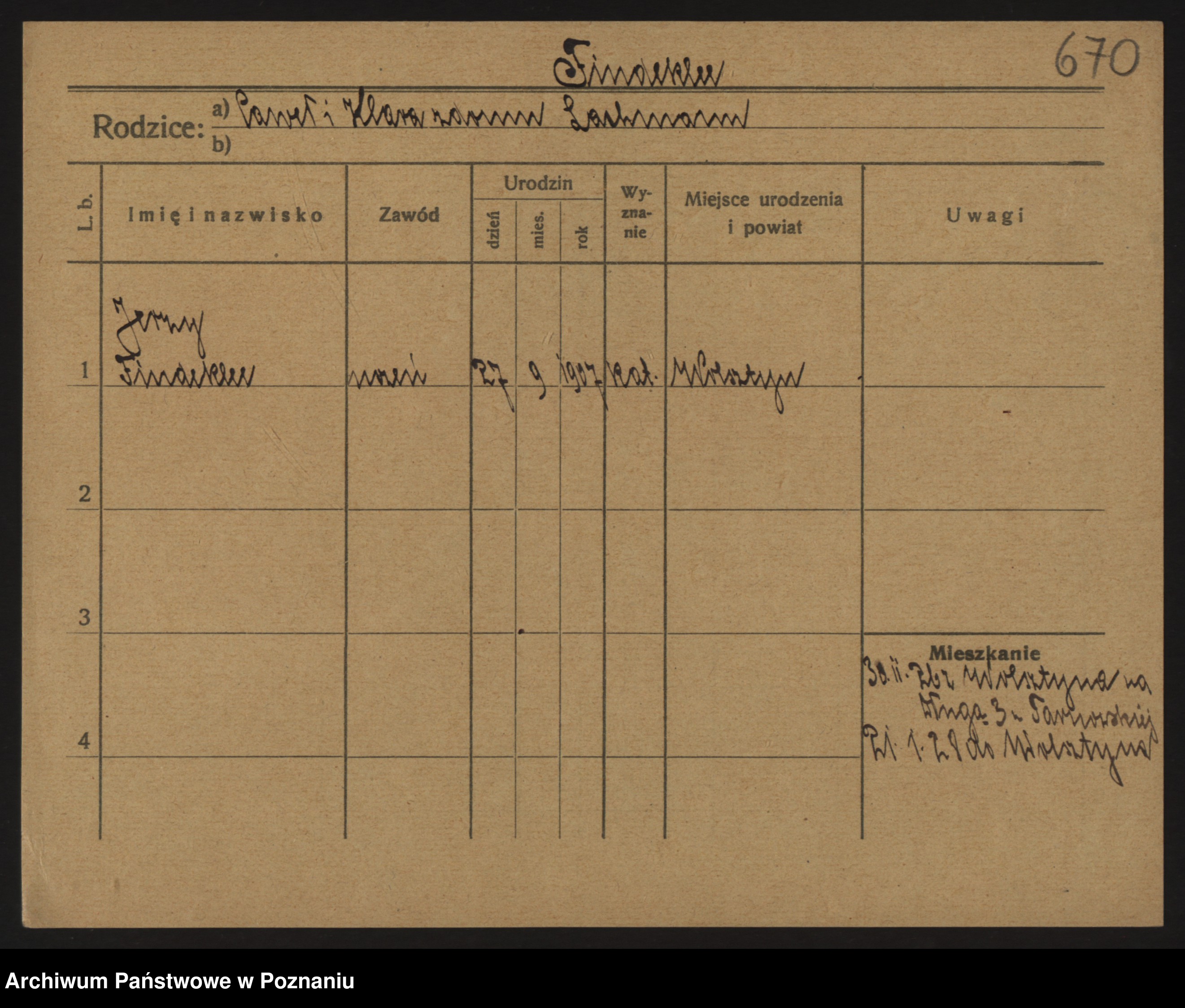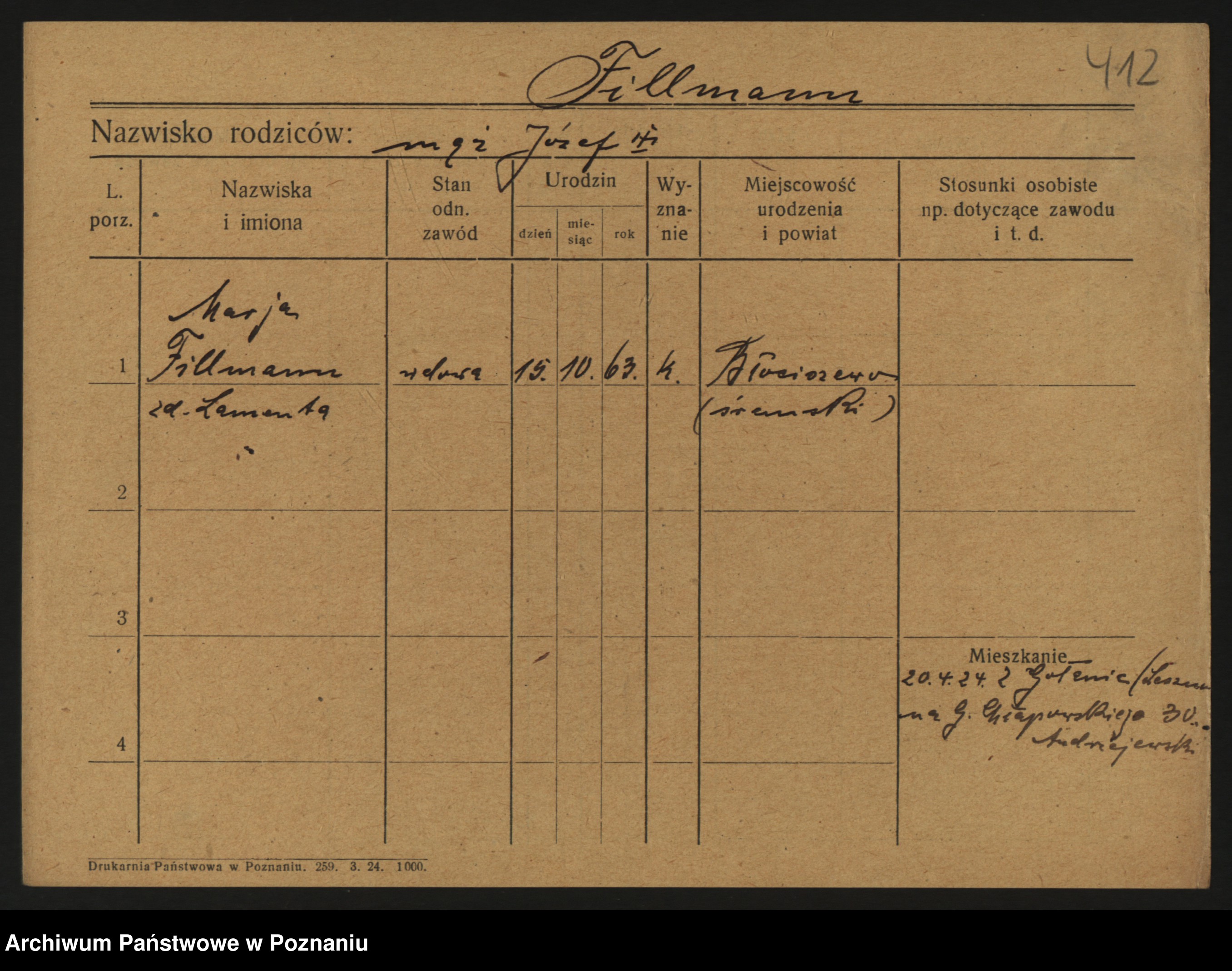 Podgląd karty osobowej dostępny jest po kliknięciu na nazwisko lub ikonkę karty. Można dokonywać powiększenia (ikony na górze) lub przechodzić między kolejnymi skanami (strzałki po bokach).