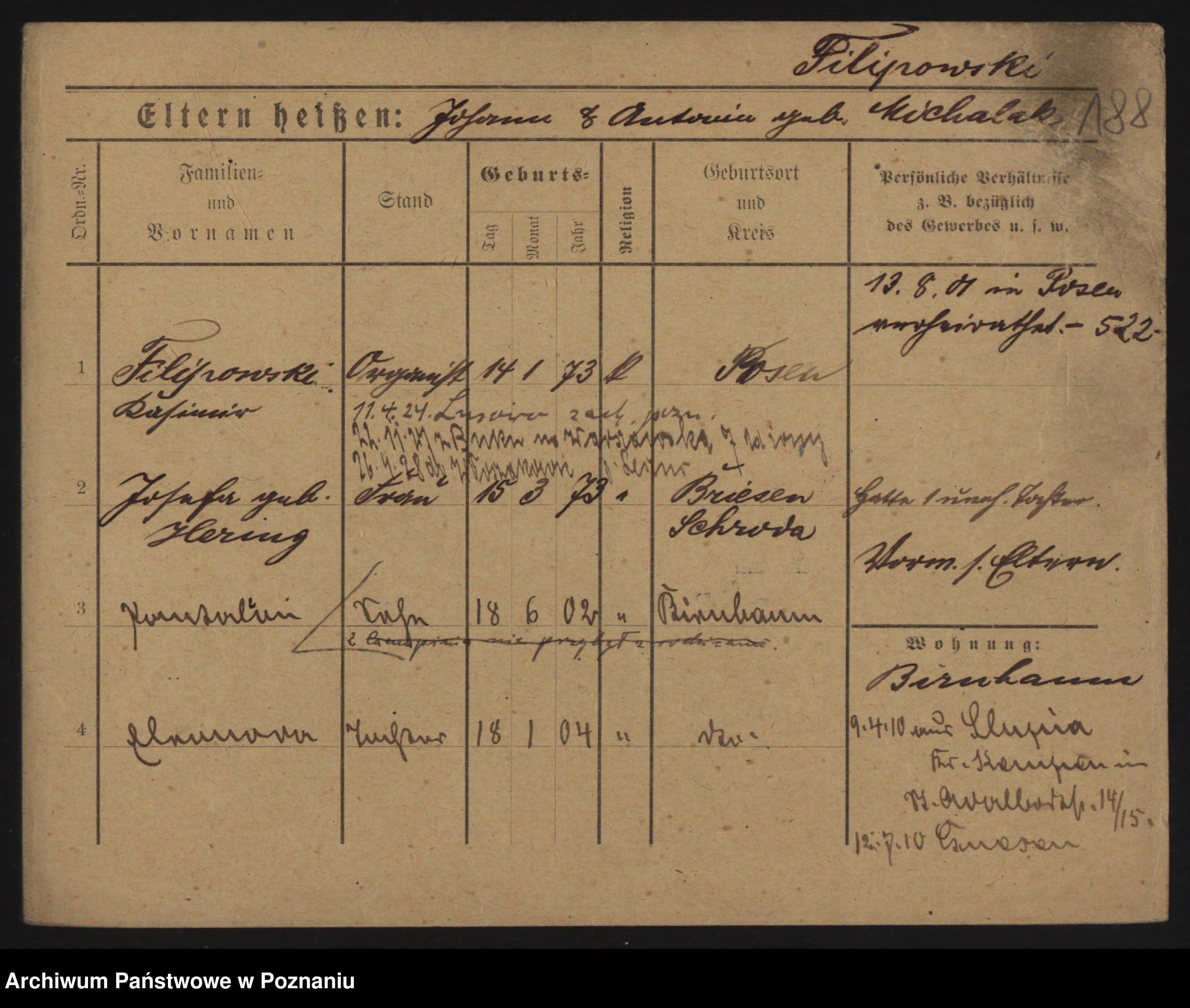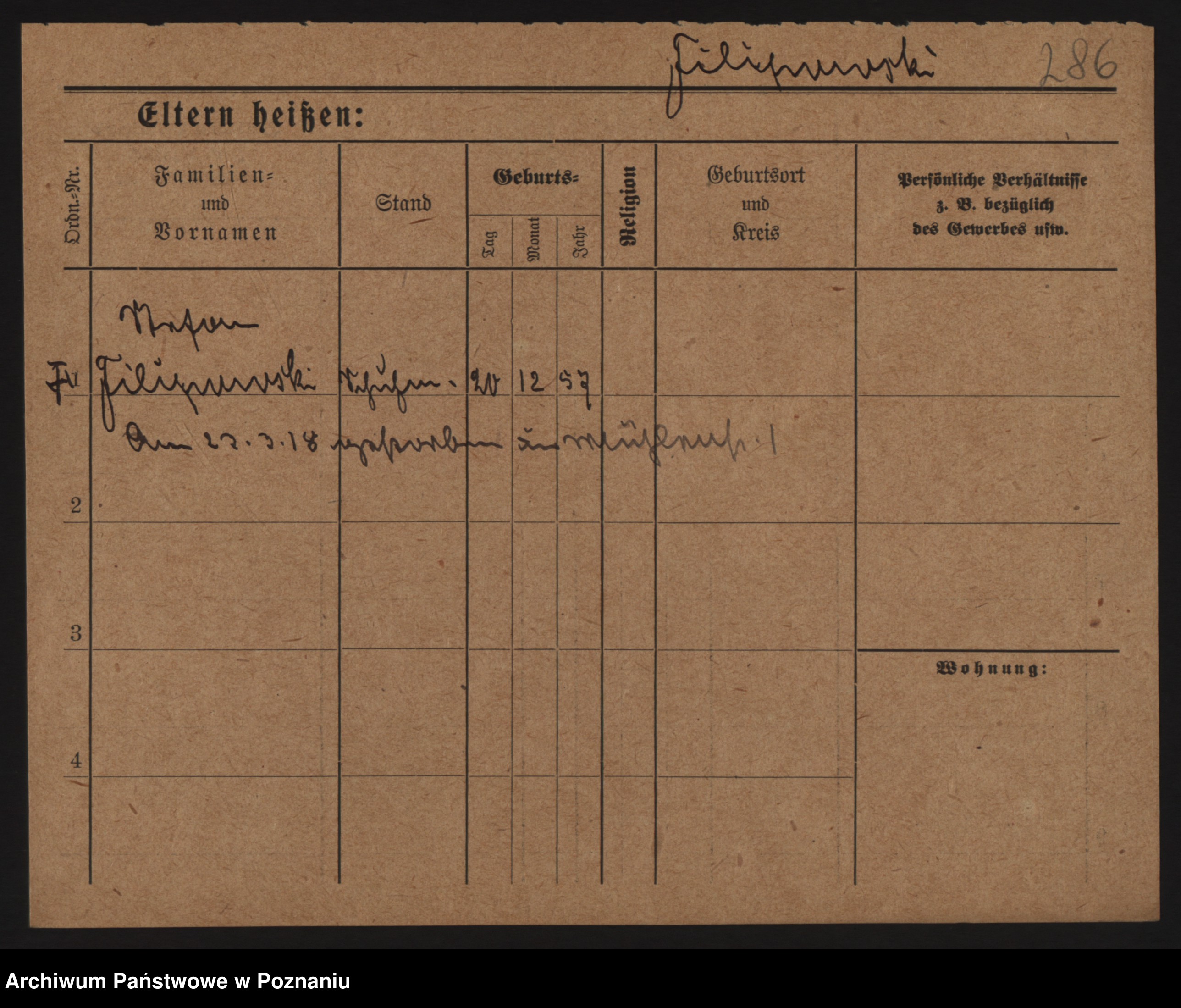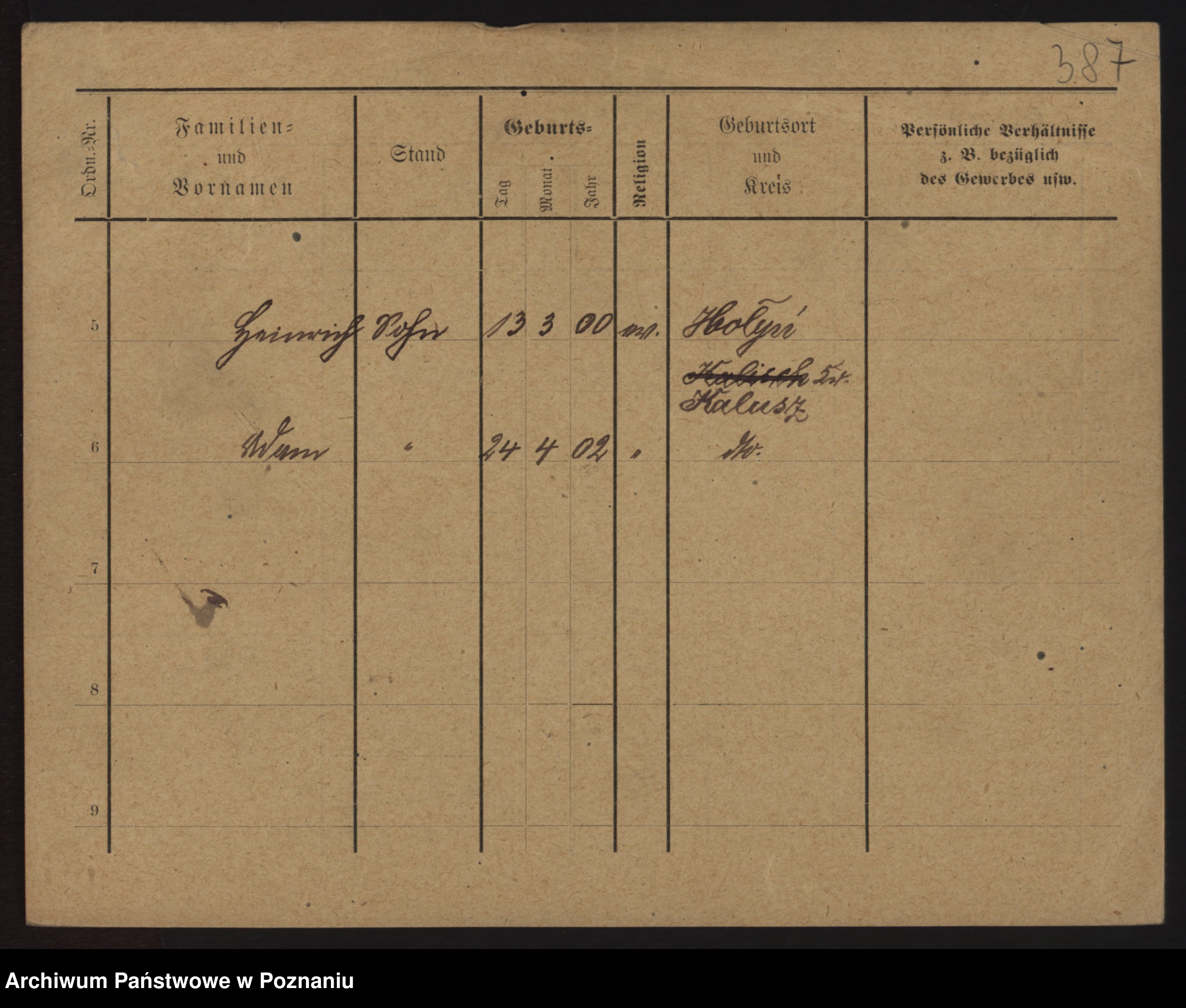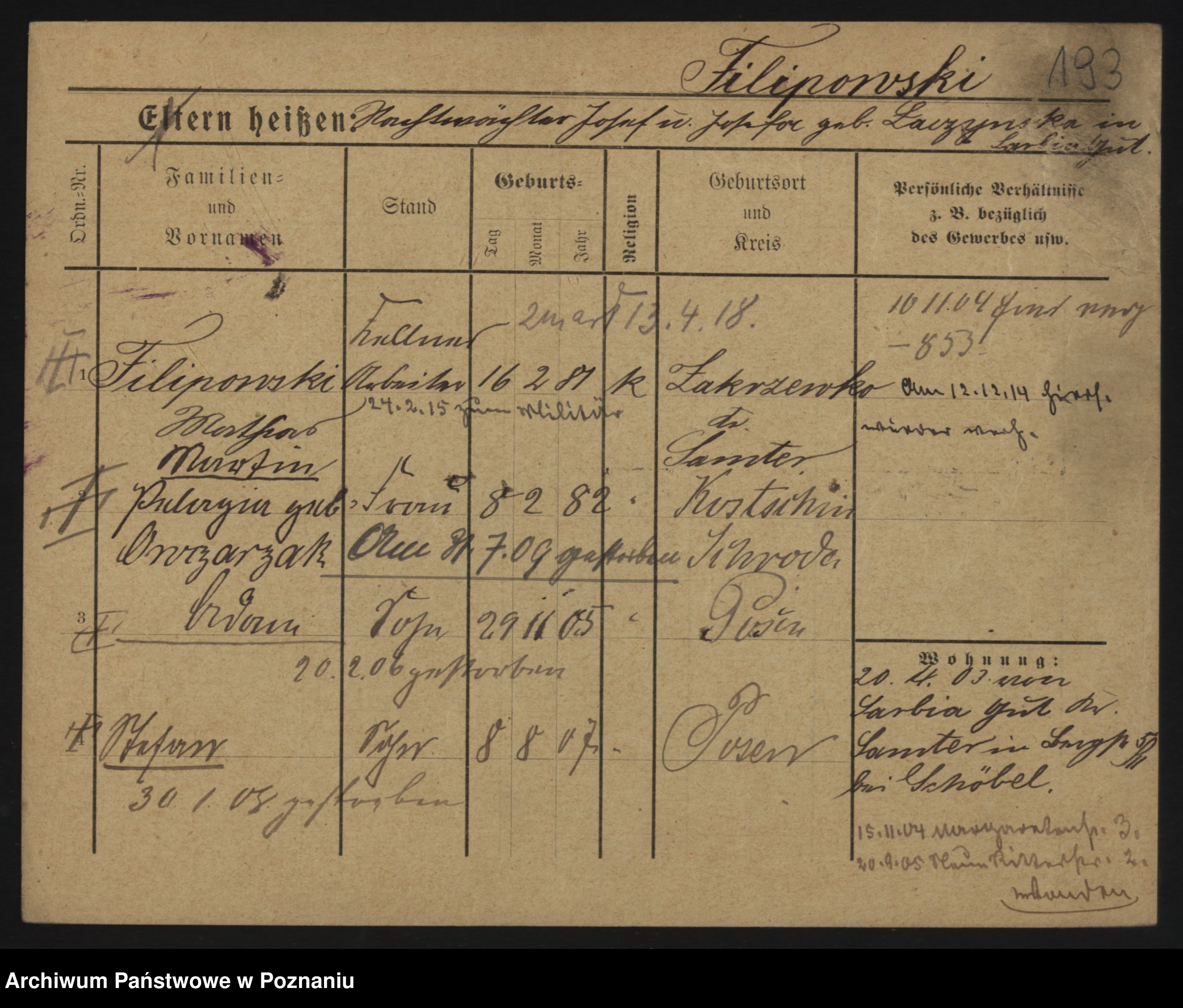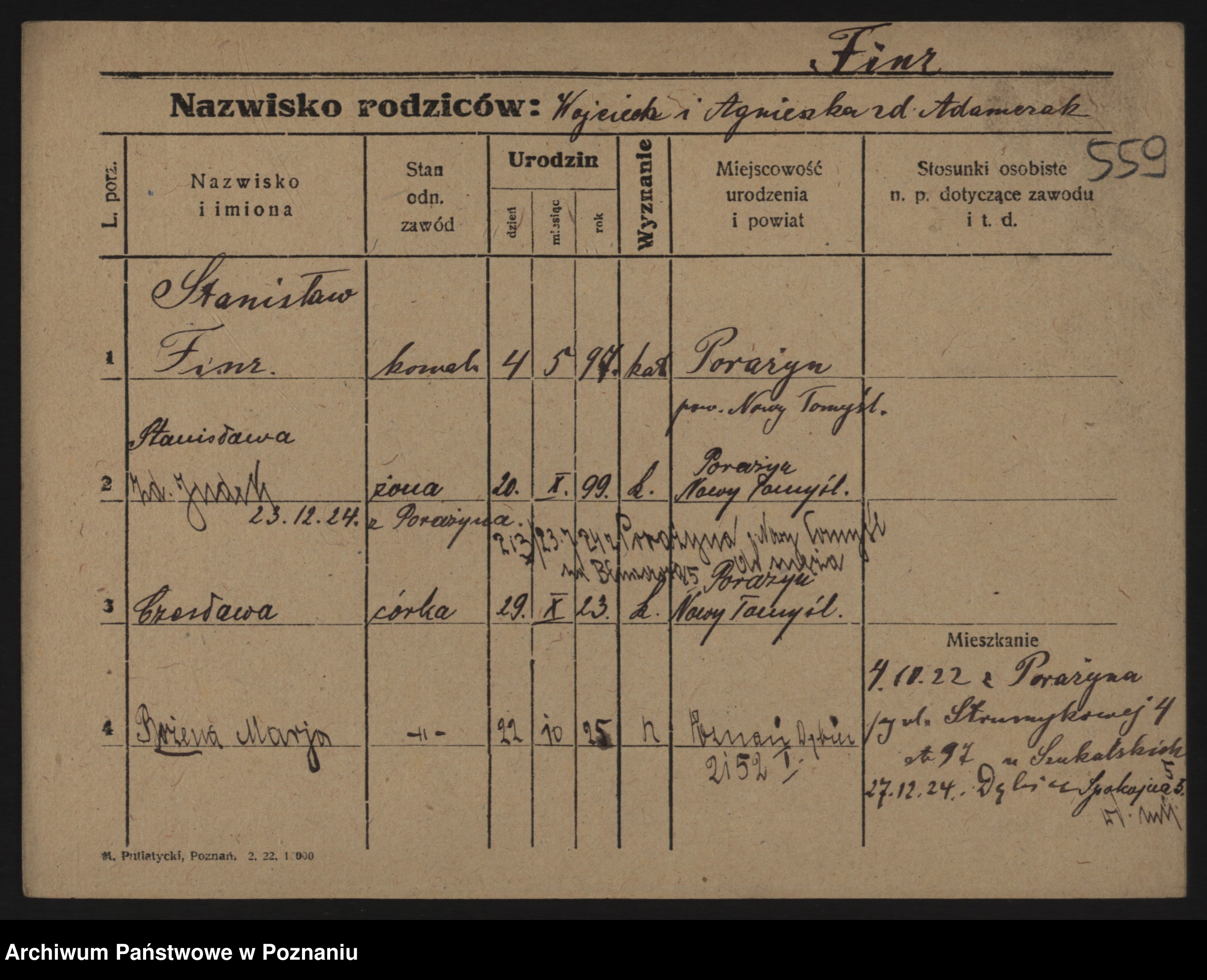 Podgląd karty osobowej dostępny jest po kliknięciu na nazwisko lub ikonkę karty. Można dokonywać powiększenia (ikony na górze) lub przechodzić między kolejnymi skanami (strzałki po bokach).