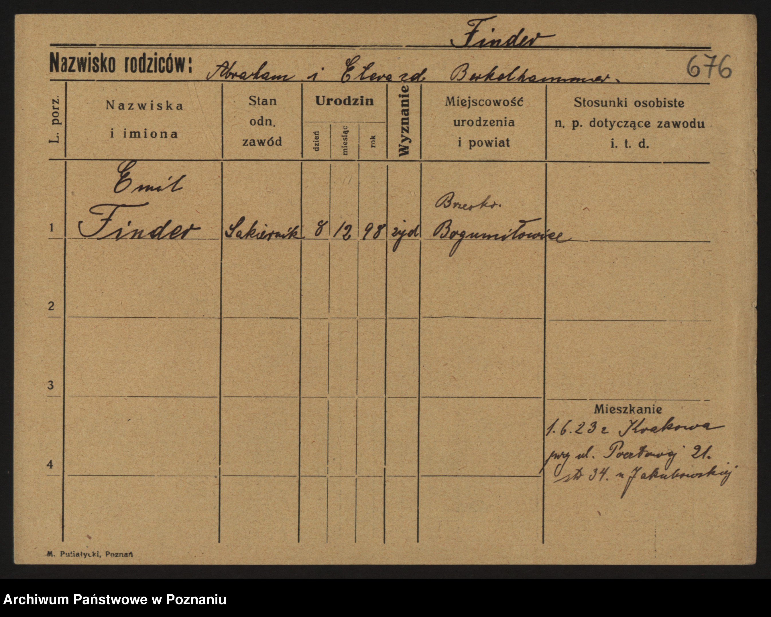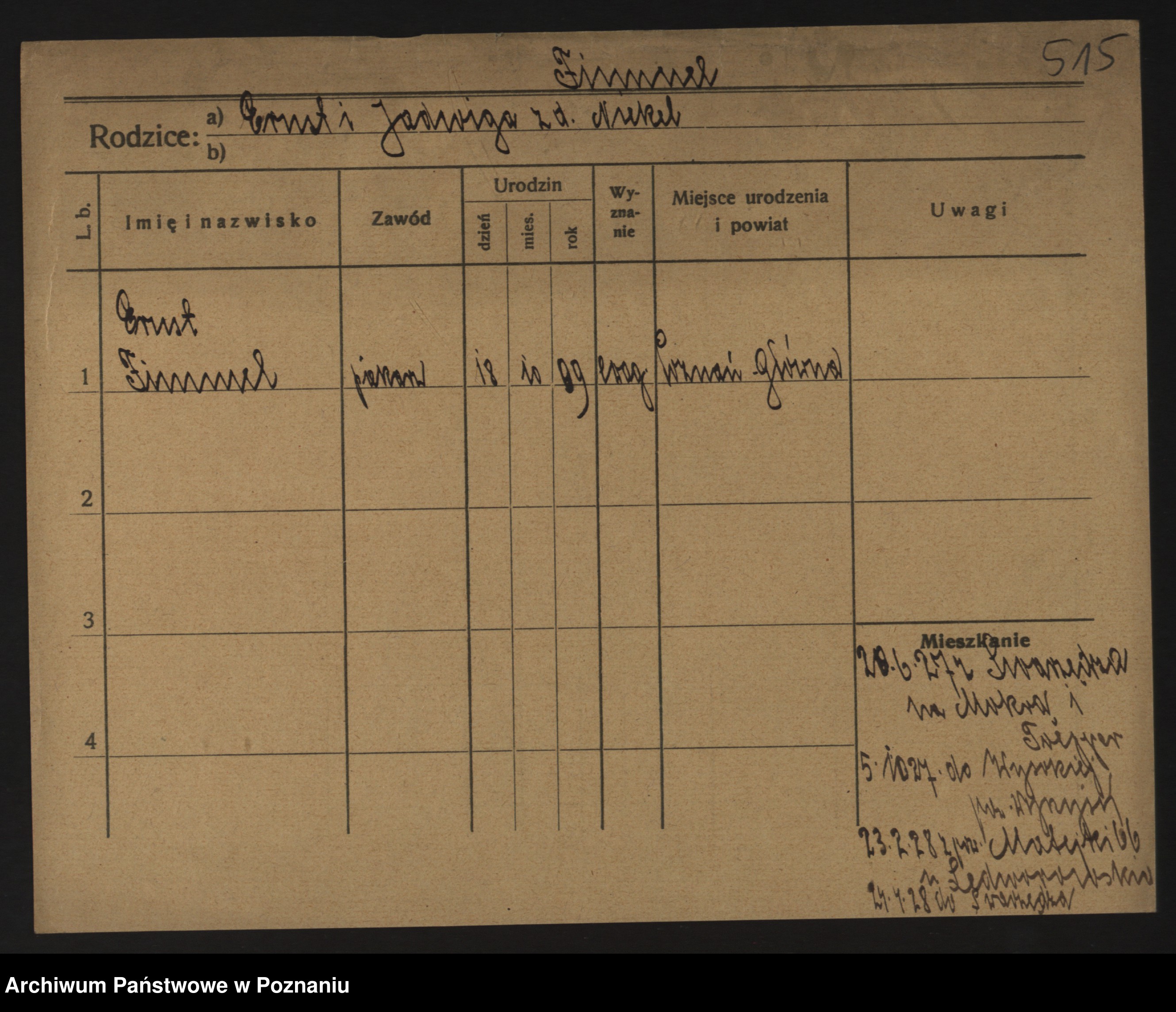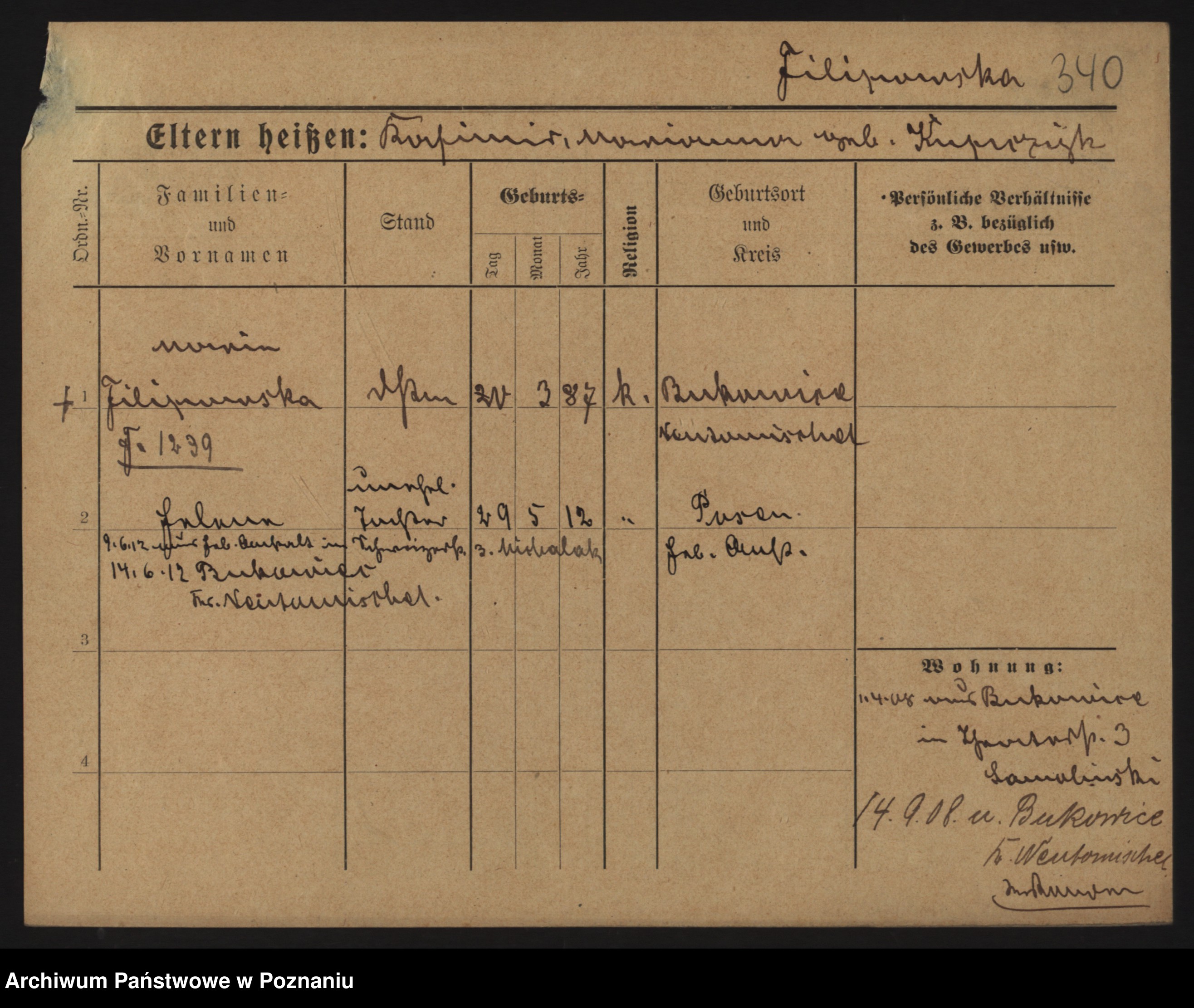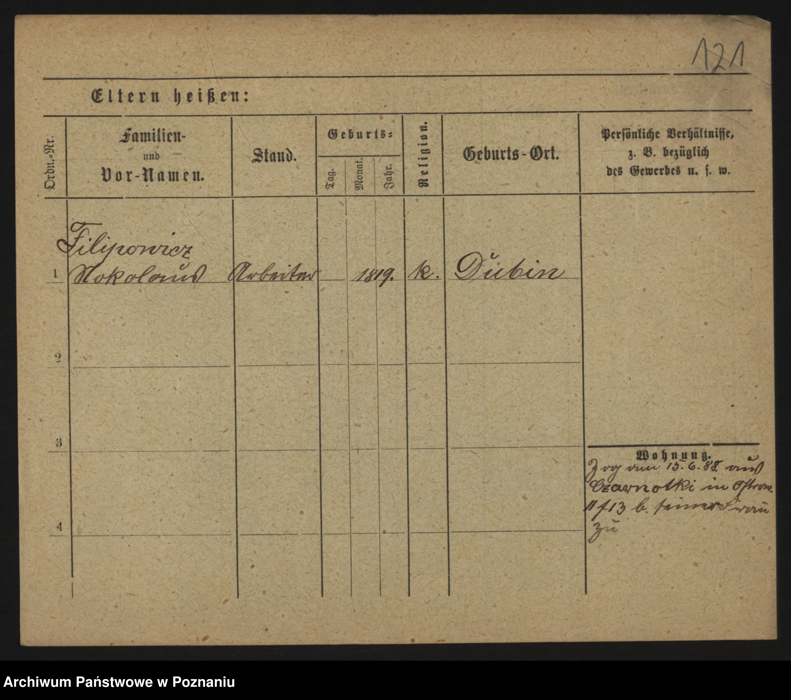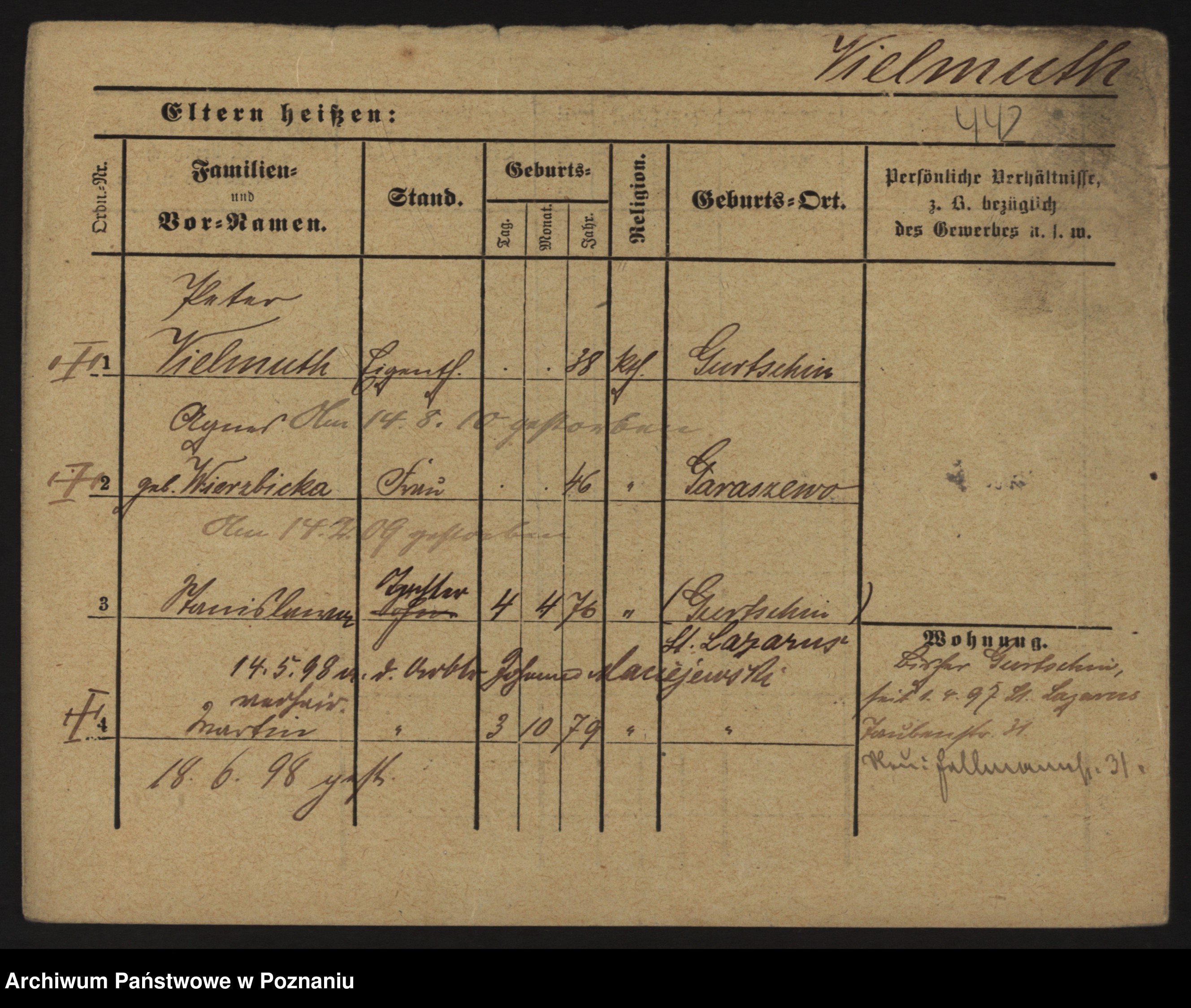 Podgląd karty osobowej dostępny jest po kliknięciu na nazwisko lub ikonkę karty. Można dokonywać powiększenia (ikony na górze) lub przechodzić między kolejnymi skanami (strzałki po bokach).
