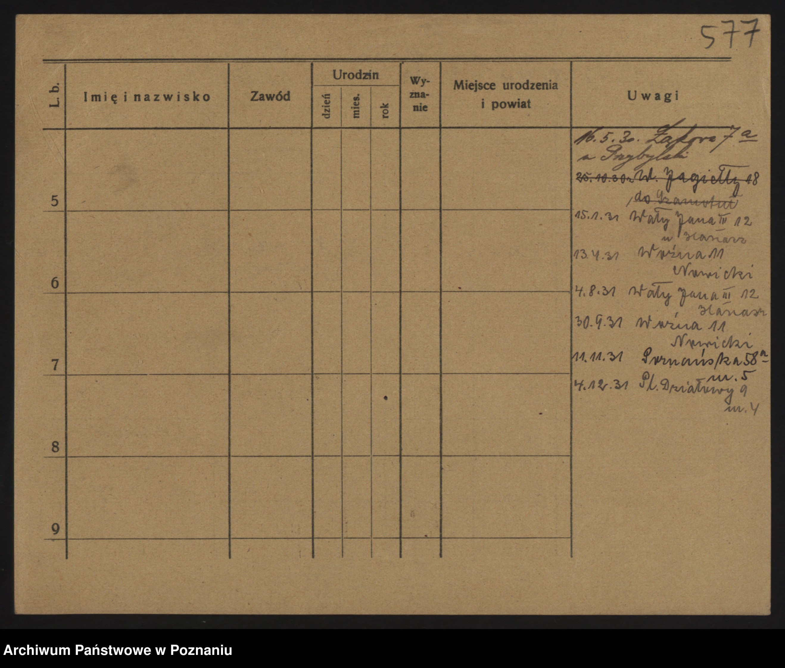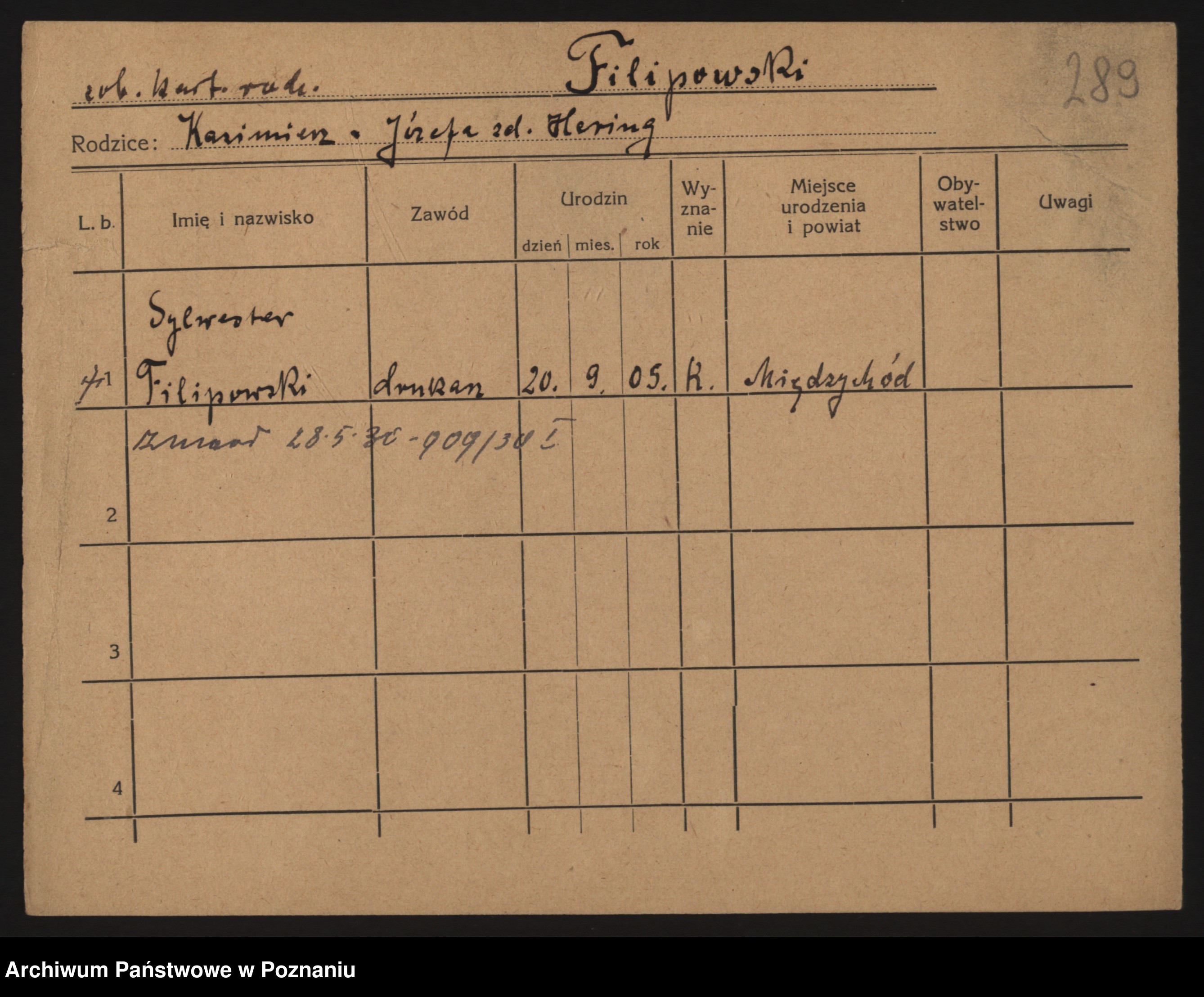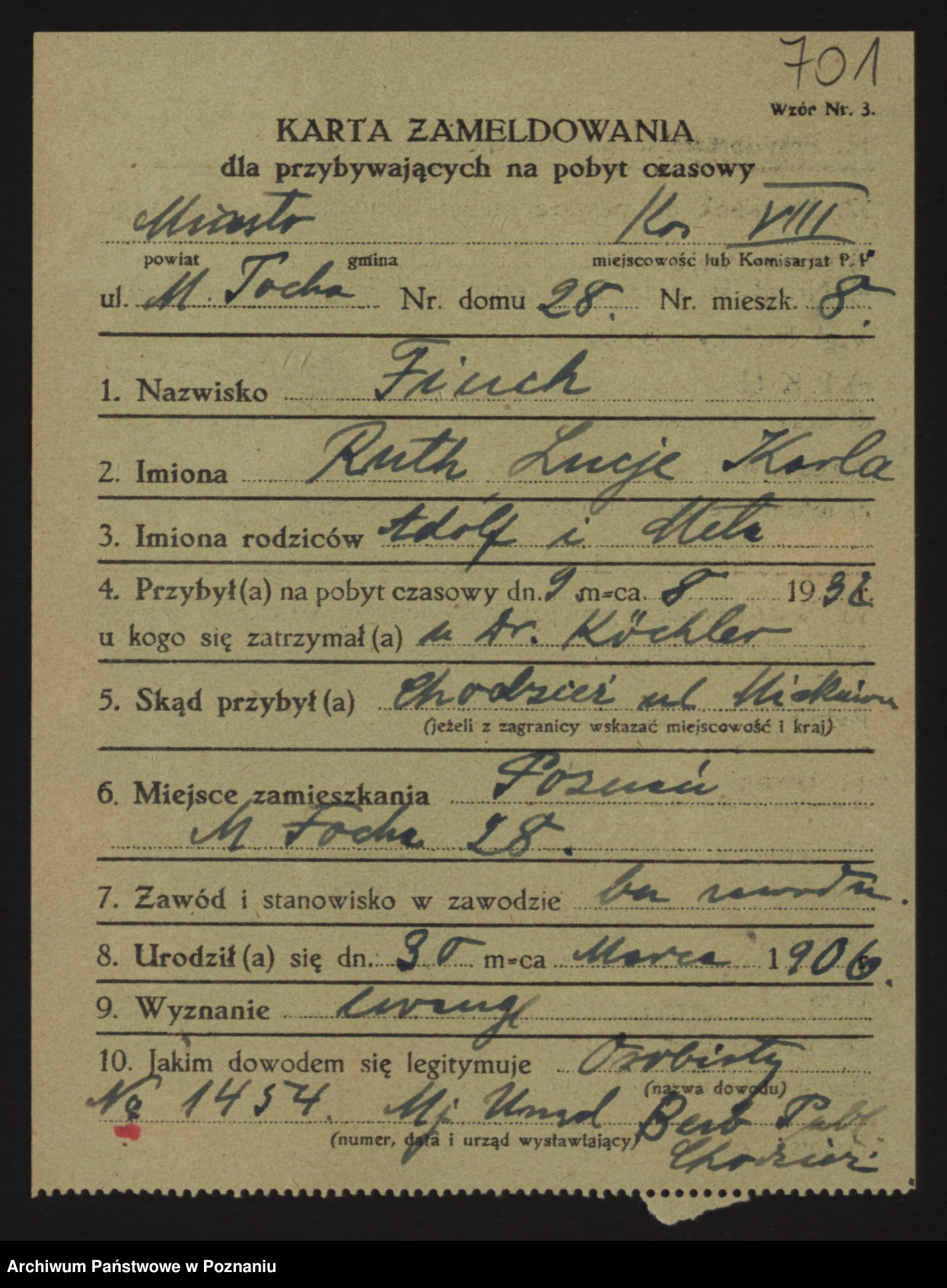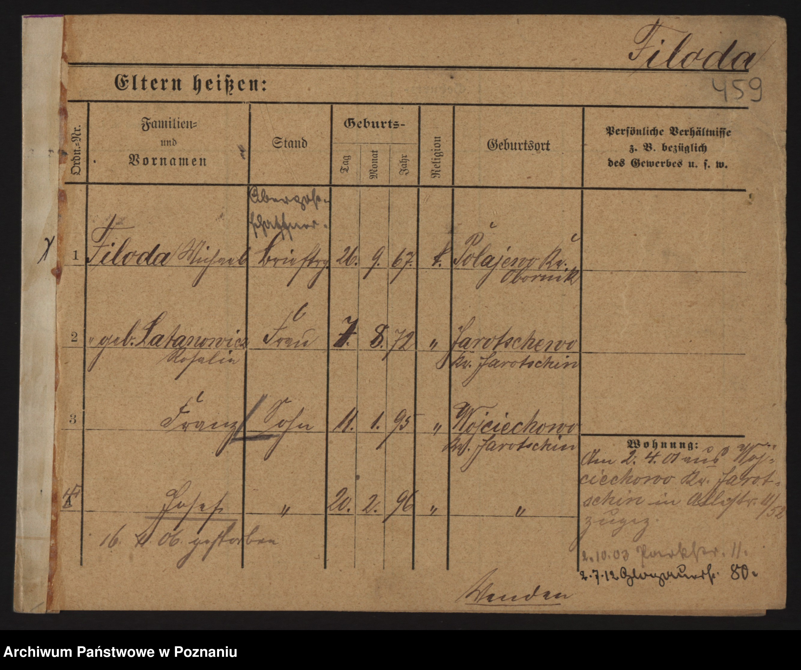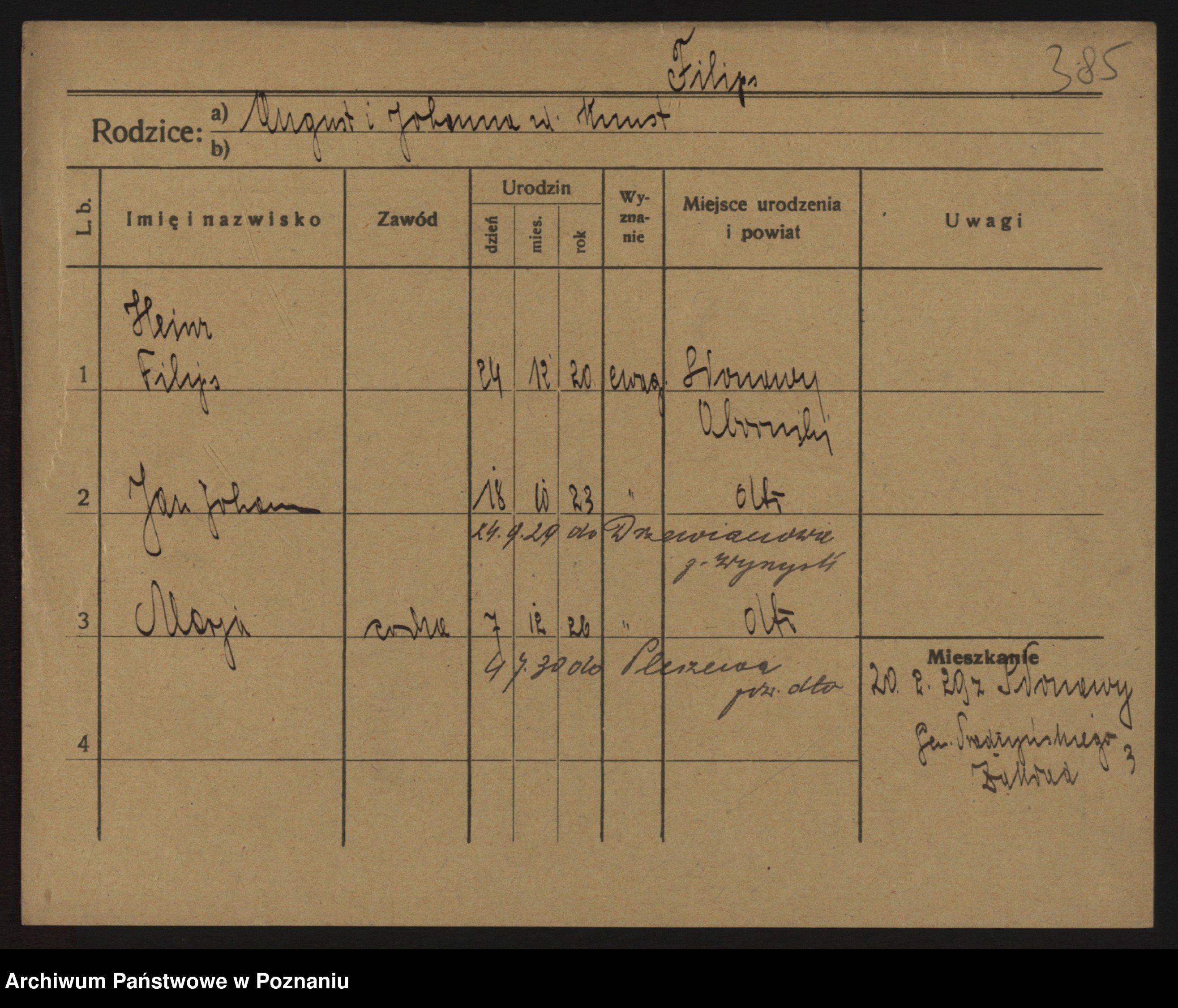 Podgląd karty osobowej dostępny jest po kliknięciu na nazwisko lub ikonkę karty. Można dokonywać powiększenia (ikony na górze) lub przechodzić między kolejnymi skanami (strzałki po bokach).