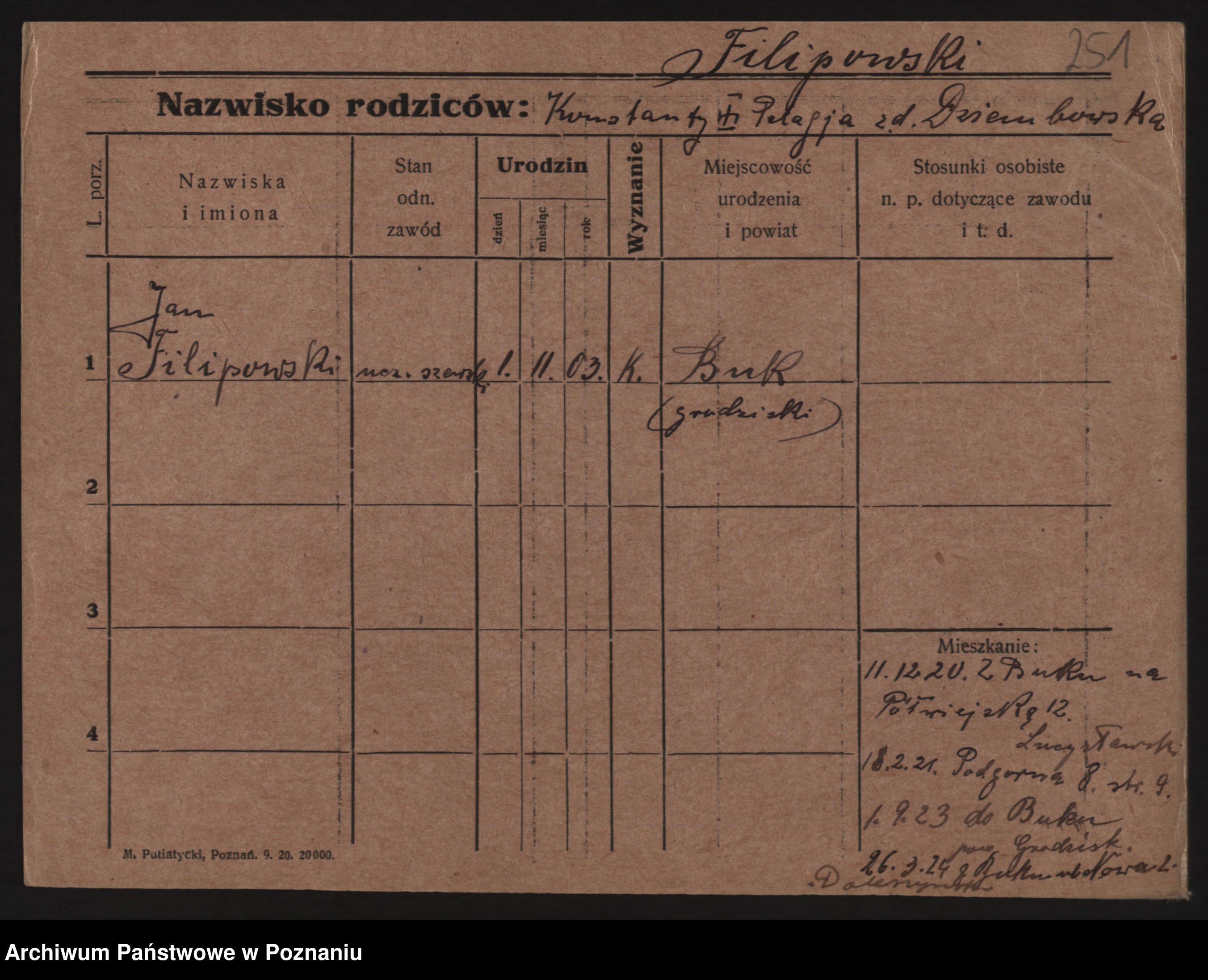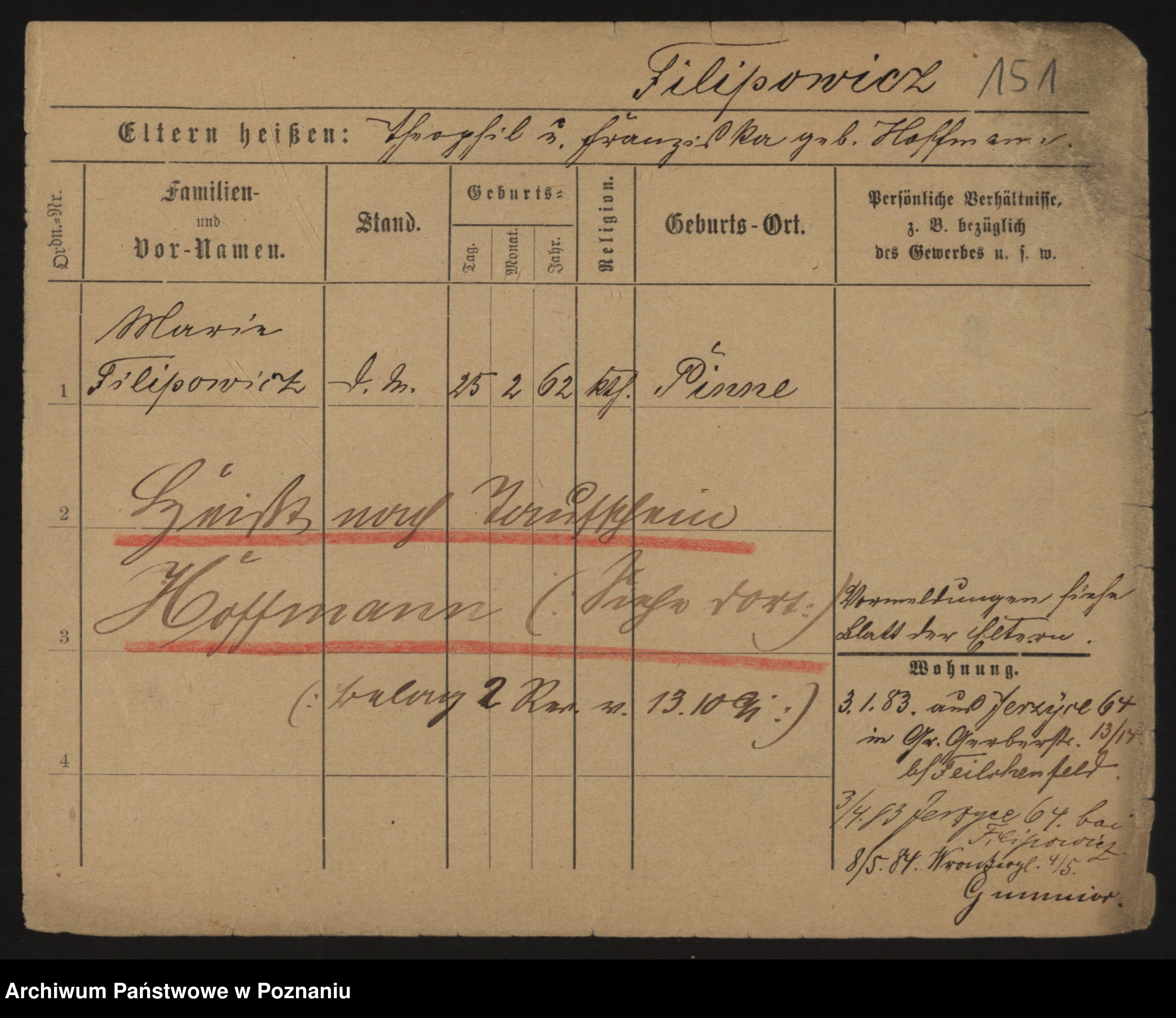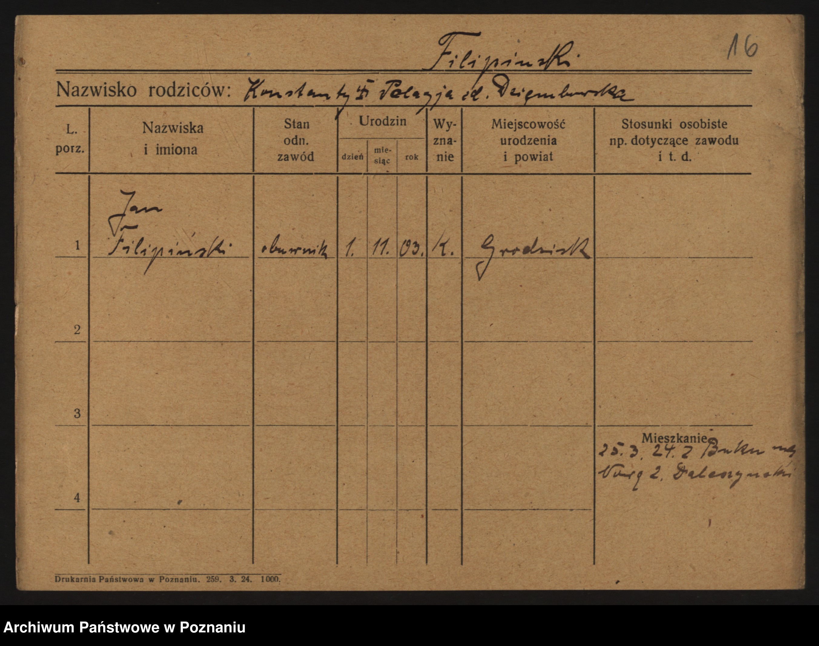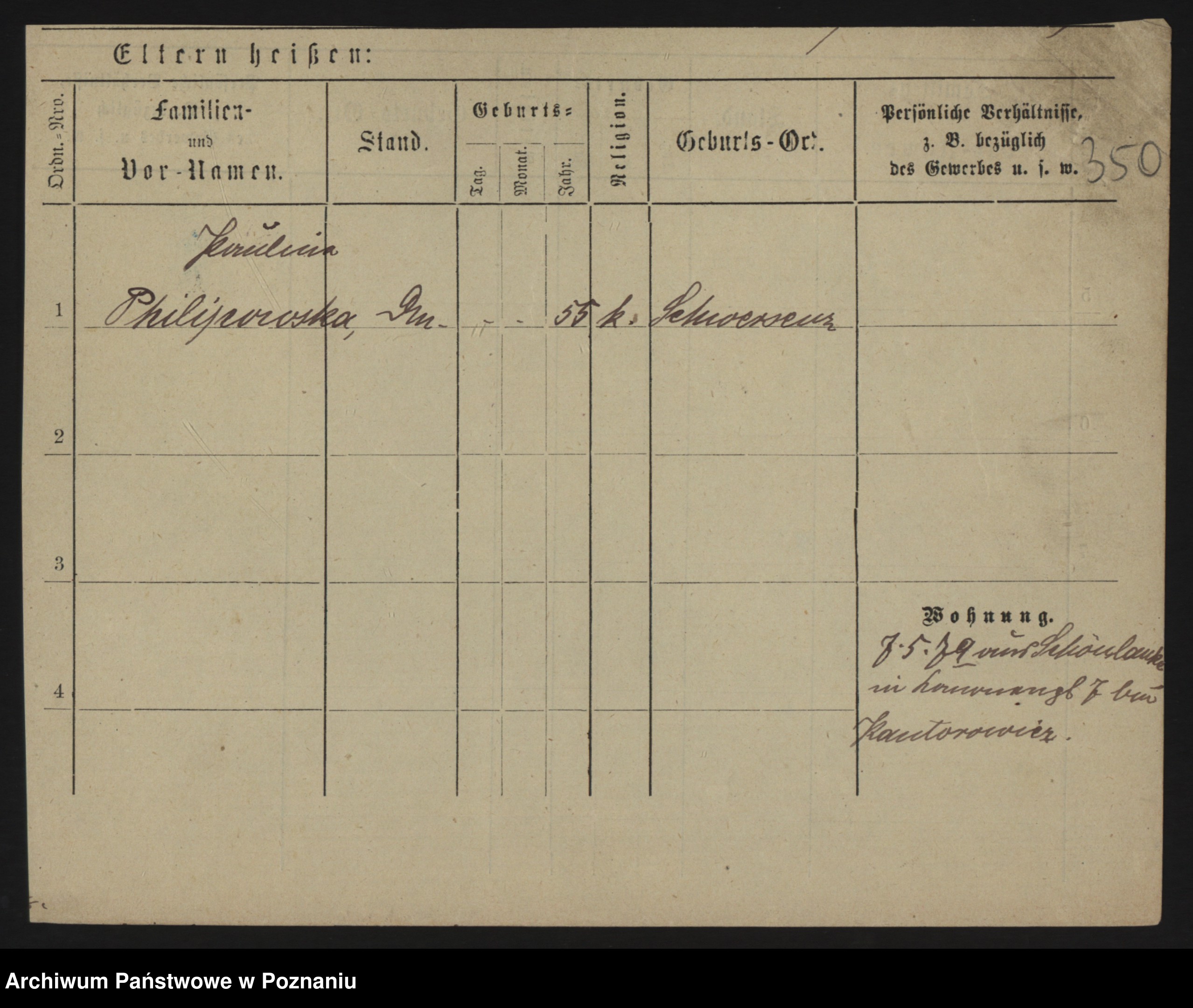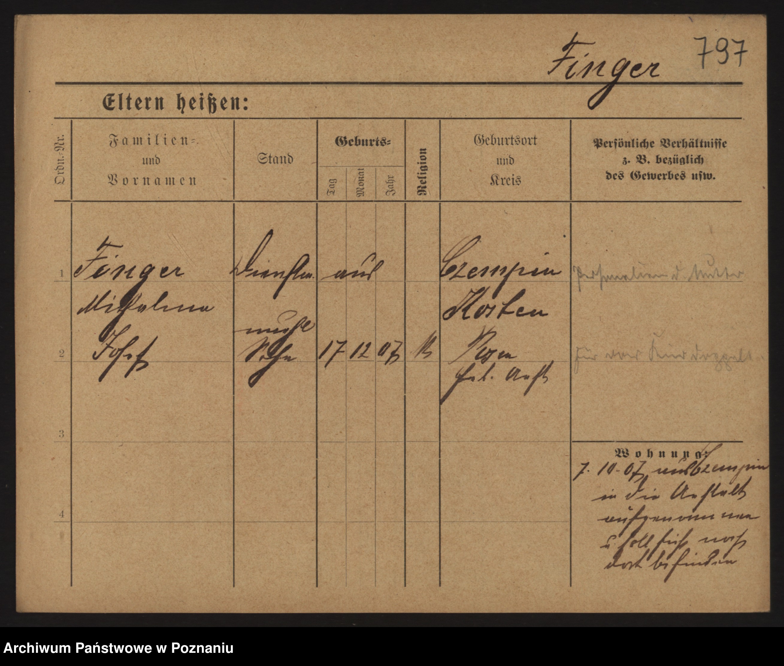 Podgląd karty osobowej dostępny jest po kliknięciu na nazwisko lub ikonkę karty. Można dokonywać powiększenia (ikony na górze) lub przechodzić między kolejnymi skanami (strzałki po bokach).