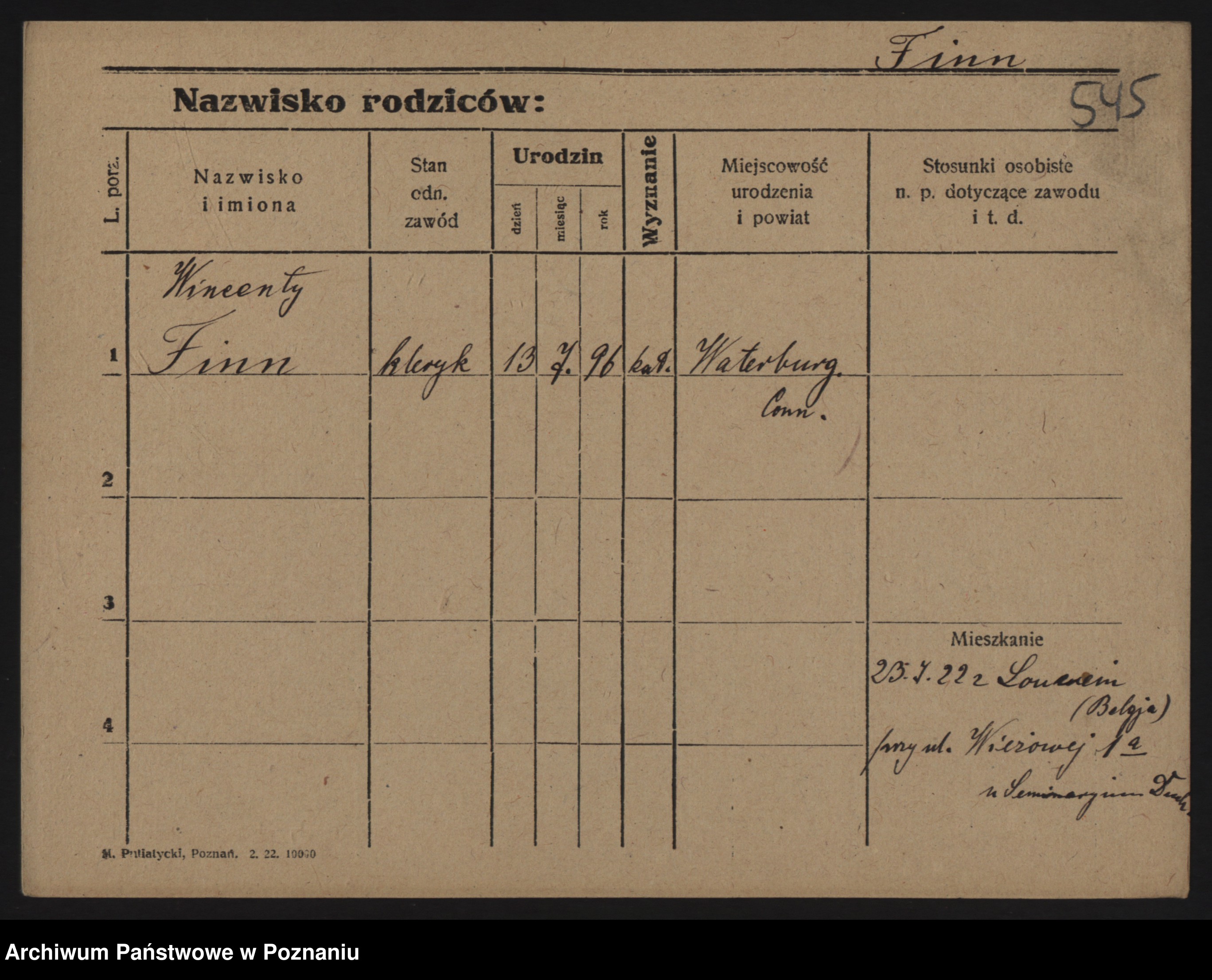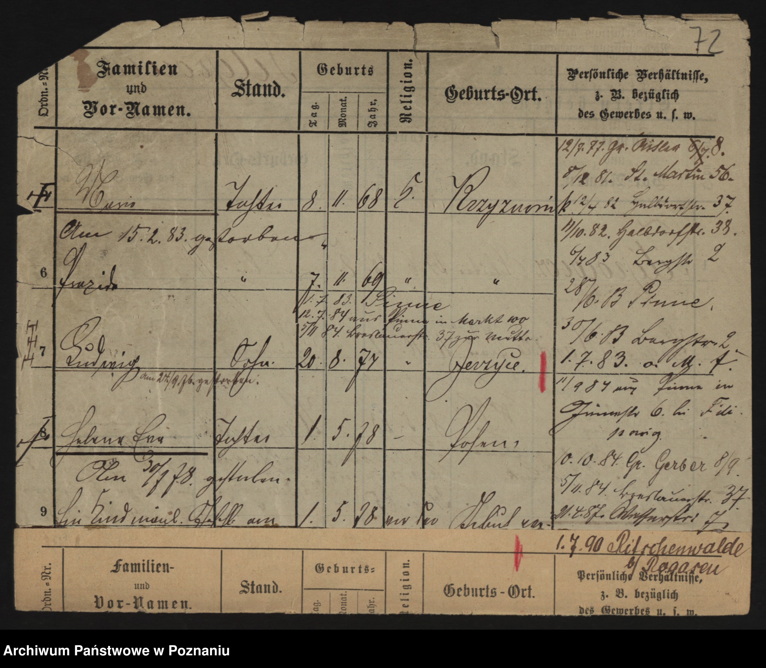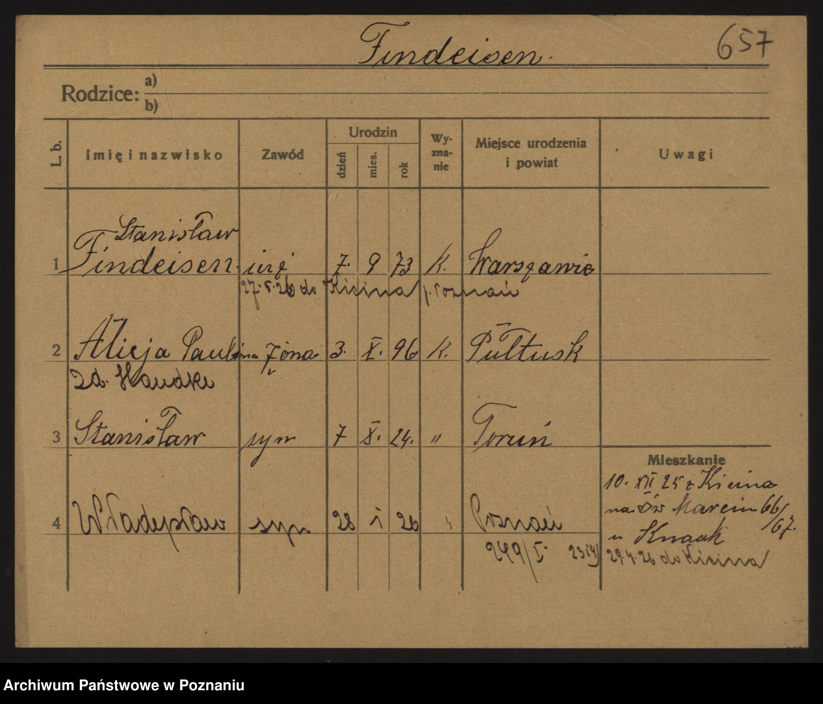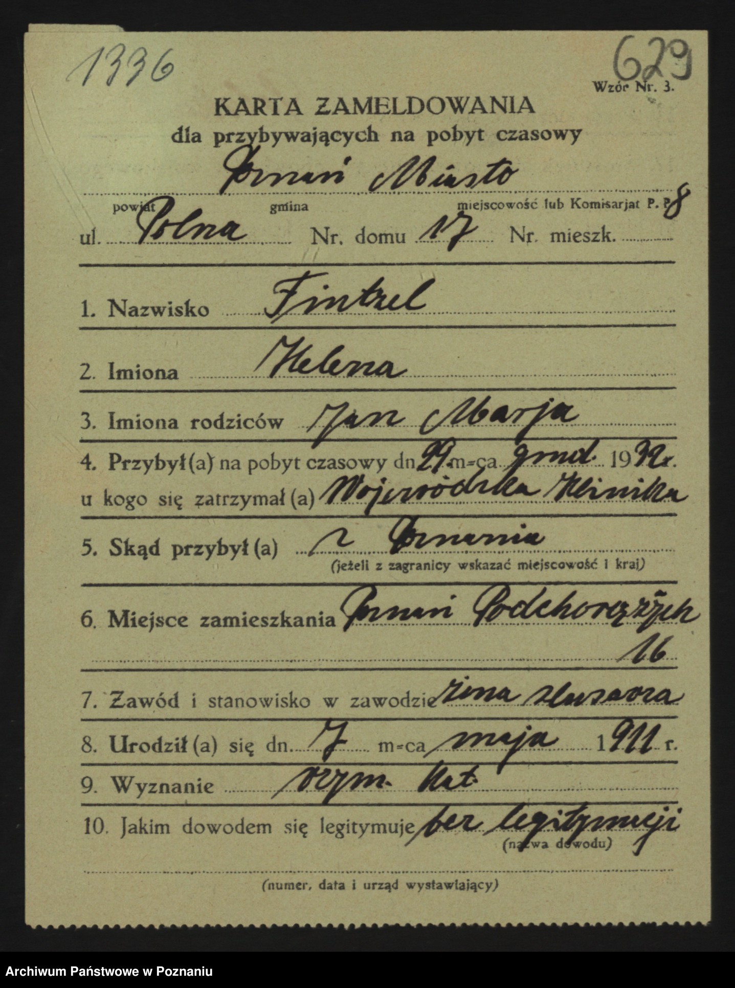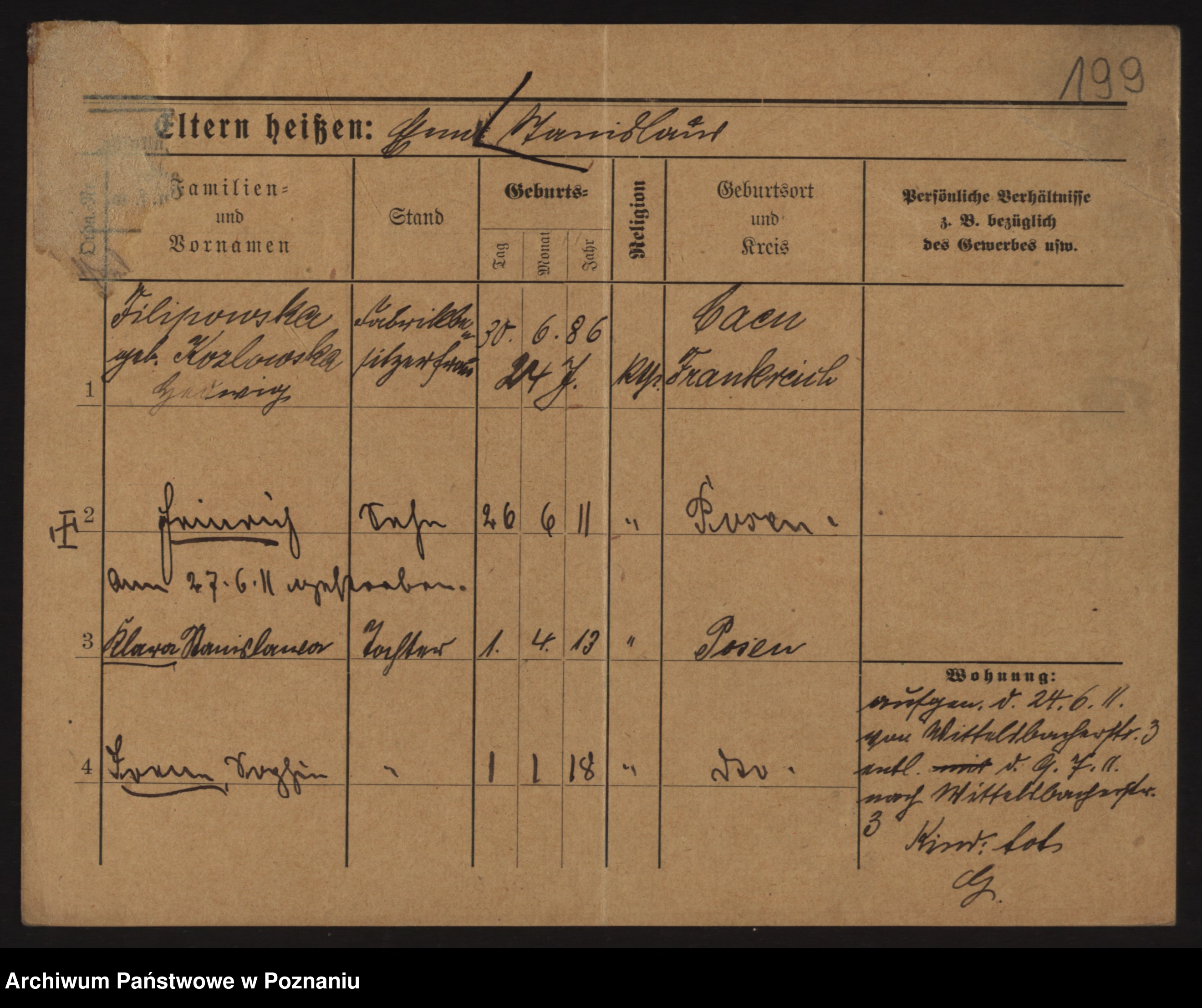 Podgląd karty osobowej dostępny jest po kliknięciu na nazwisko lub ikonkę karty. Można dokonywać powiększenia (ikony na górze) lub przechodzić między kolejnymi skanami (strzałki po bokach).