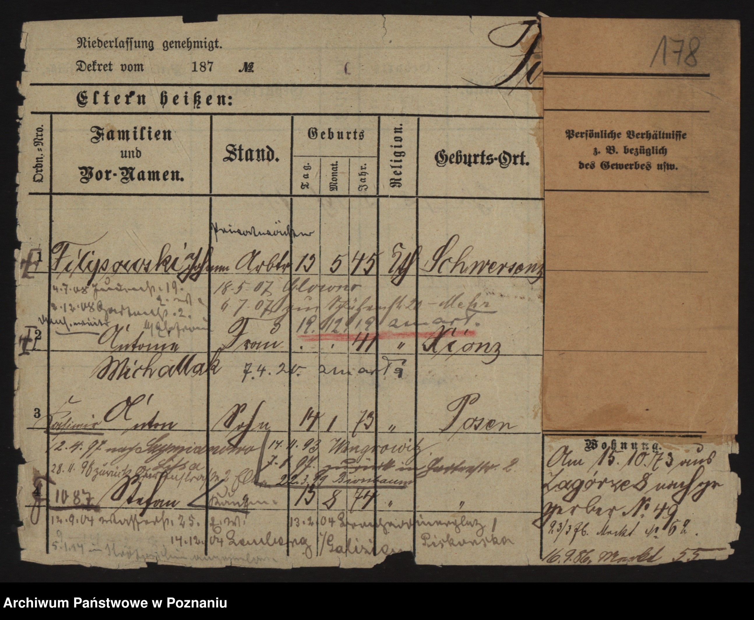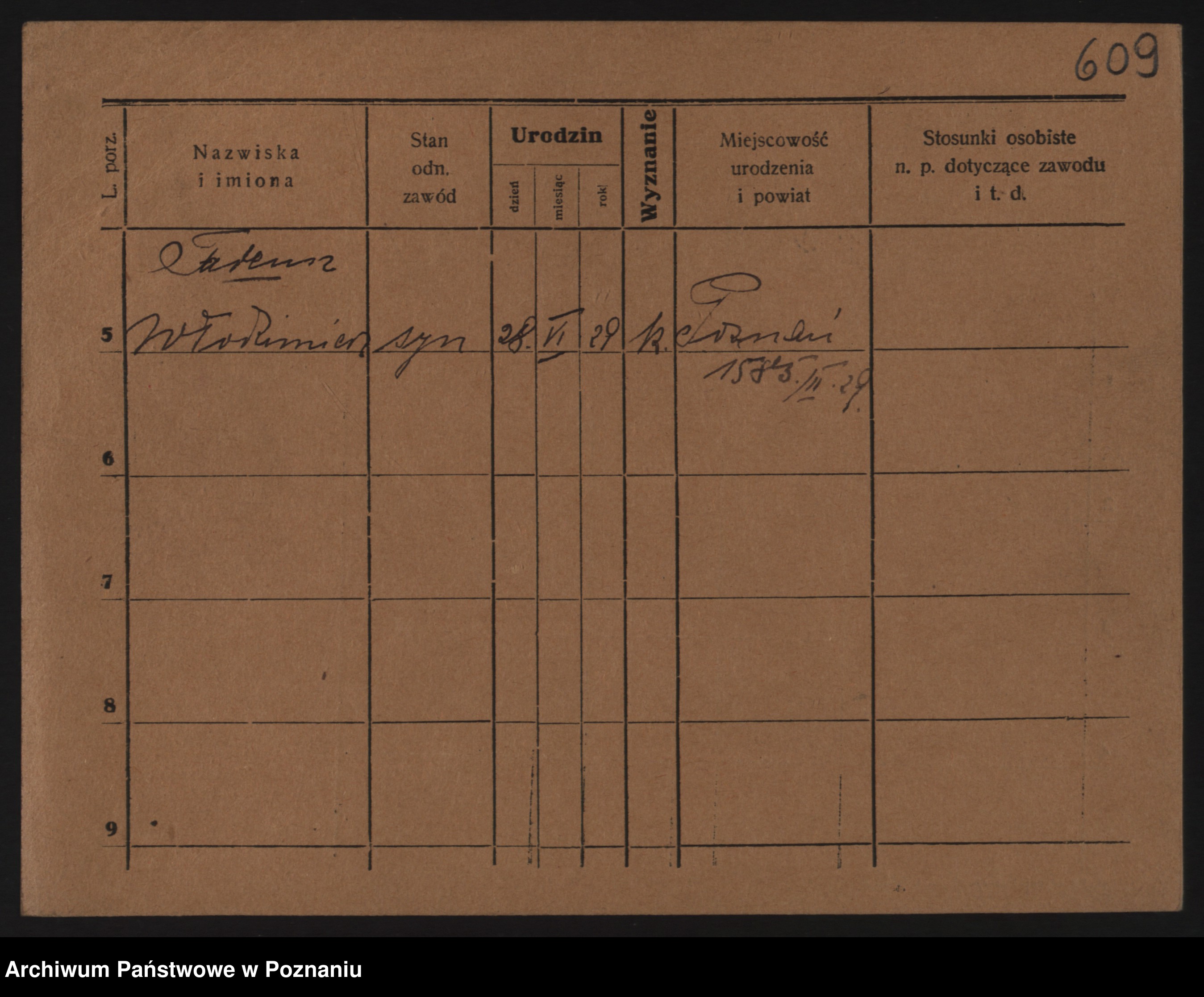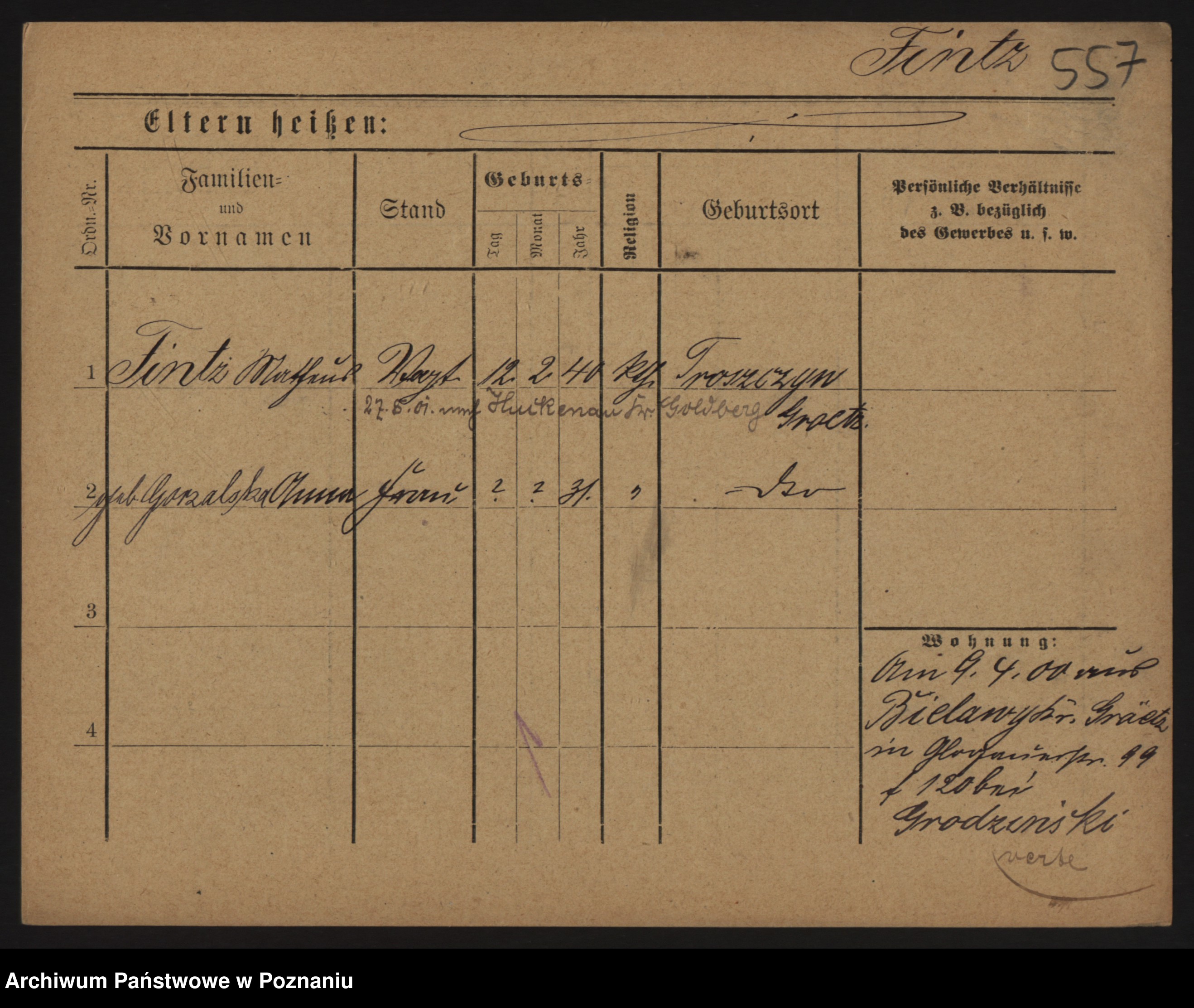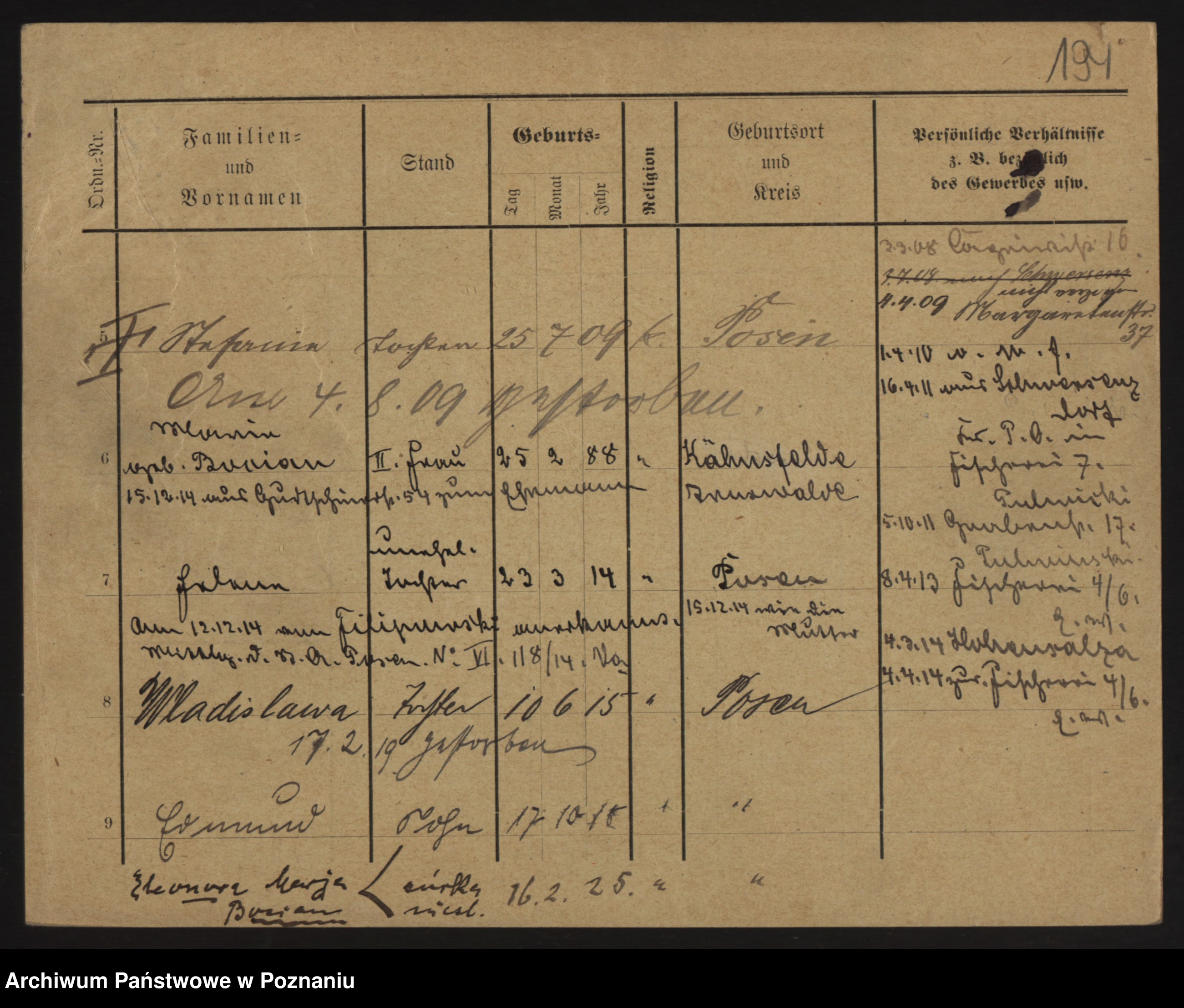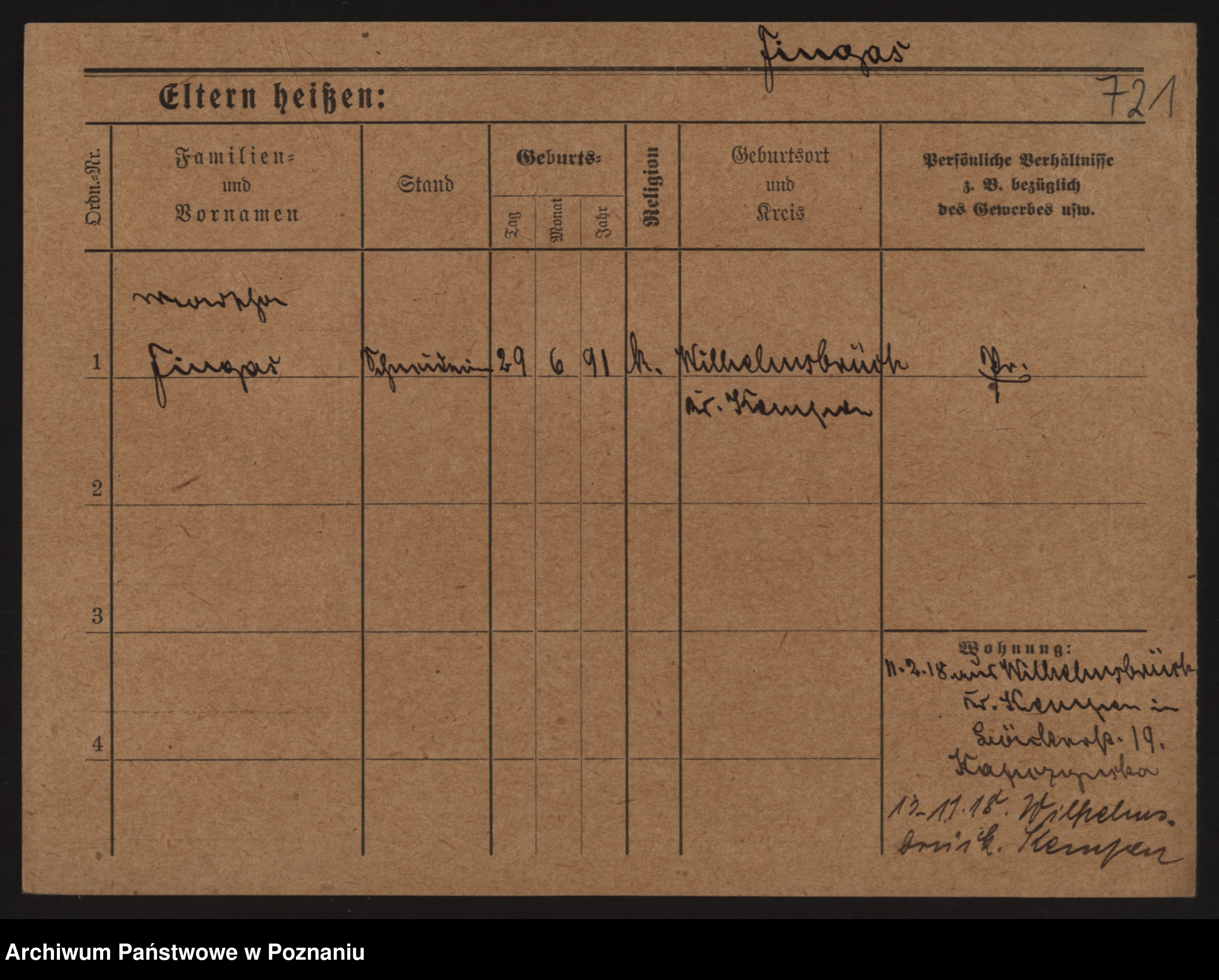 Podgląd karty osobowej dostępny jest po kliknięciu na nazwisko lub ikonkę karty. Można dokonywać powiększenia (ikony na górze) lub przechodzić między kolejnymi skanami (strzałki po bokach).