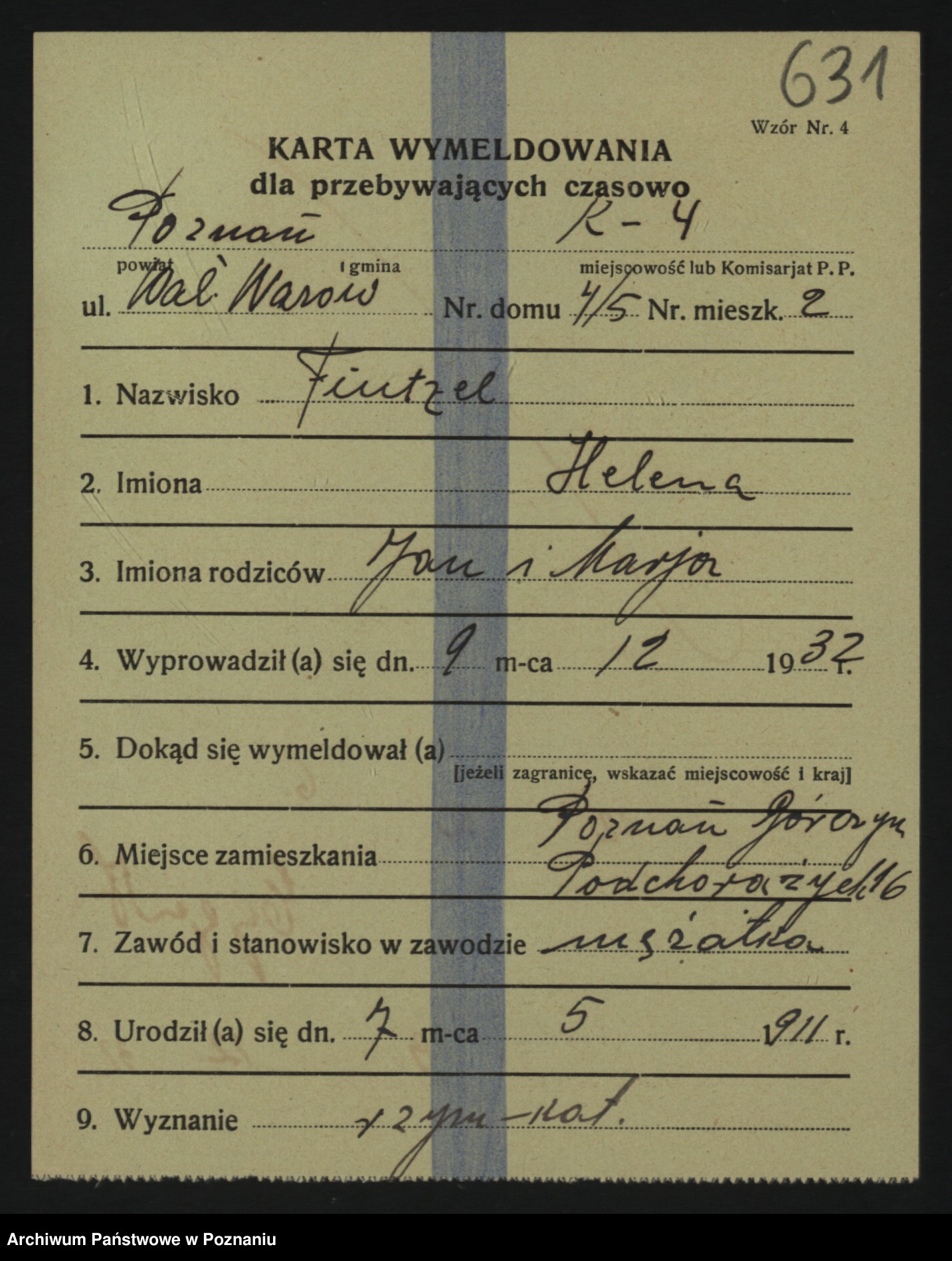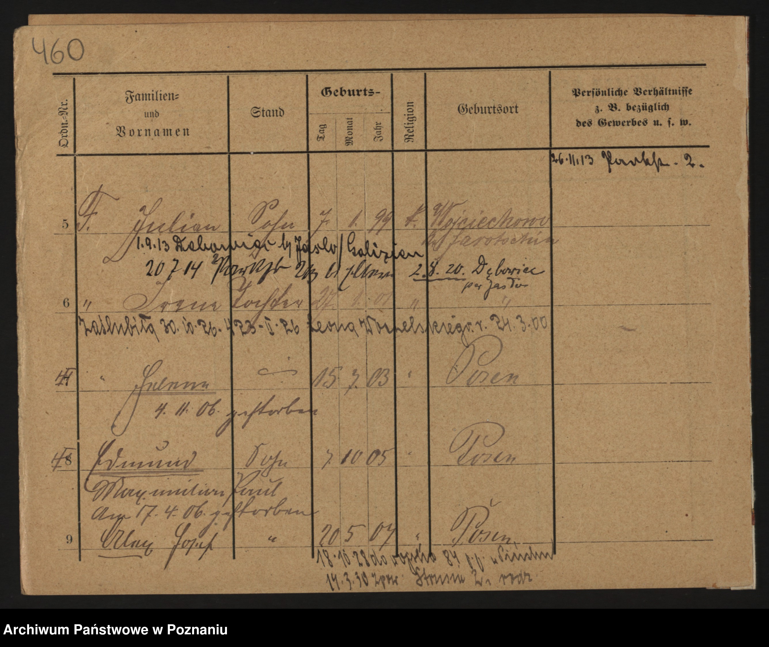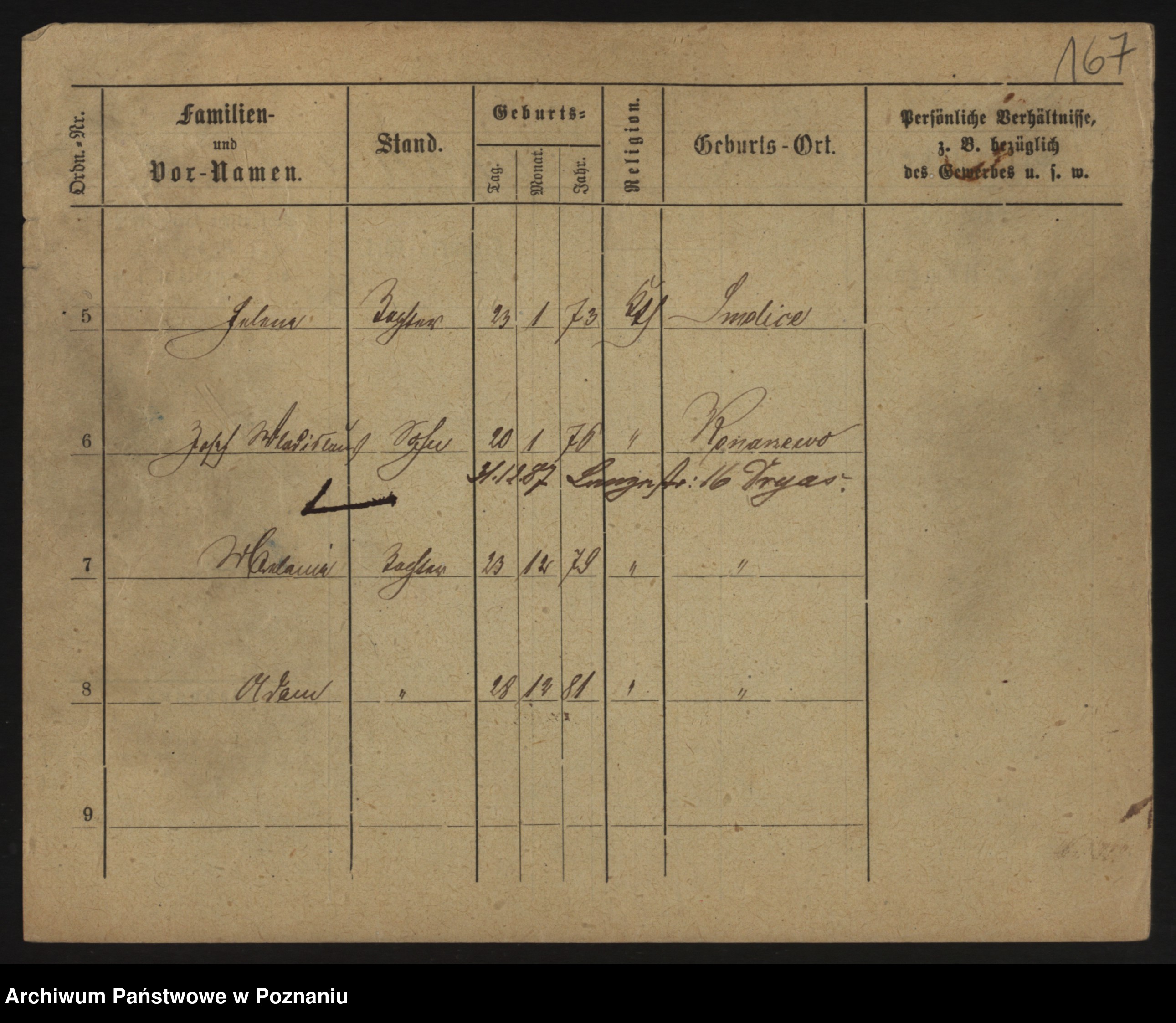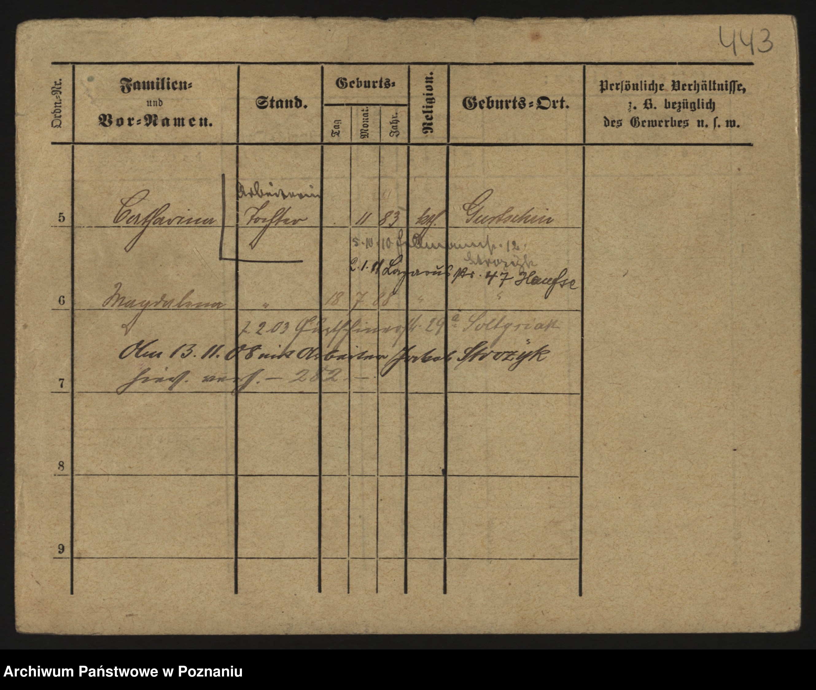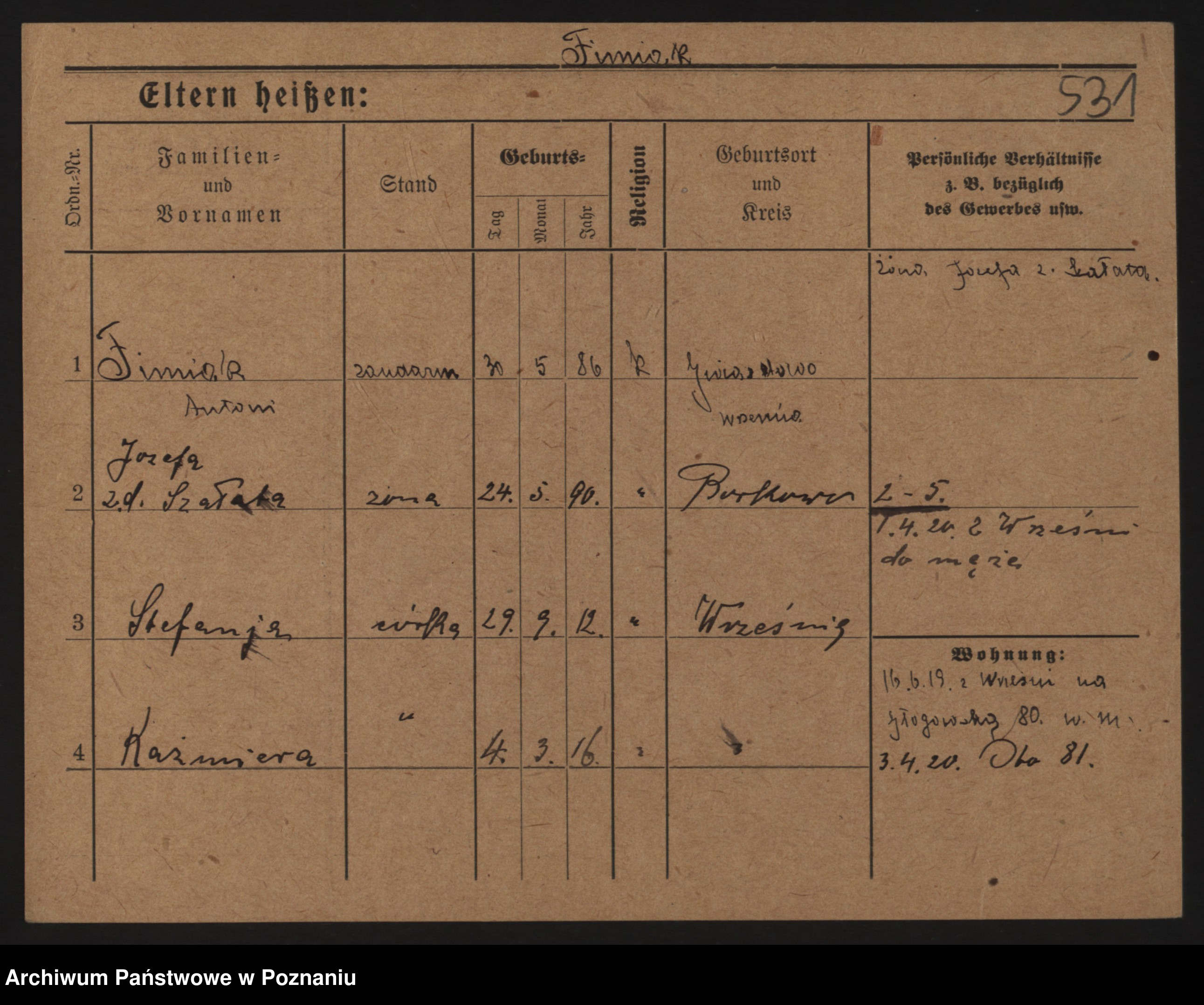 Podgląd karty osobowej dostępny jest po kliknięciu na nazwisko lub ikonkę karty. Można dokonywać powiększenia (ikony na górze) lub przechodzić między kolejnymi skanami (strzałki po bokach).