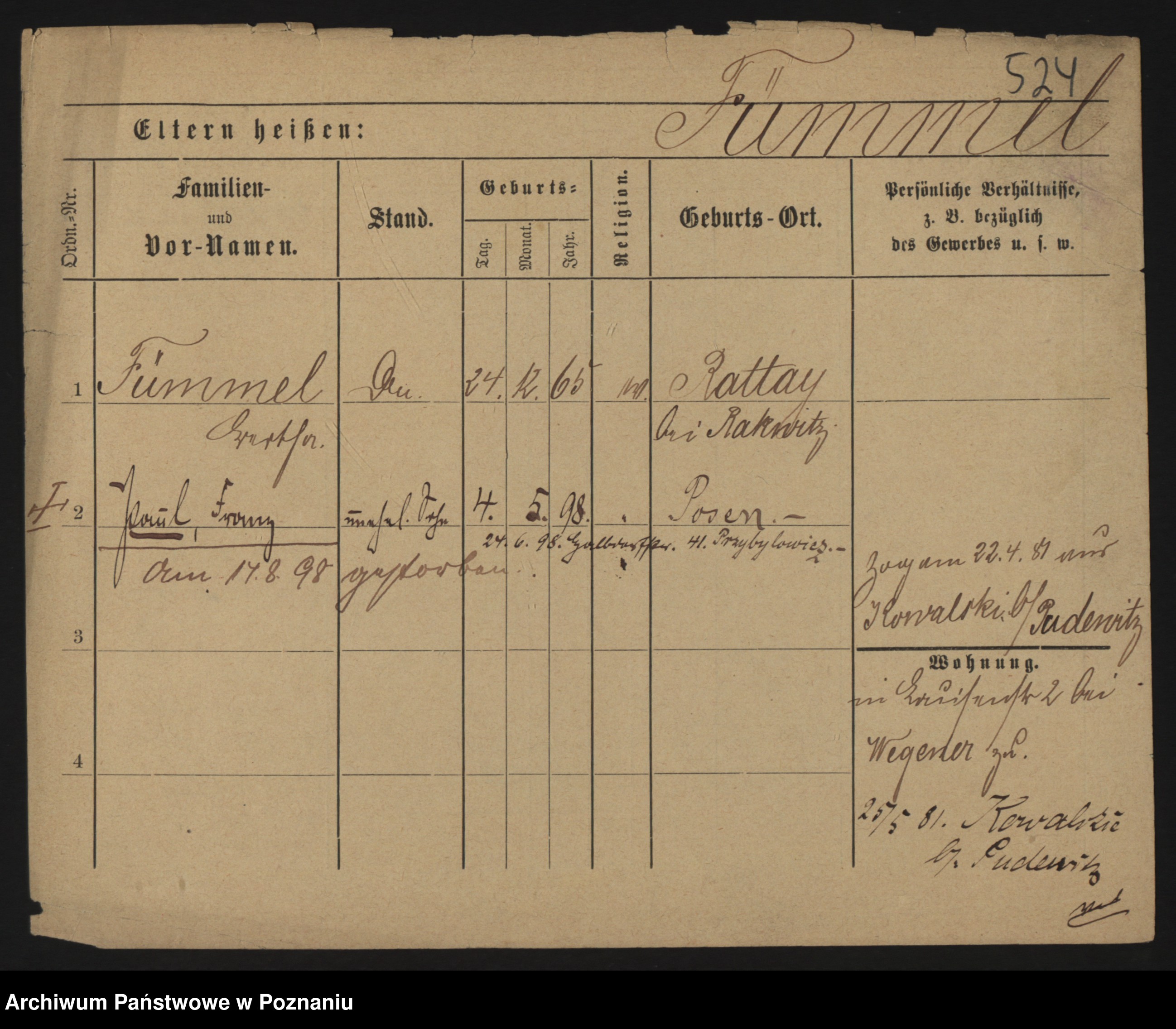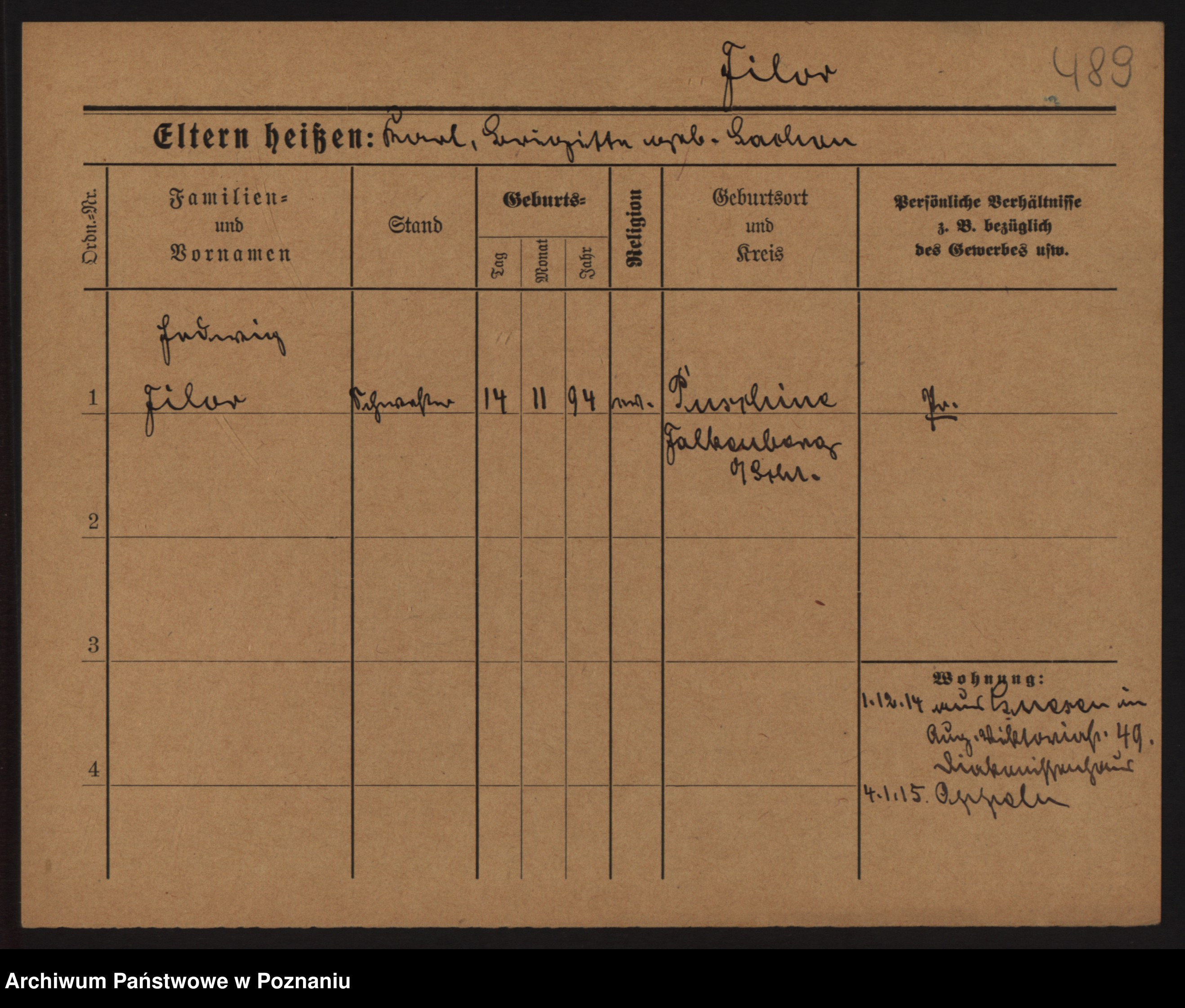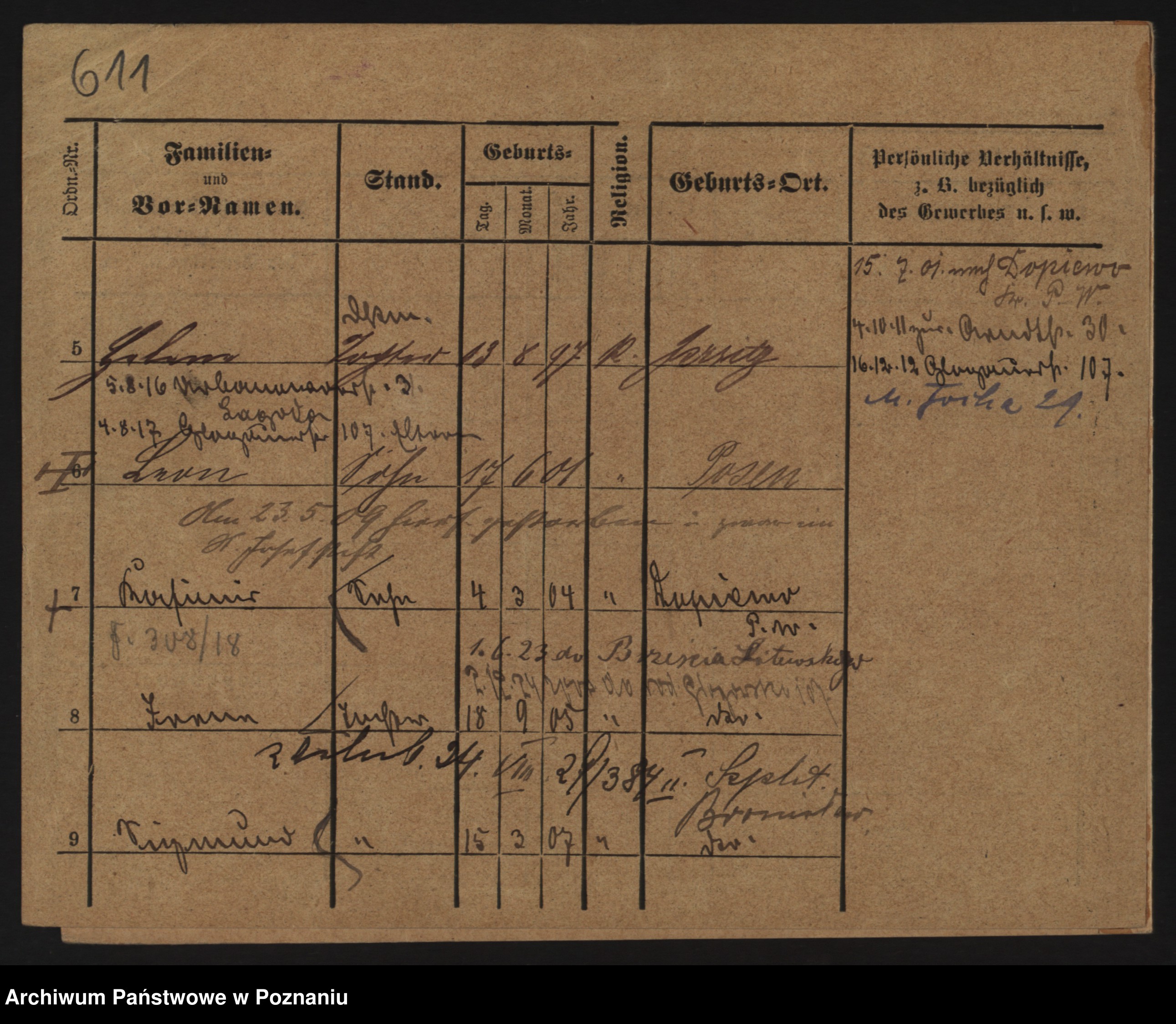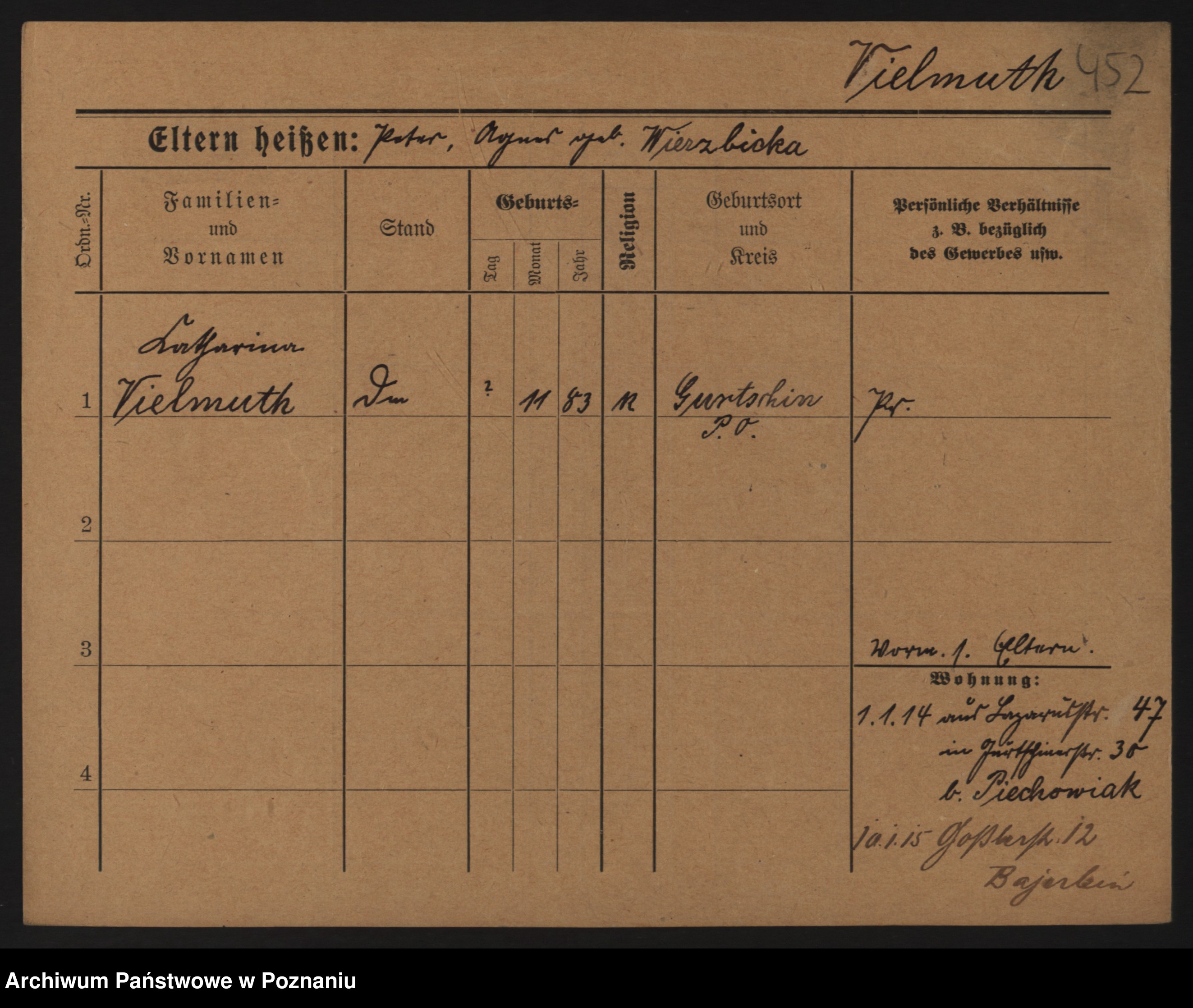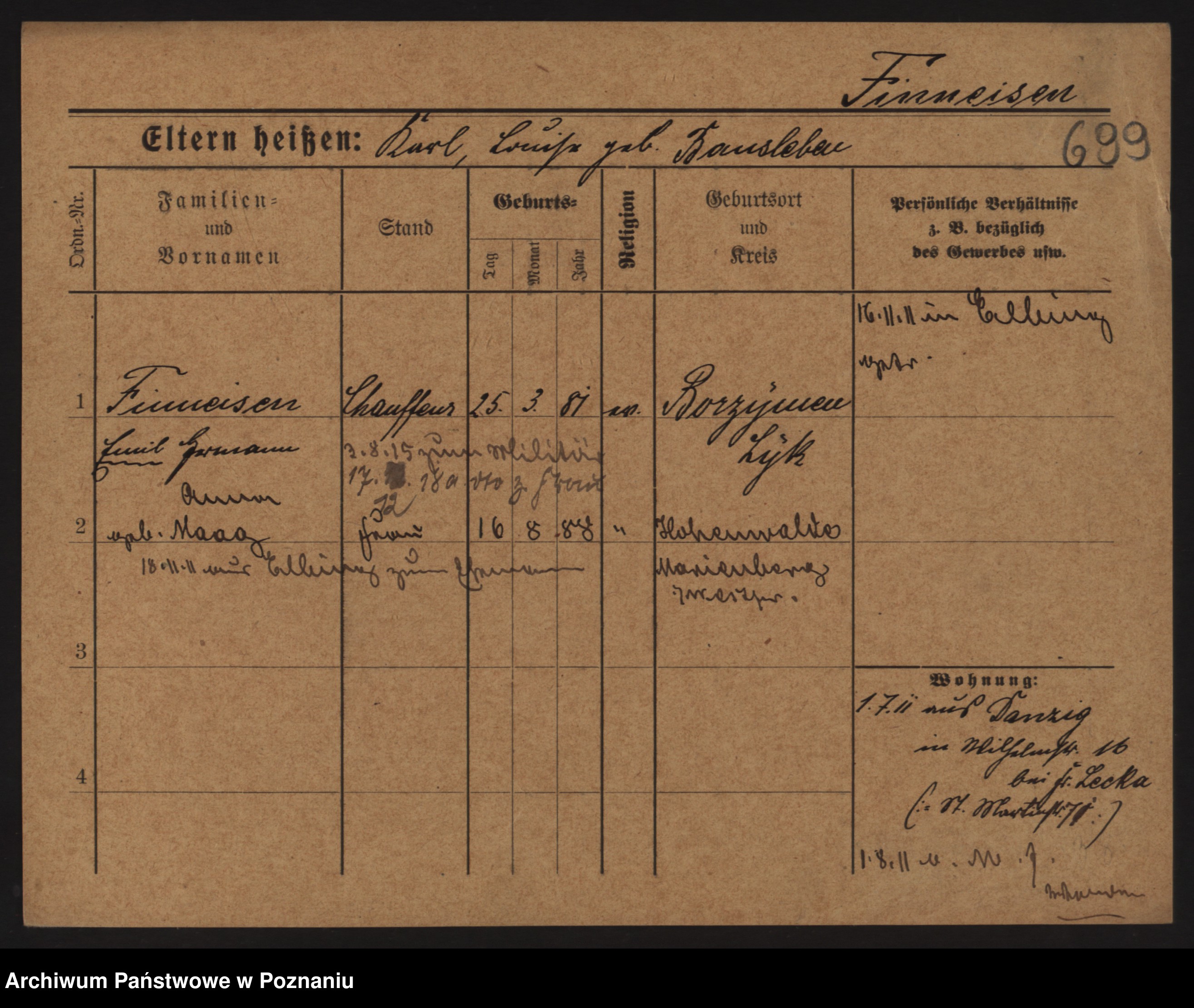 Podgląd karty osobowej dostępny jest po kliknięciu na nazwisko lub ikonkę karty. Można dokonywać powiększenia (ikony na górze) lub przechodzić między kolejnymi skanami (strzałki po bokach).