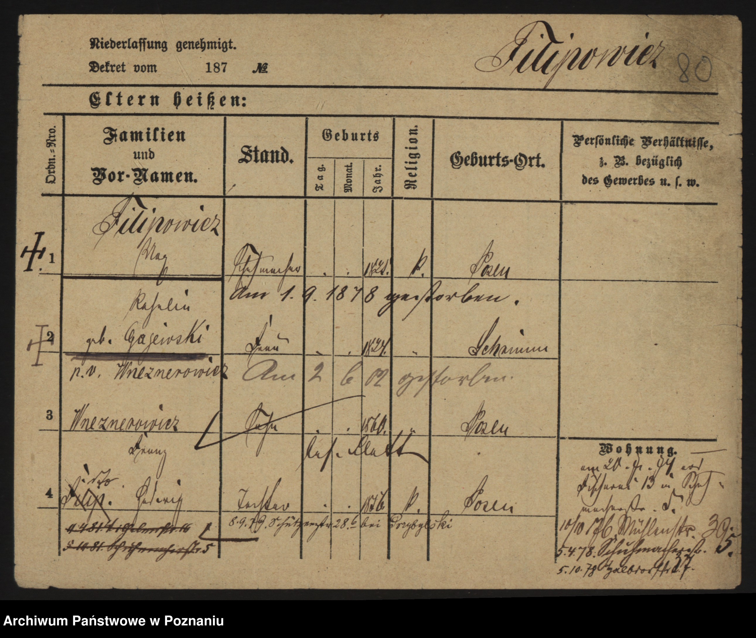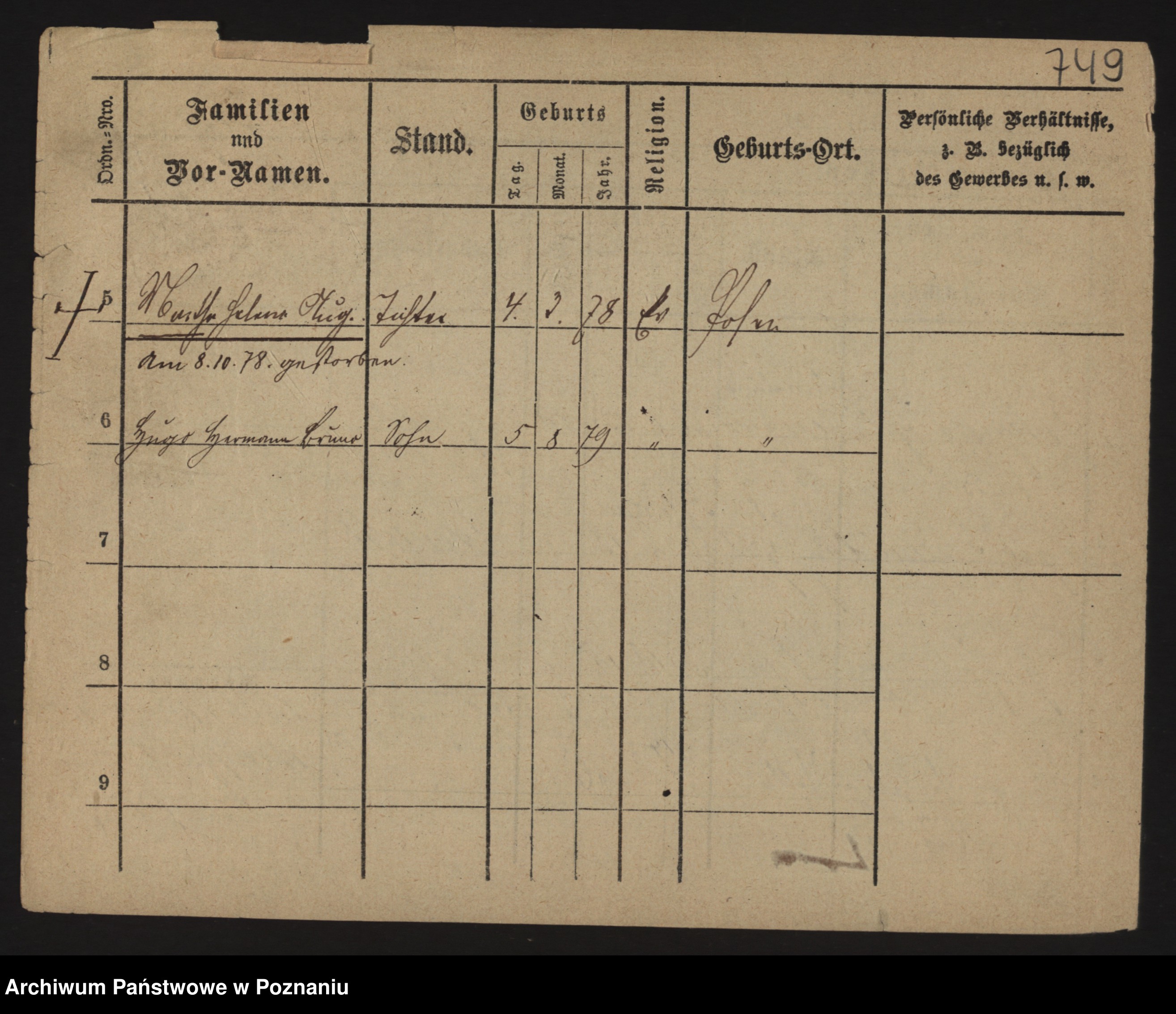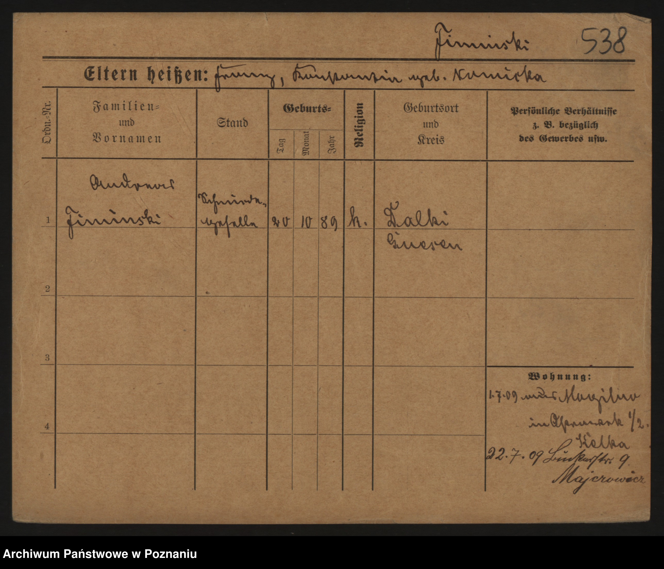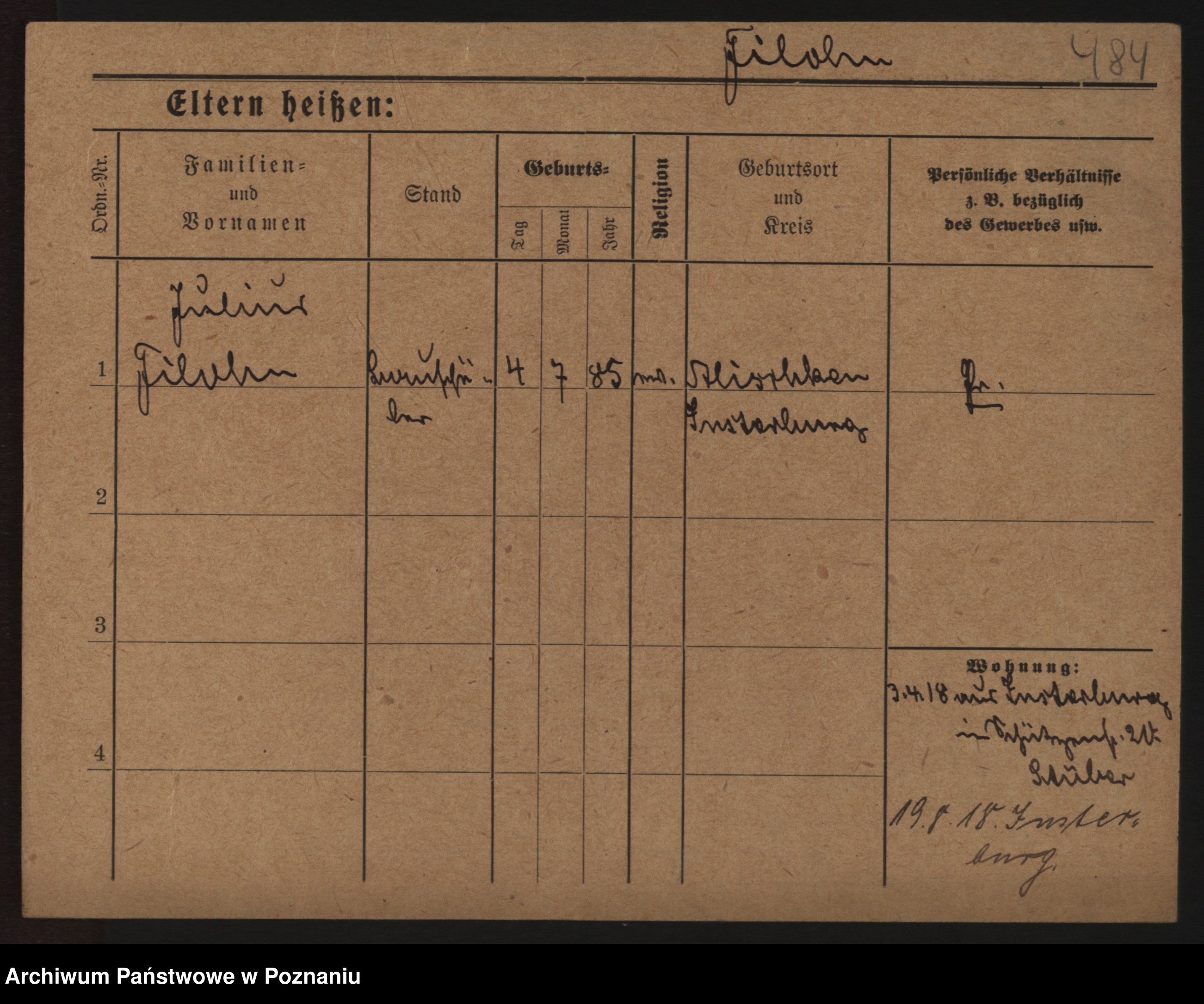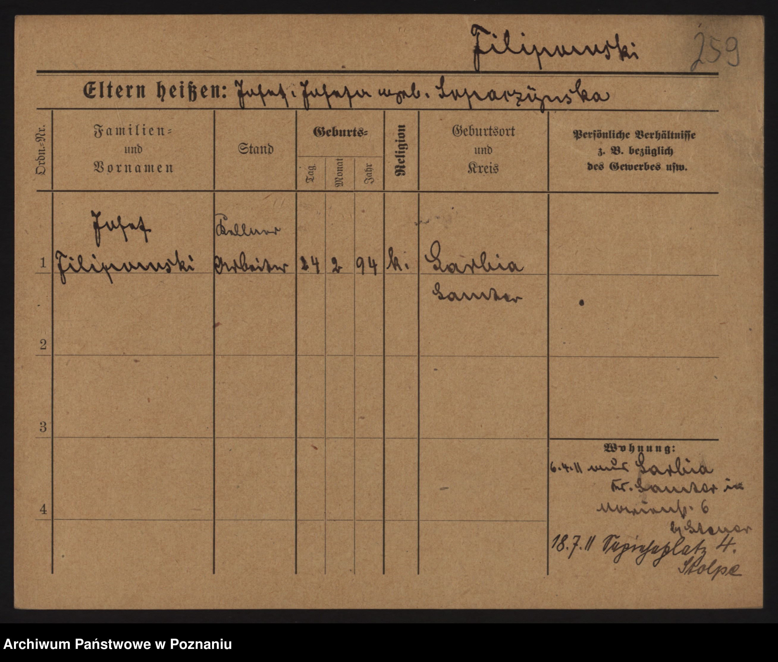 Podgląd karty osobowej dostępny jest po kliknięciu na nazwisko lub ikonkę karty. Można dokonywać powiększenia (ikony na górze) lub przechodzić między kolejnymi skanami (strzałki po bokach).