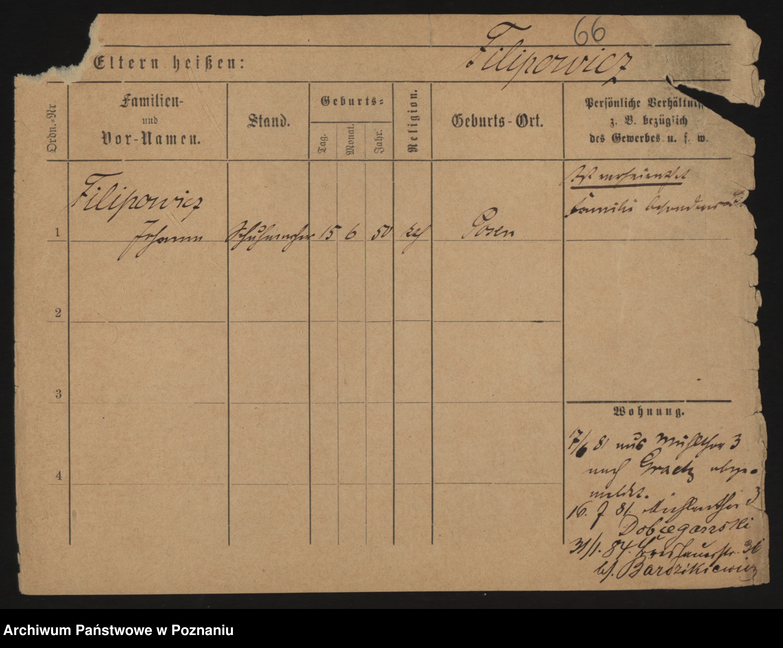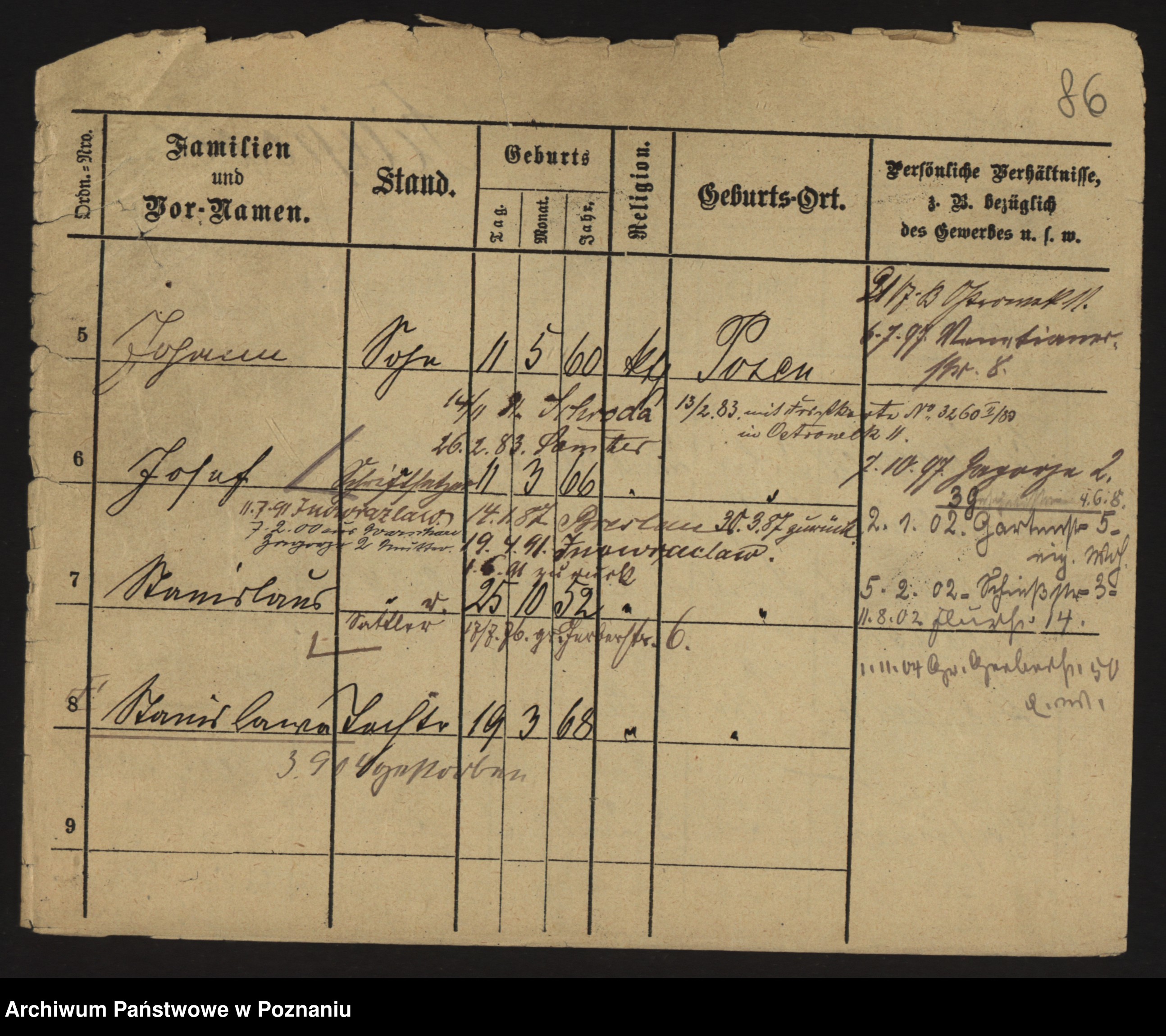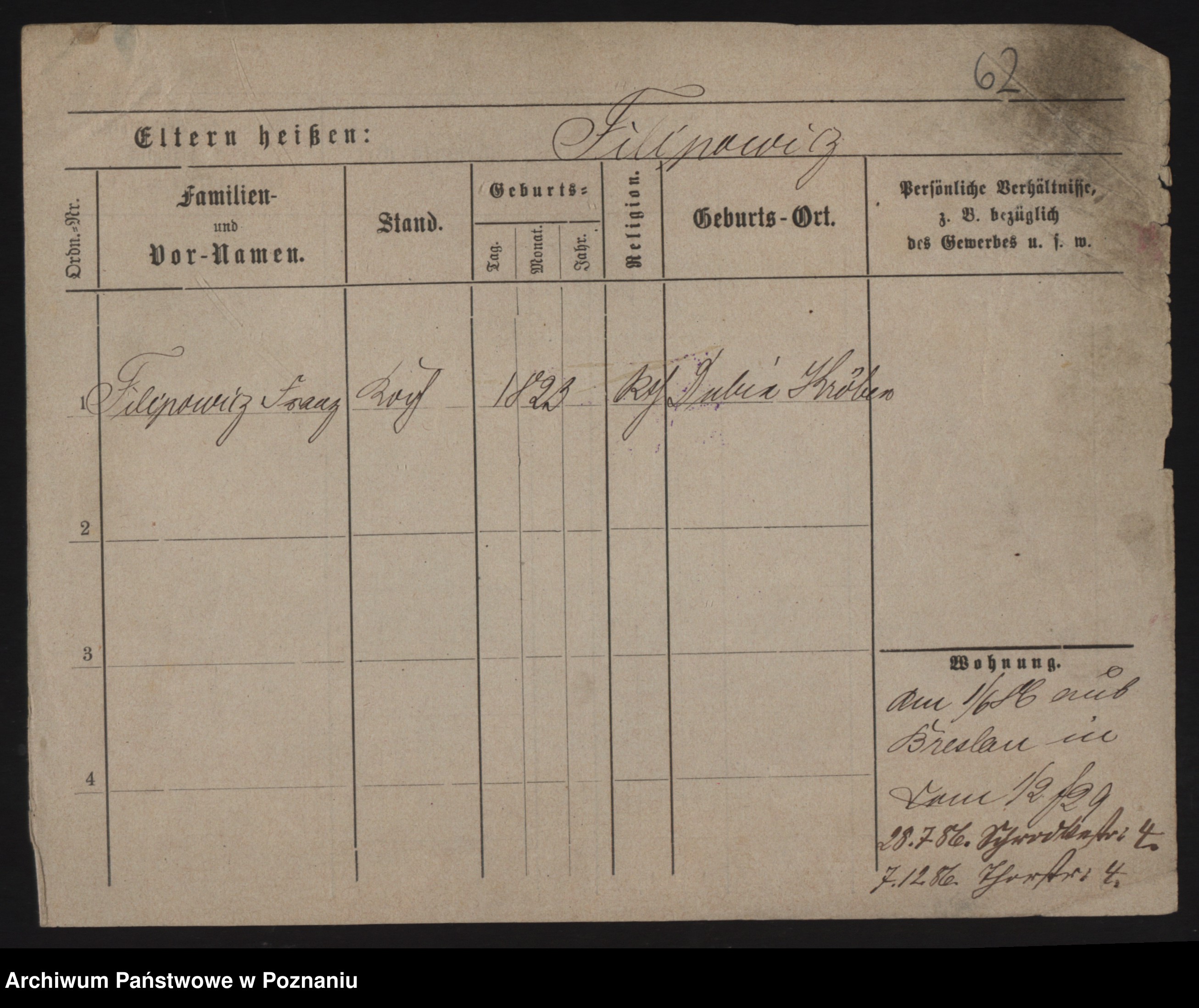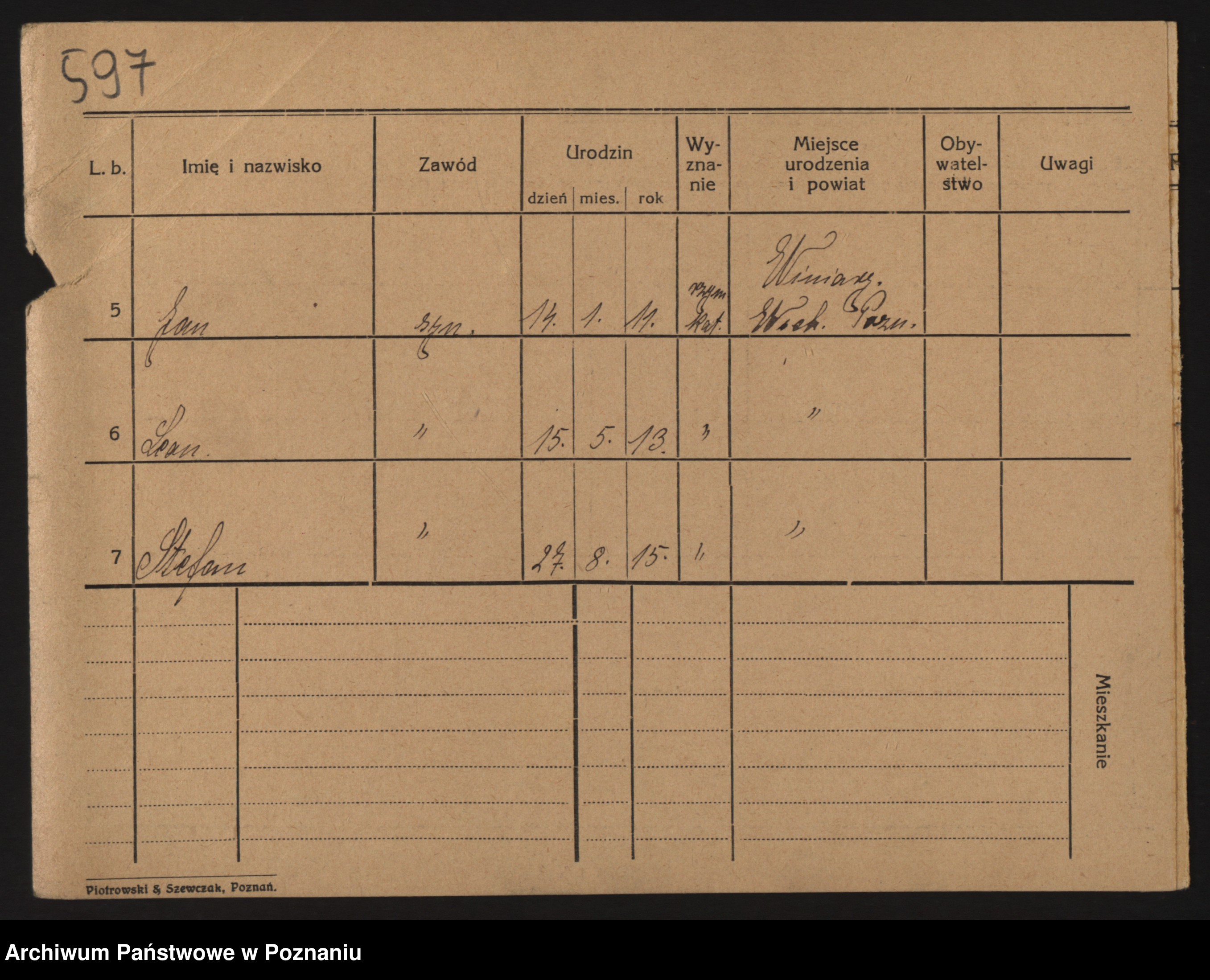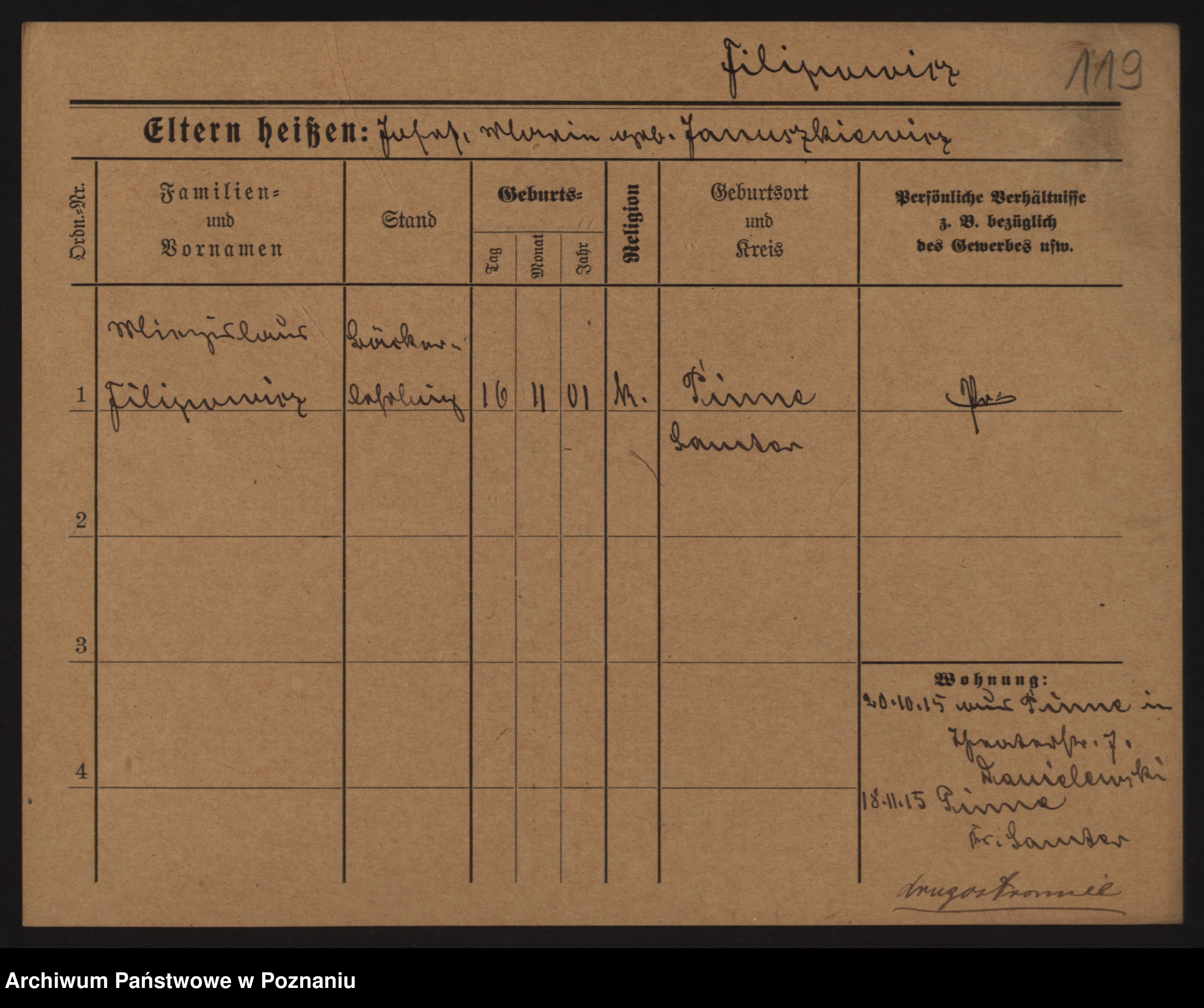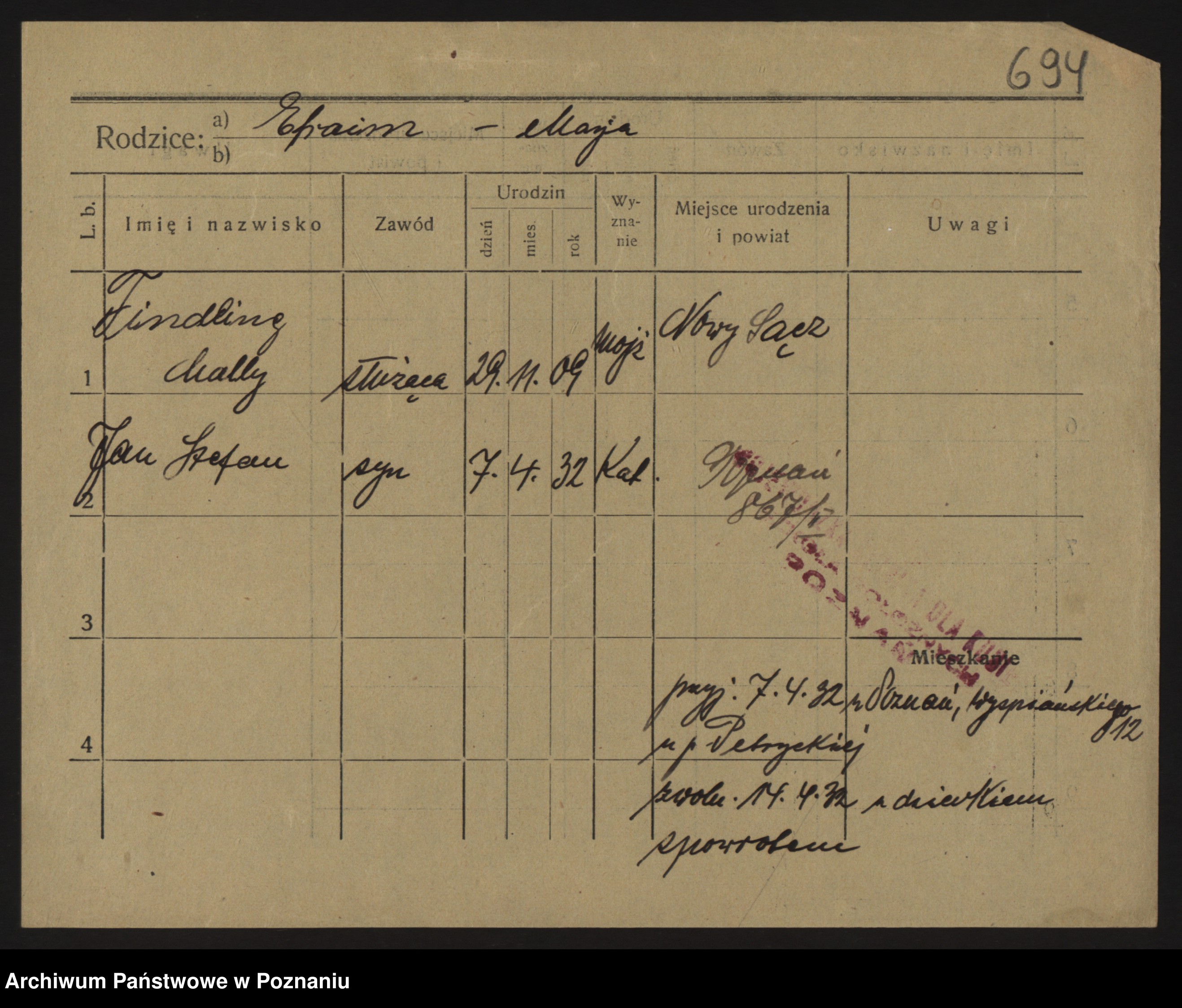 Podgląd karty osobowej dostępny jest po kliknięciu na nazwisko lub ikonkę karty. Można dokonywać powiększenia (ikony na górze) lub przechodzić między kolejnymi skanami (strzałki po bokach).