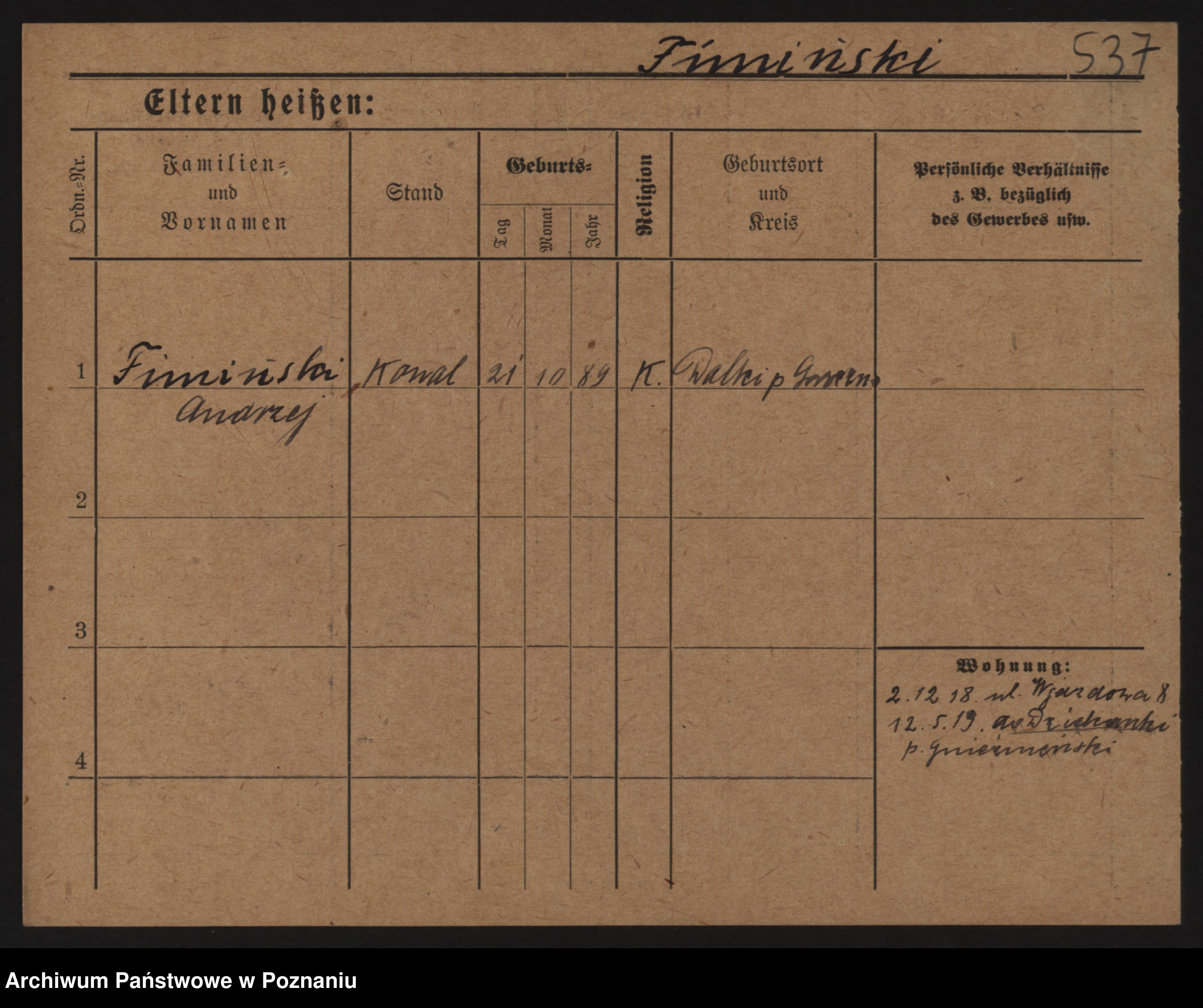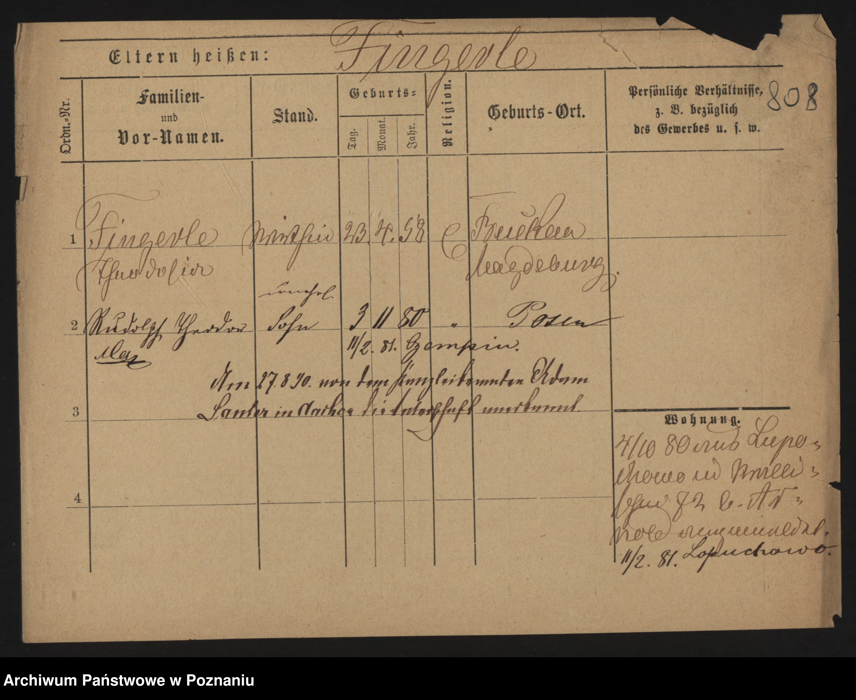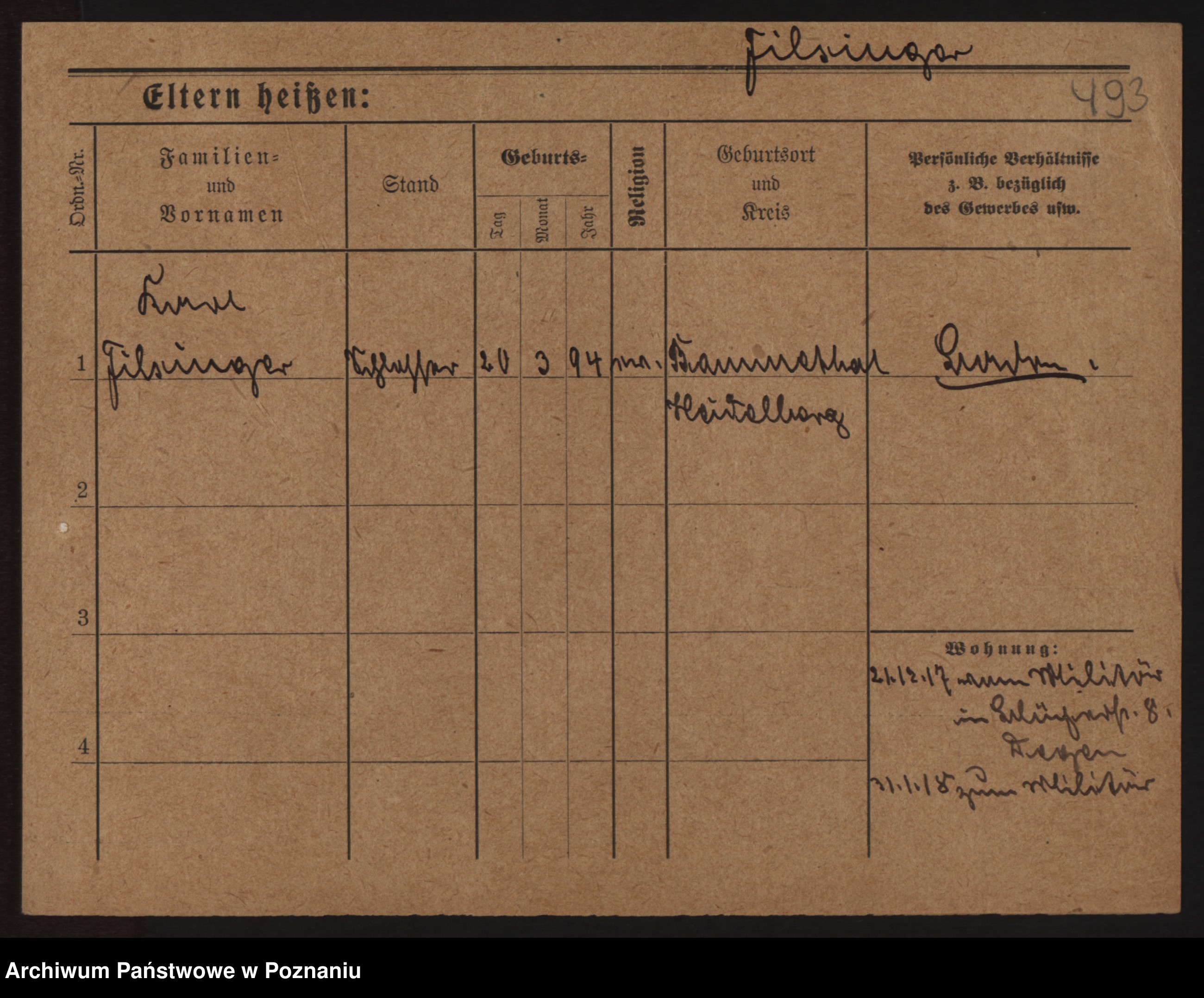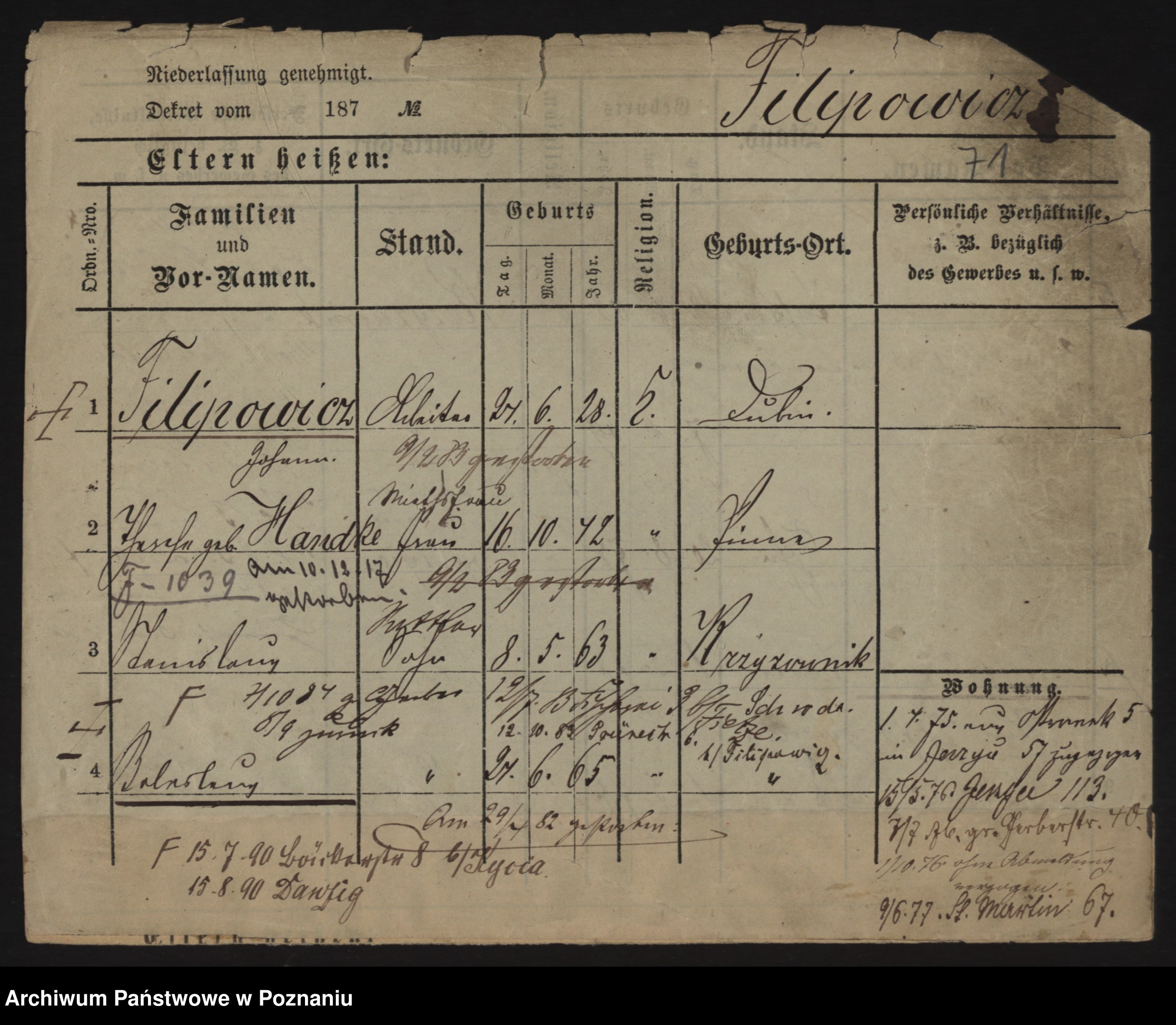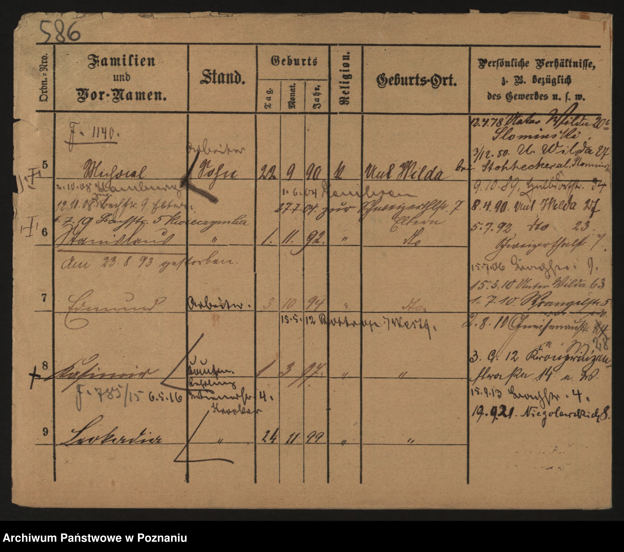 Podgląd karty osobowej dostępny jest po kliknięciu na nazwisko lub ikonkę karty. Można dokonywać powiększenia (ikony na górze) lub przechodzić między kolejnymi skanami (strzałki po bokach).