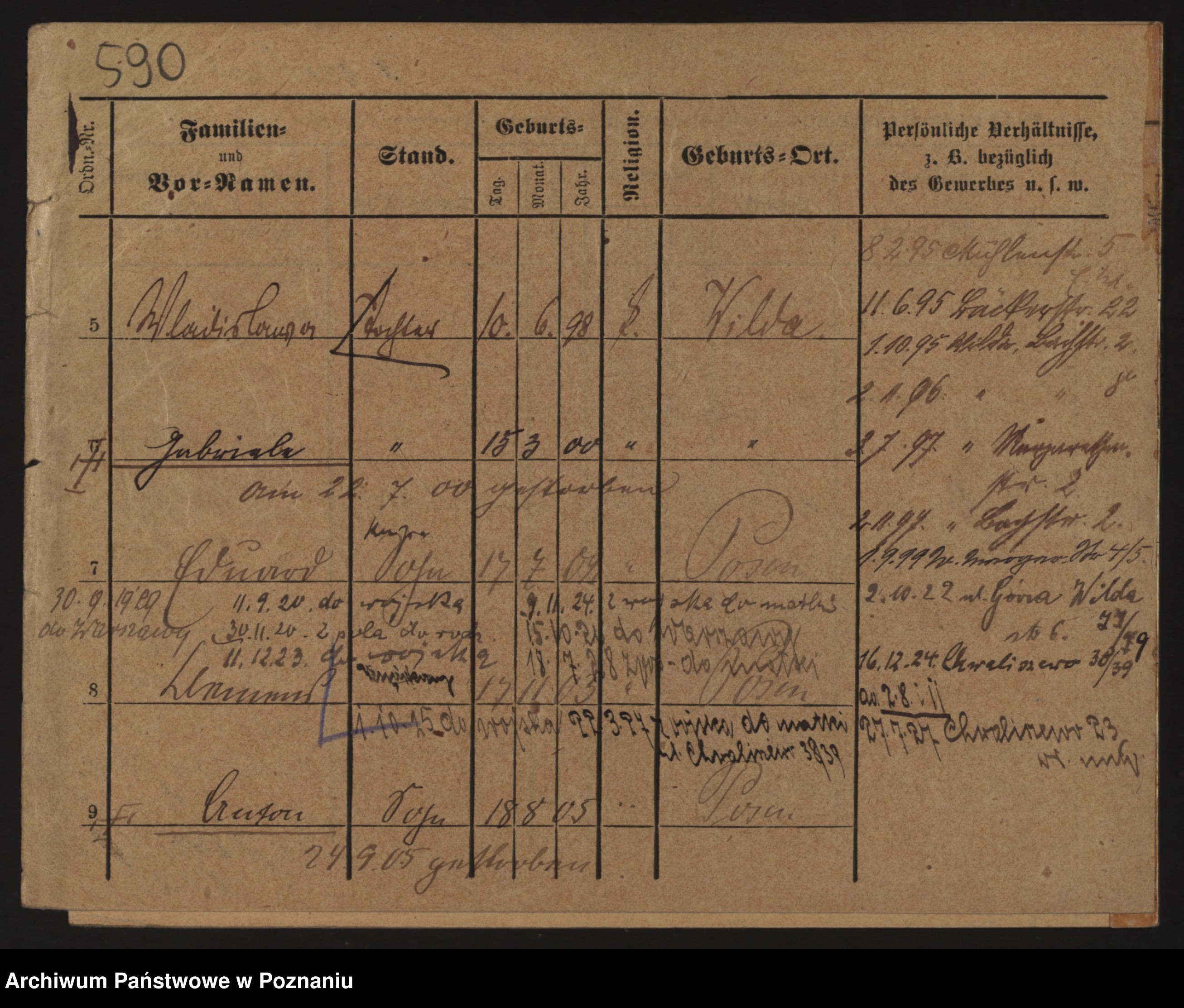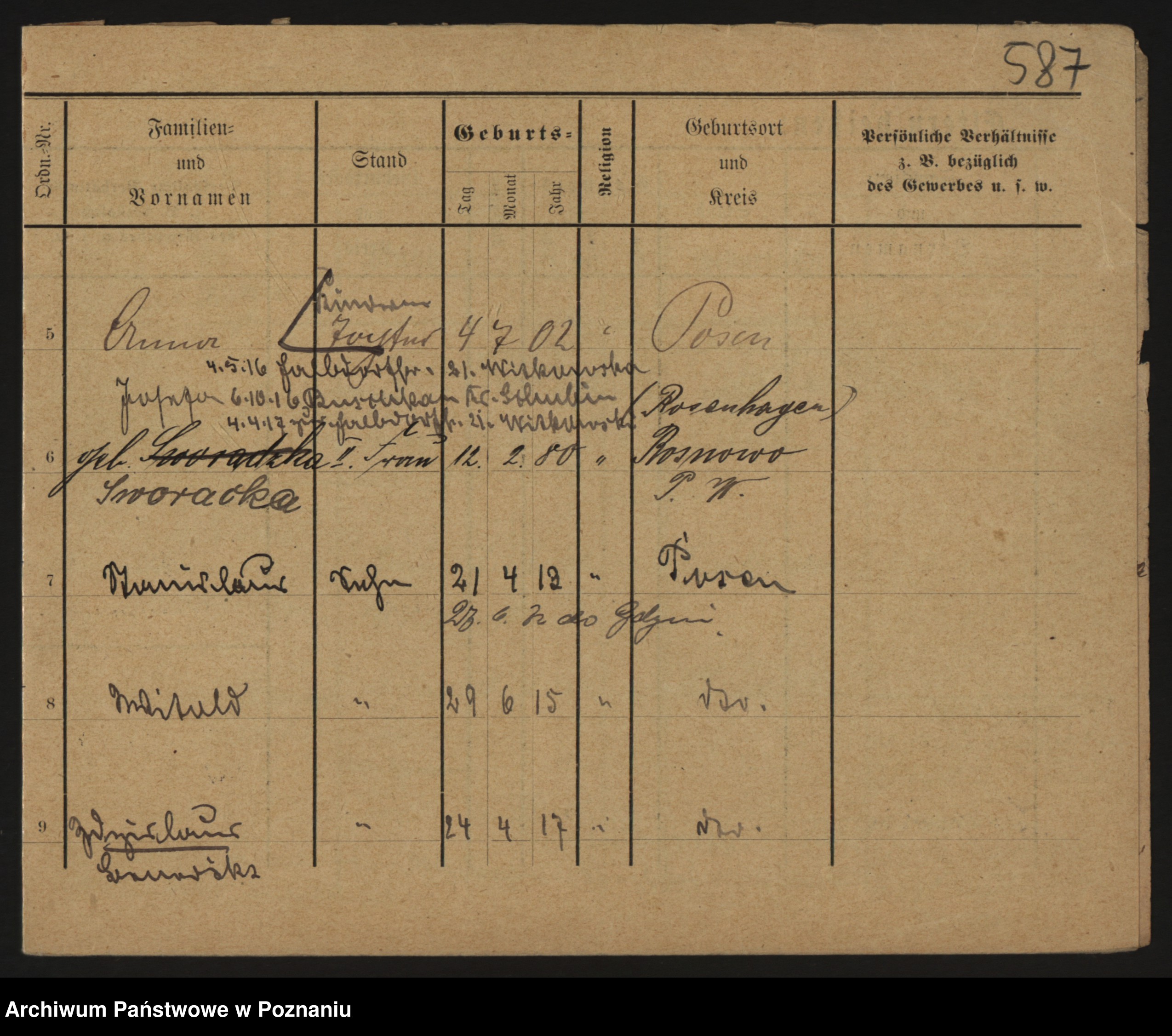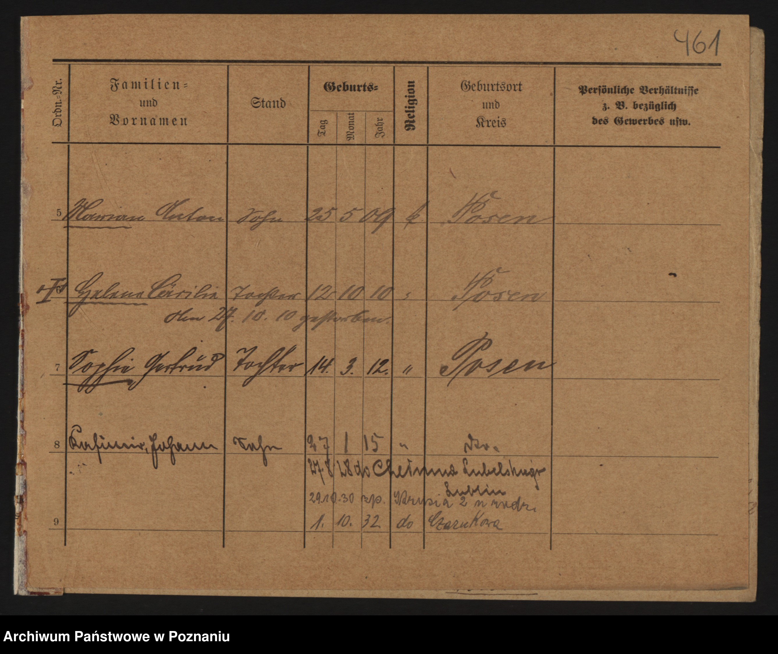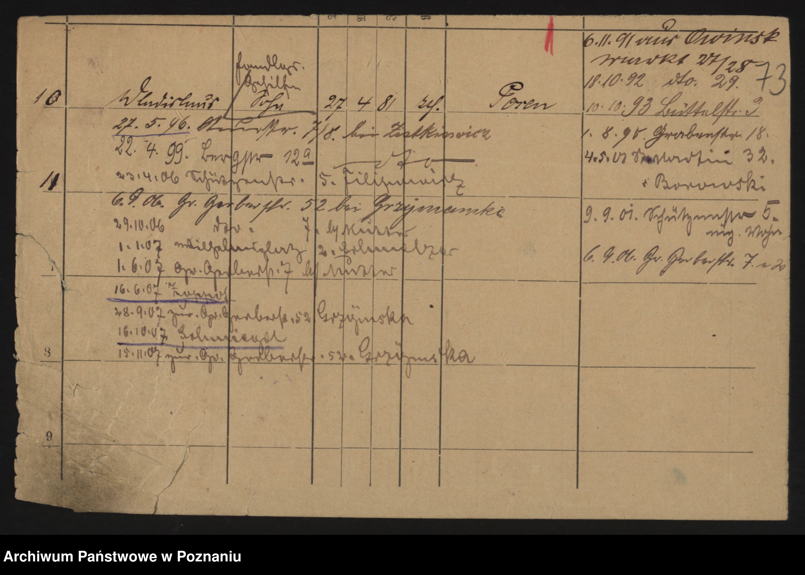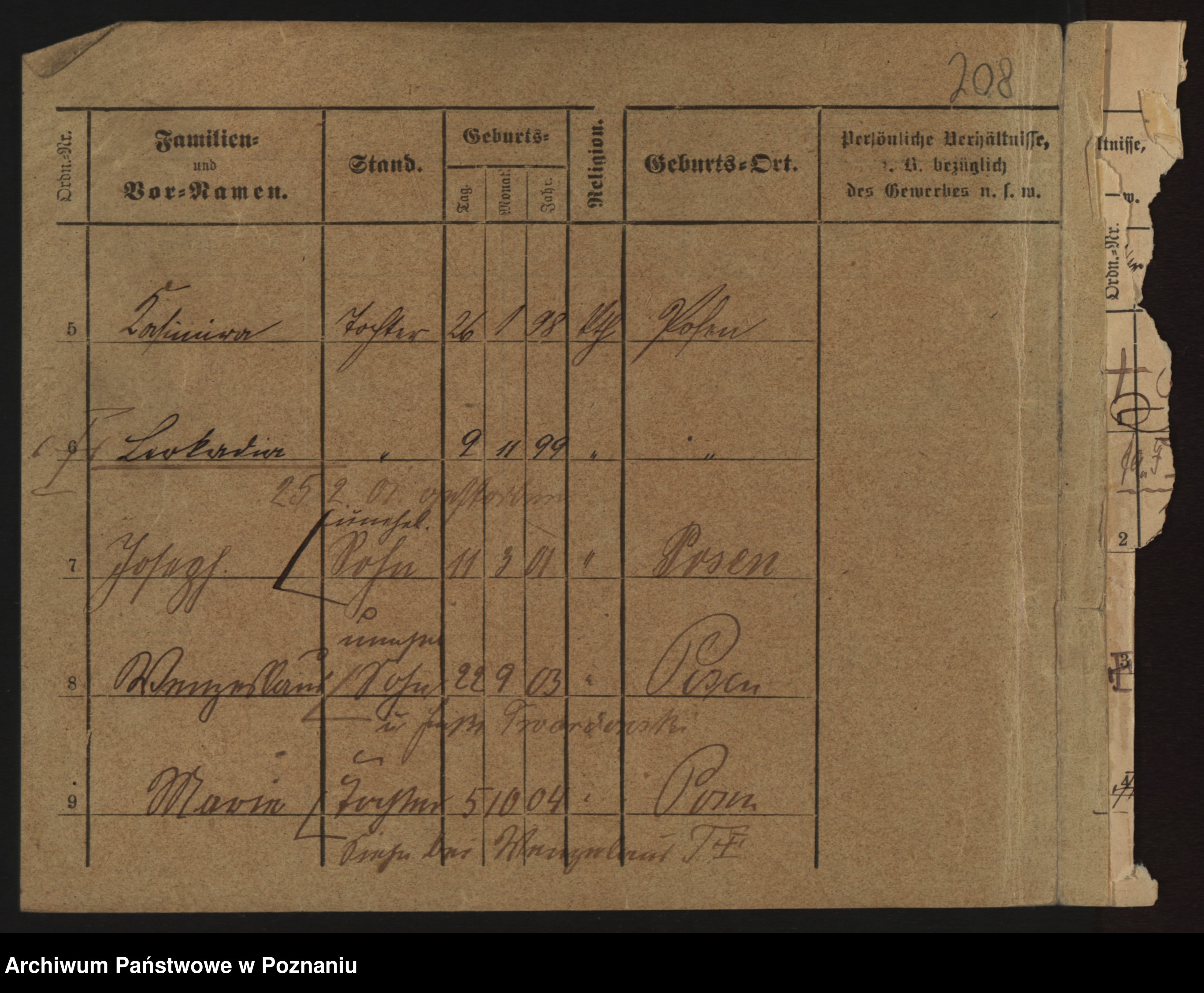 Podgląd karty osobowej dostępny jest po kliknięciu na nazwisko lub ikonkę karty. Można dokonywać powiększenia (ikony na górze) lub przechodzić między kolejnymi skanami (strzałki po bokach).