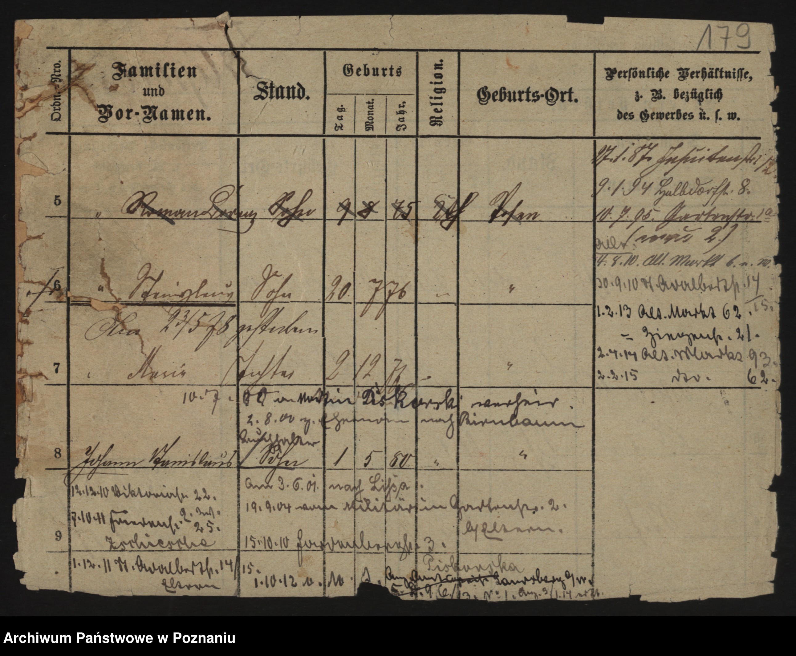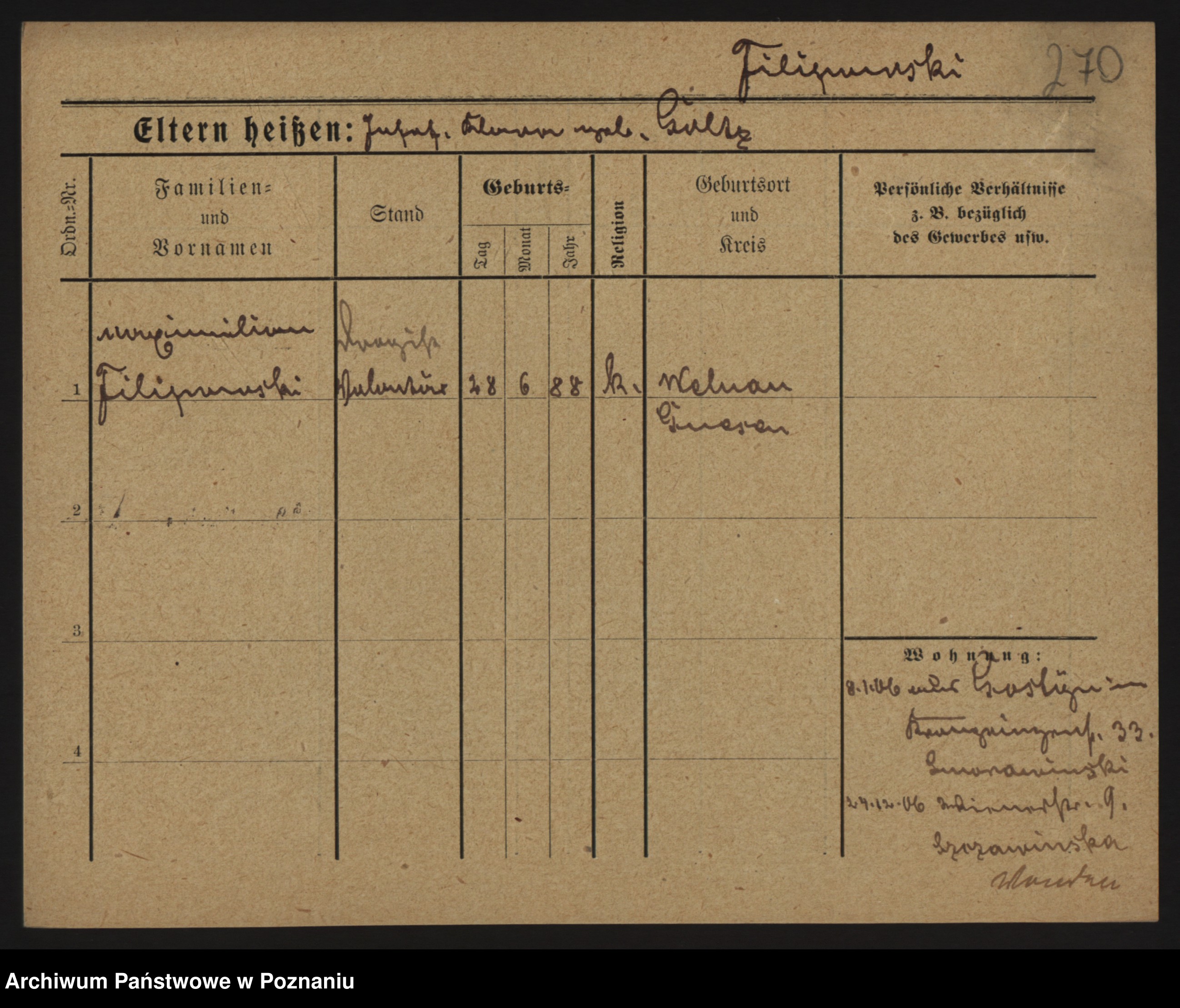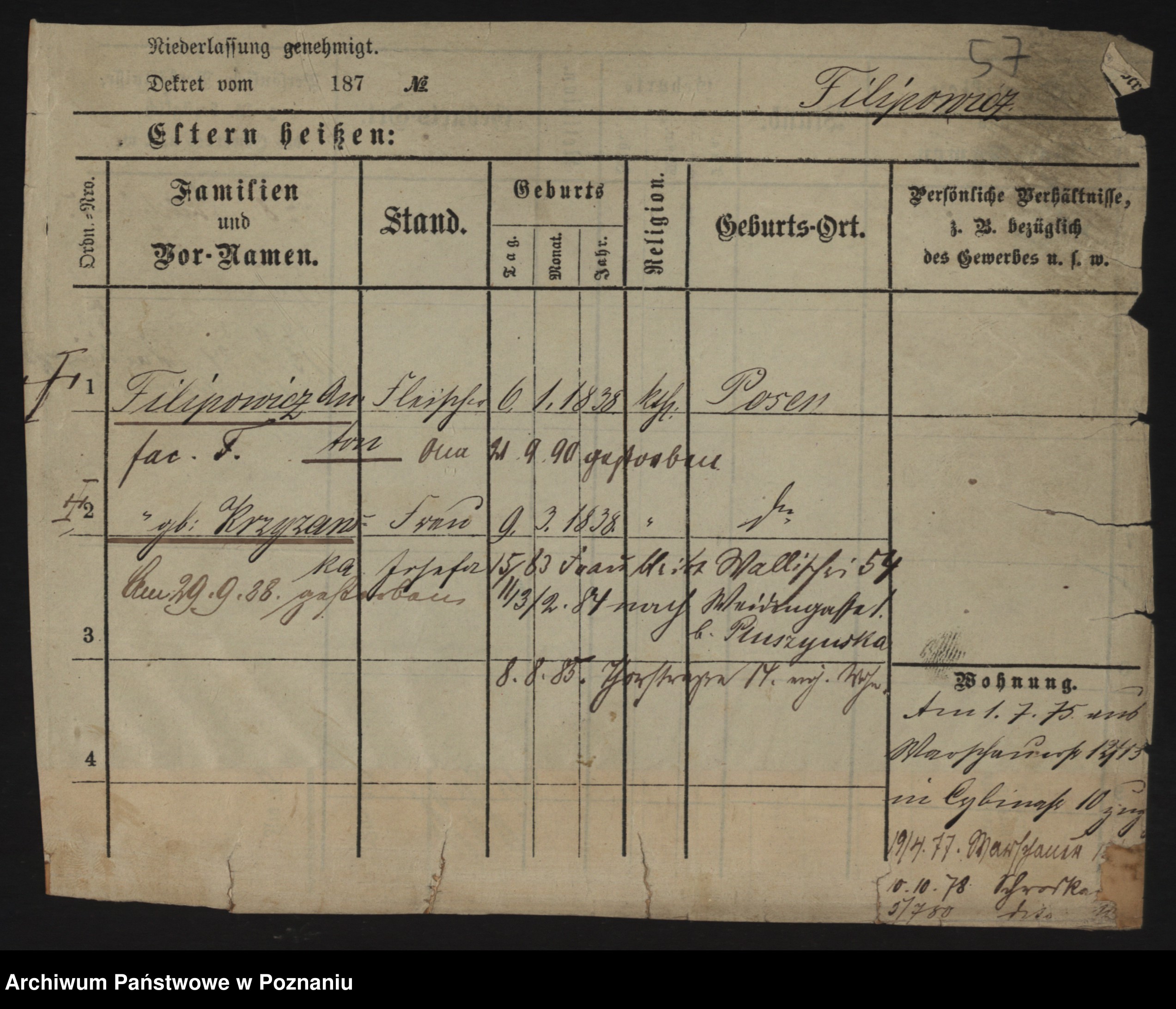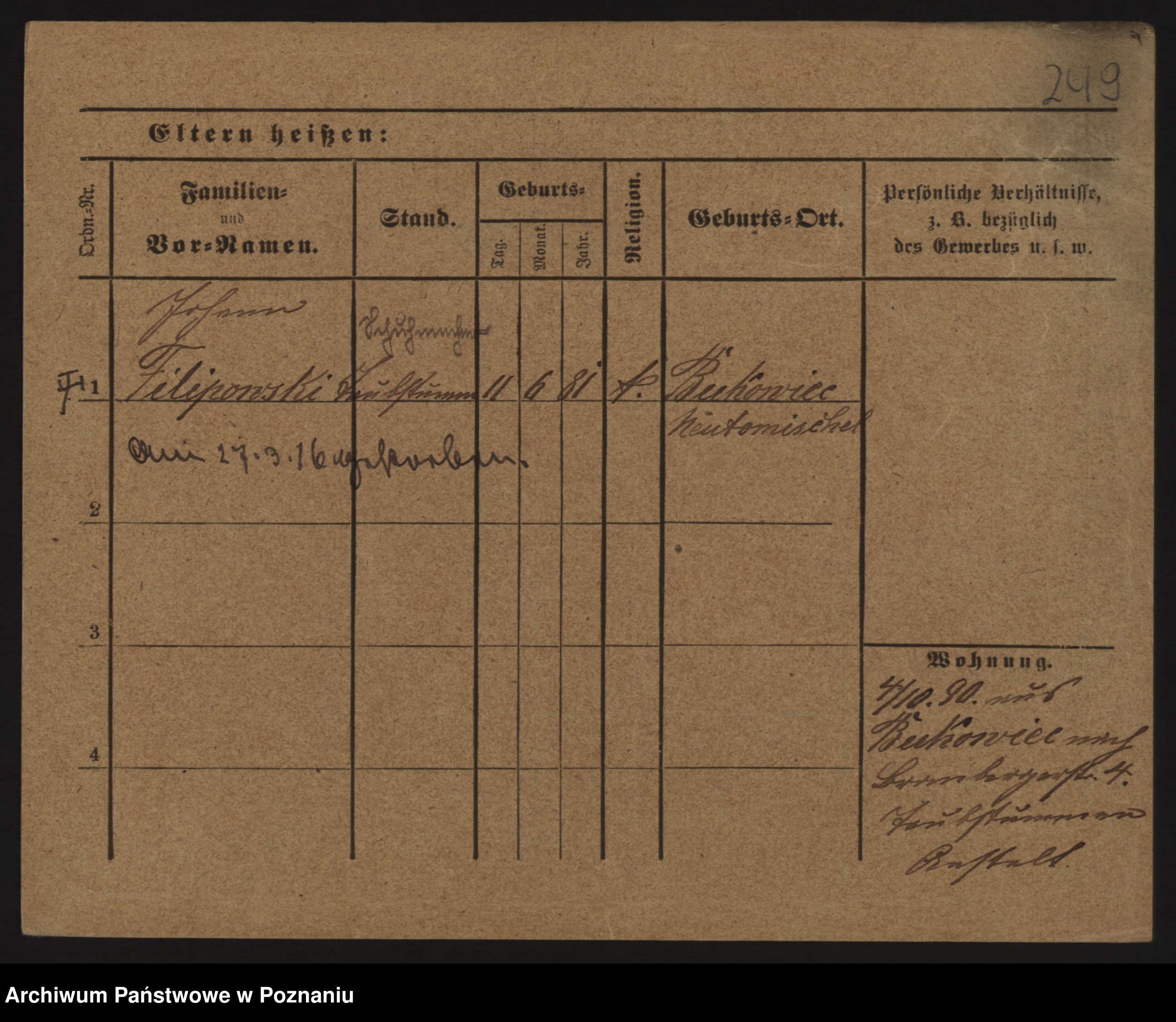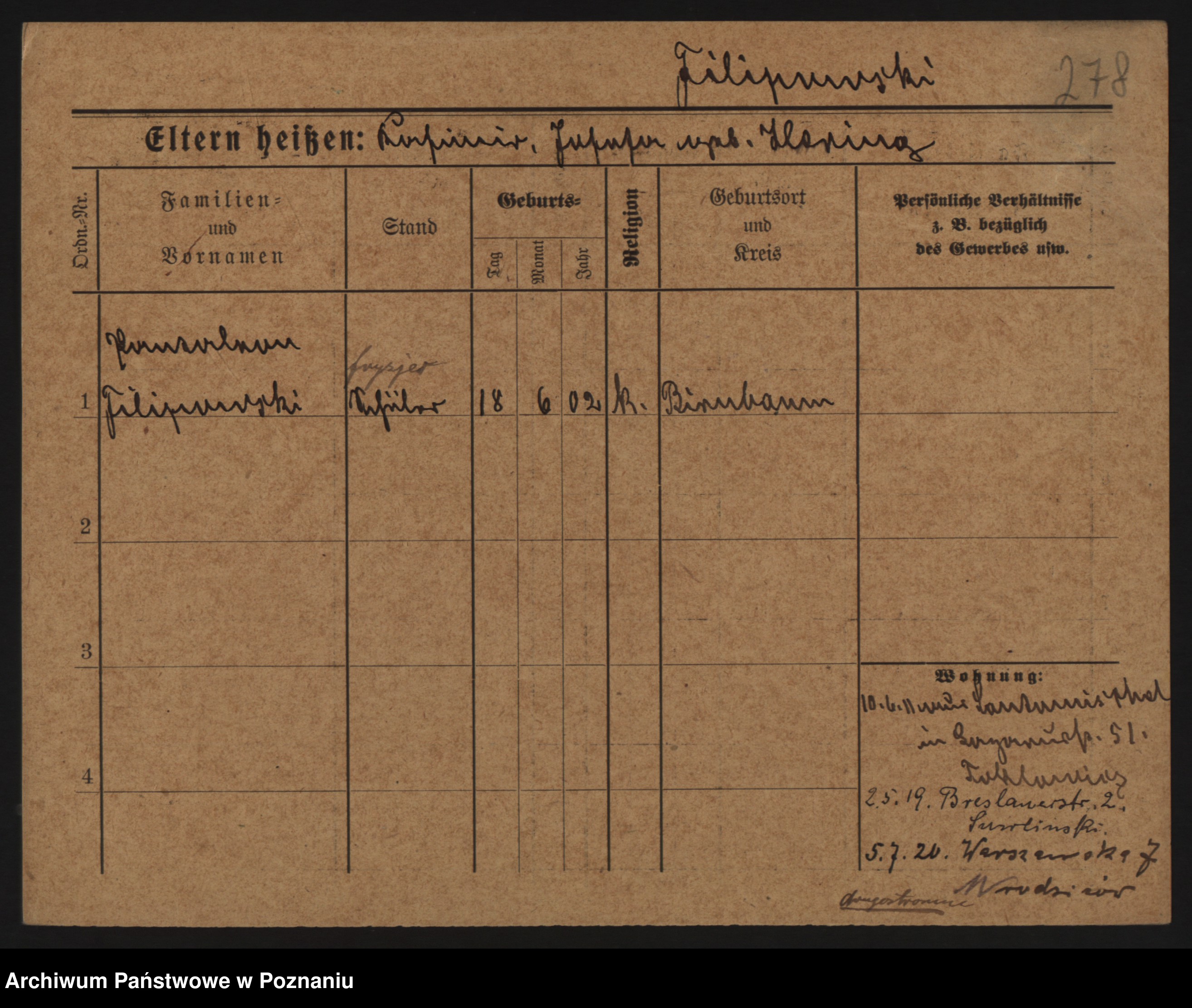 Podgląd karty osobowej dostępny jest po kliknięciu na nazwisko lub ikonkę karty. Można dokonywać powiększenia (ikony na górze) lub przechodzić między kolejnymi skanami (strzałki po bokach).