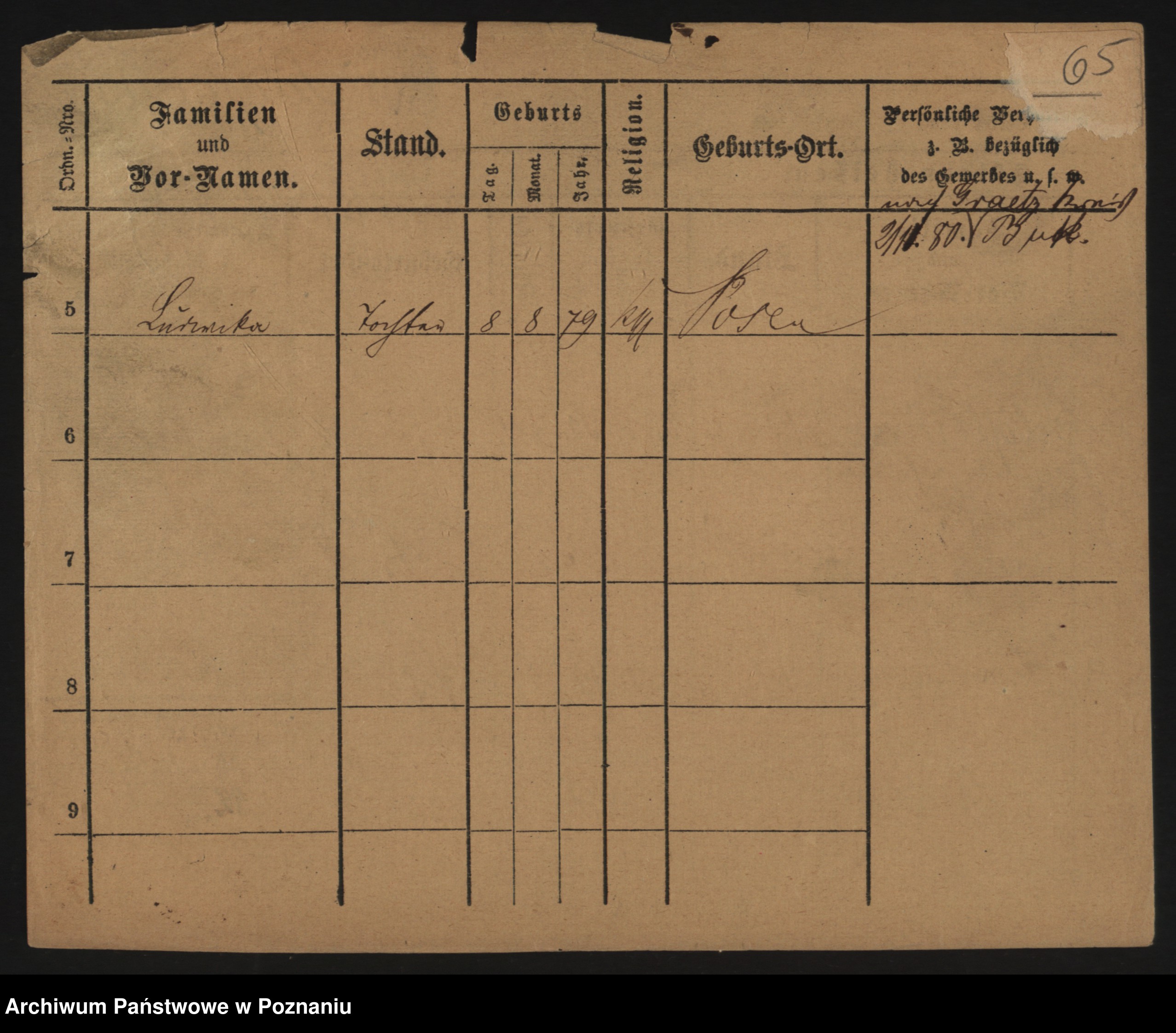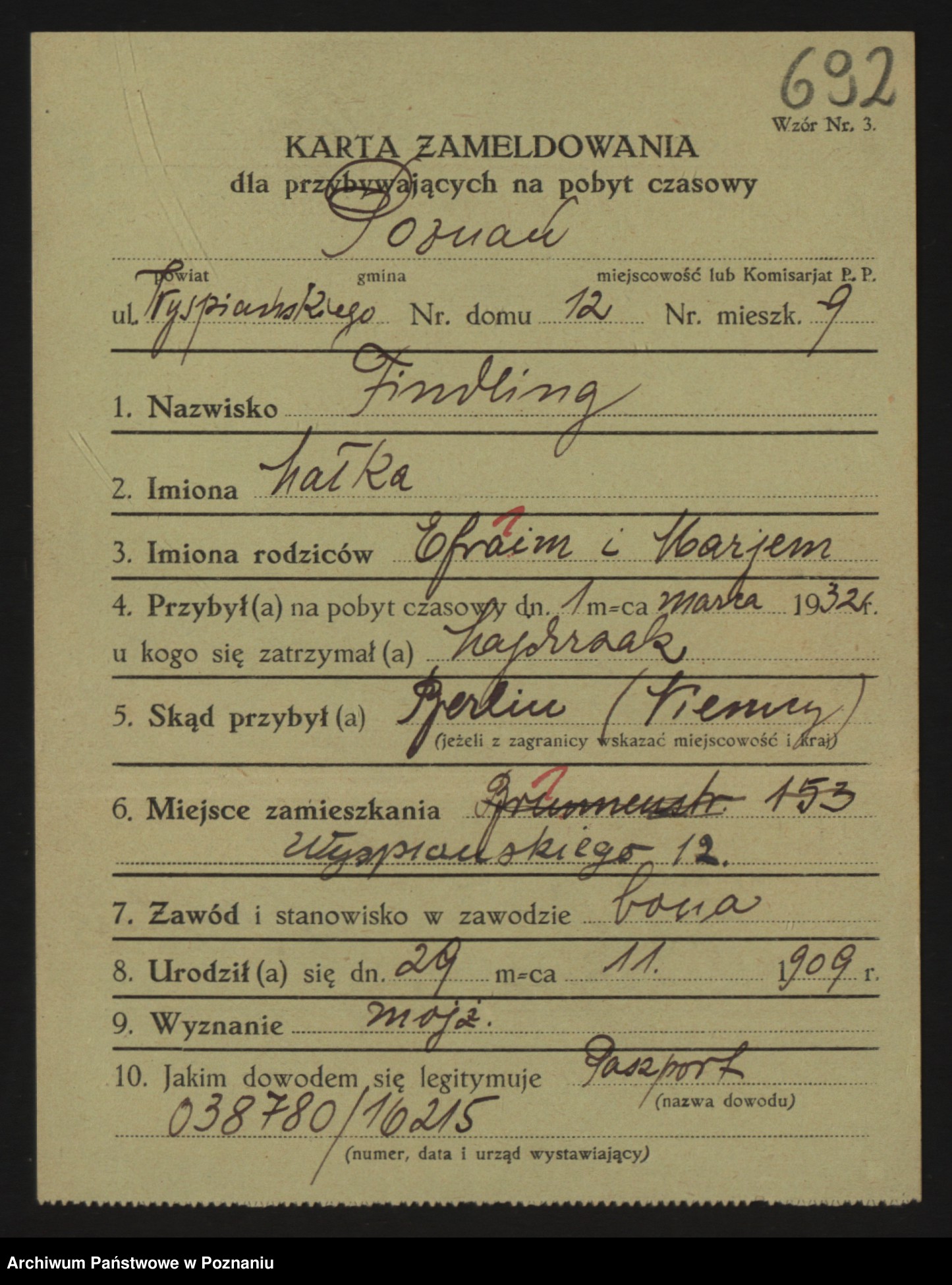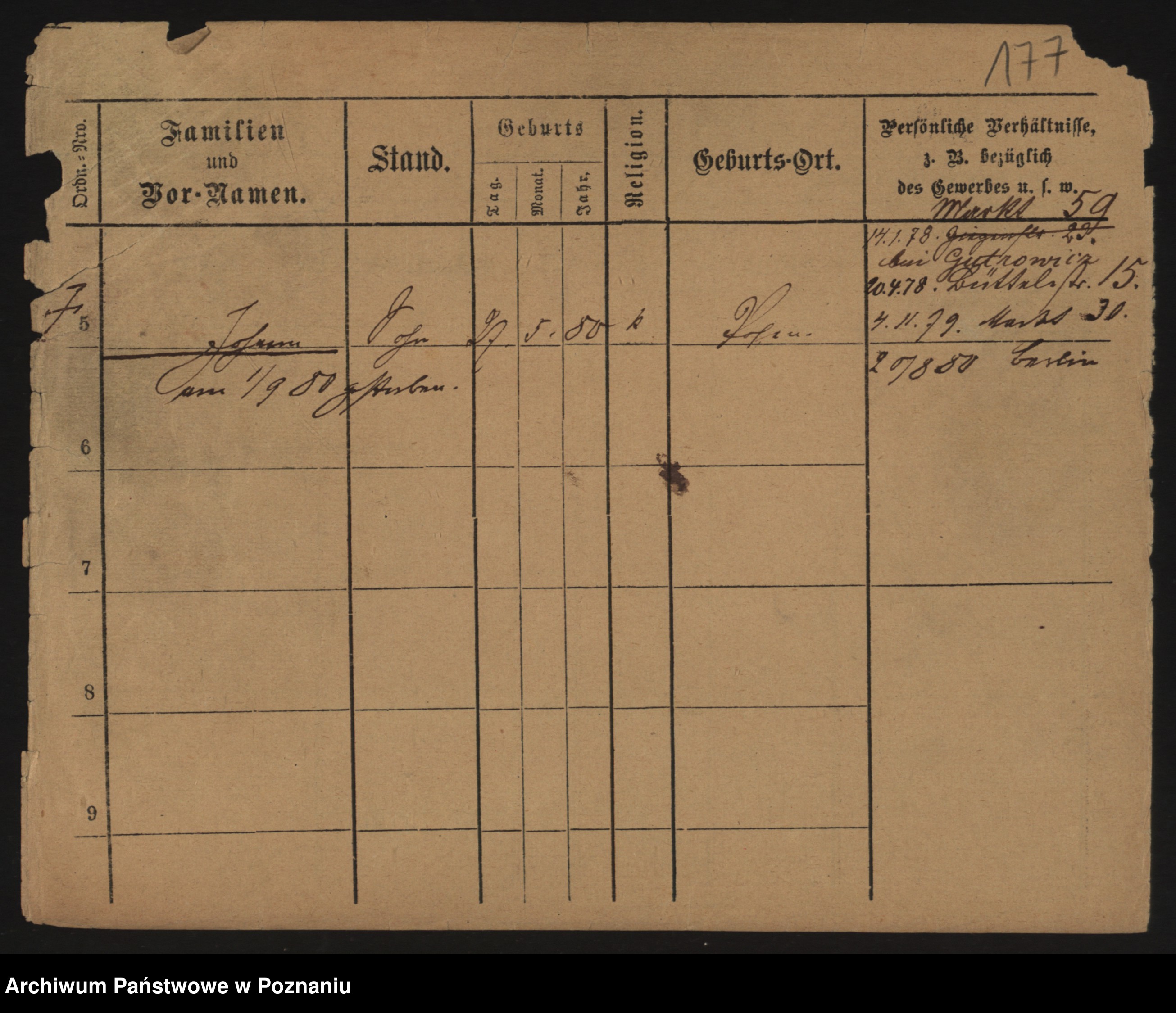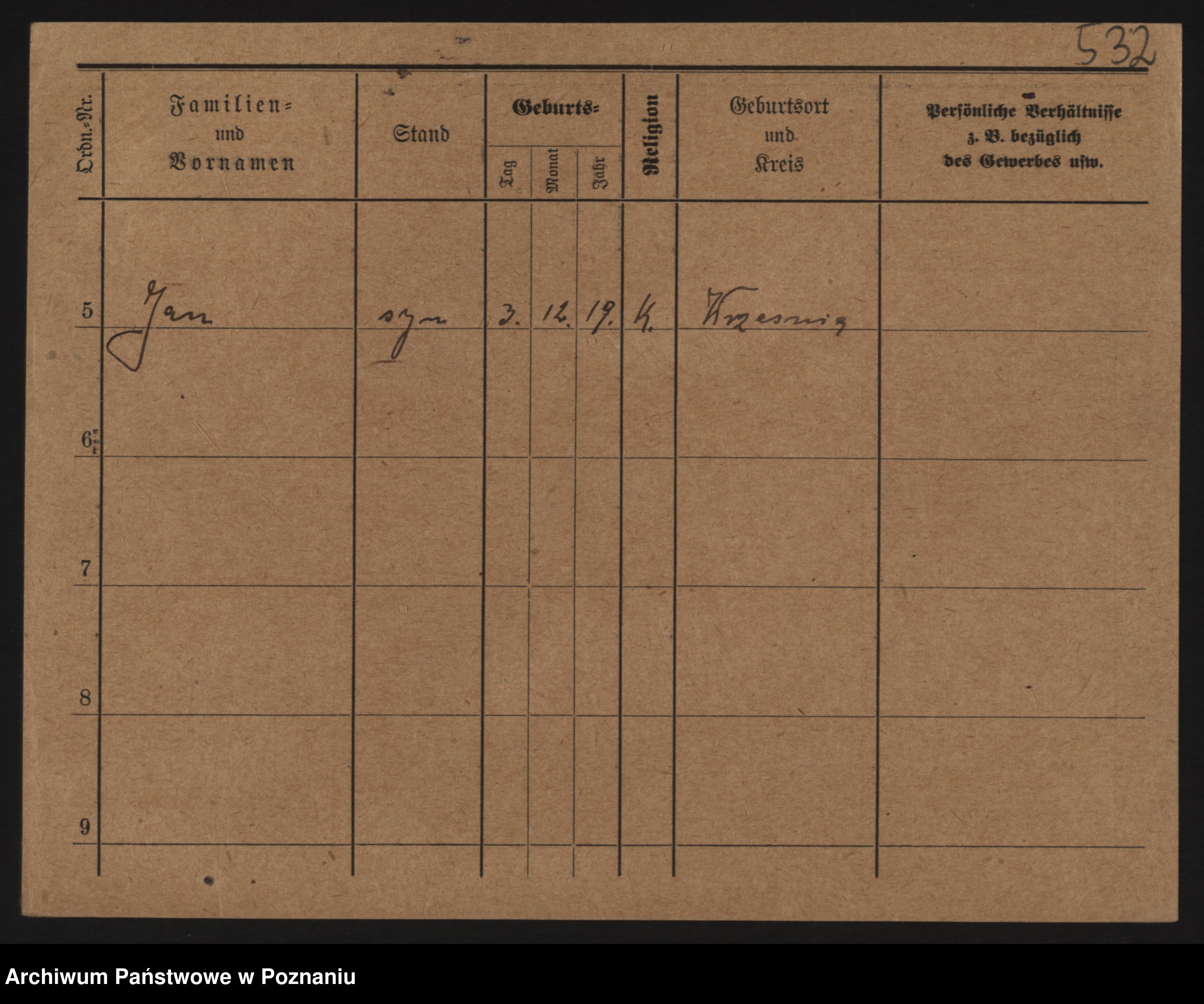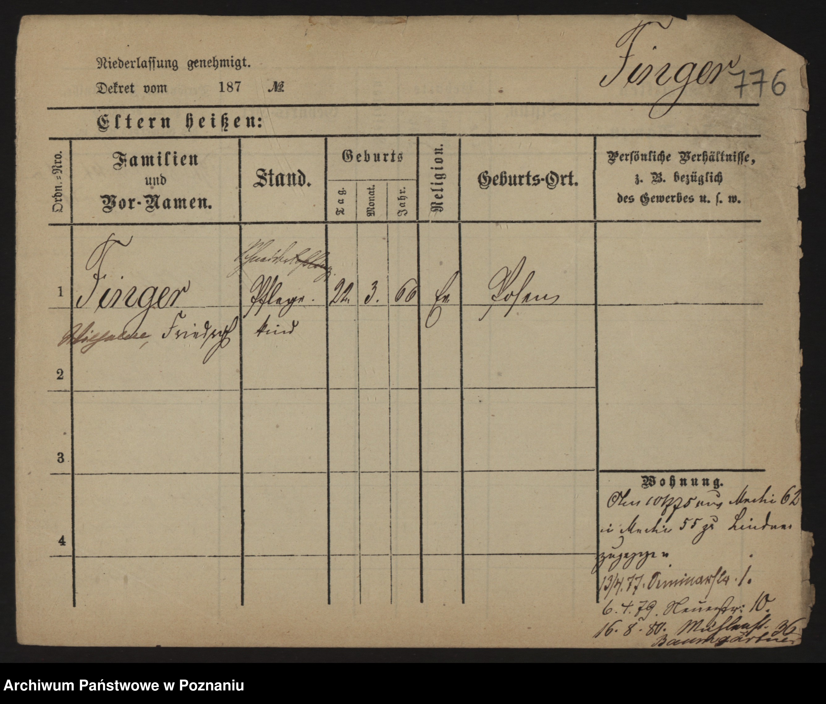 Podgląd karty osobowej dostępny jest po kliknięciu na nazwisko lub ikonkę karty. Można dokonywać powiększenia (ikony na górze) lub przechodzić między kolejnymi skanami (strzałki po bokach).