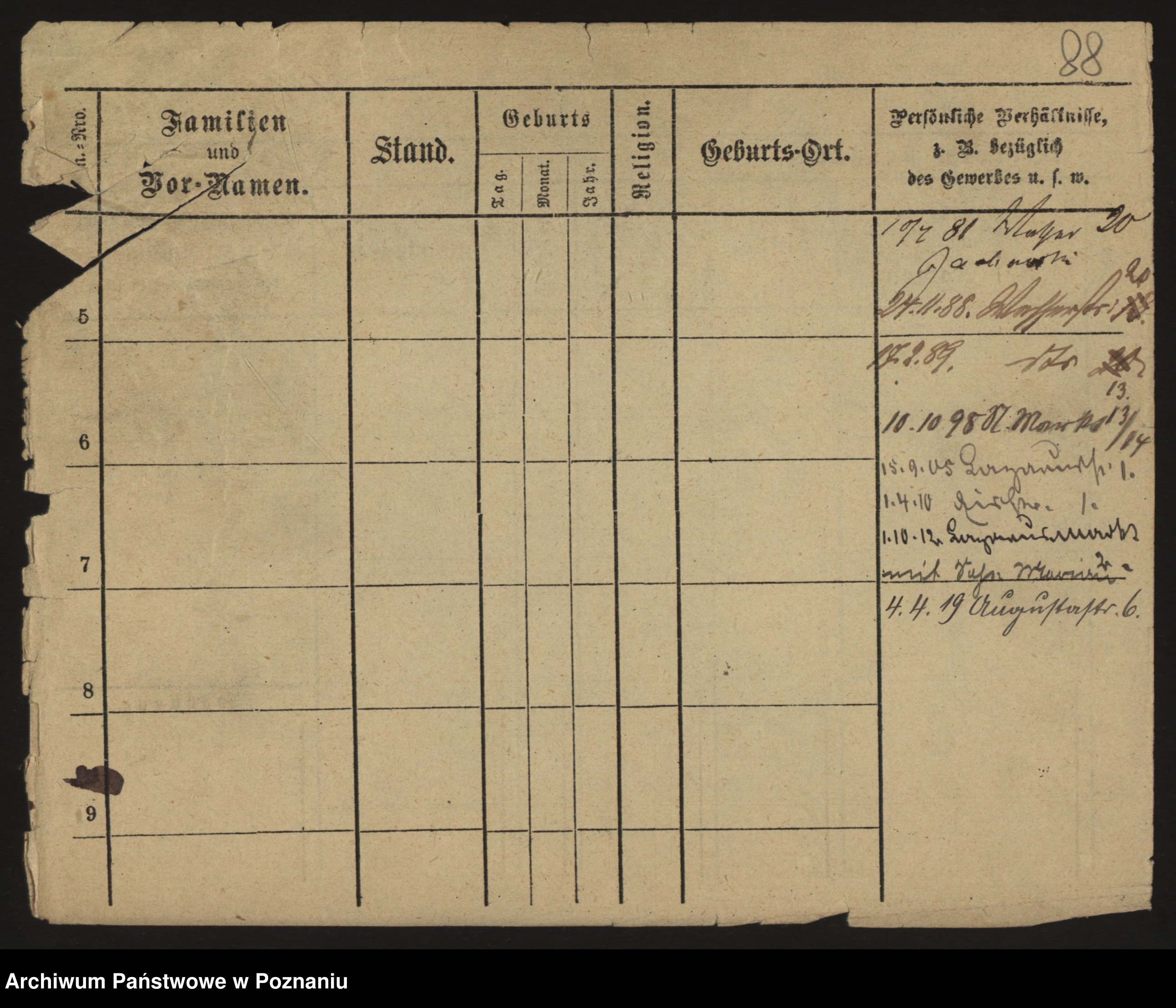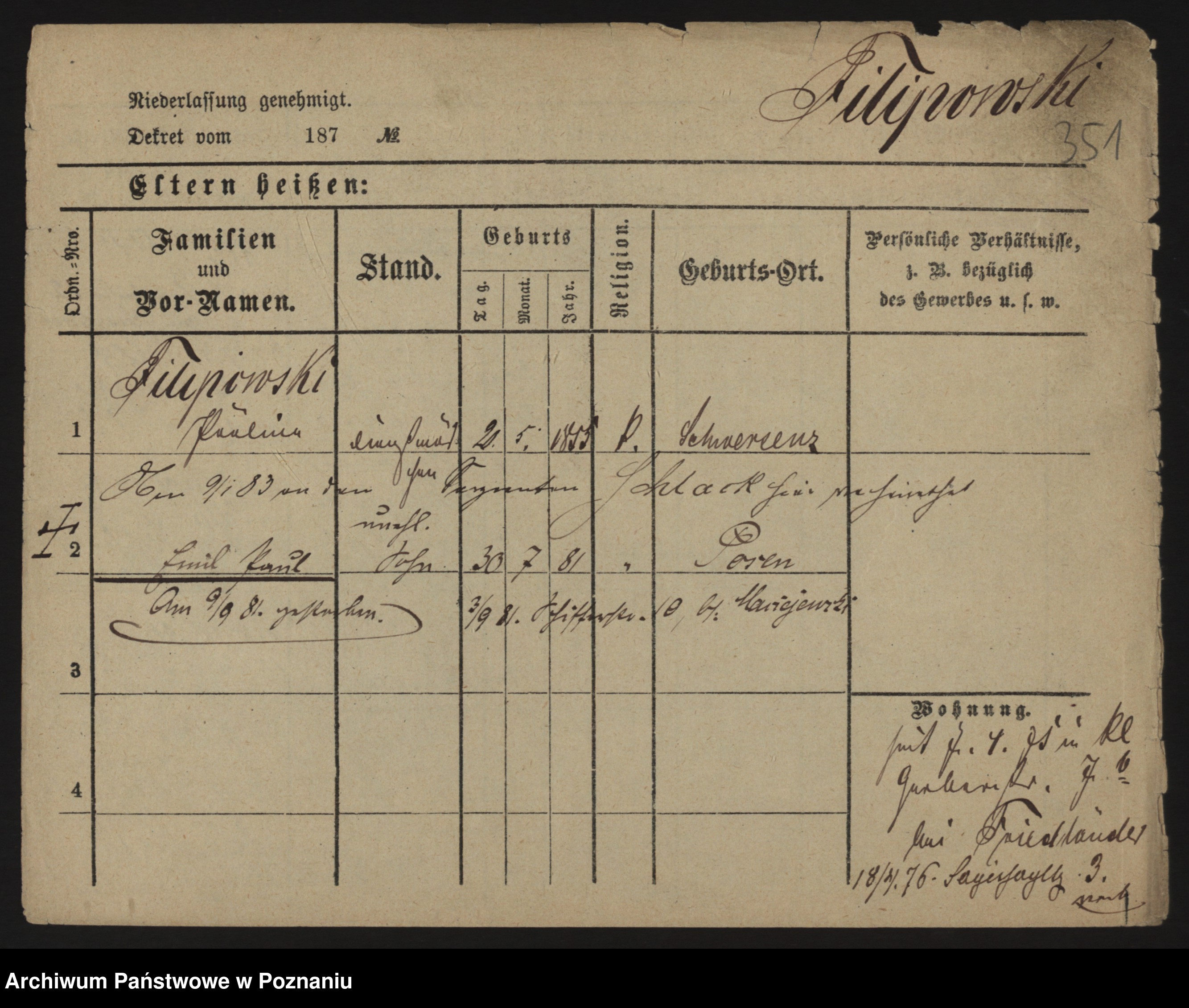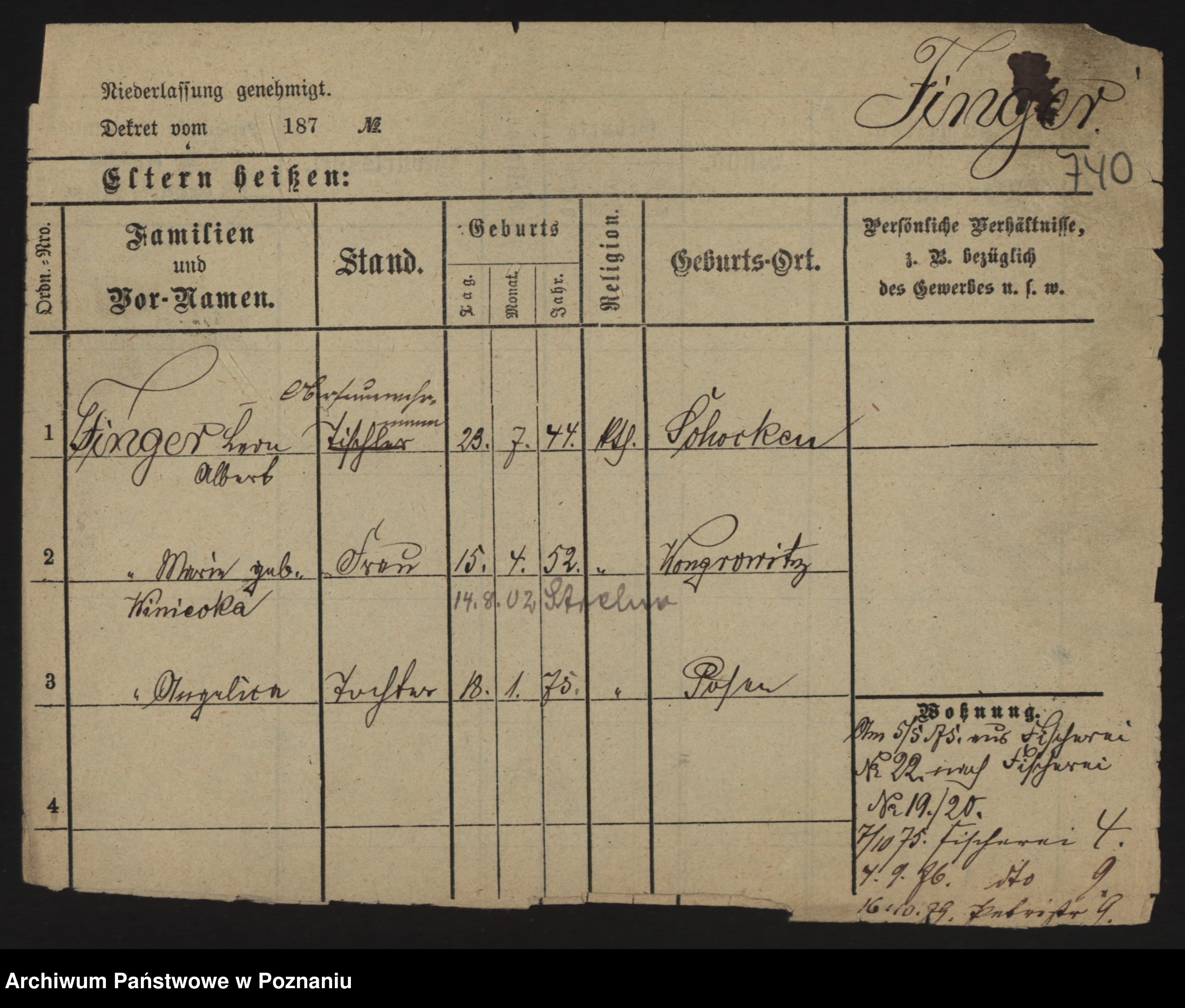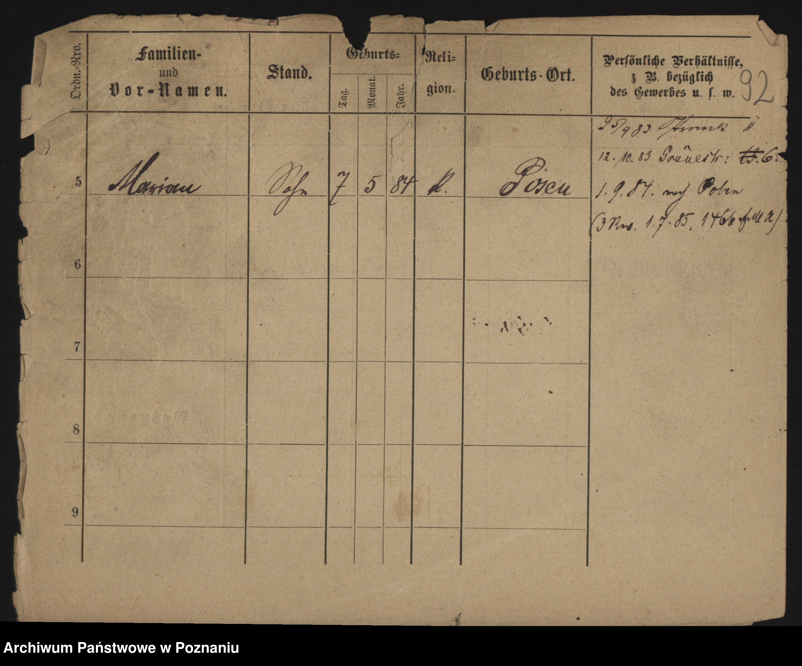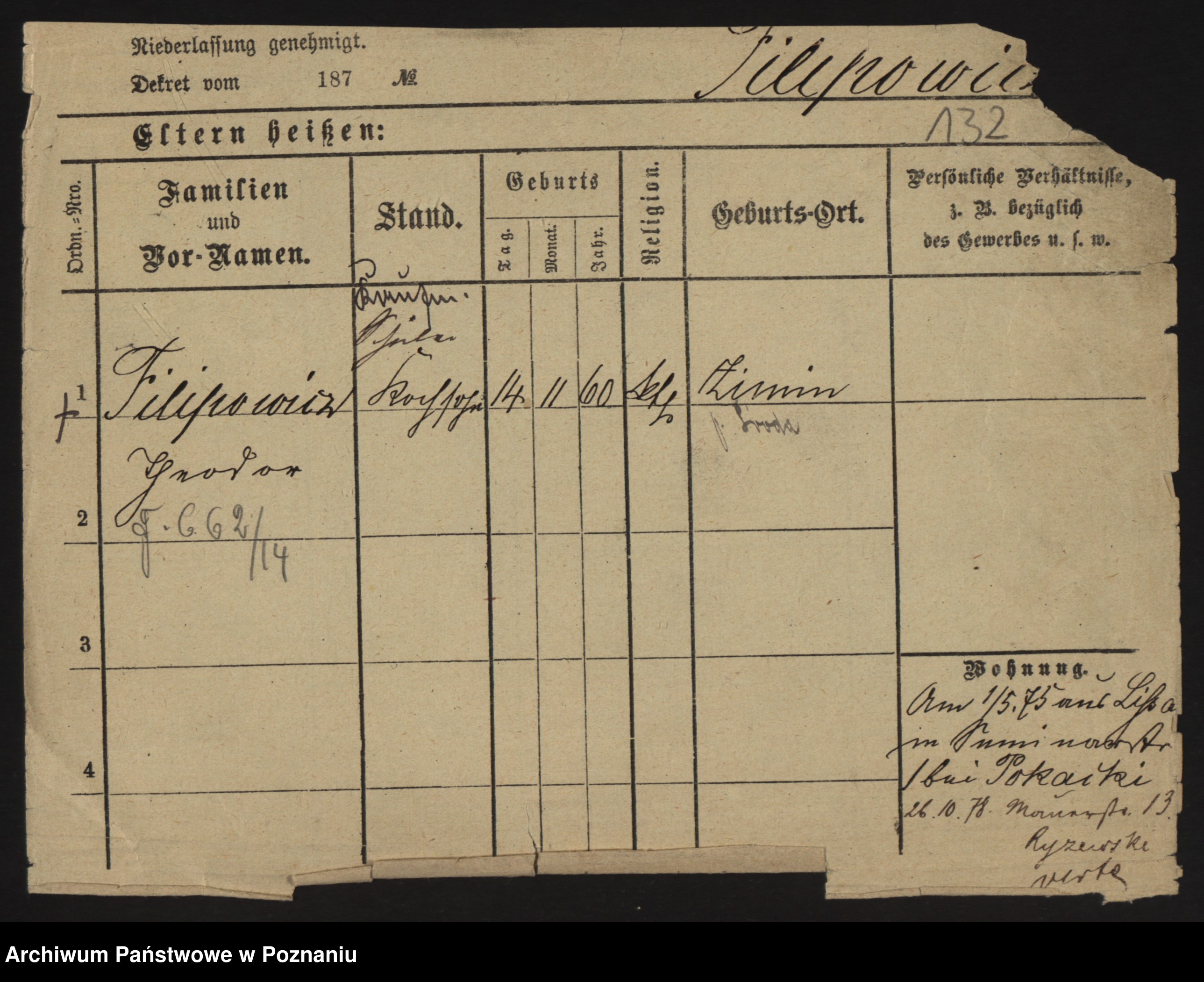 Podgląd karty osobowej dostępny jest po kliknięciu na nazwisko lub ikonkę karty. Można dokonywać powiększenia (ikony na górze) lub przechodzić między kolejnymi skanami (strzałki po bokach).