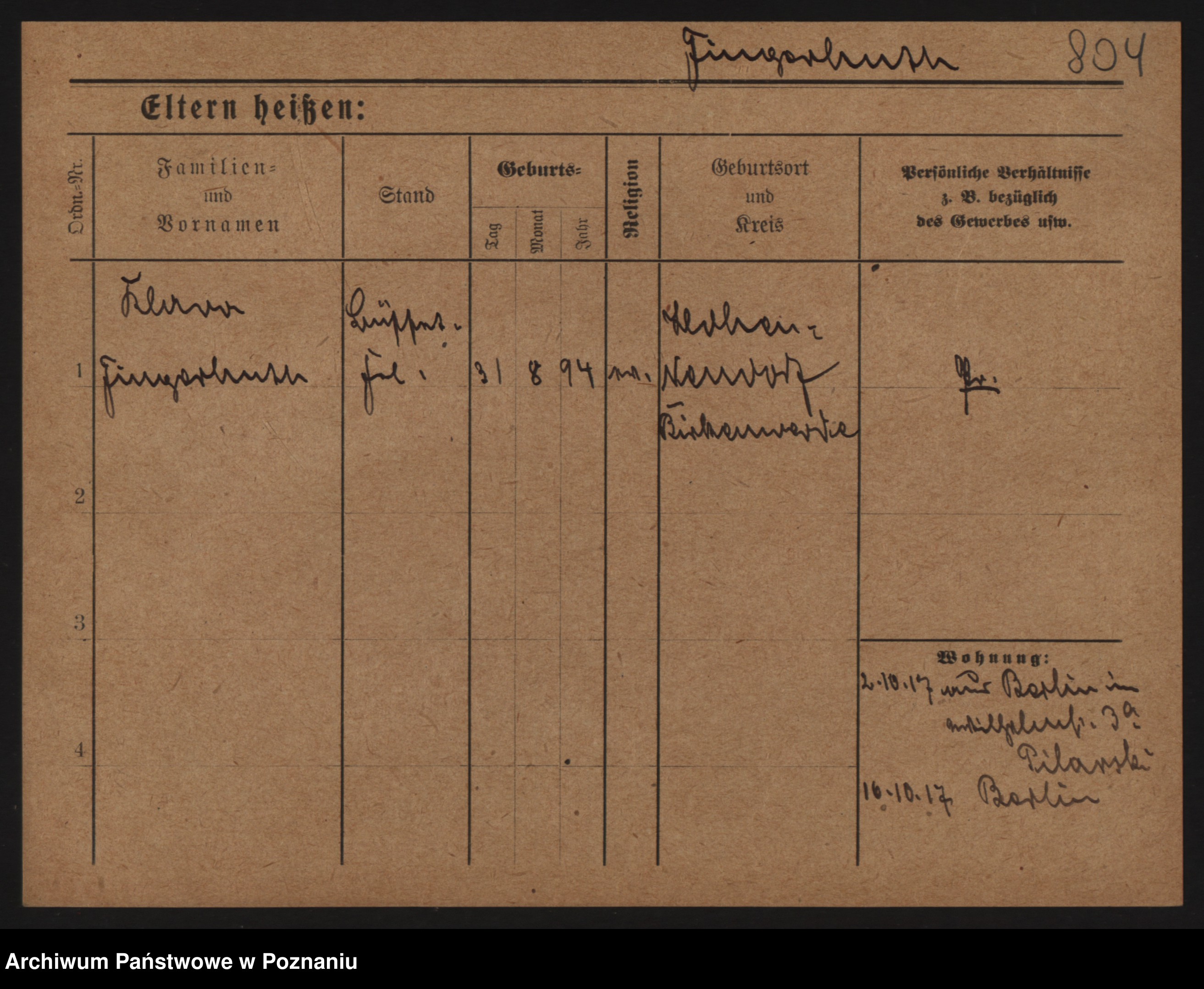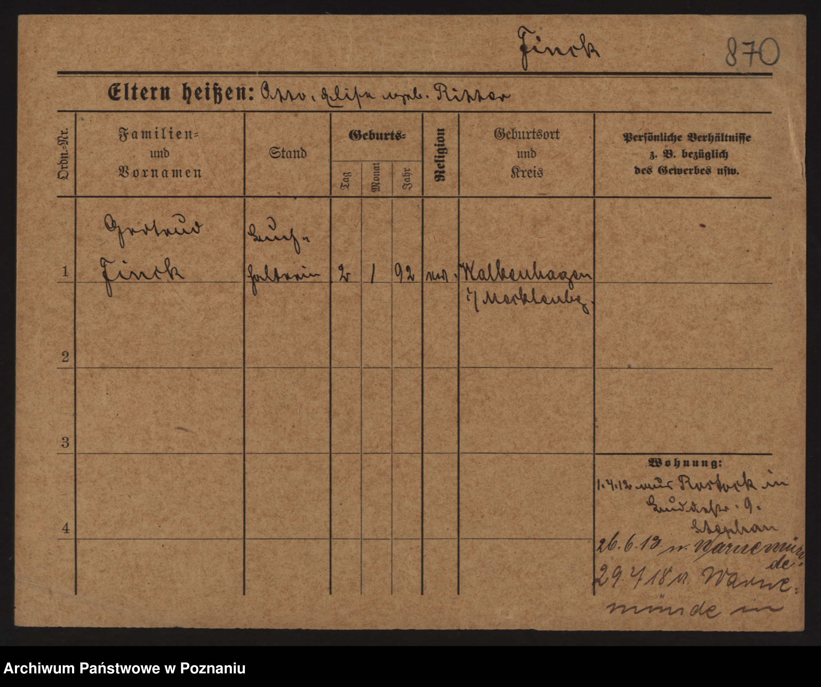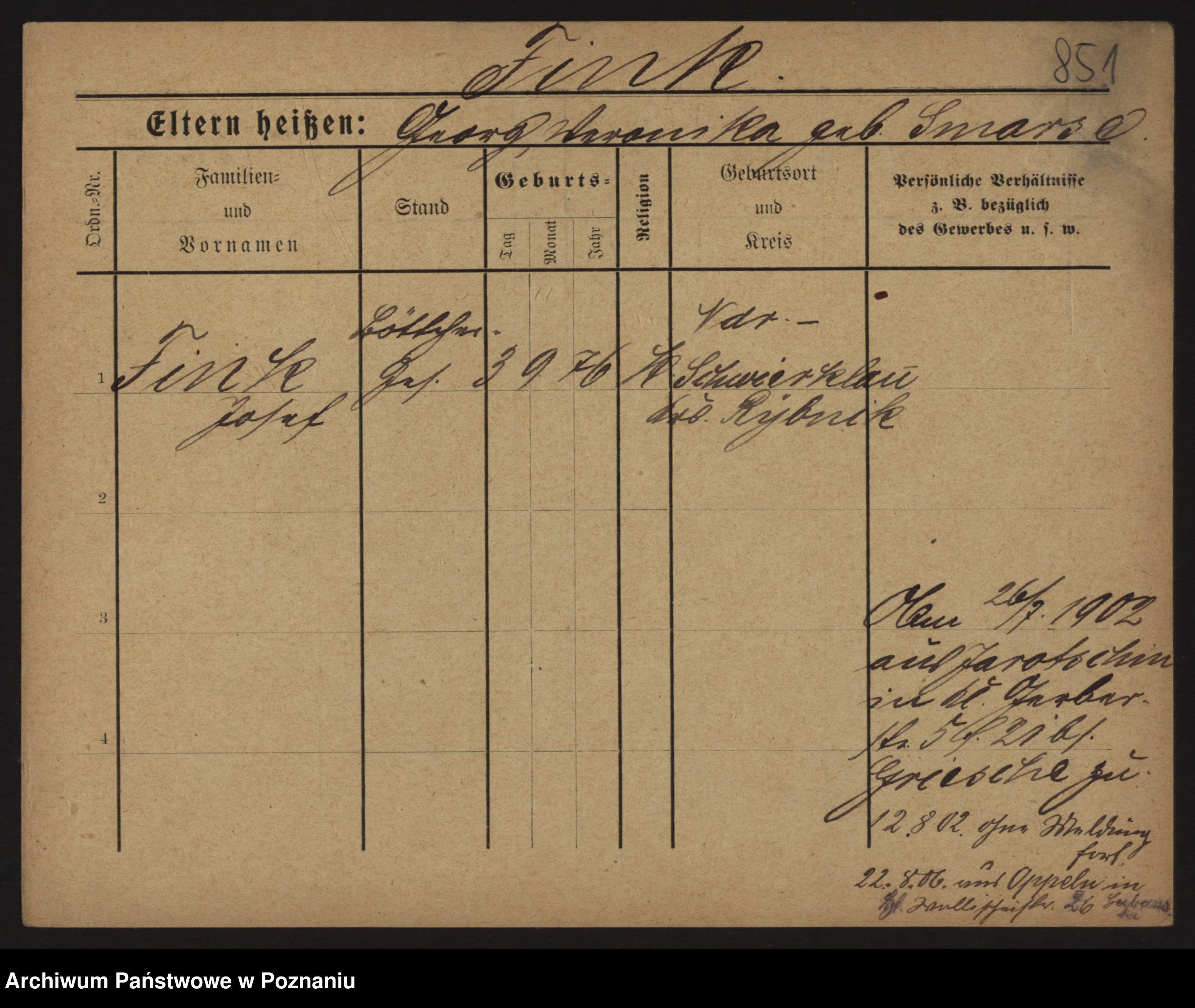 Fink z.d. Pogorzelska, Kathe