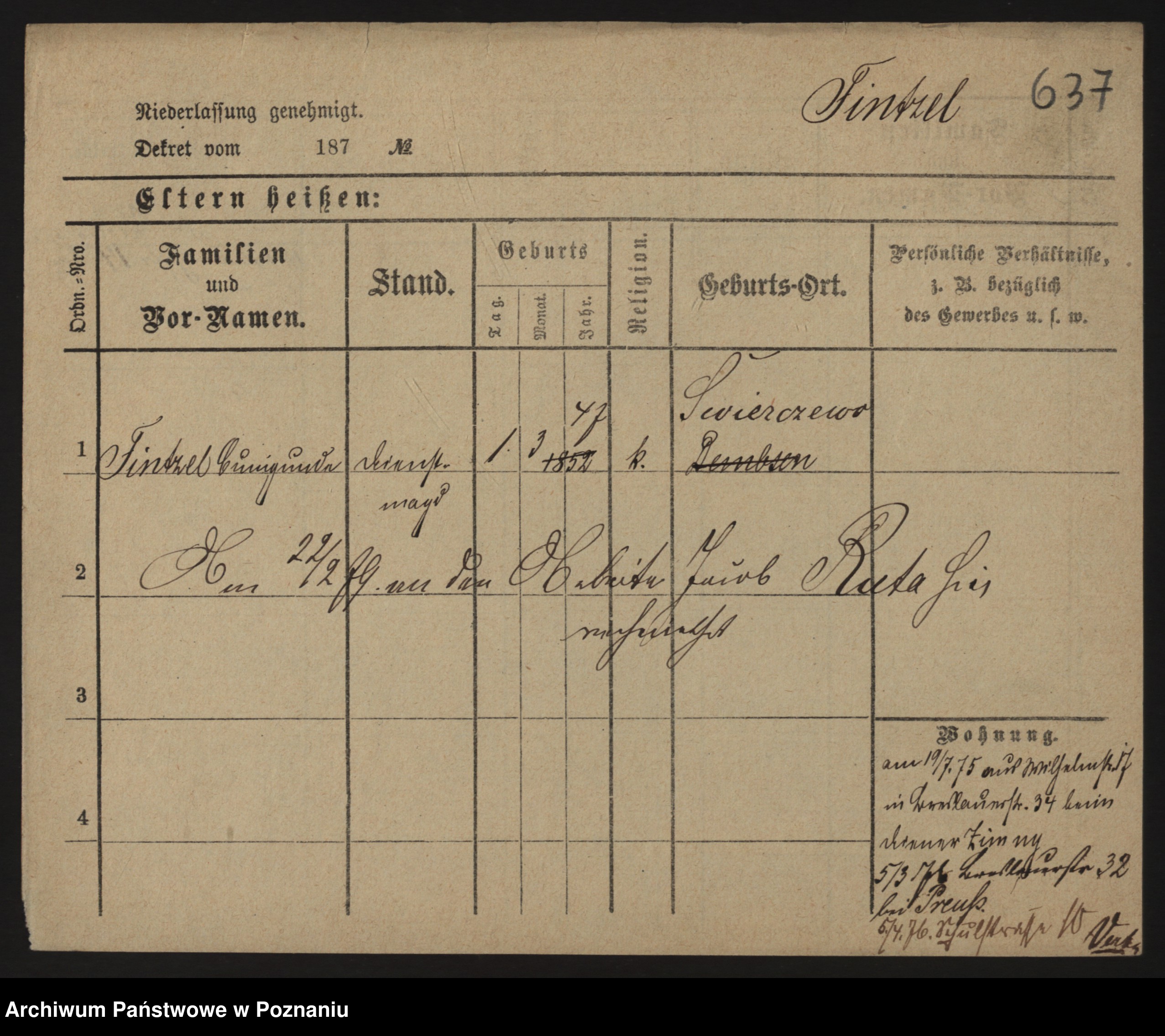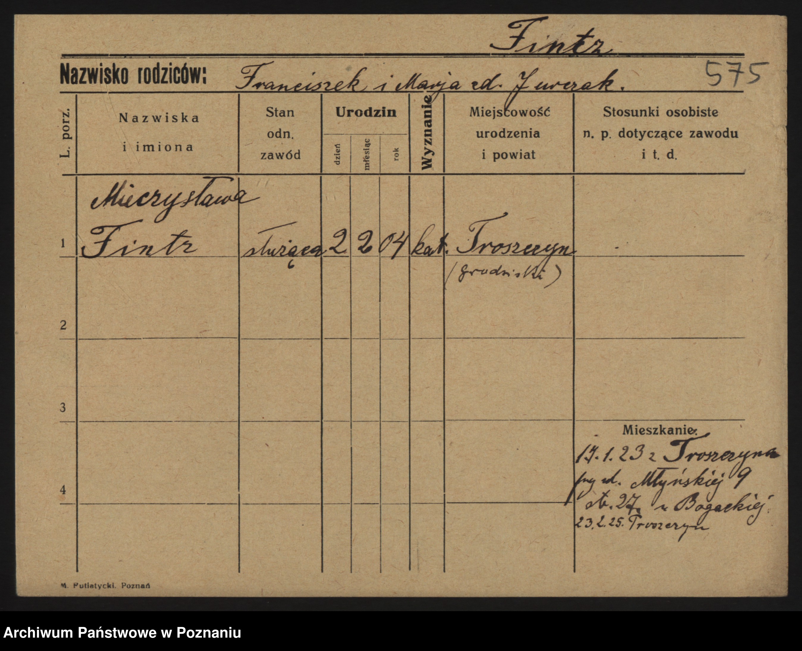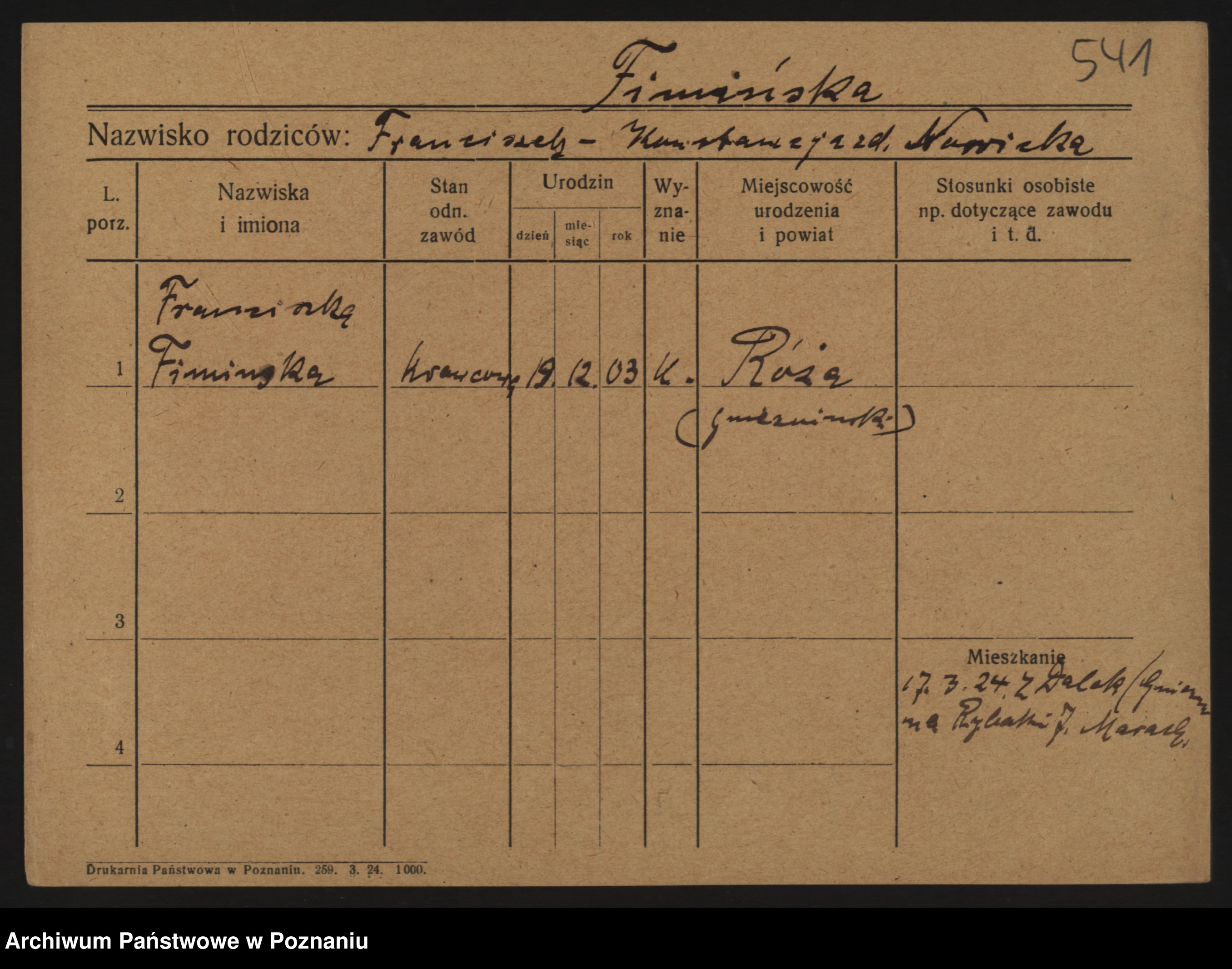 Fink z.d. Trzcinska, Franziska