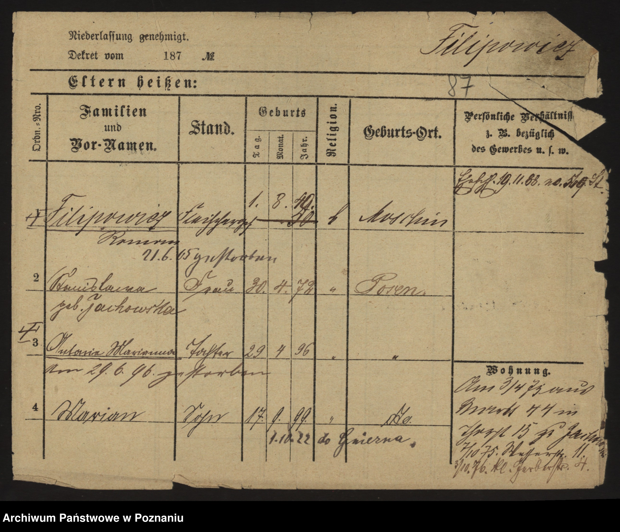 Filipińska, Antonie