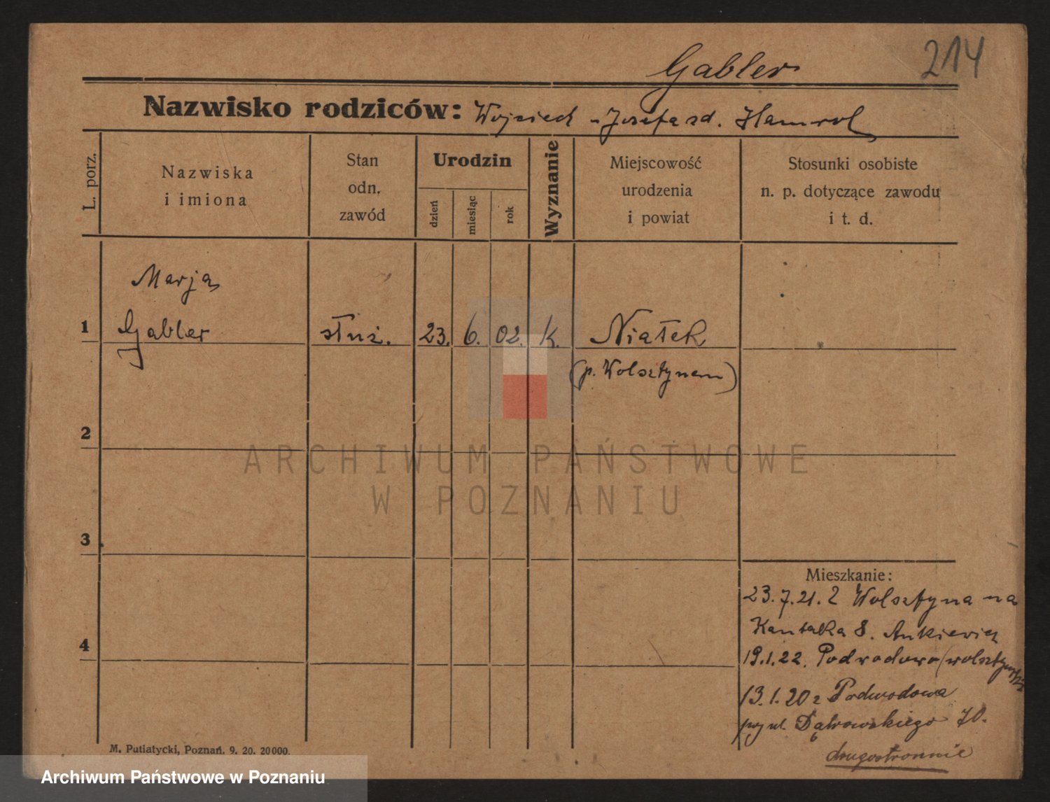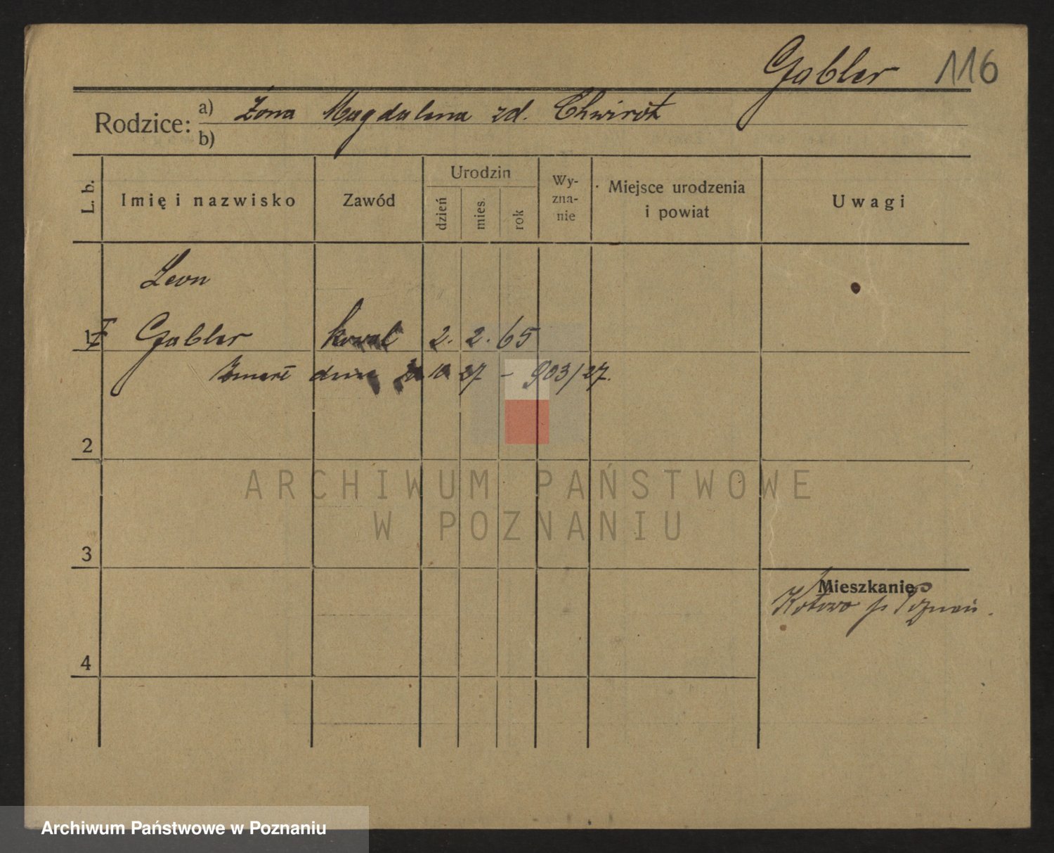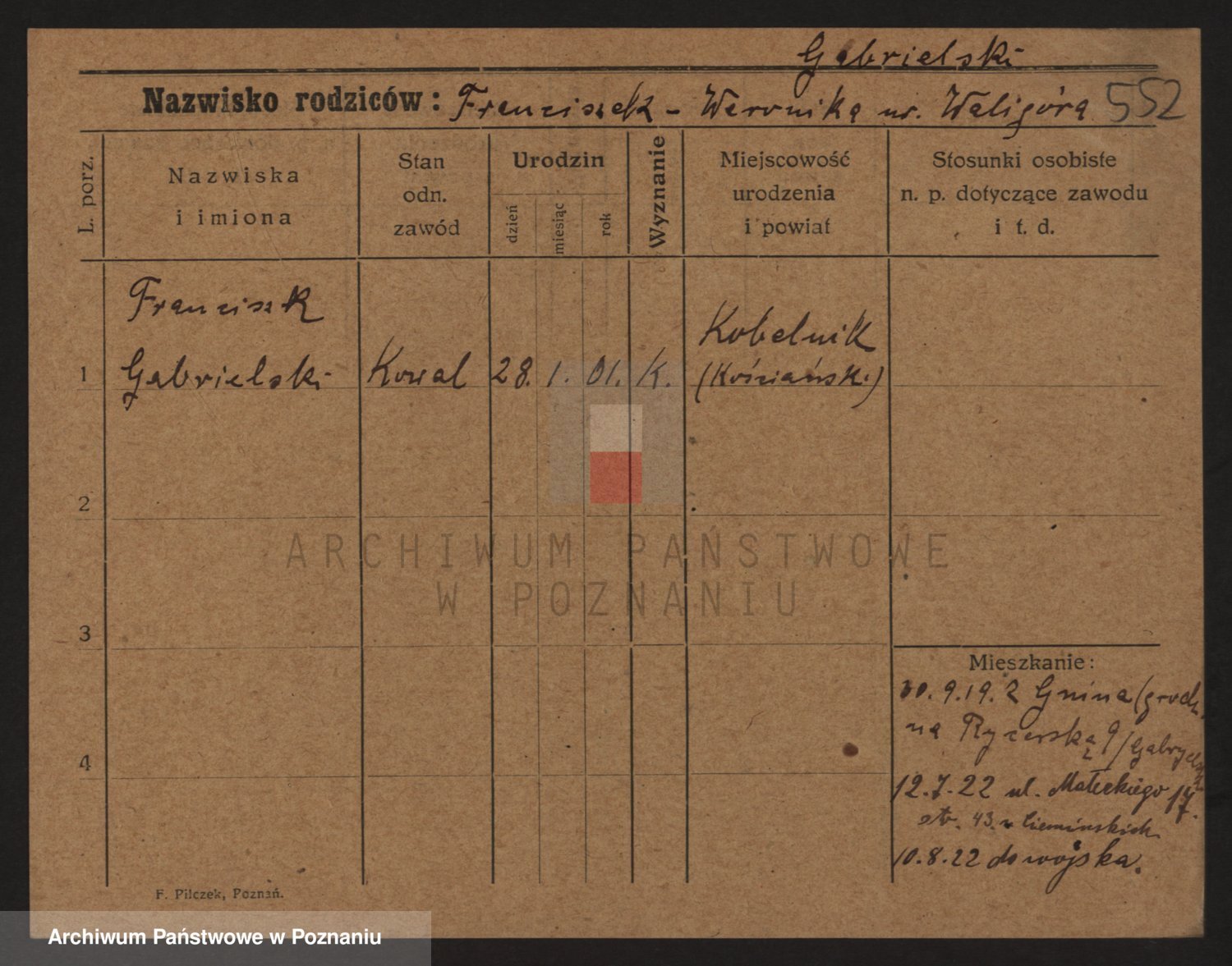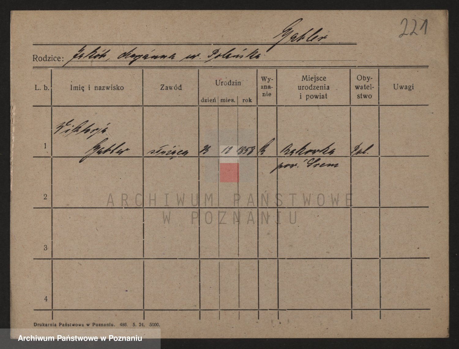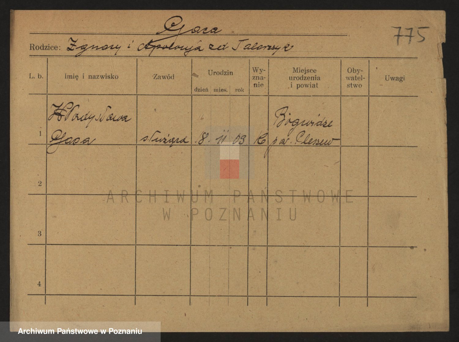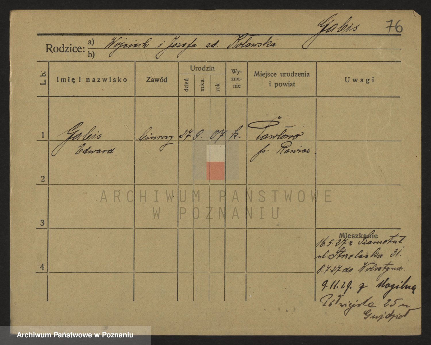 Podgląd karty osobowej dostępny jest po kliknięciu na nazwisko lub ikonkę karty. Można dokonywać powiększenia (ikony na górze) lub przechodzić między kolejnymi skanami (strzałki po bokach).