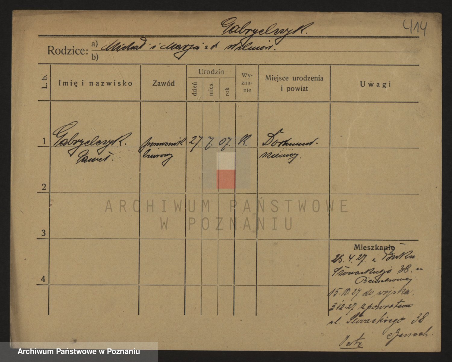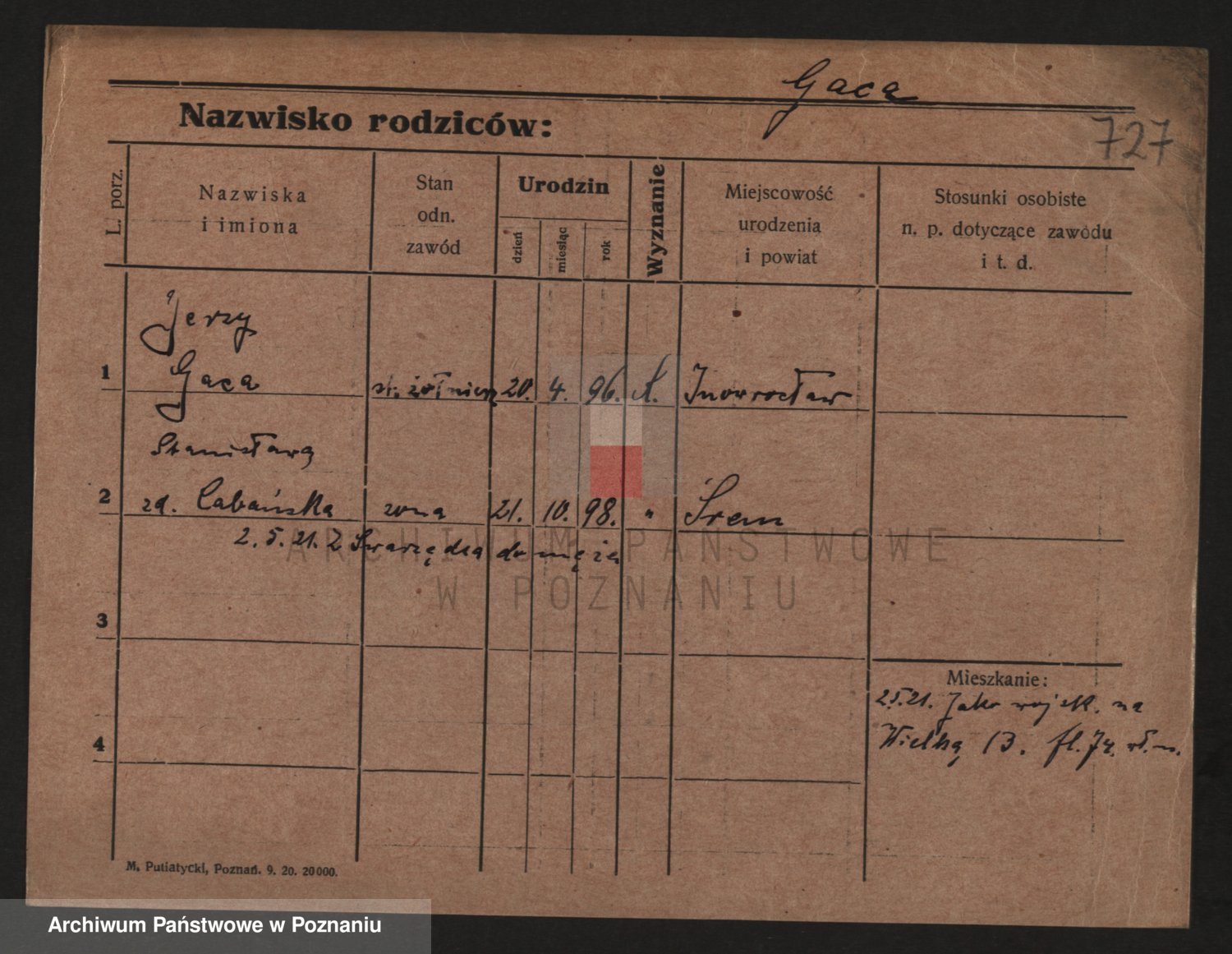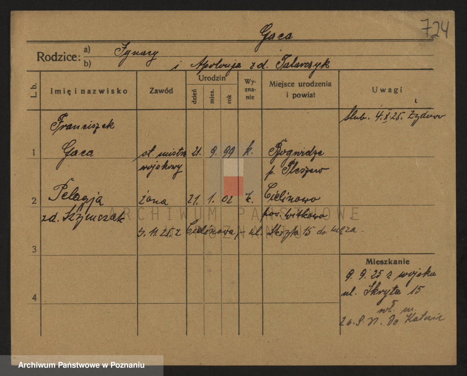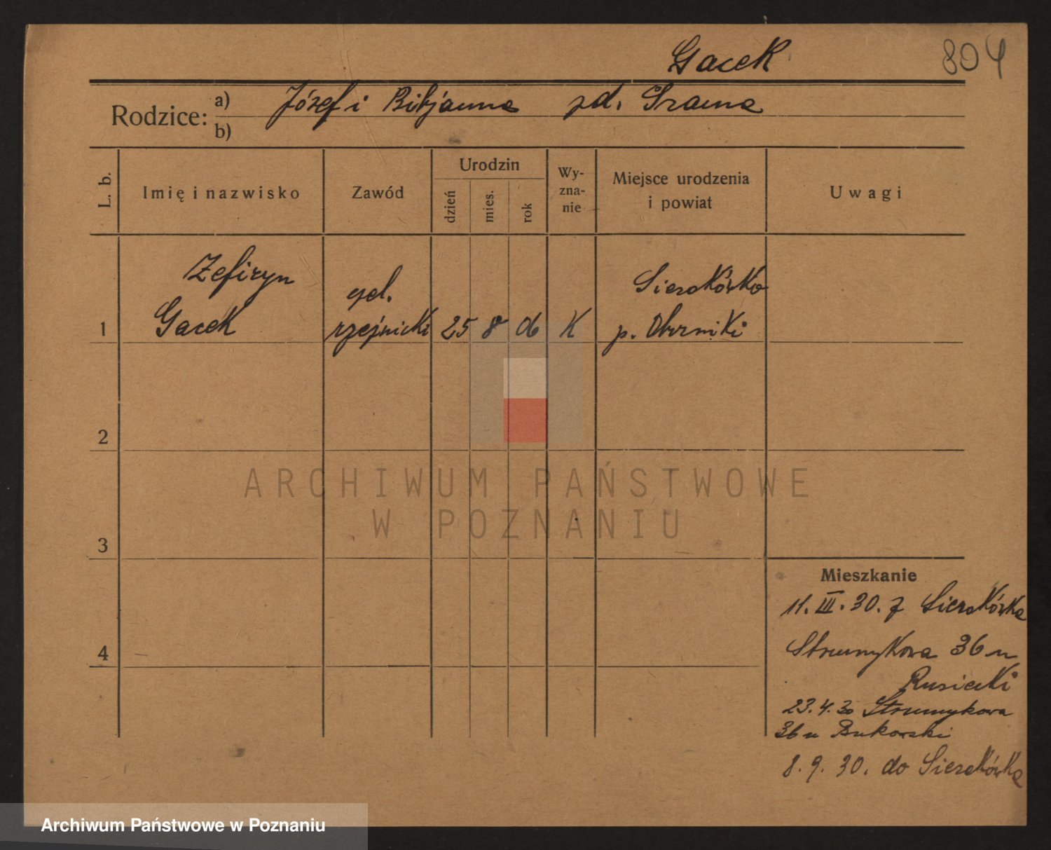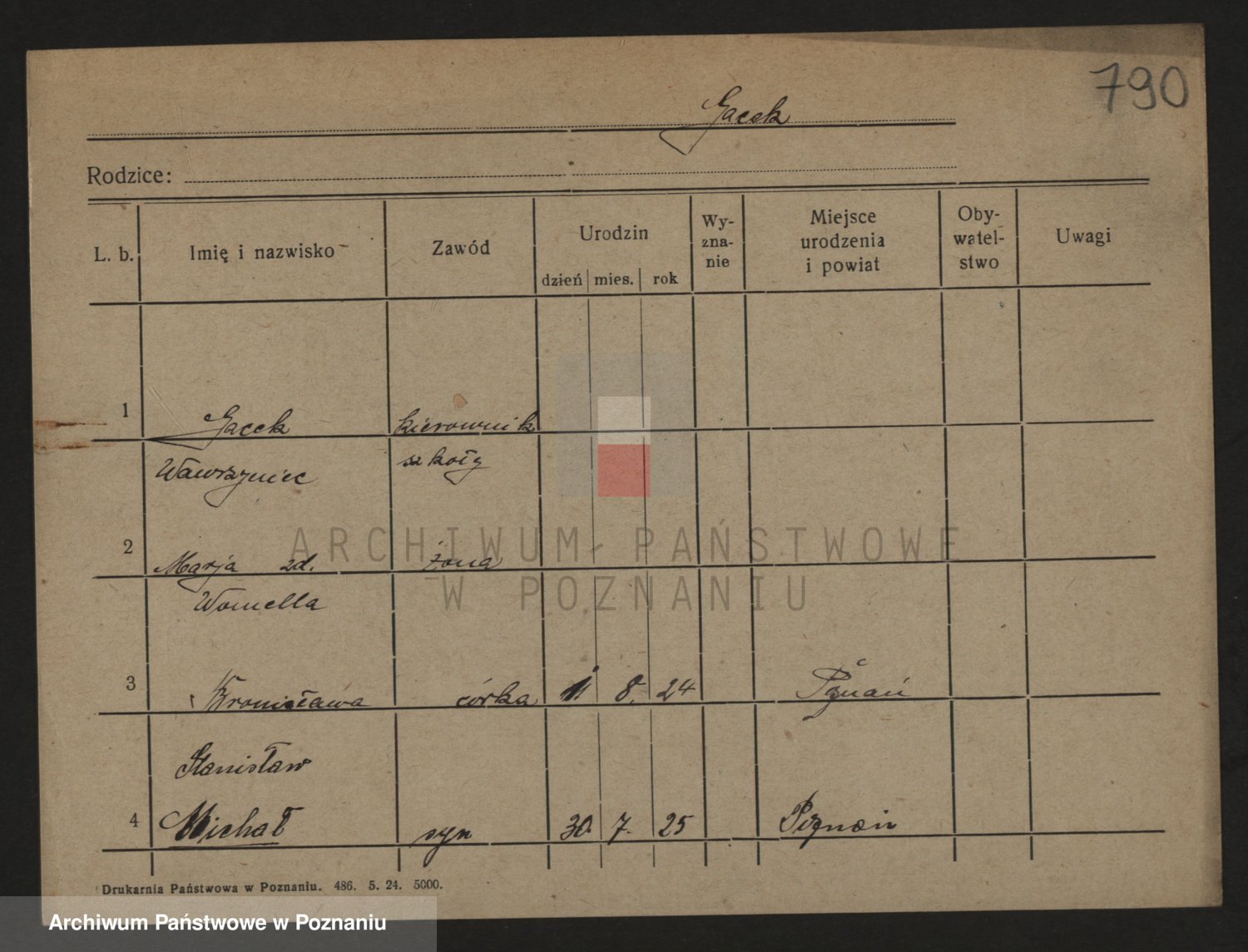 Podgląd karty osobowej dostępny jest po kliknięciu na nazwisko lub ikonkę karty. Można dokonywać powiększenia (ikony na górze) lub przechodzić między kolejnymi skanami (strzałki po bokach).