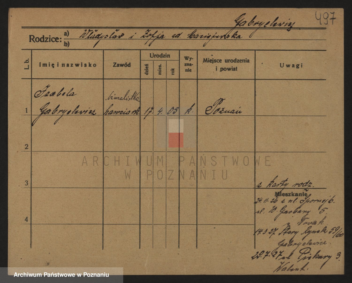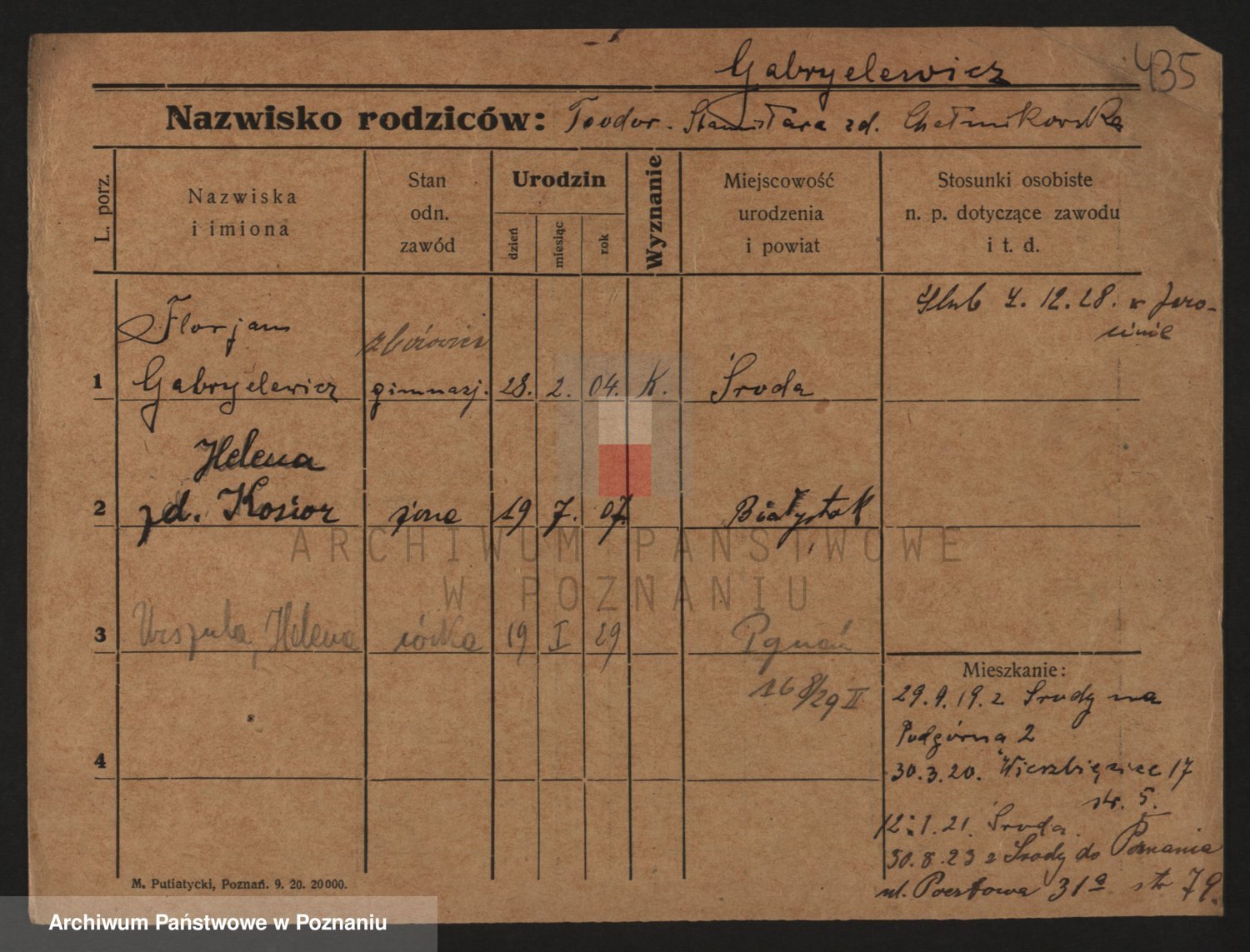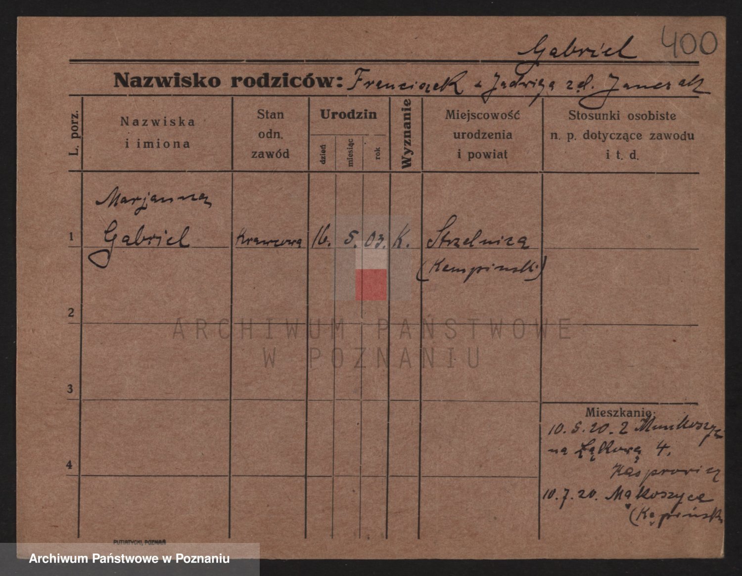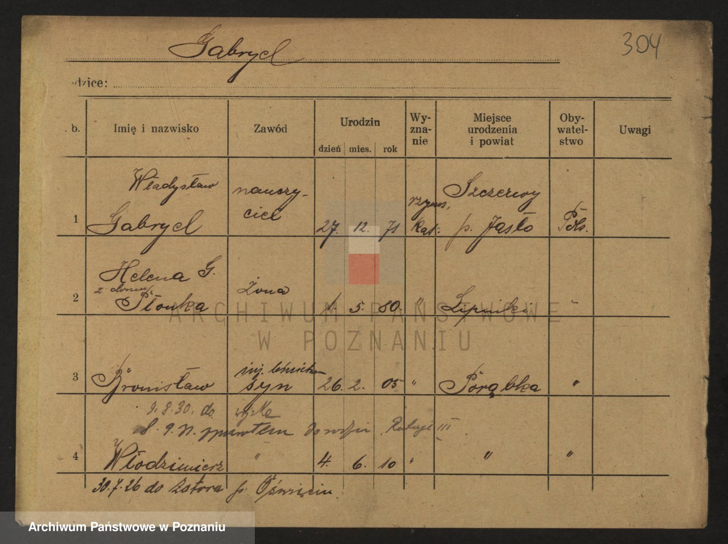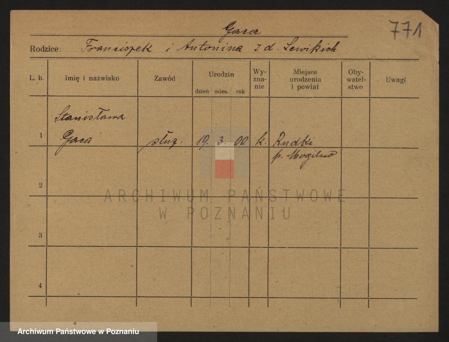 Podgląd karty osobowej dostępny jest po kliknięciu na nazwisko lub ikonkę karty. Można dokonywać powiększenia (ikony na górze) lub przechodzić między kolejnymi skanami (strzałki po bokach).