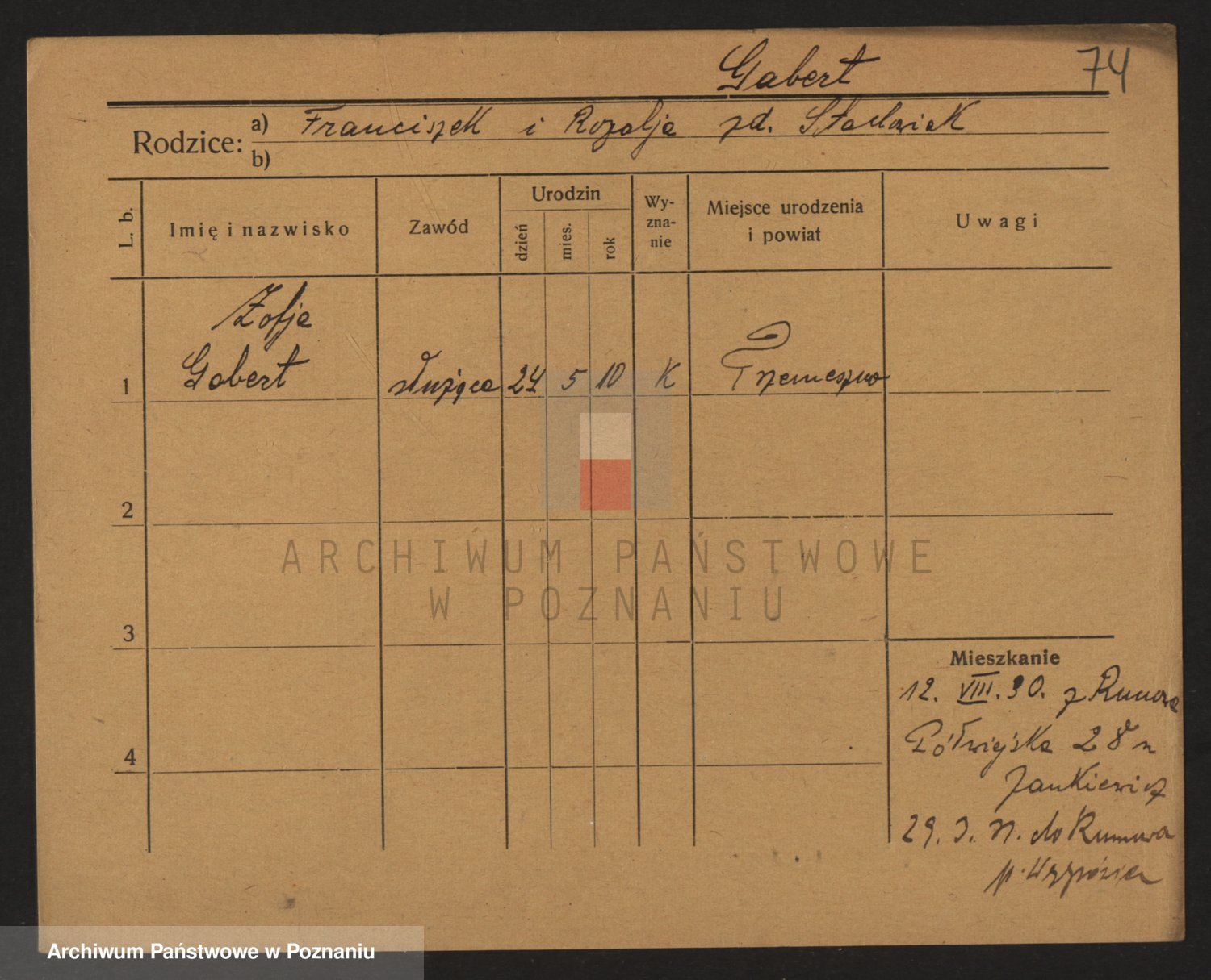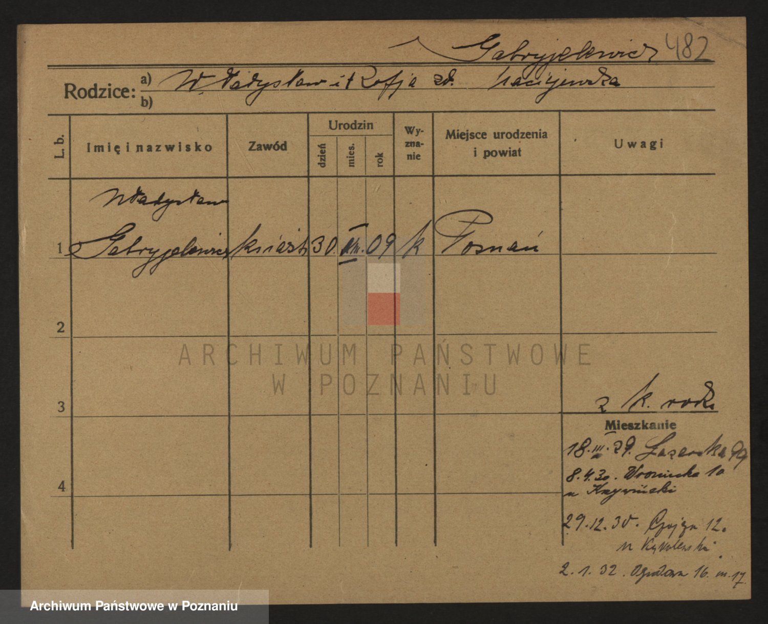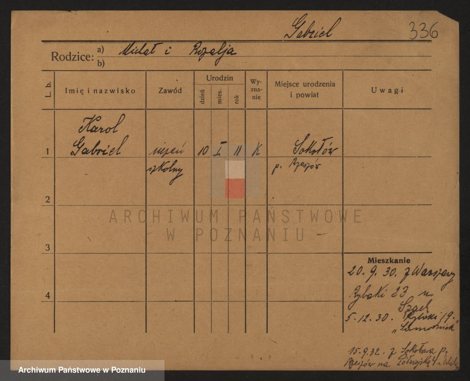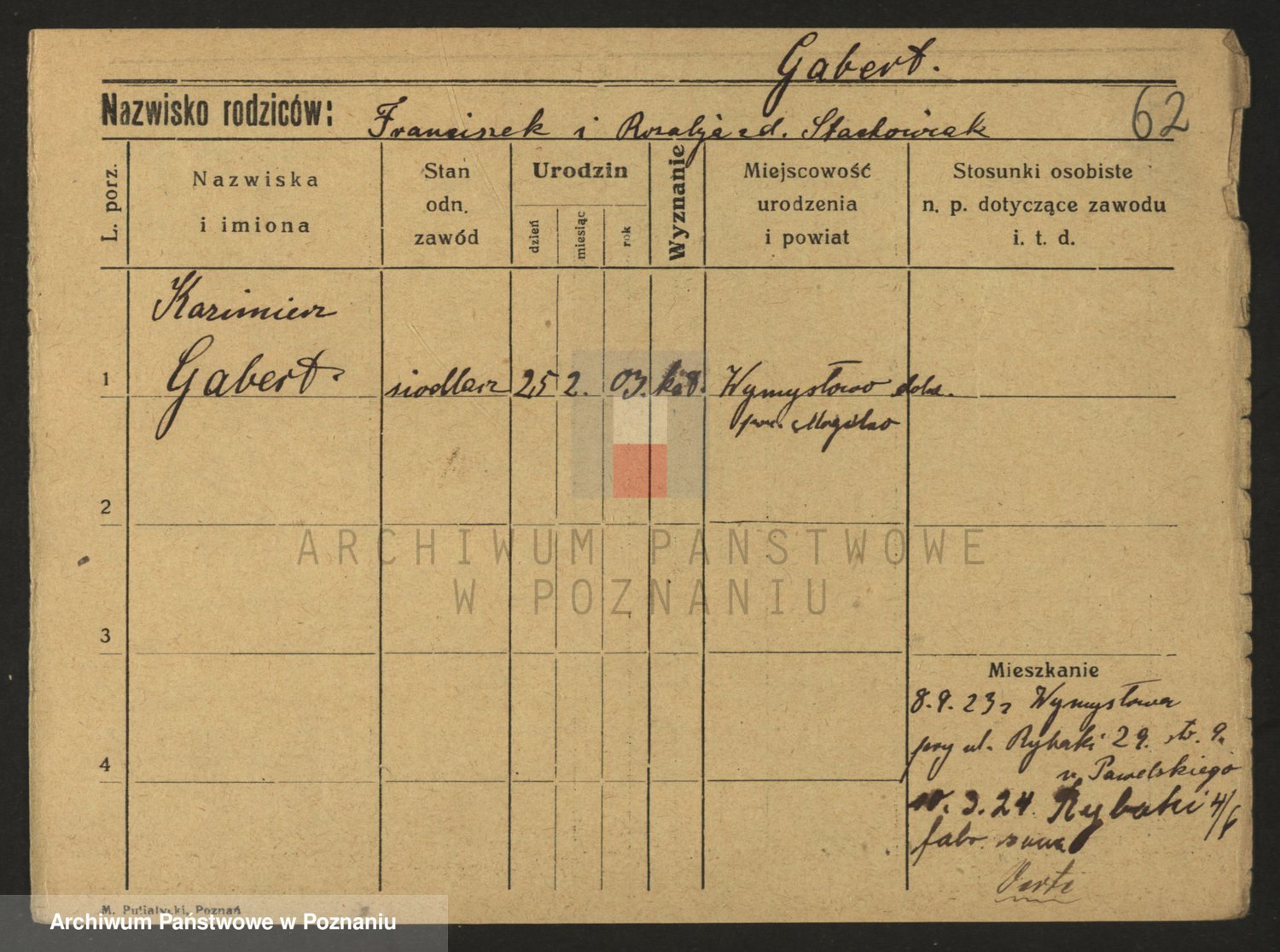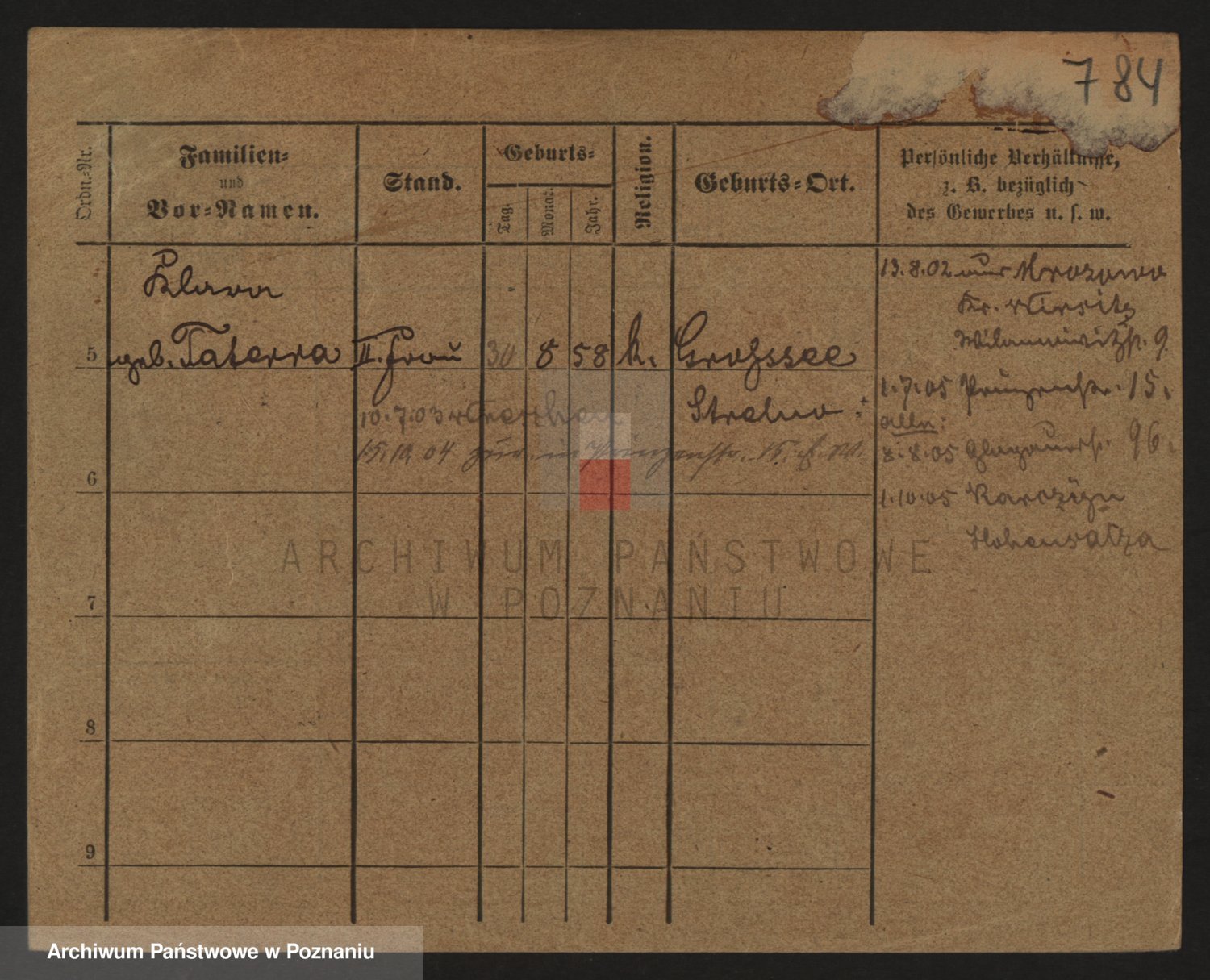 Podgląd karty osobowej dostępny jest po kliknięciu na nazwisko lub ikonkę karty. Można dokonywać powiększenia (ikony na górze) lub przechodzić między kolejnymi skanami (strzałki po bokach).