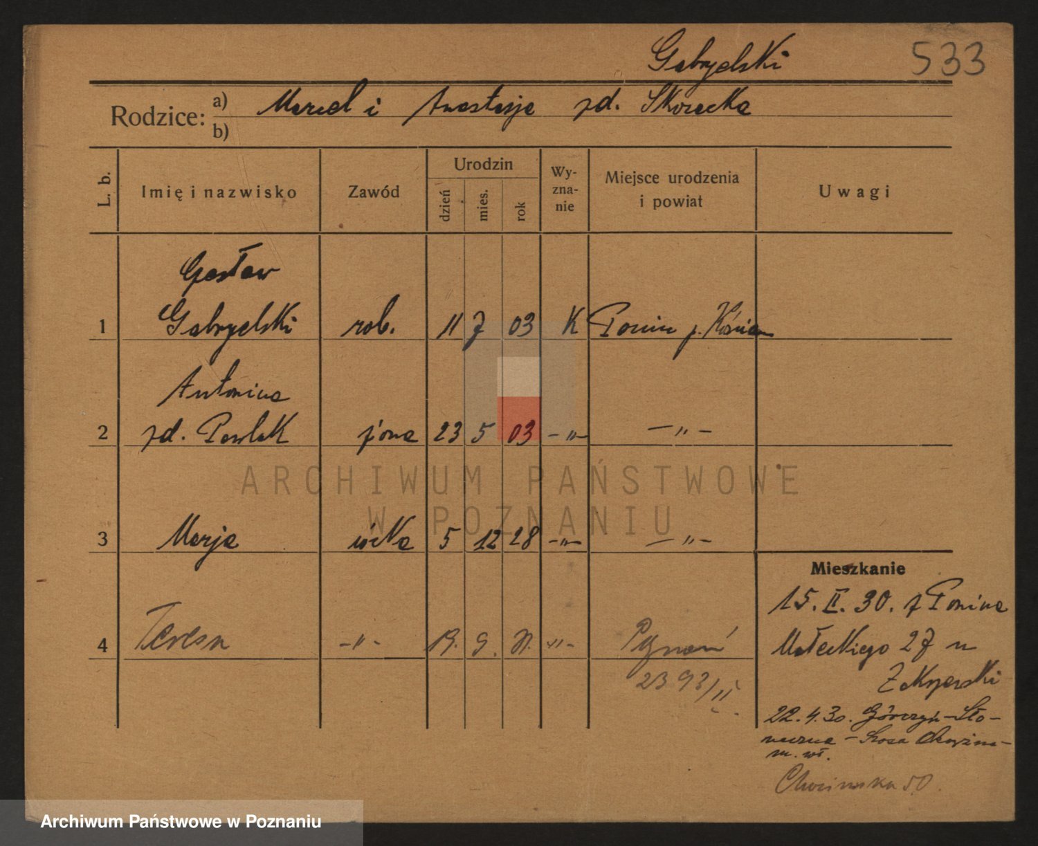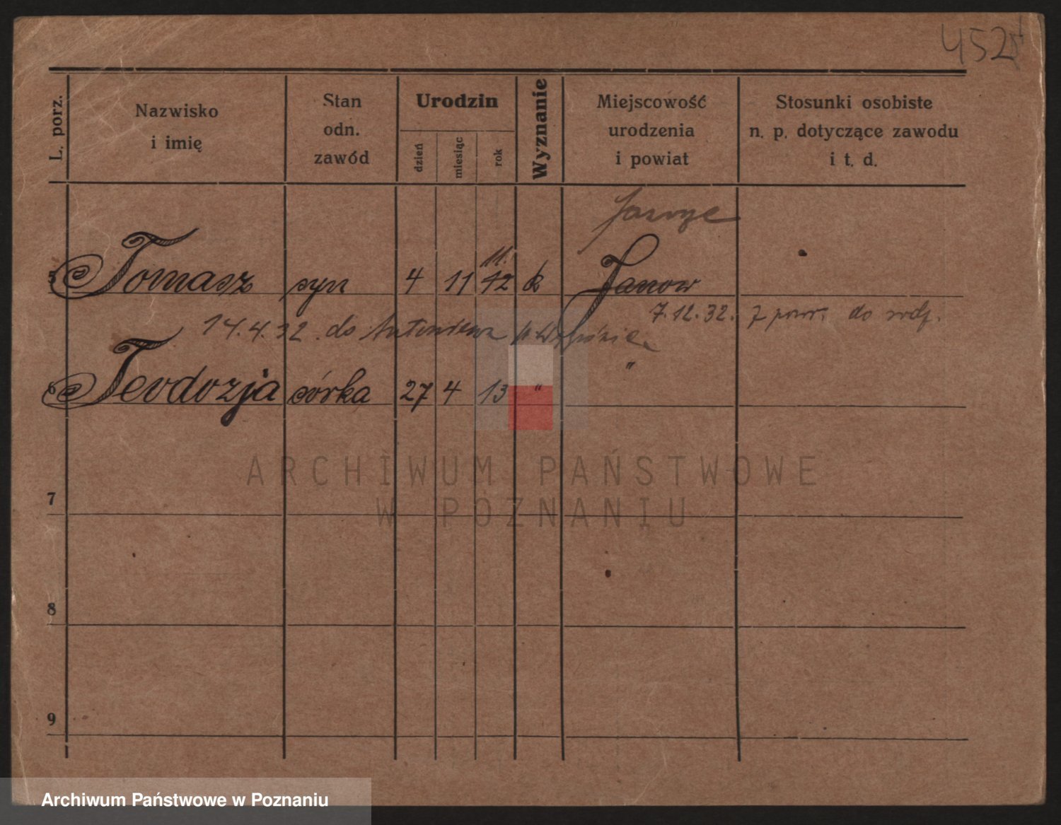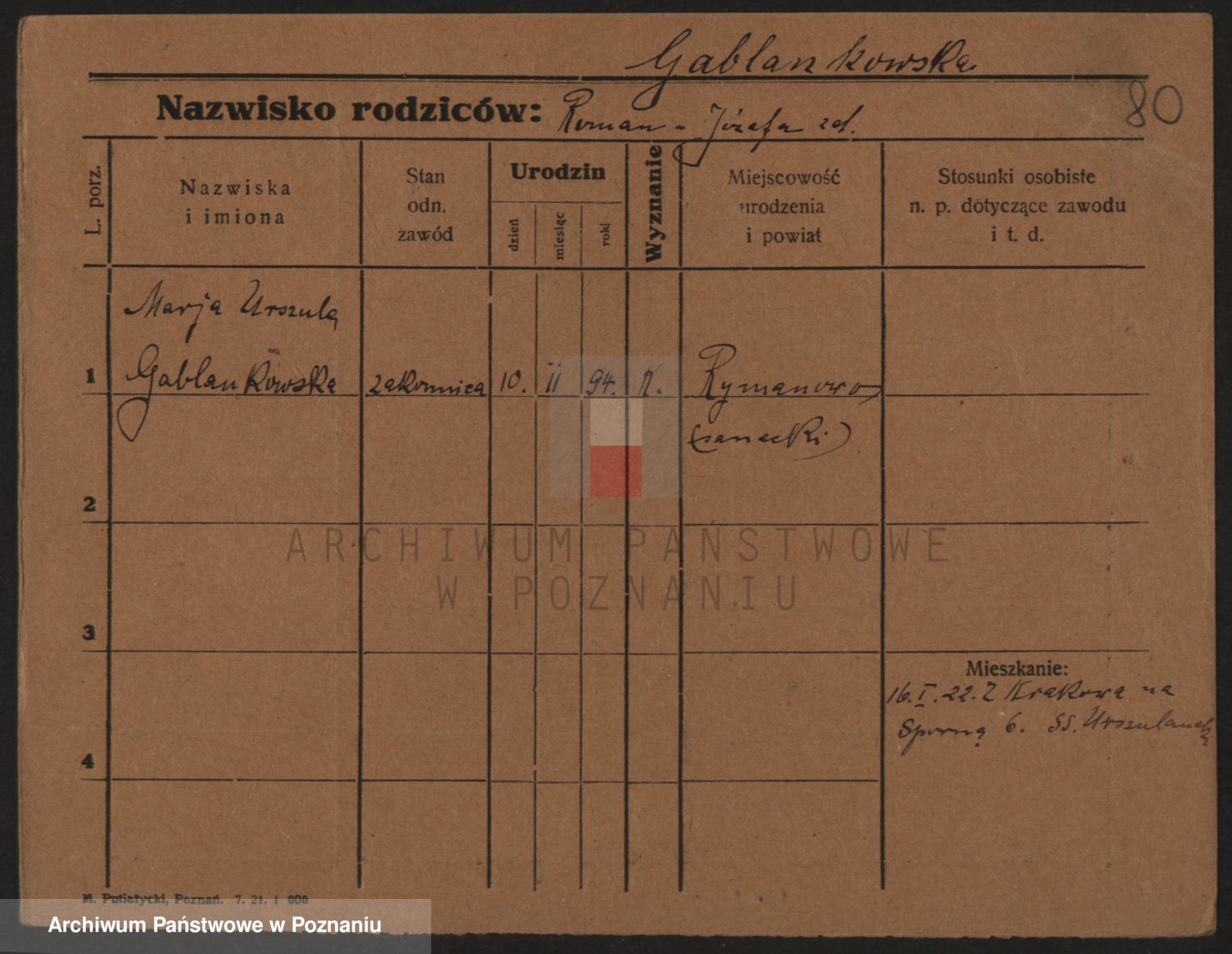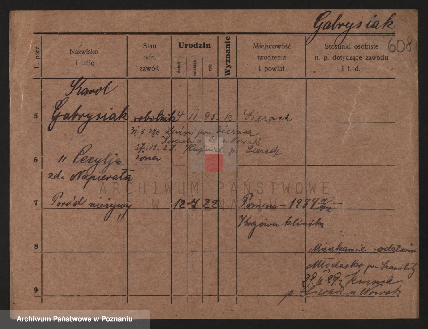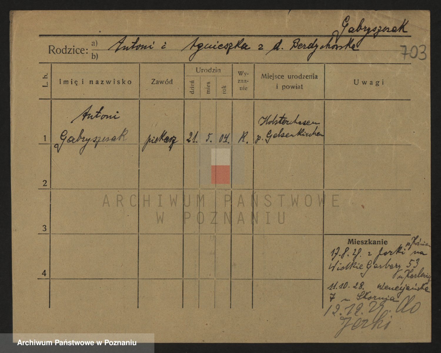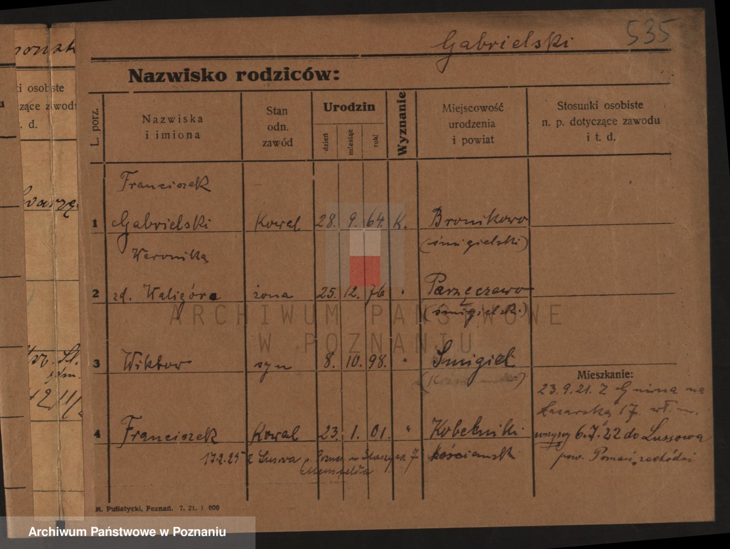 Podgląd karty osobowej dostępny jest po kliknięciu na nazwisko lub ikonkę karty. Można dokonywać powiększenia (ikony na górze) lub przechodzić między kolejnymi skanami (strzałki po bokach).