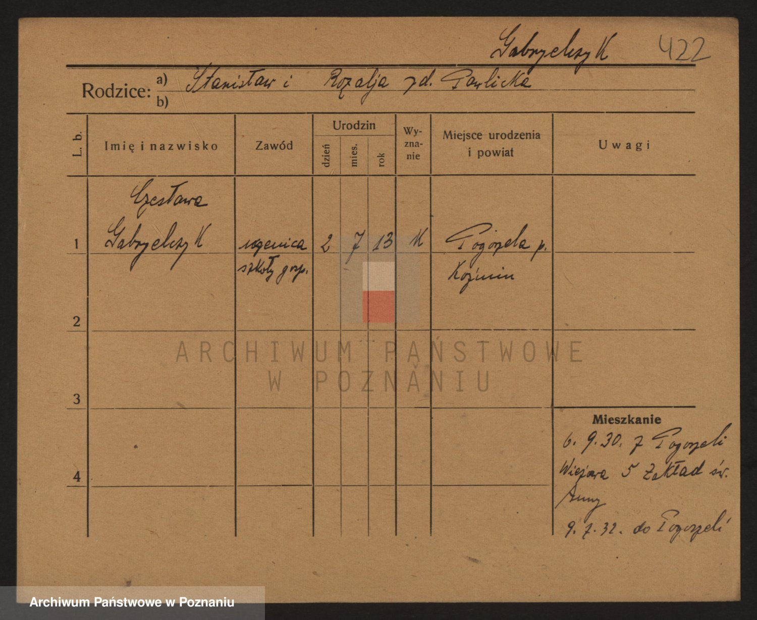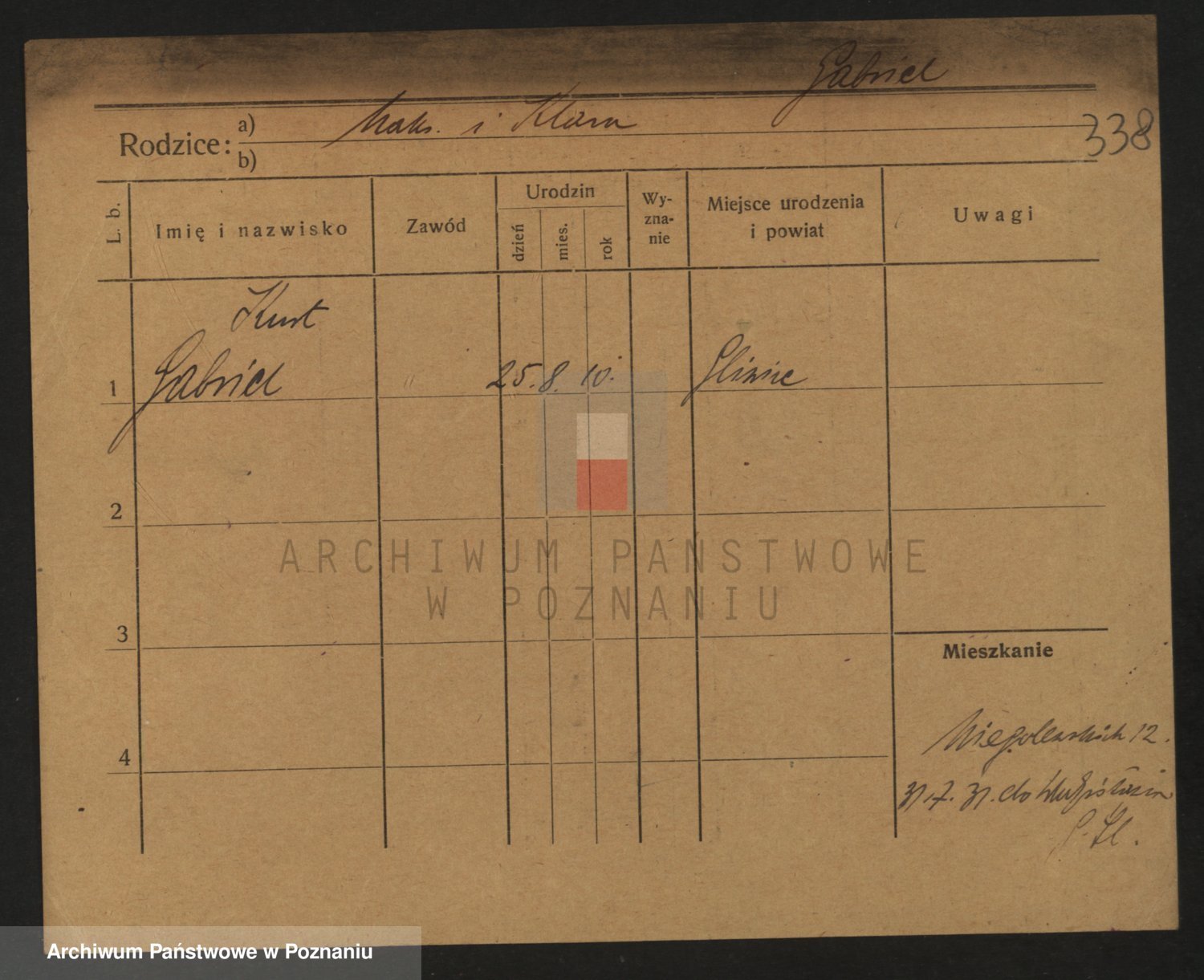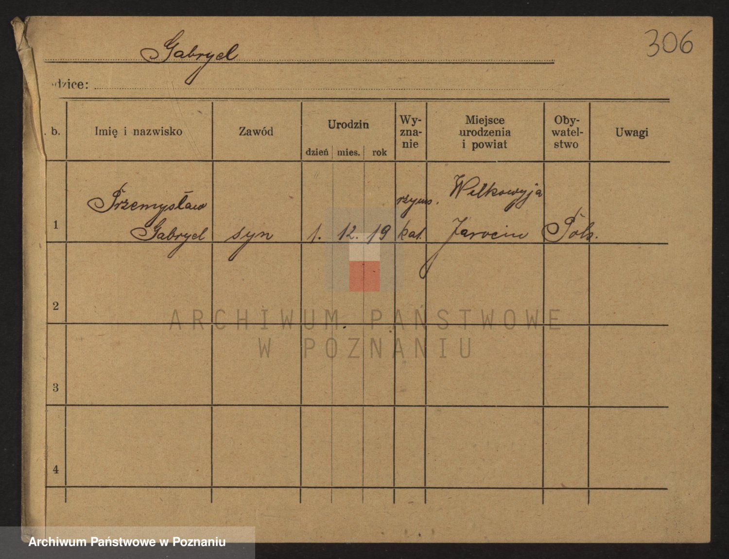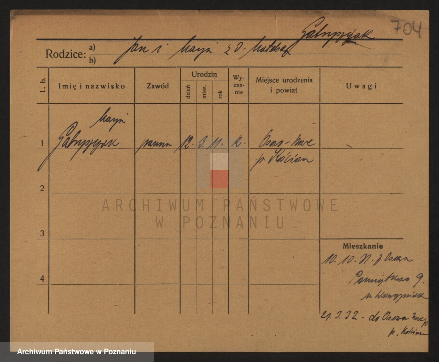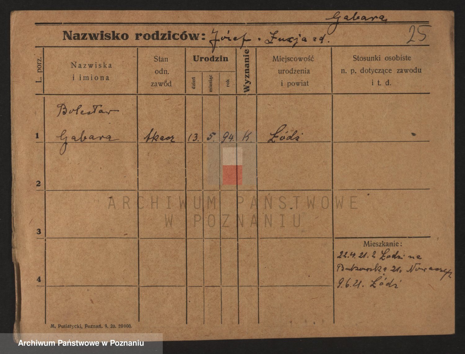 Podgląd karty osobowej dostępny jest po kliknięciu na nazwisko lub ikonkę karty. Można dokonywać powiększenia (ikony na górze) lub przechodzić między kolejnymi skanami (strzałki po bokach).