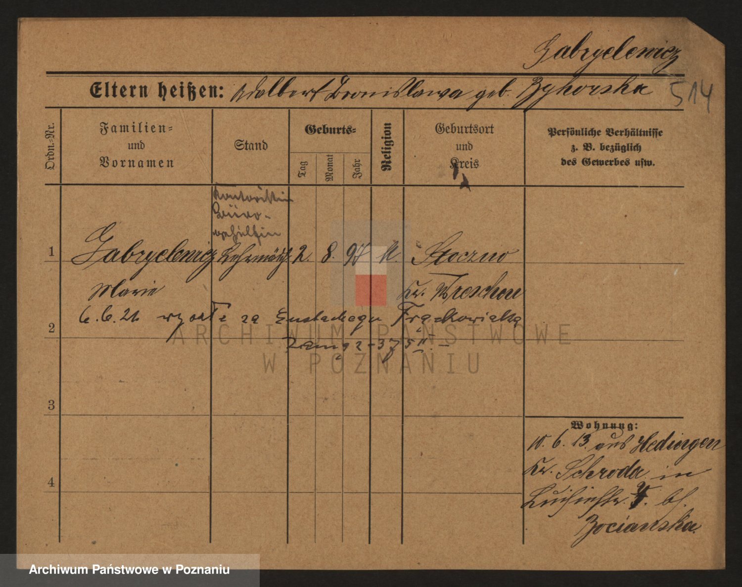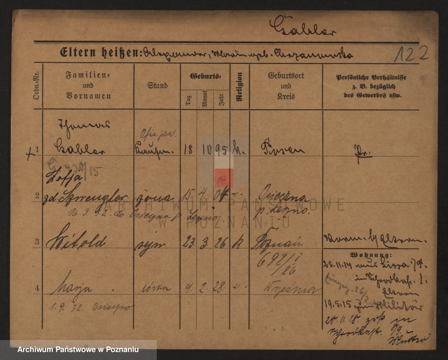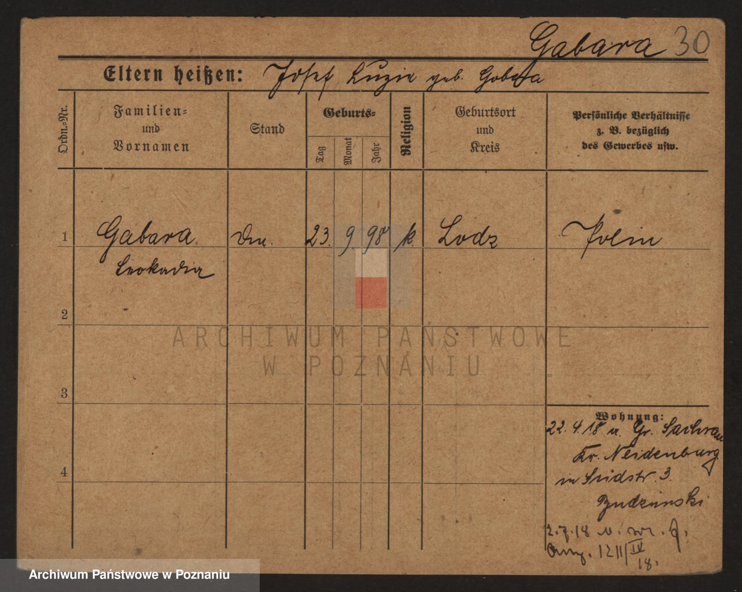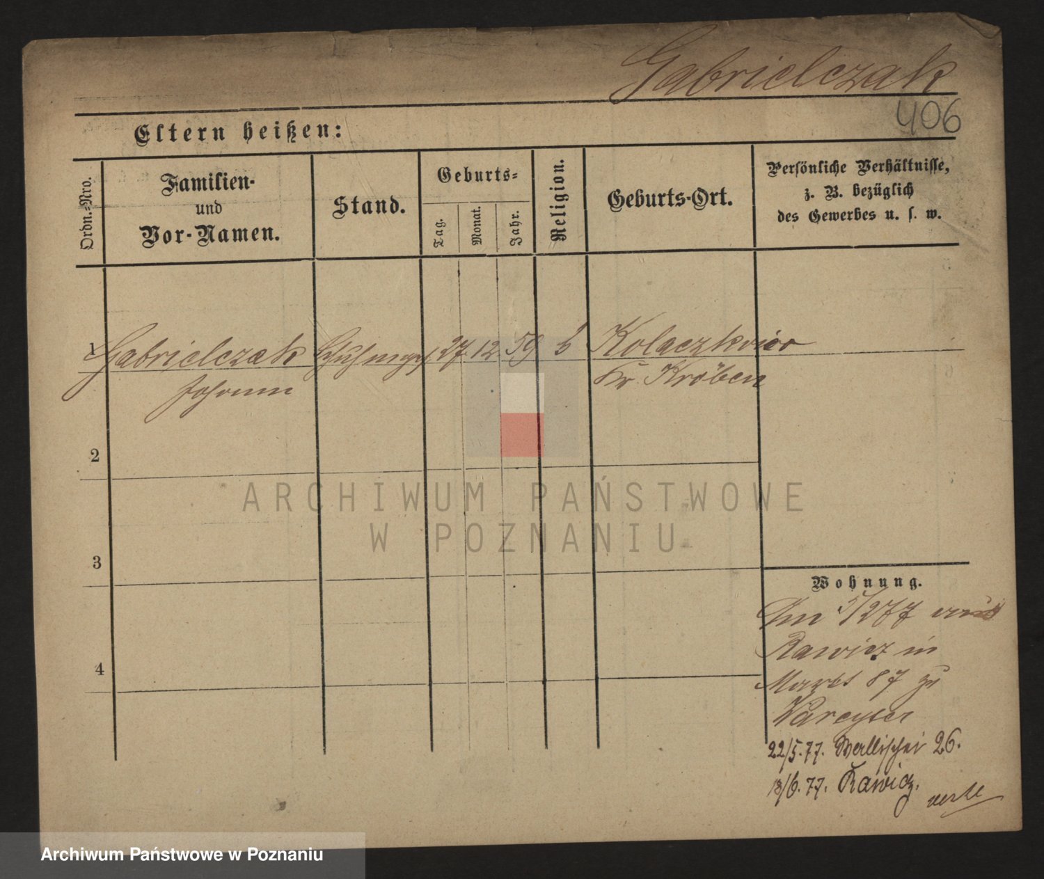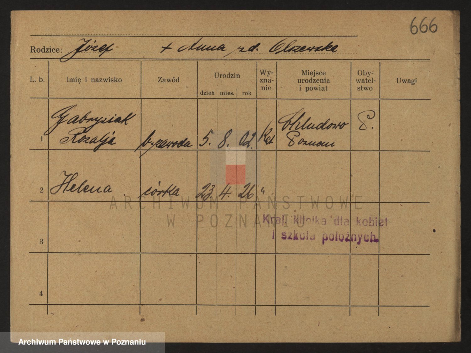 Podgląd karty osobowej dostępny jest po kliknięciu na nazwisko lub ikonkę karty. Można dokonywać powiększenia (ikony na górze) lub przechodzić między kolejnymi skanami (strzałki po bokach).