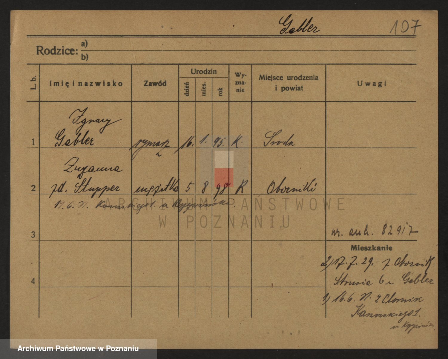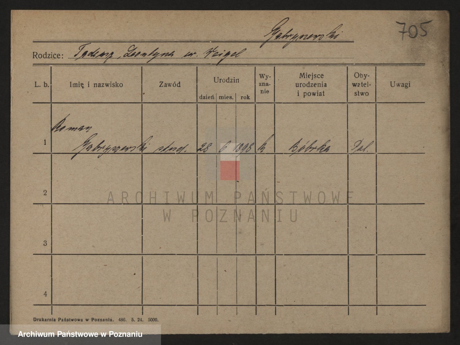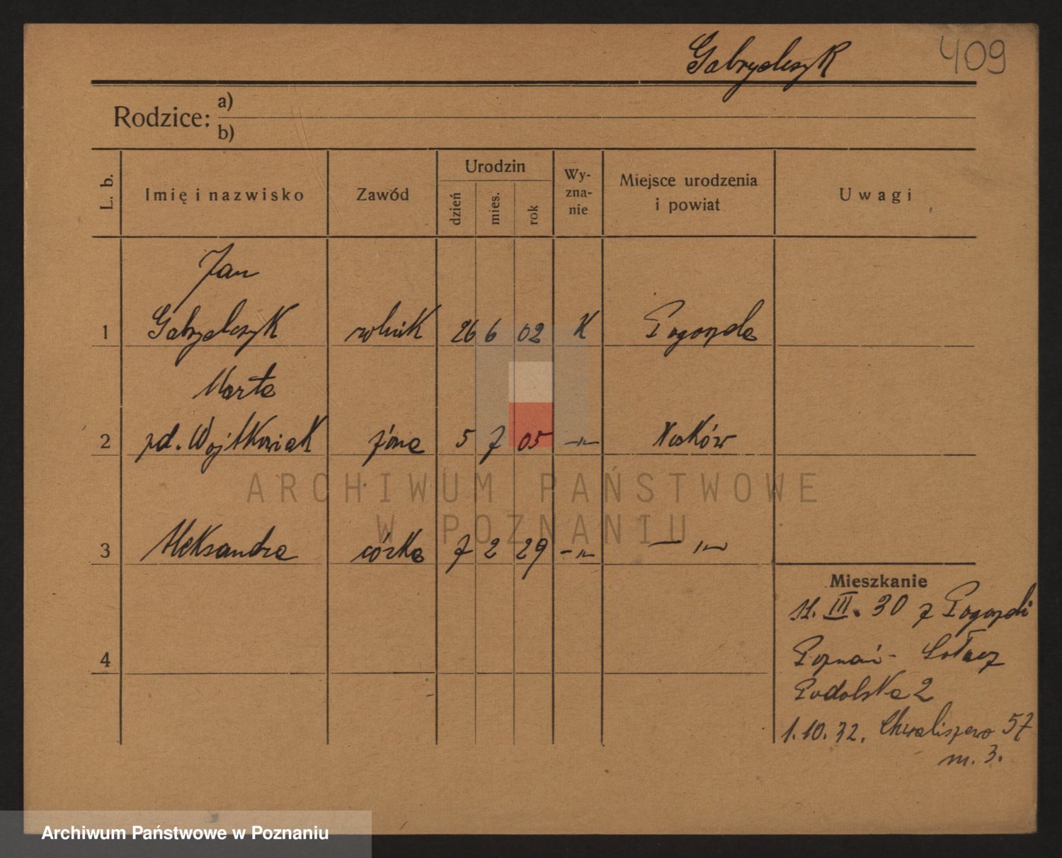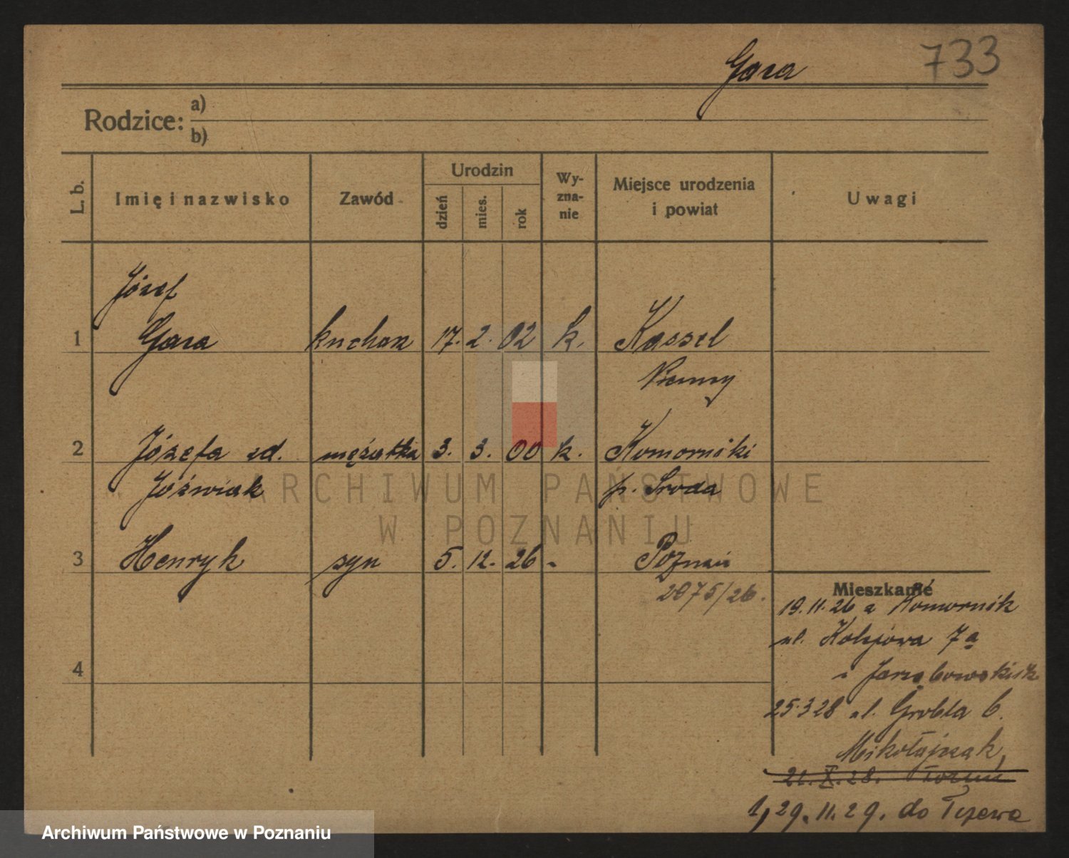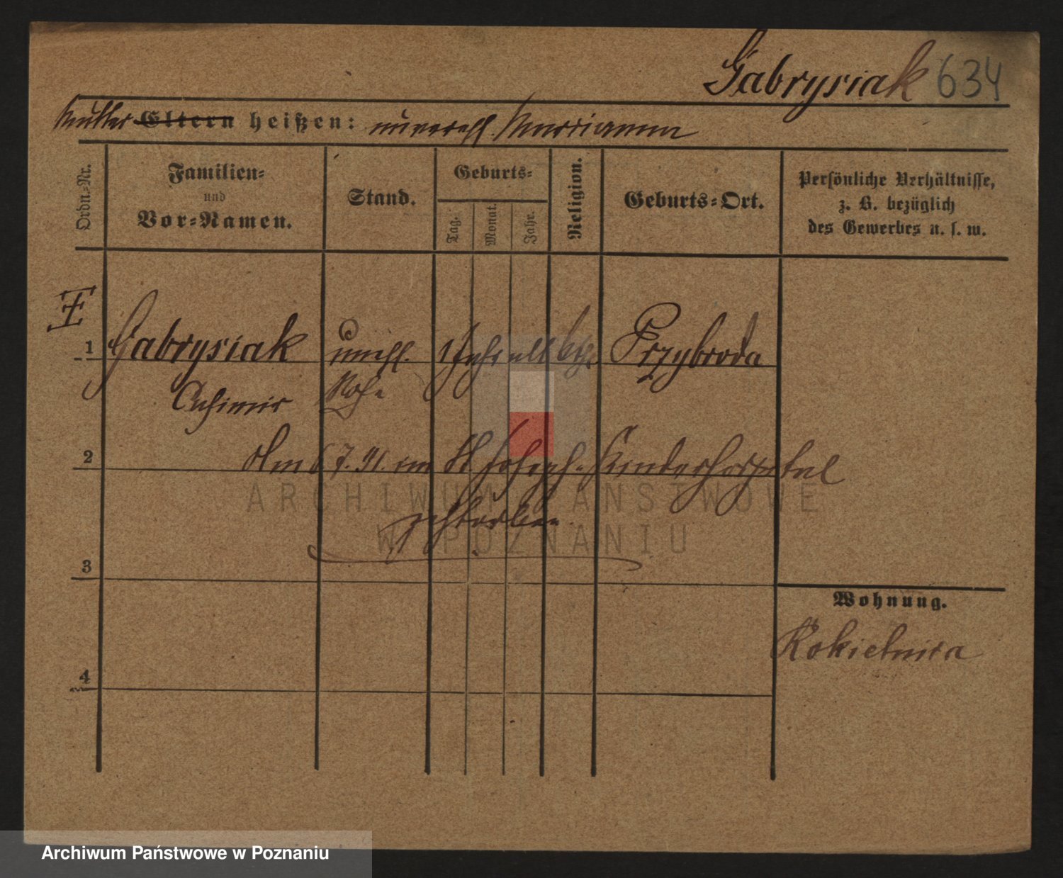 Podgląd karty osobowej dostępny jest po kliknięciu na nazwisko lub ikonkę karty. Można dokonywać powiększenia (ikony na górze) lub przechodzić między kolejnymi skanami (strzałki po bokach).