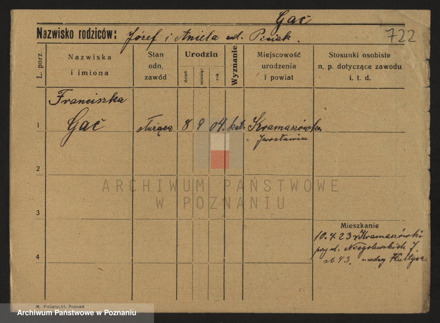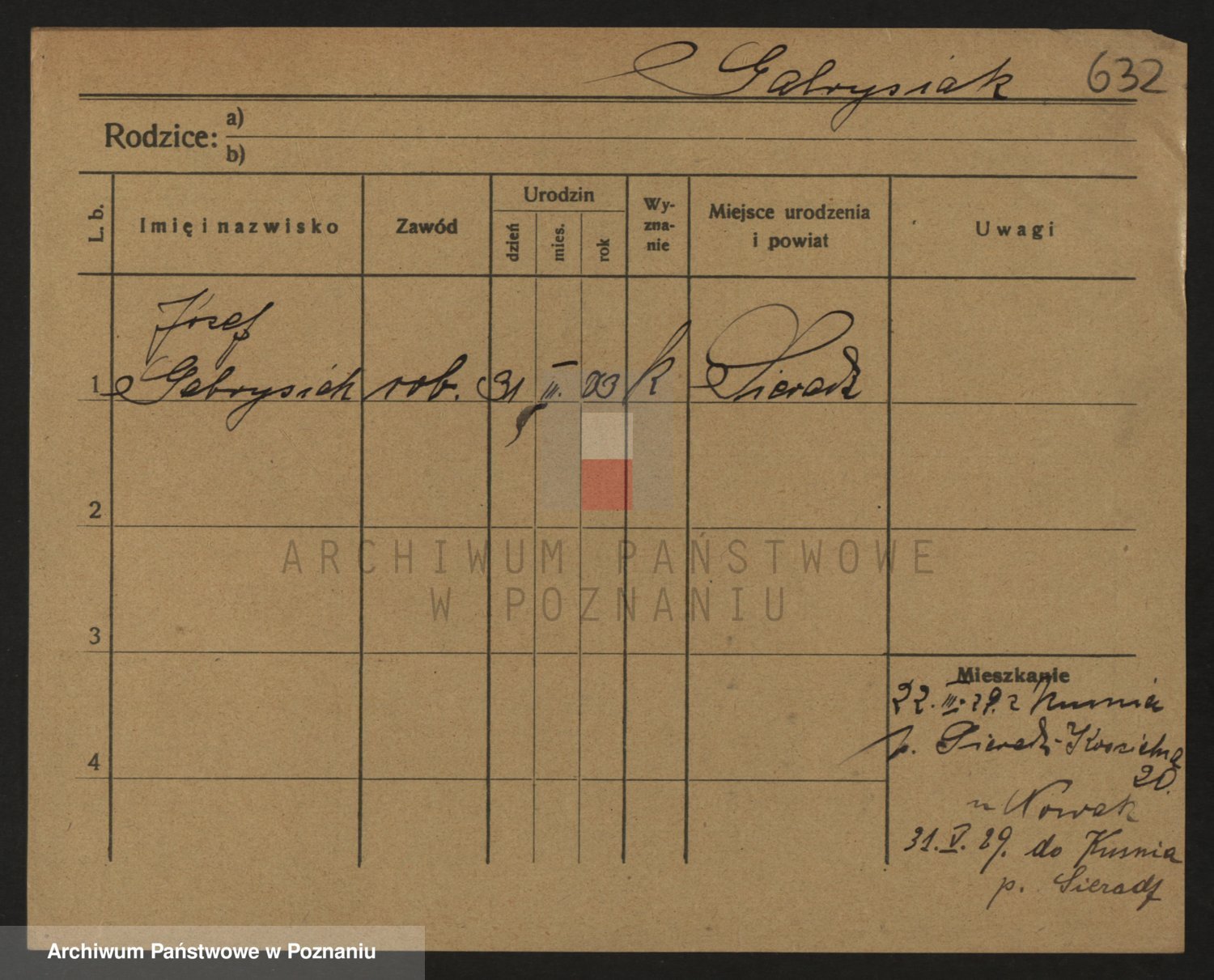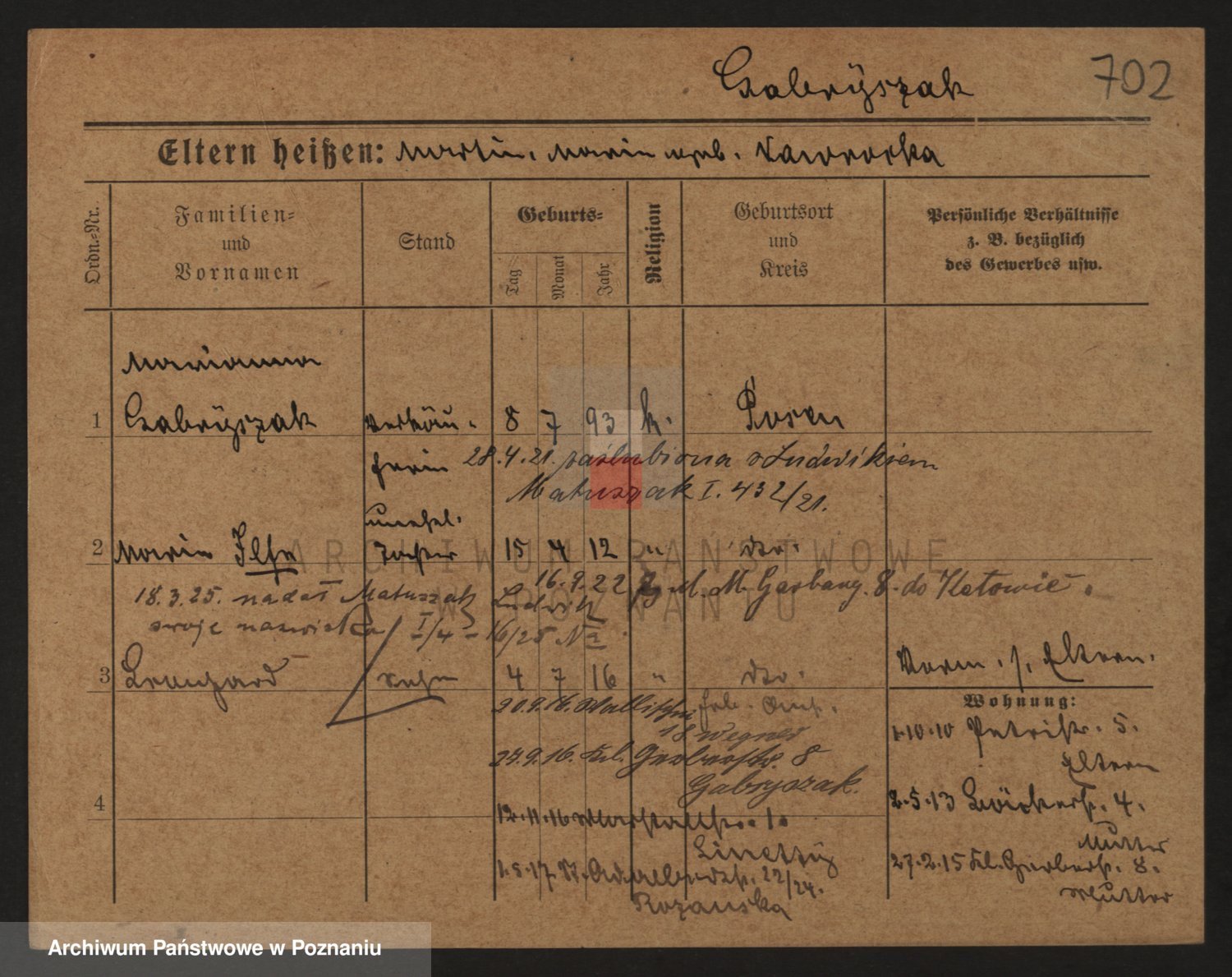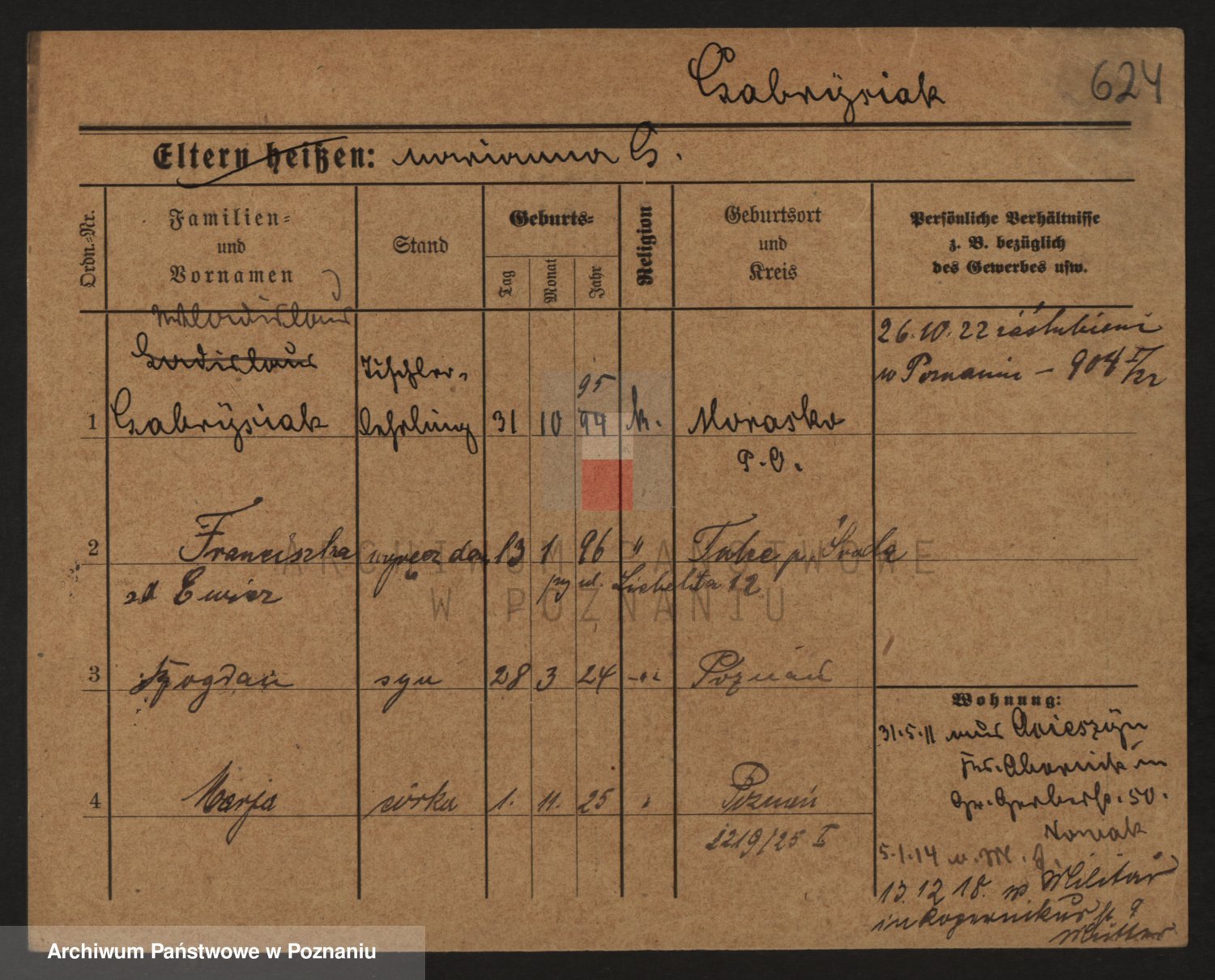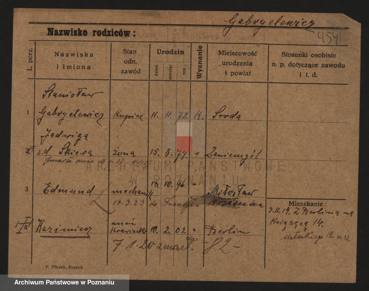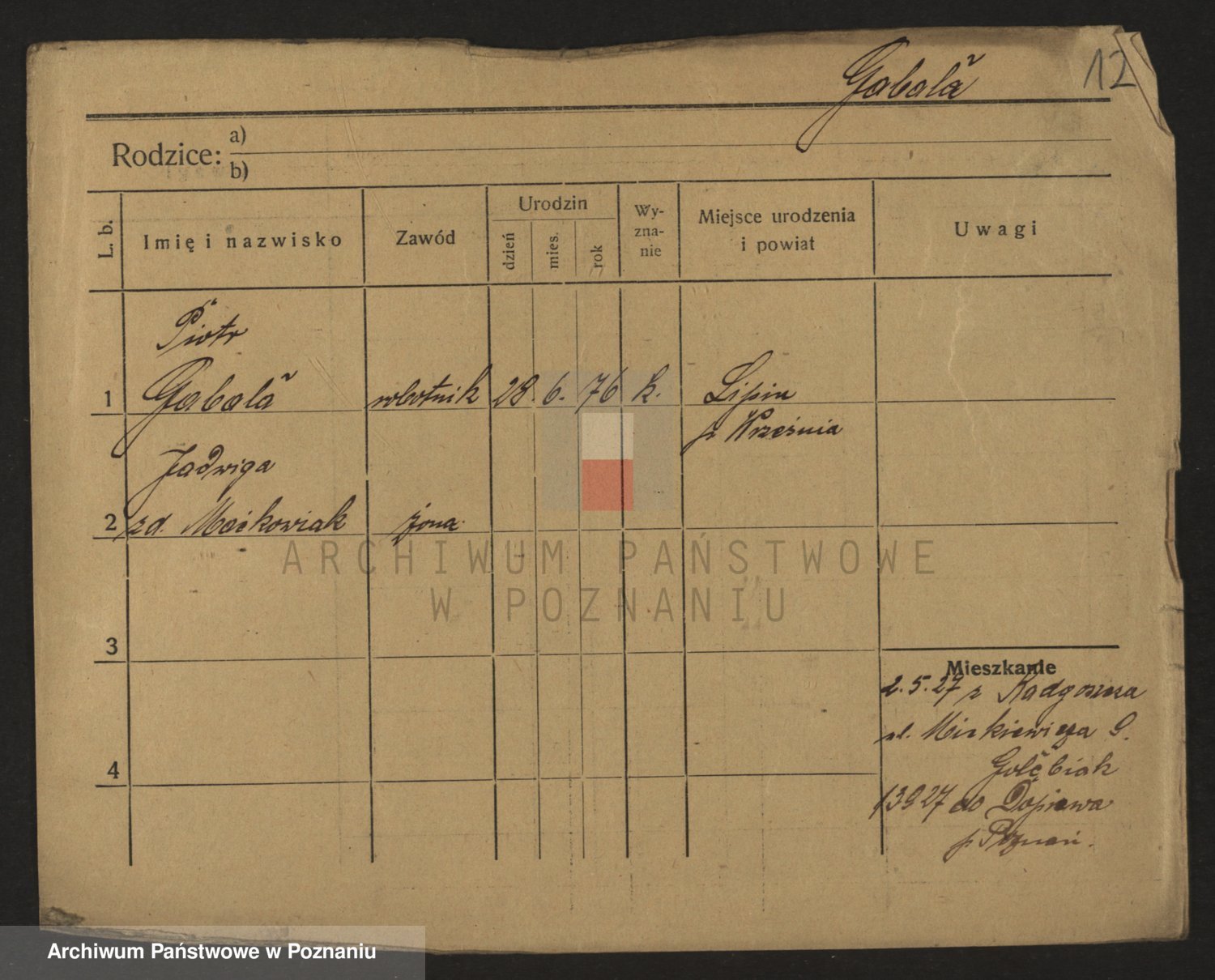Podgląd karty osobowej dostępny jest po kliknięciu na nazwisko lub ikonkę karty. Można dokonywać powiększenia (ikony na górze) lub przechodzić między kolejnymi skanami (strzałki po bokach).