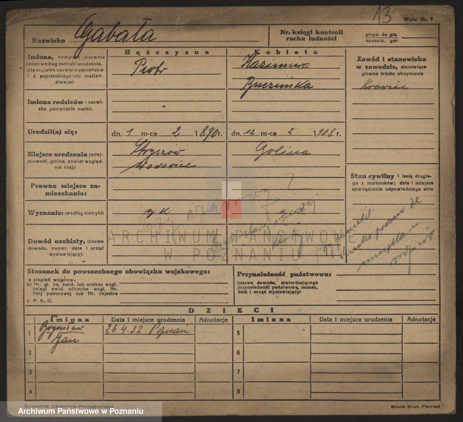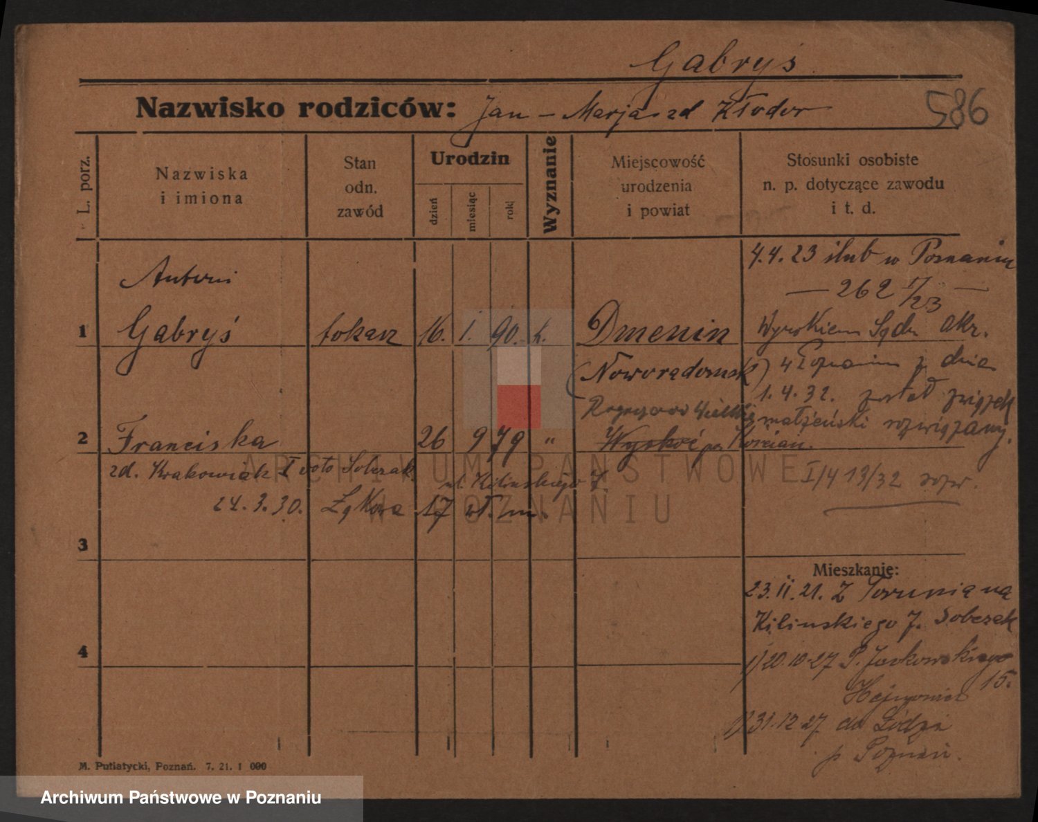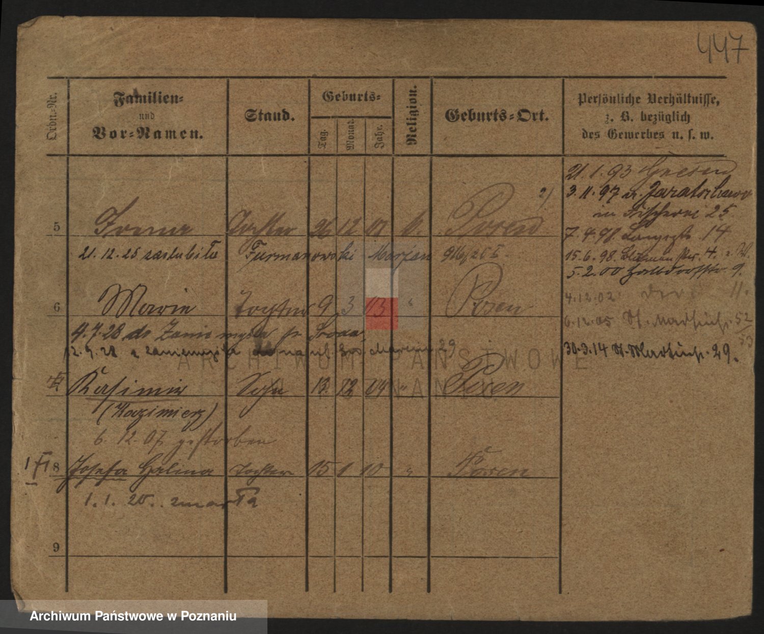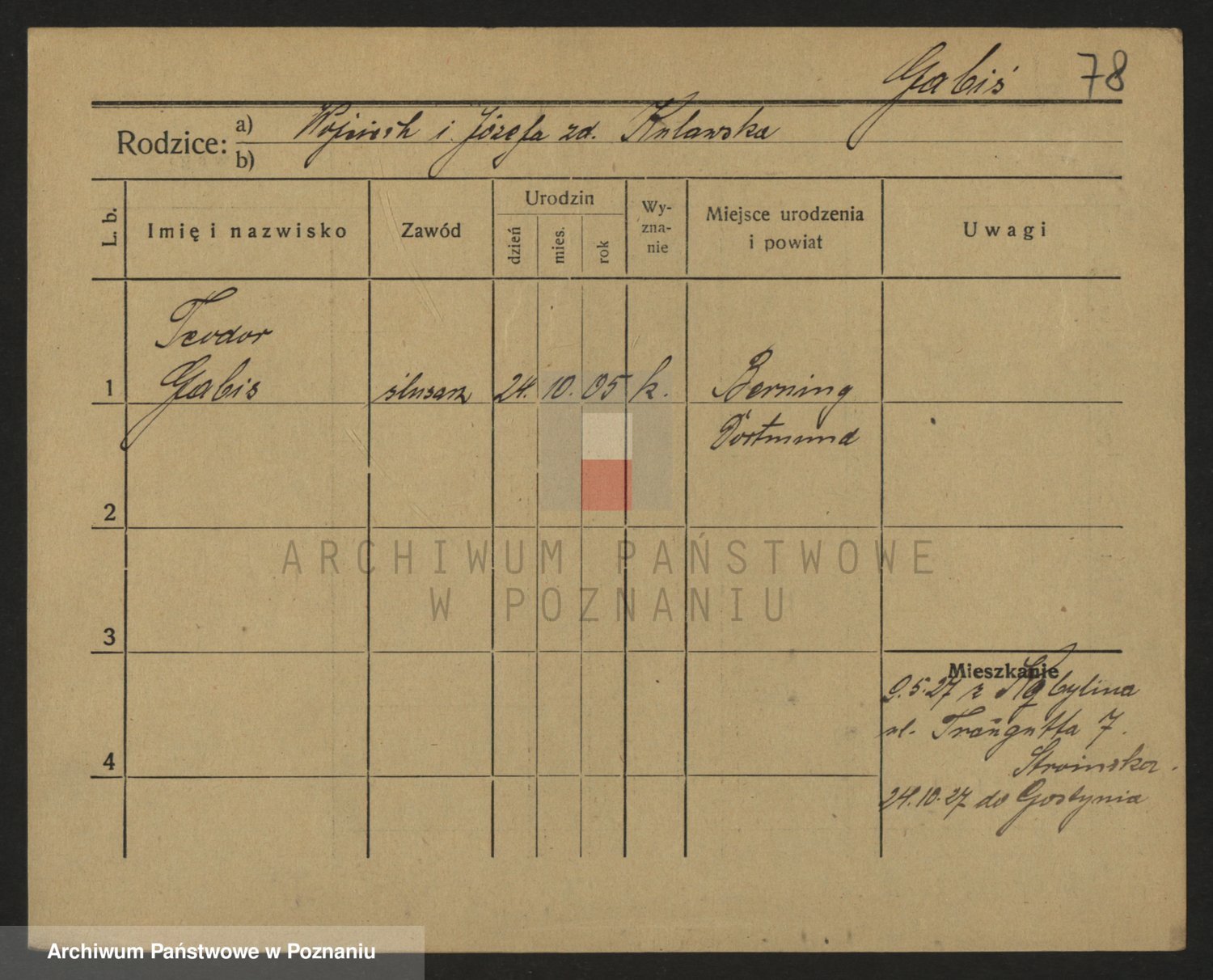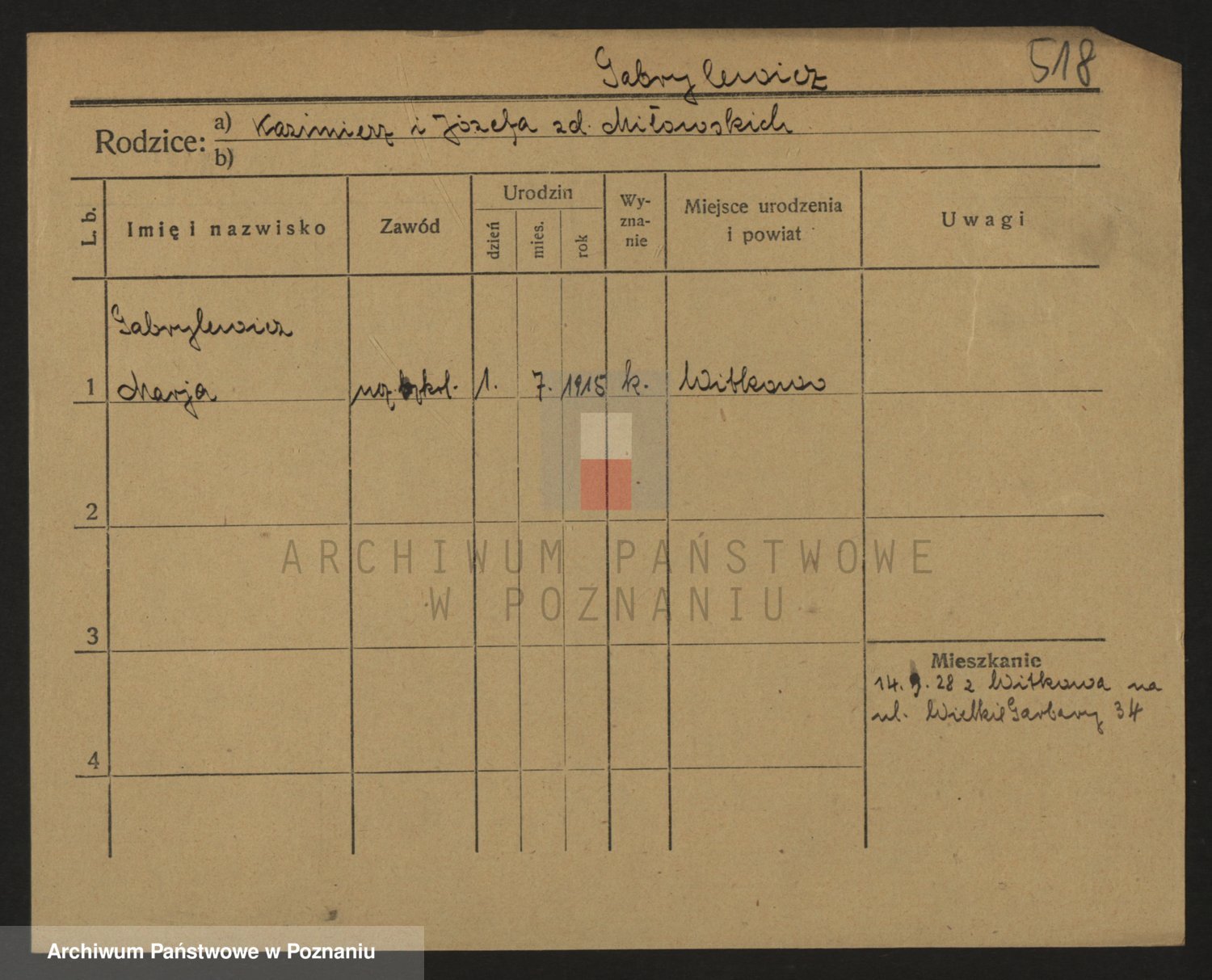 Podgląd karty osobowej dostępny jest po kliknięciu na nazwisko lub ikonkę karty. Można dokonywać powiększenia (ikony na górze) lub przechodzić między kolejnymi skanami (strzałki po bokach).