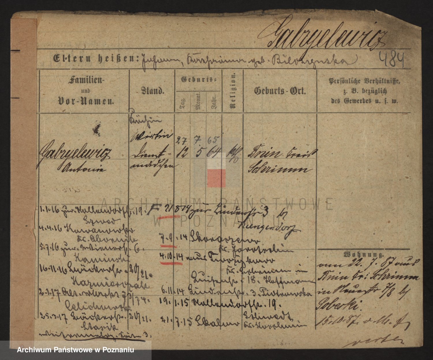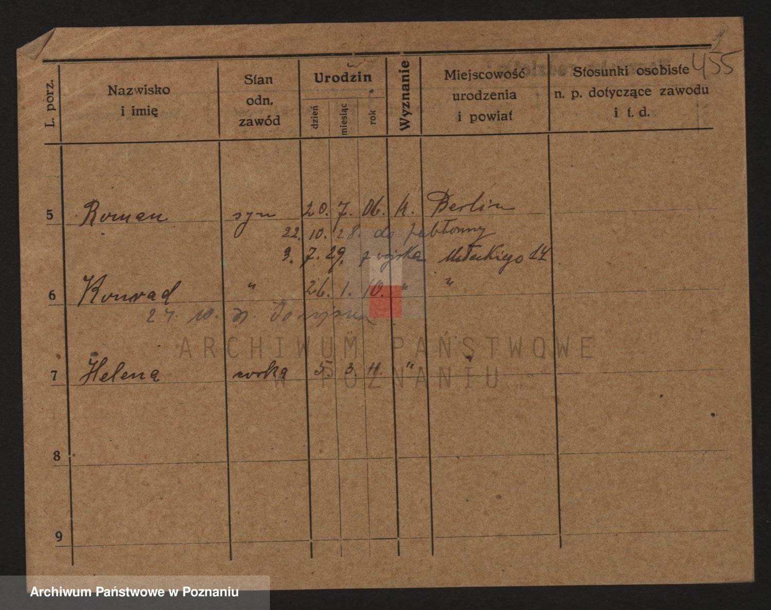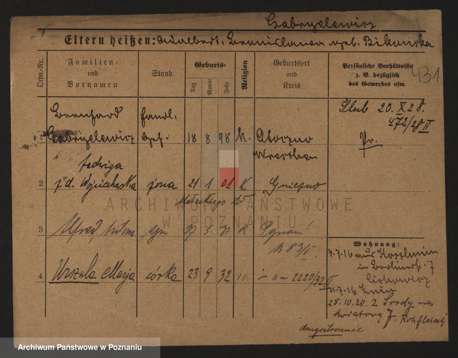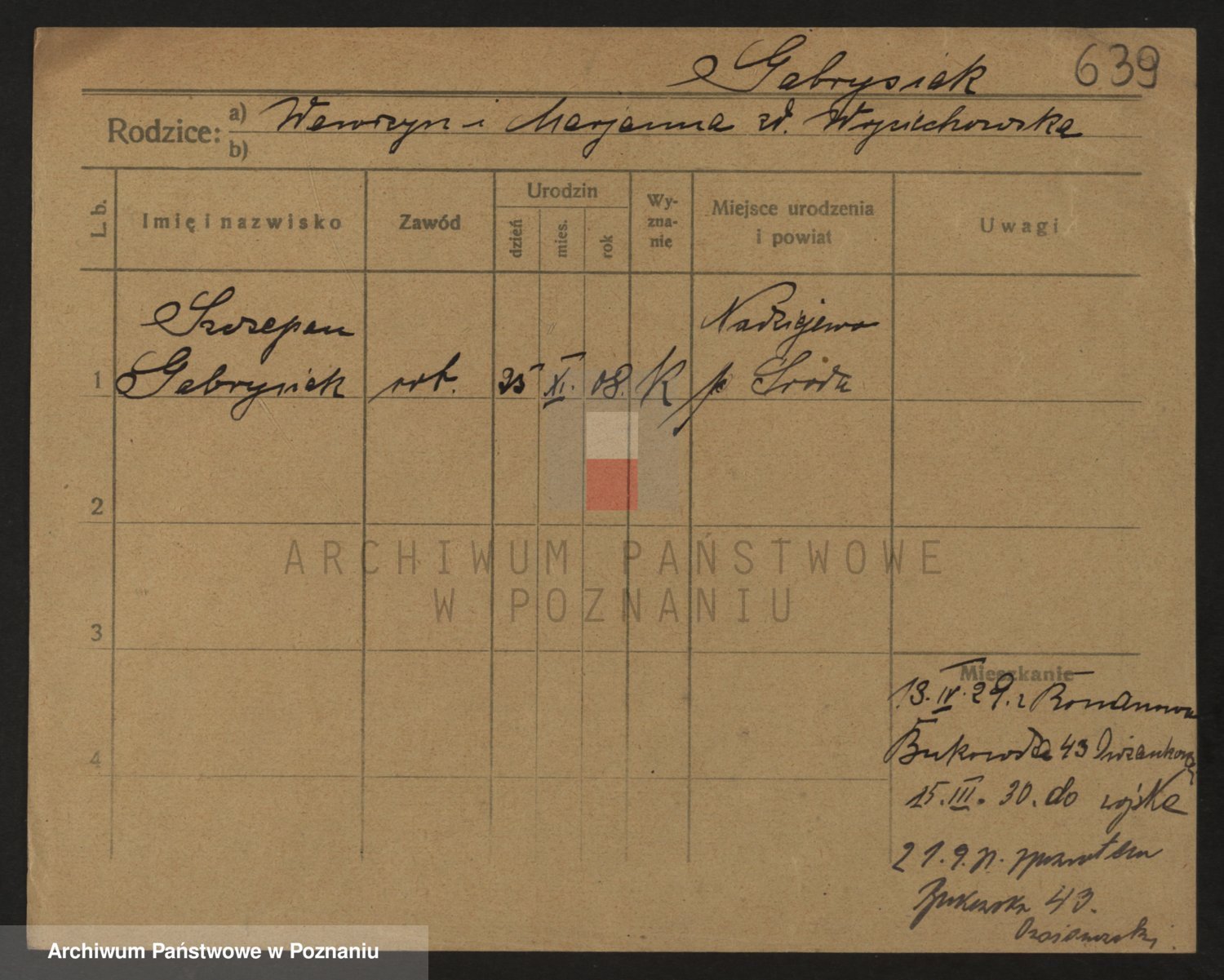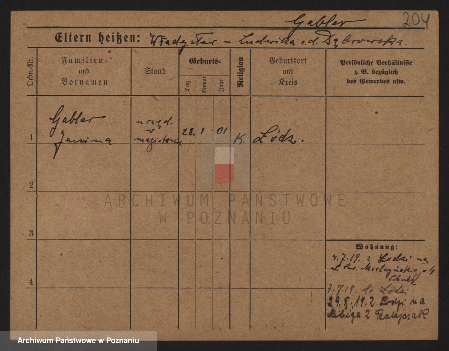 Podgląd karty osobowej dostępny jest po kliknięciu na nazwisko lub ikonkę karty. Można dokonywać powiększenia (ikony na górze) lub przechodzić między kolejnymi skanami (strzałki po bokach).