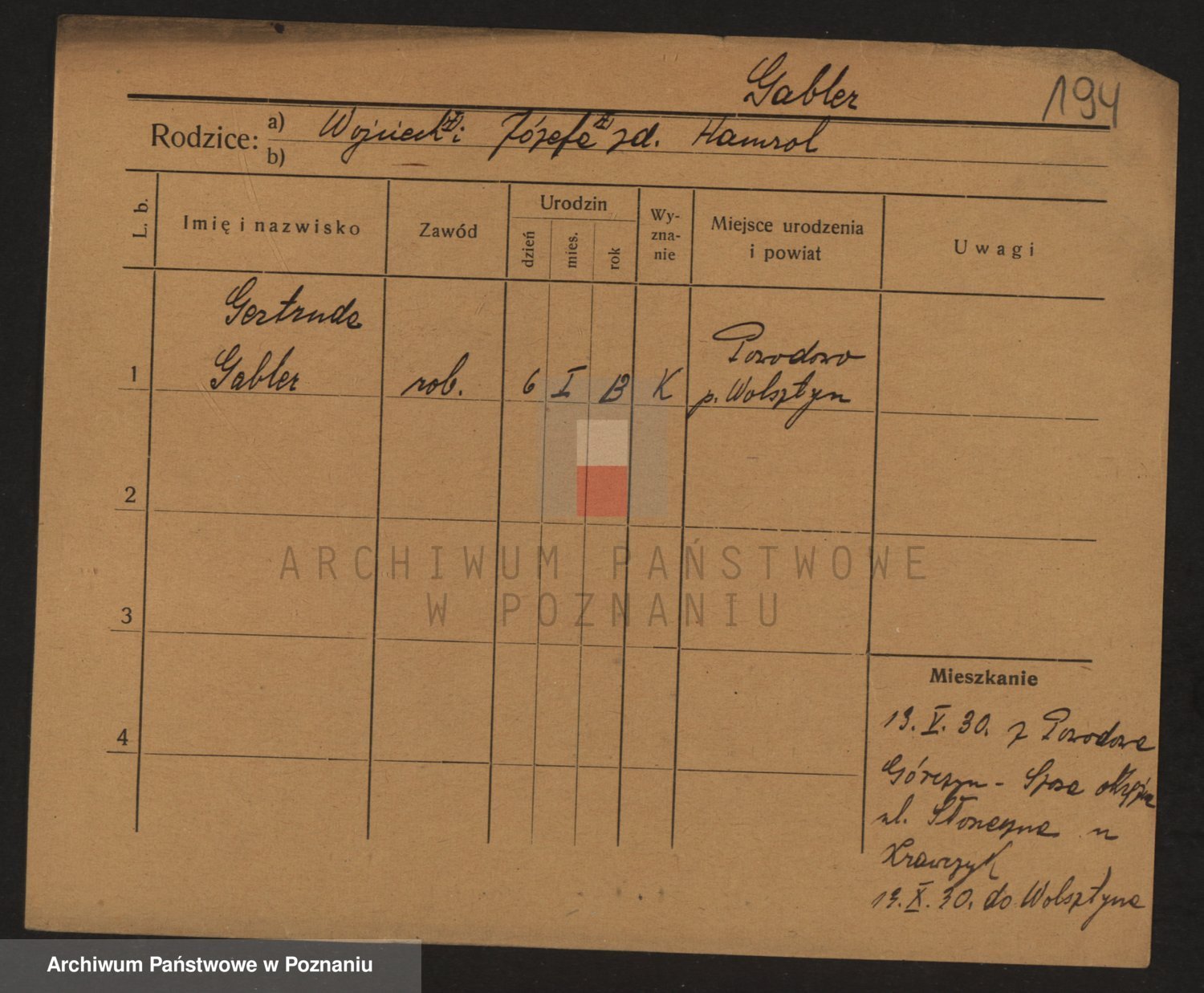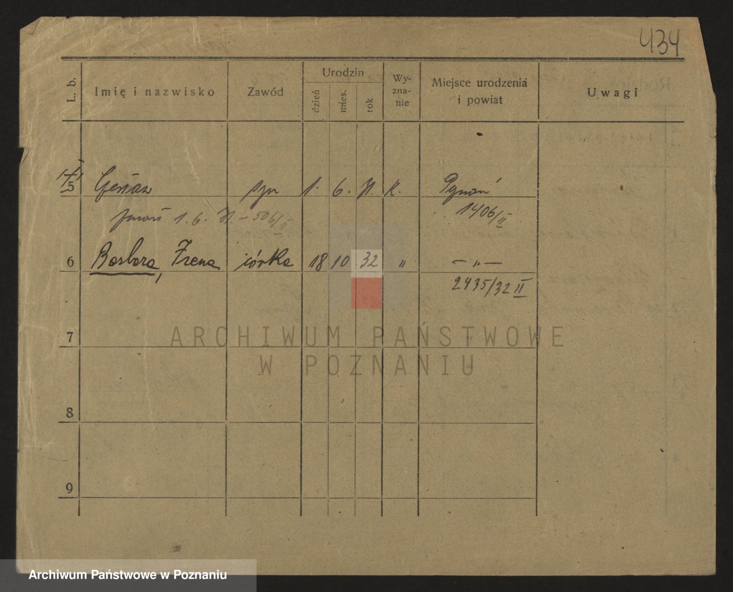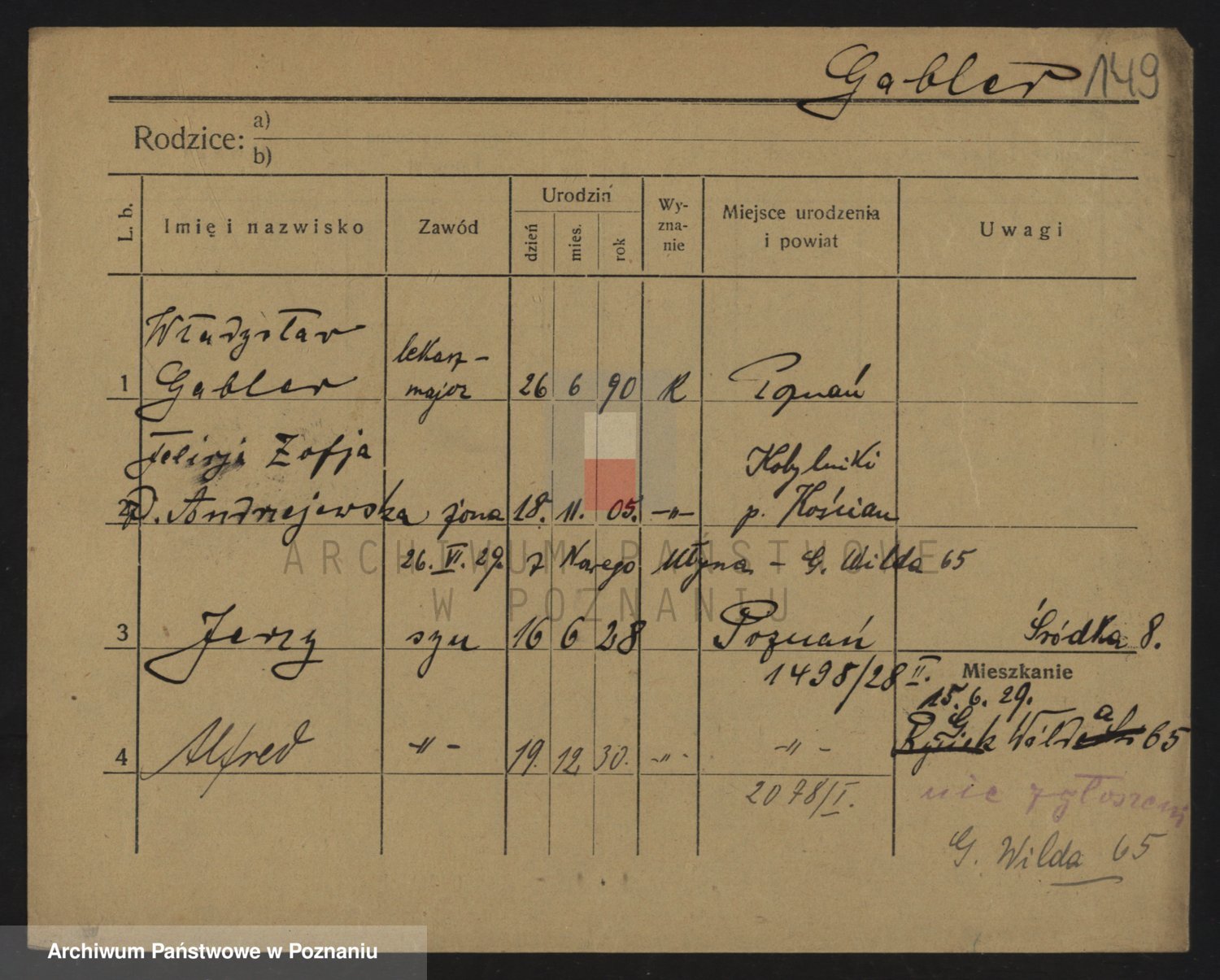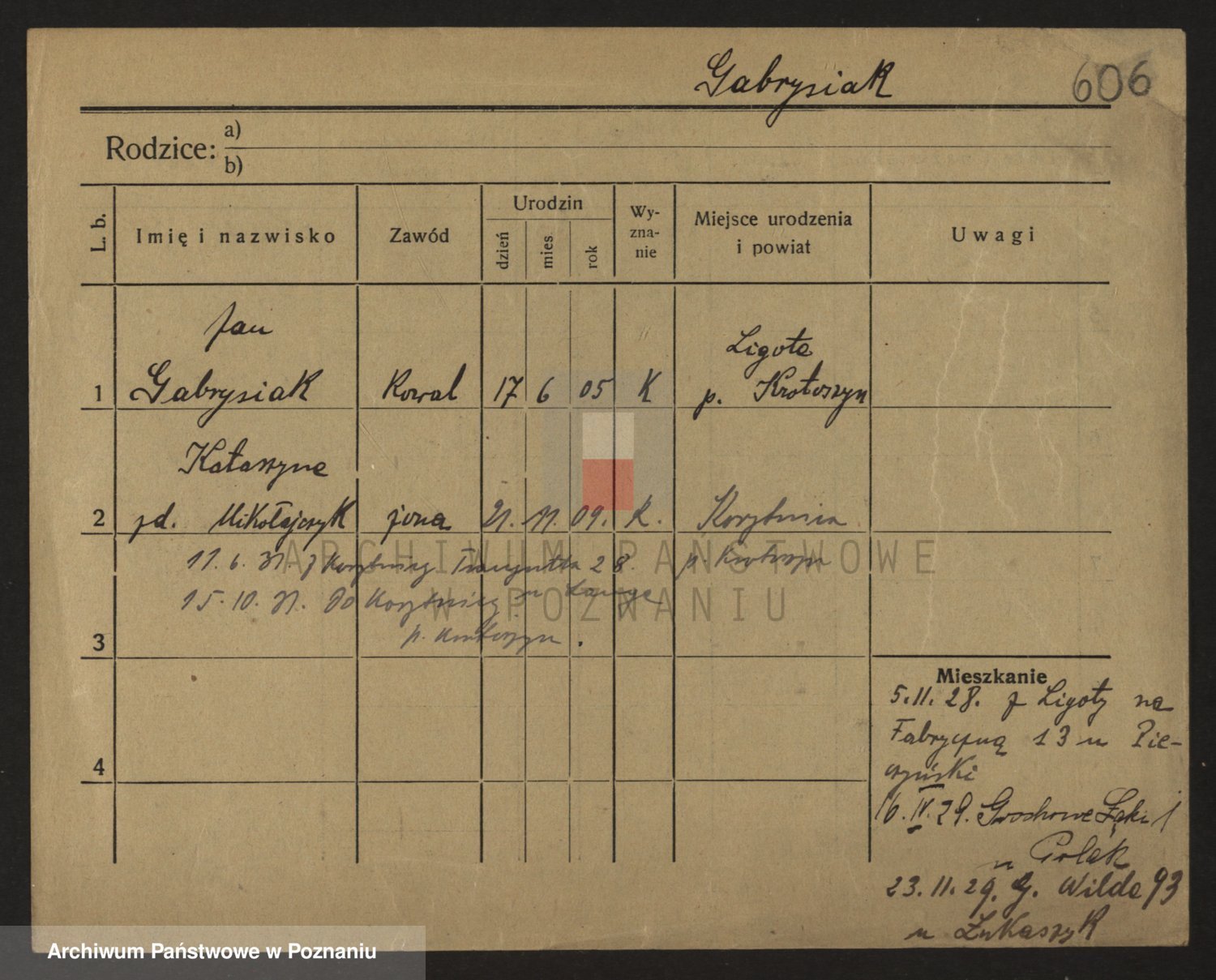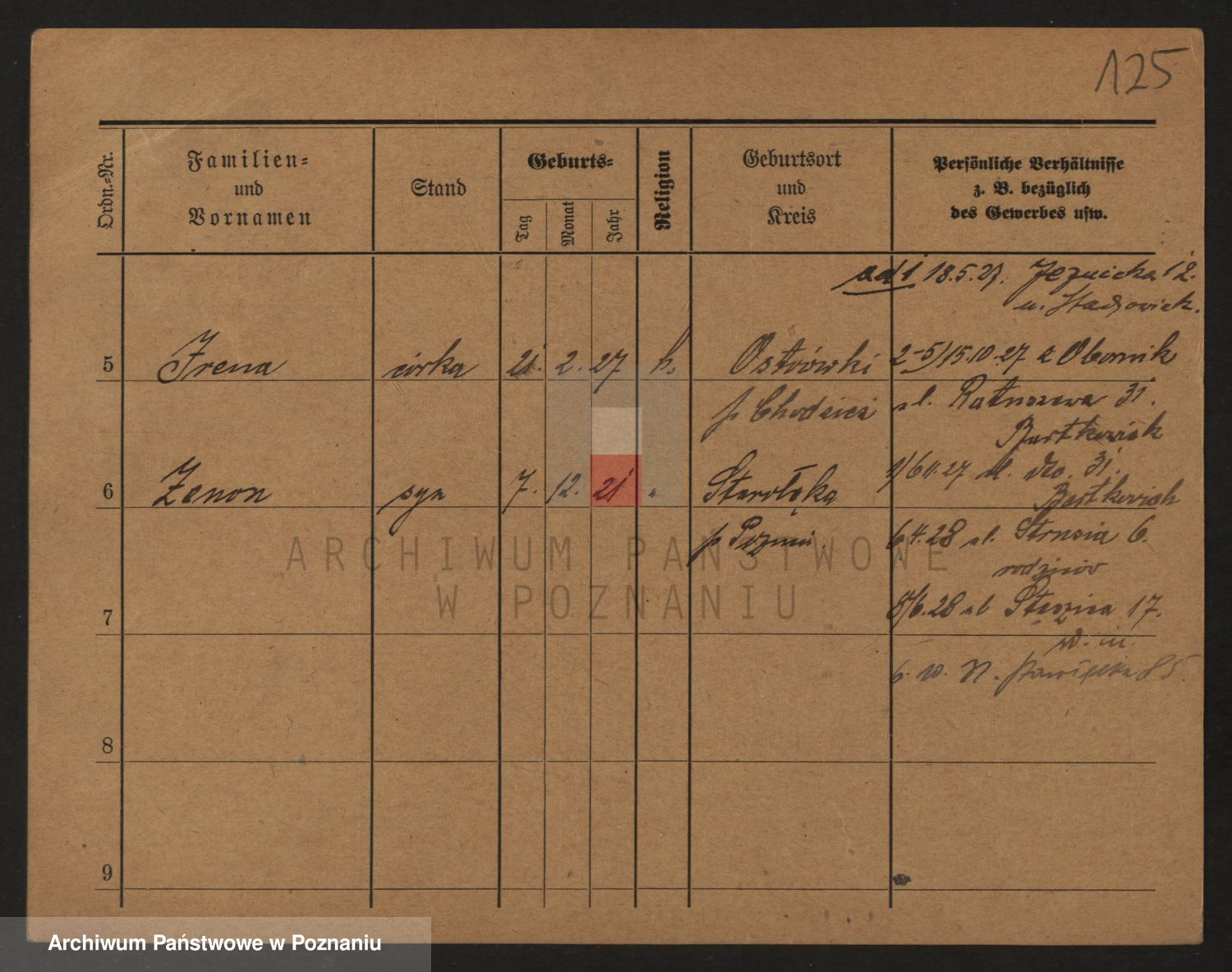 Podgląd karty osobowej dostępny jest po kliknięciu na nazwisko lub ikonkę karty. Można dokonywać powiększenia (ikony na górze) lub przechodzić między kolejnymi skanami (strzałki po bokach).