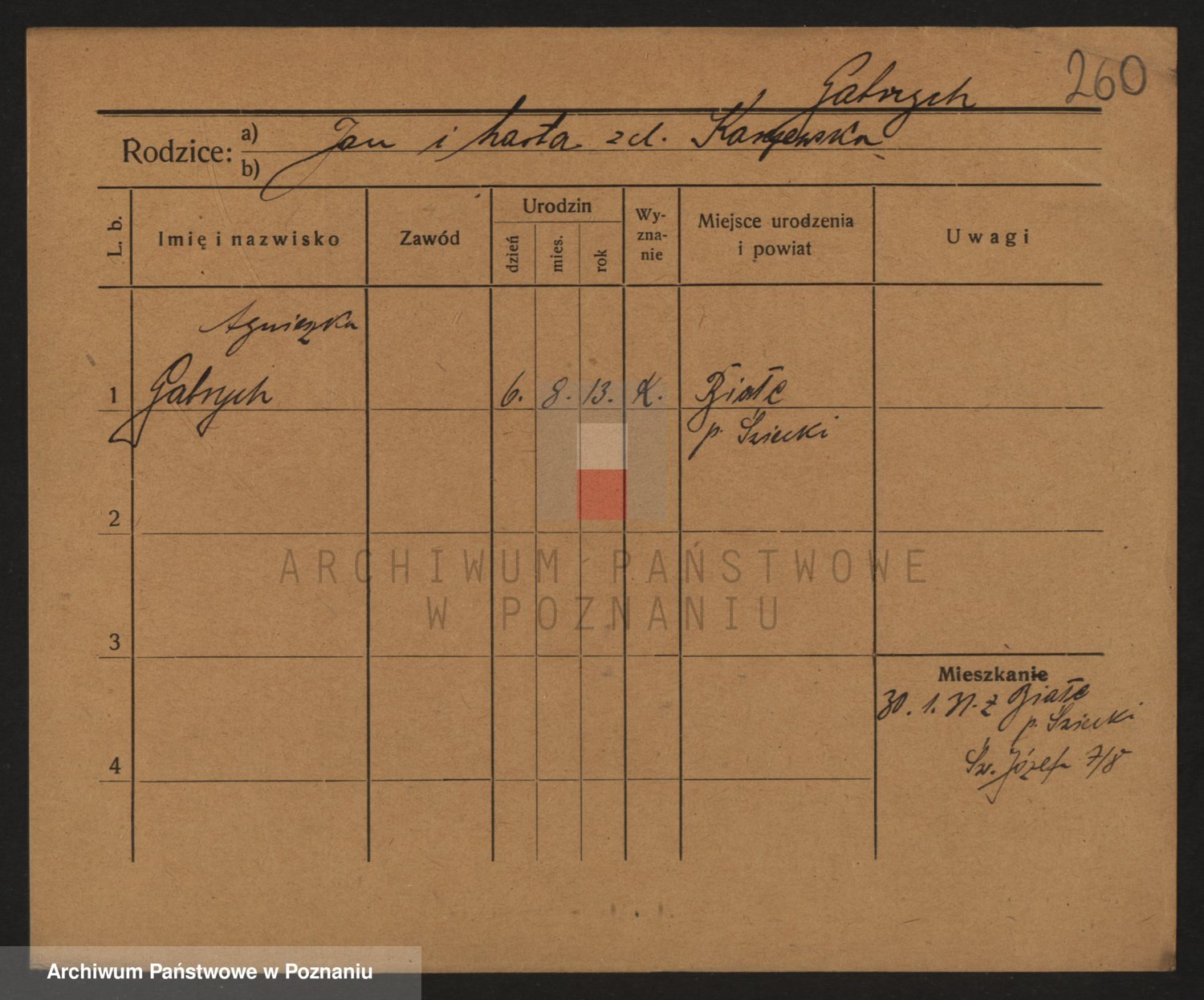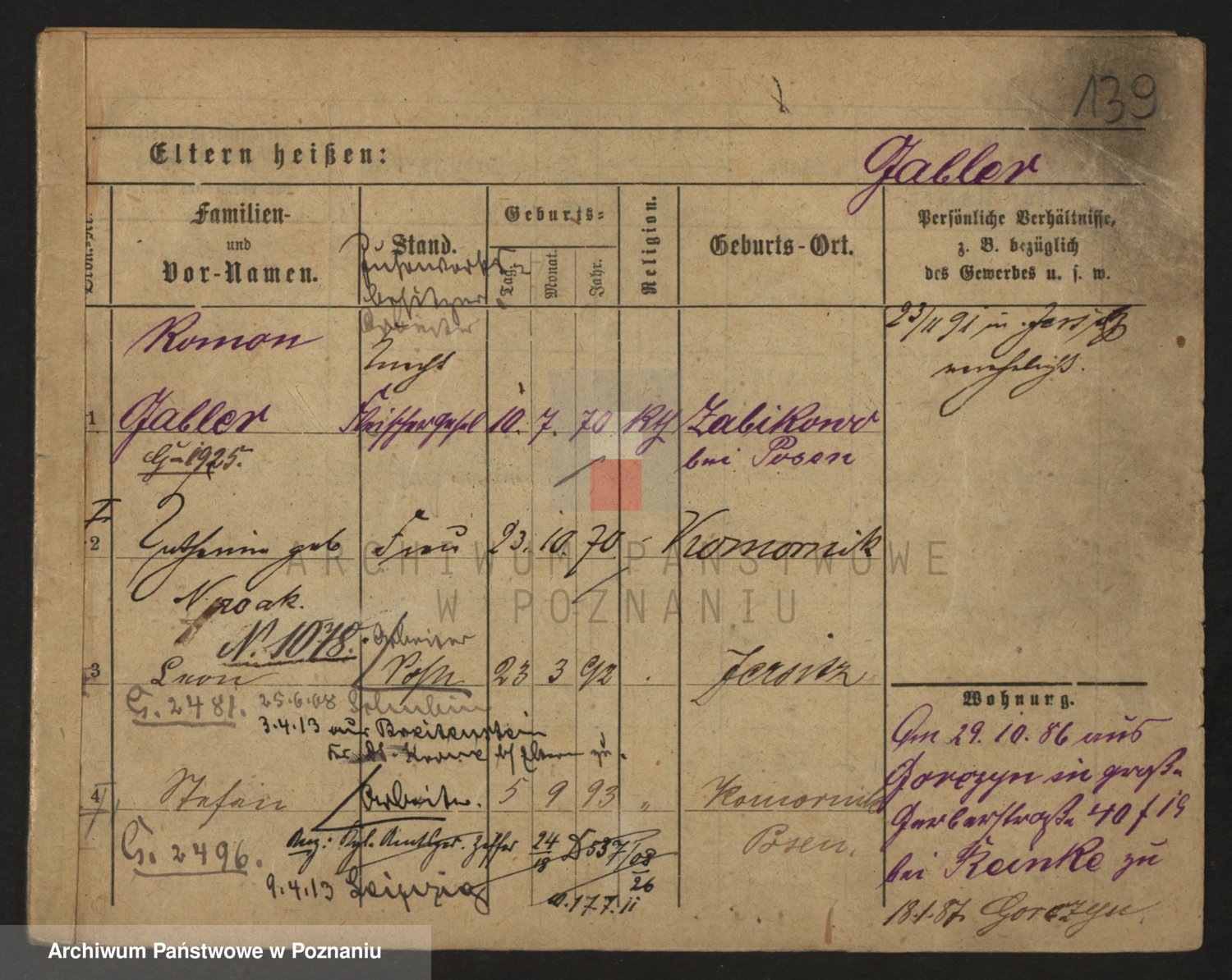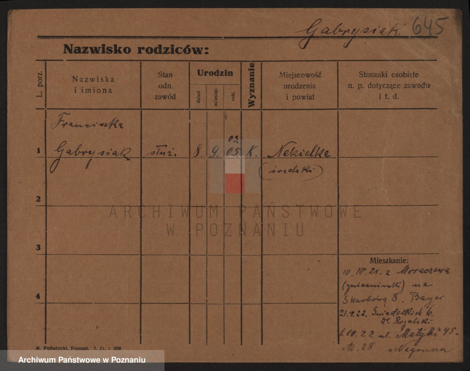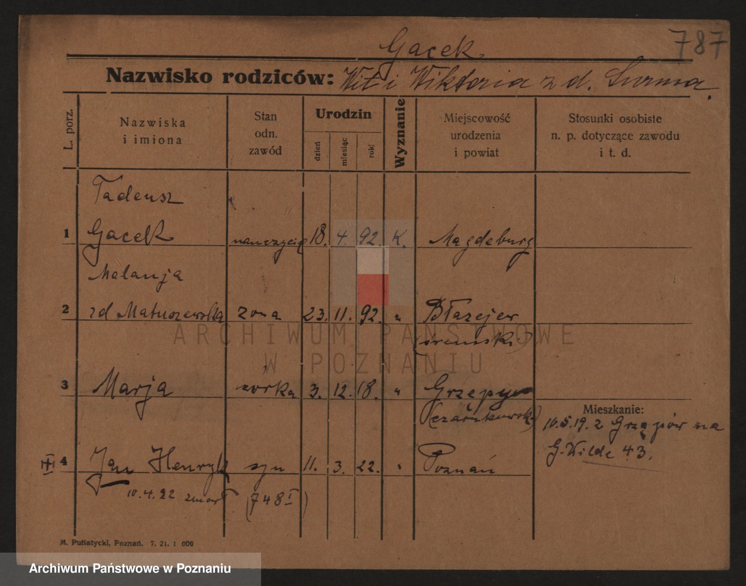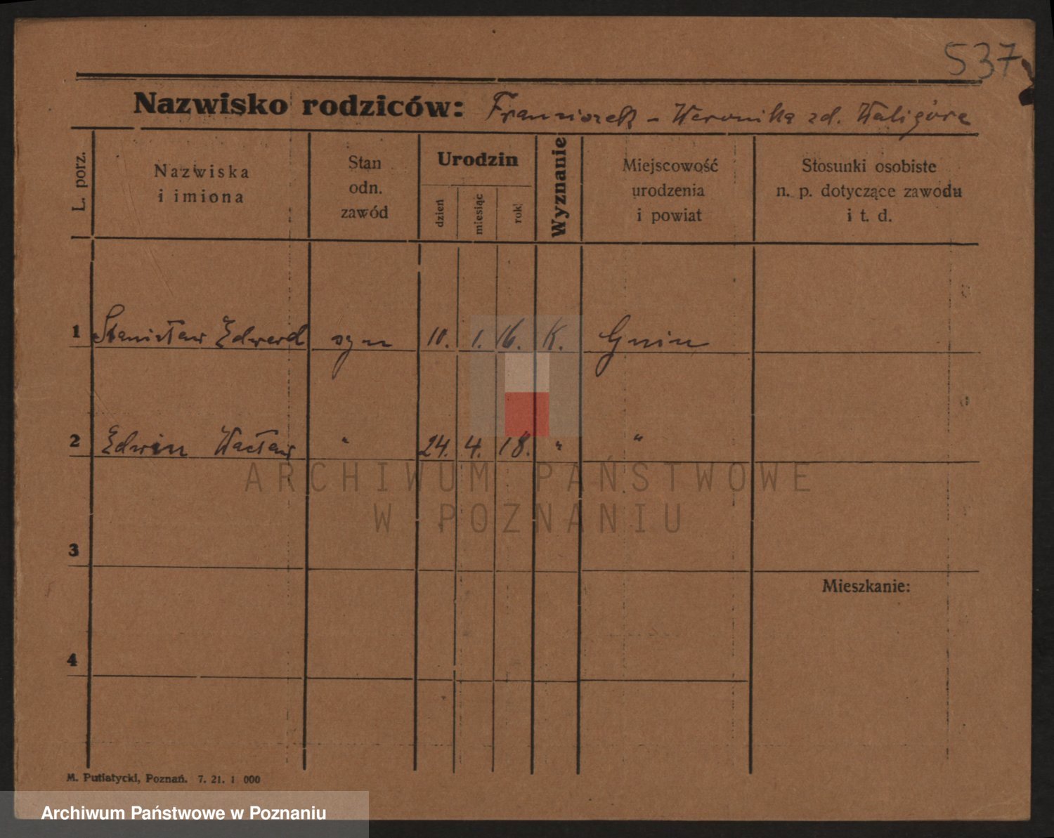 Podgląd karty osobowej dostępny jest po kliknięciu na nazwisko lub ikonkę karty. Można dokonywać powiększenia (ikony na górze) lub przechodzić między kolejnymi skanami (strzałki po bokach).