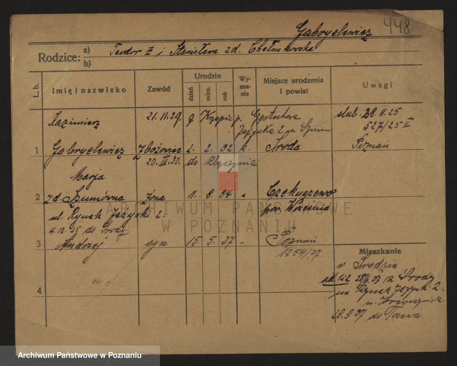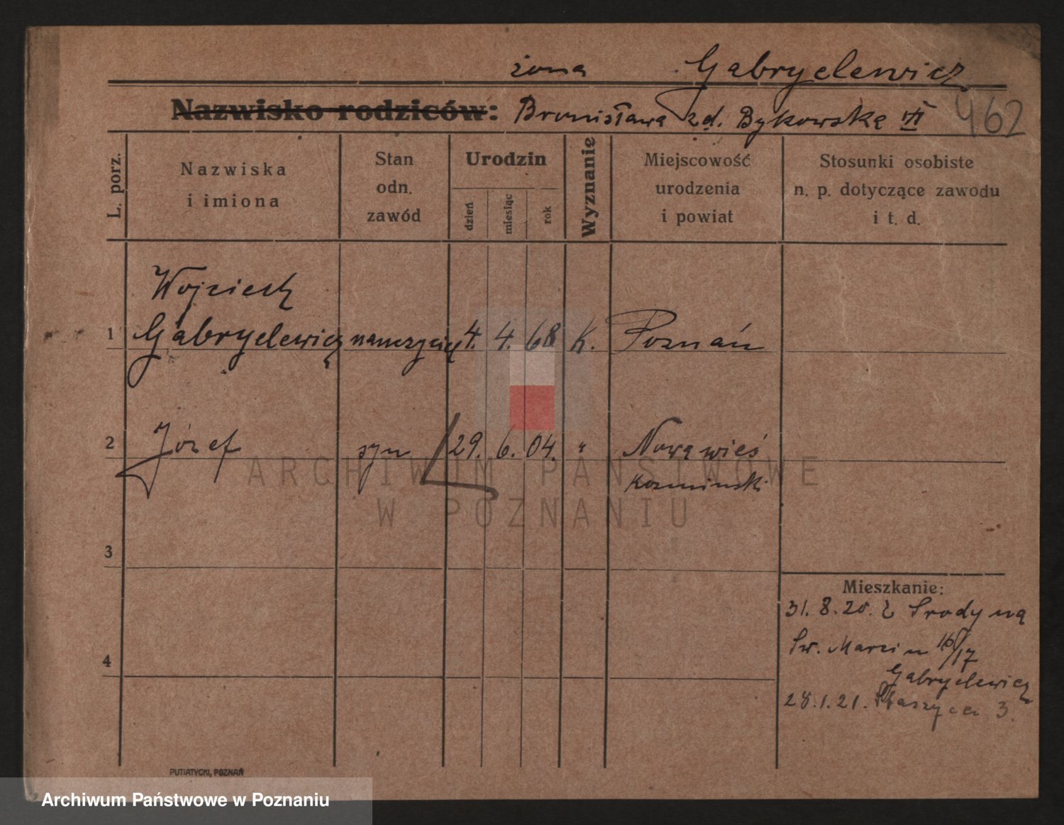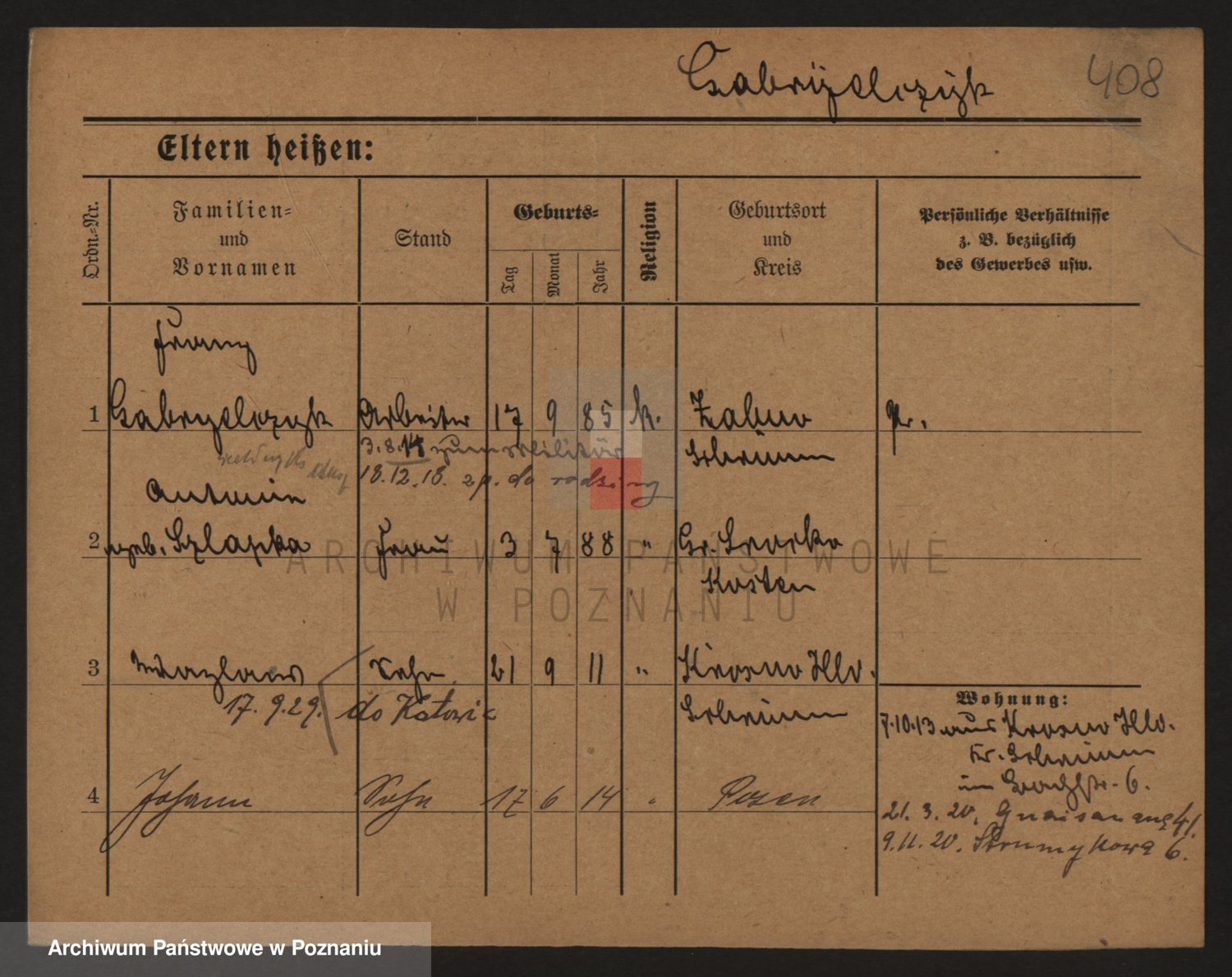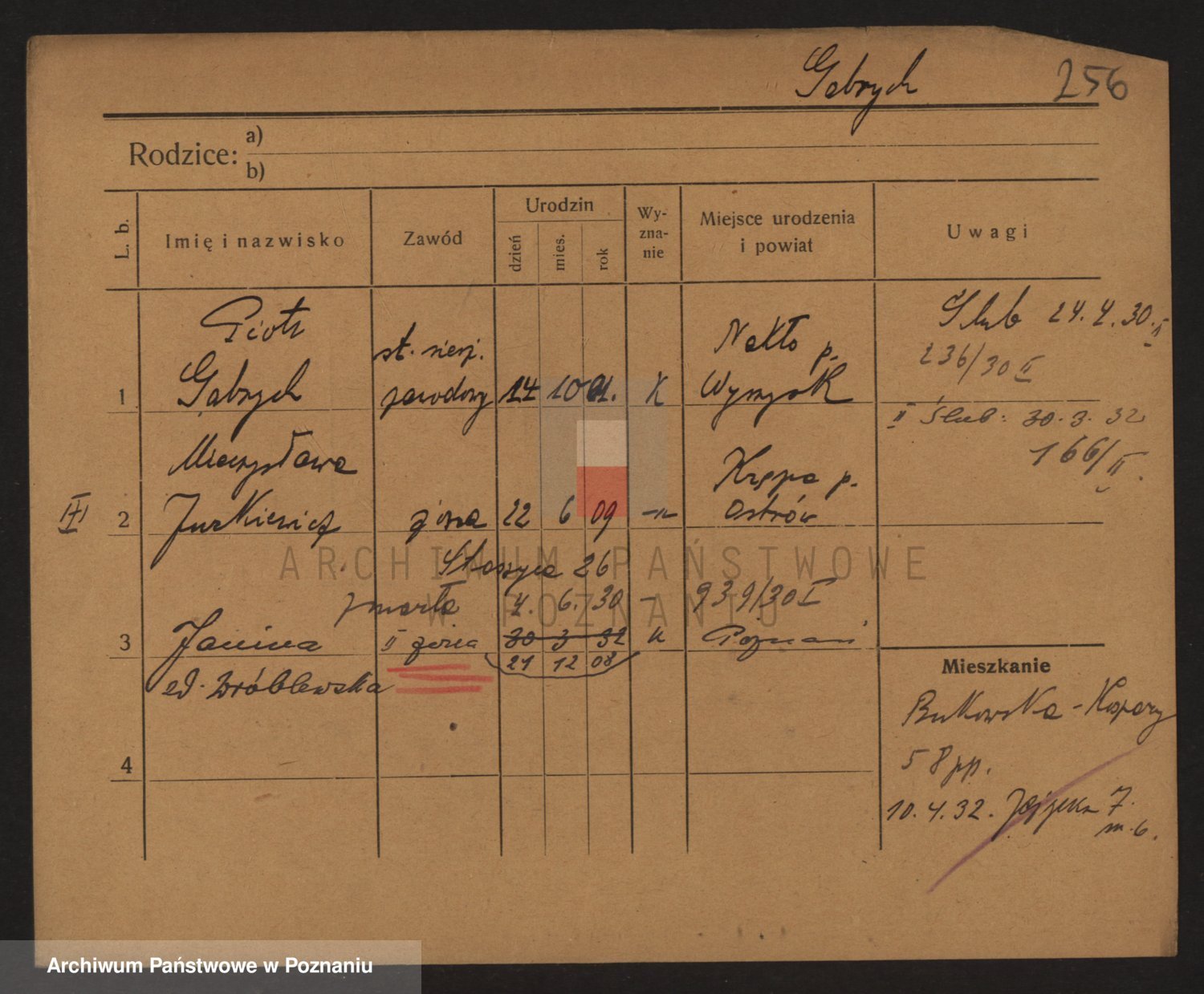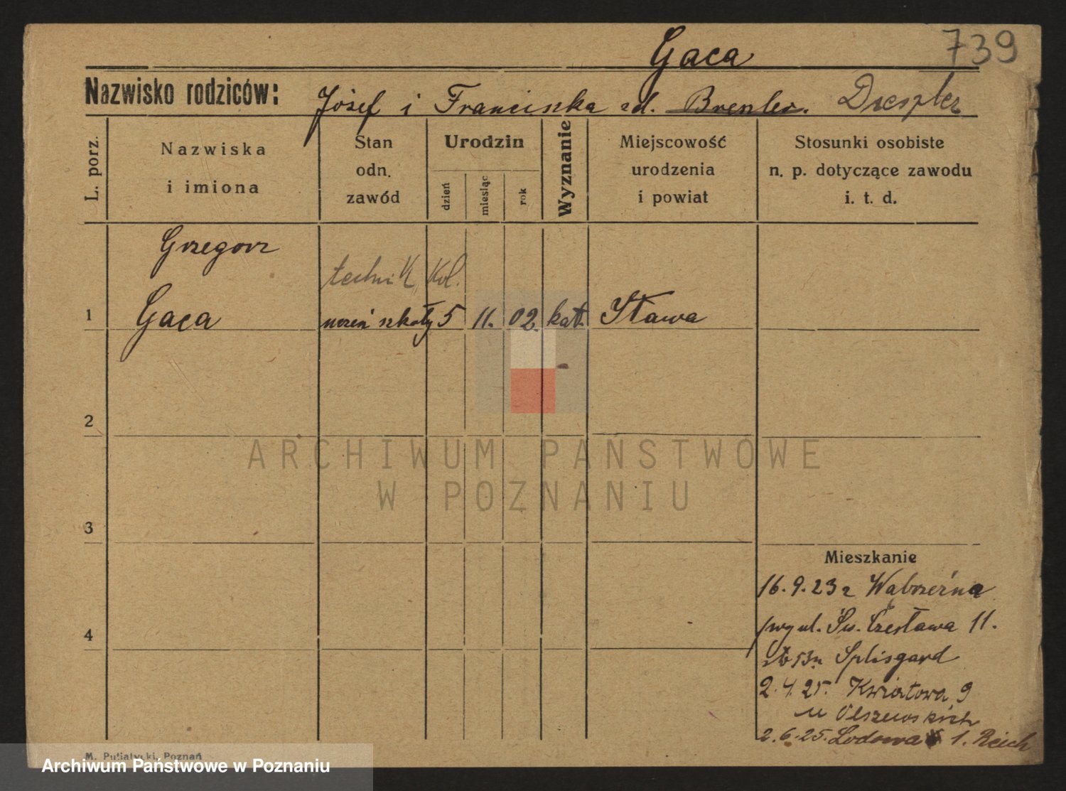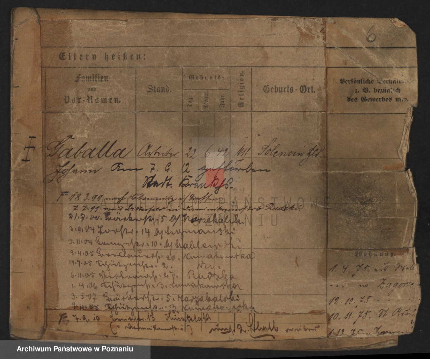 Podgląd karty osobowej dostępny jest po kliknięciu na nazwisko lub ikonkę karty. Można dokonywać powiększenia (ikony na górze) lub przechodzić między kolejnymi skanami (strzałki po bokach).