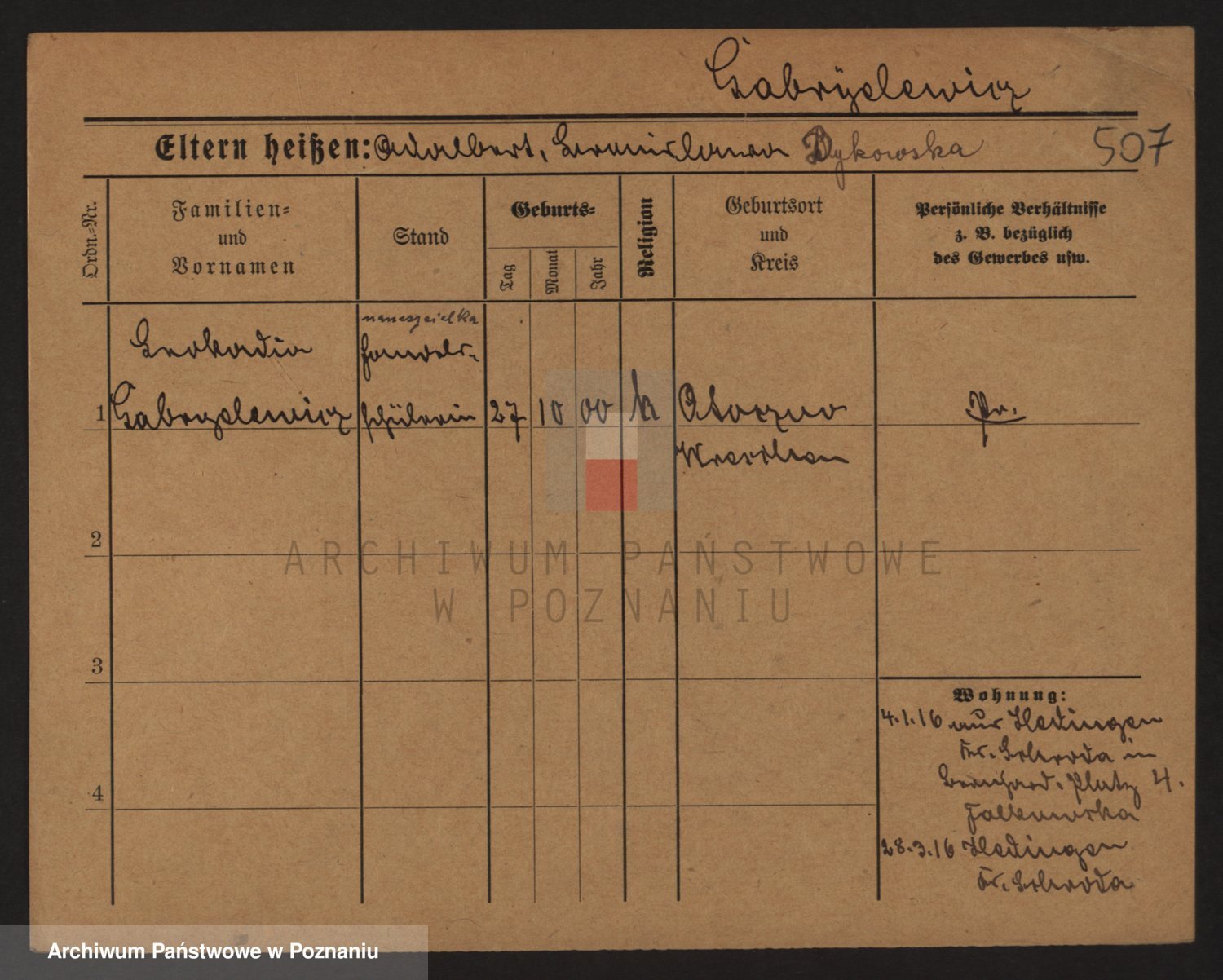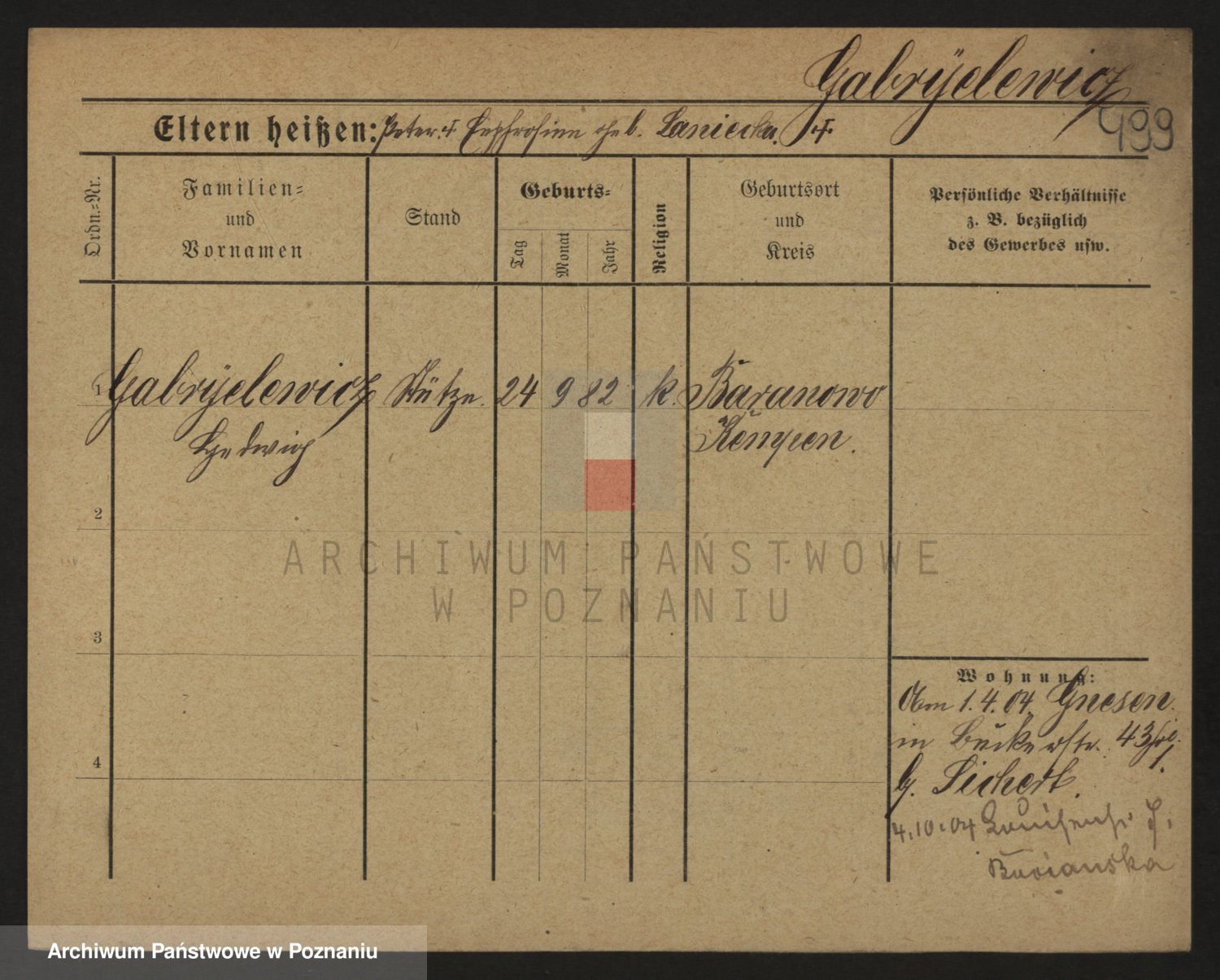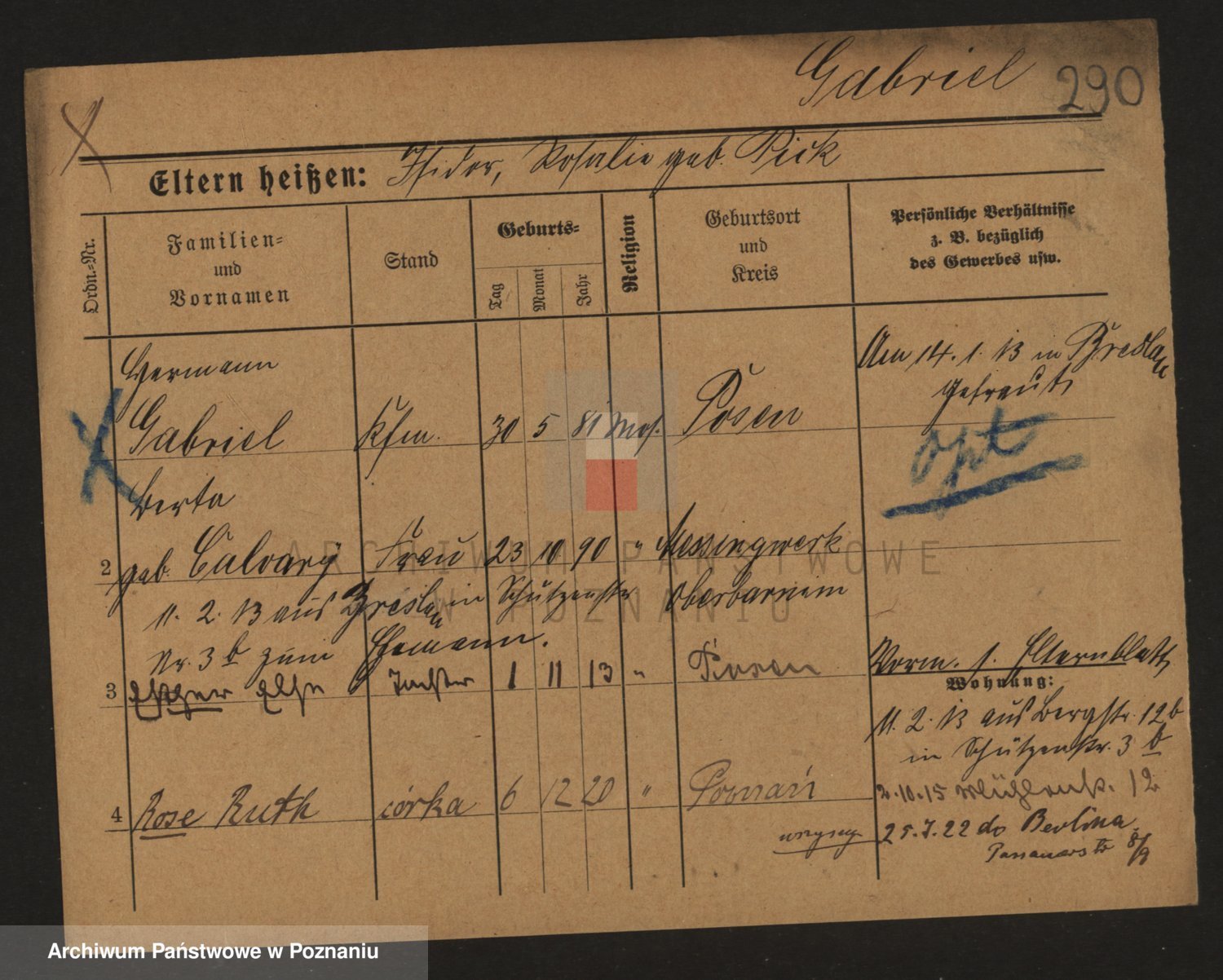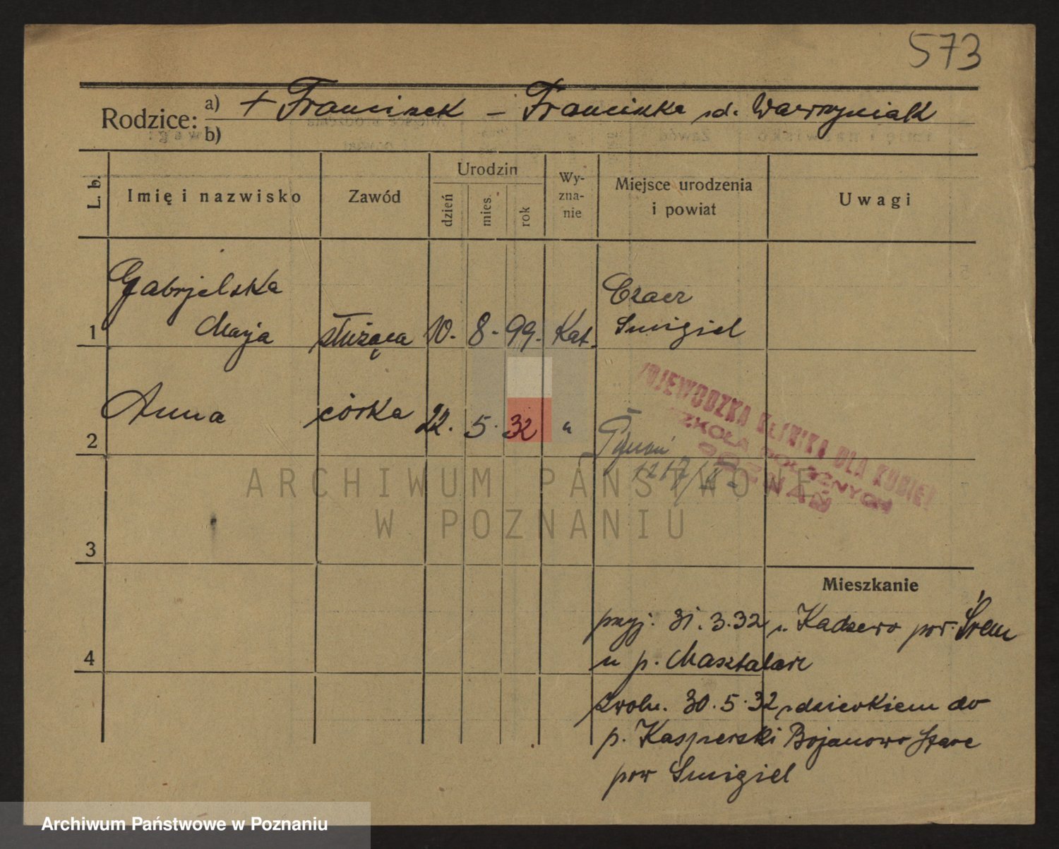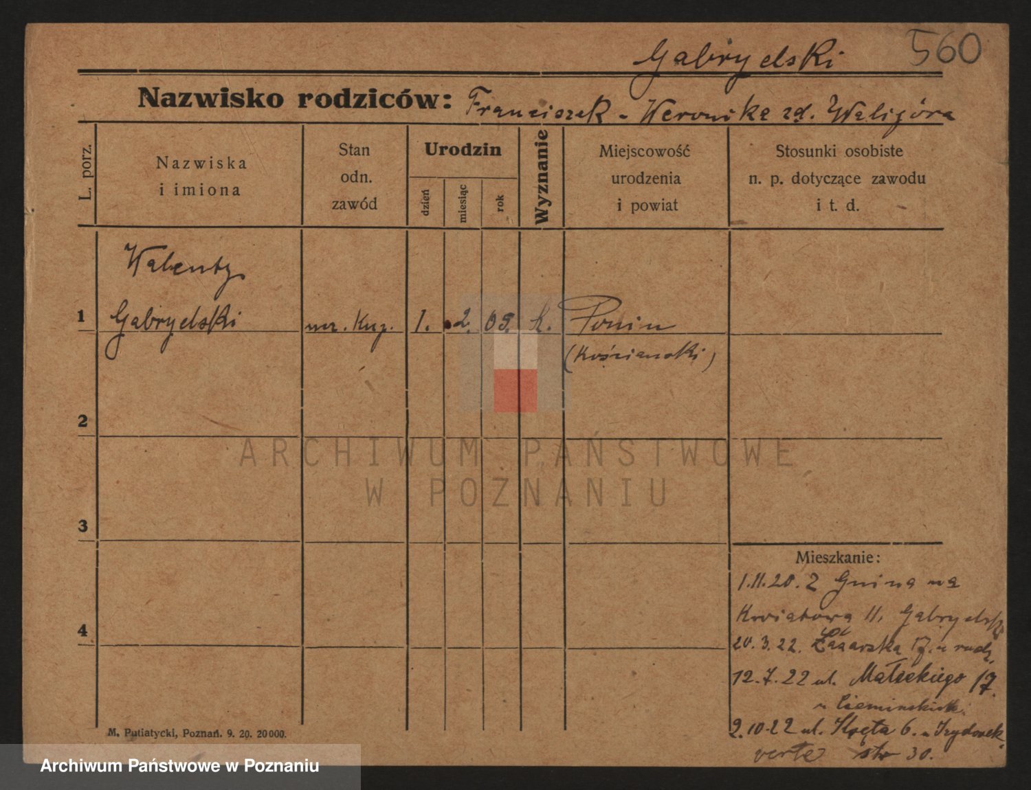 Podgląd karty osobowej dostępny jest po kliknięciu na nazwisko lub ikonkę karty. Można dokonywać powiększenia (ikony na górze) lub przechodzić między kolejnymi skanami (strzałki po bokach).