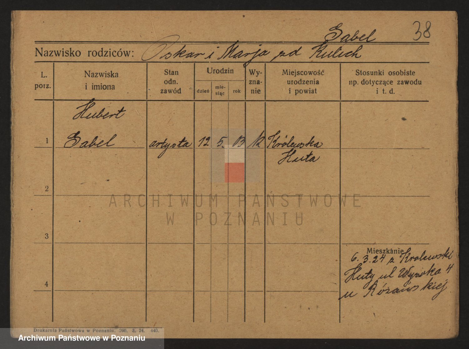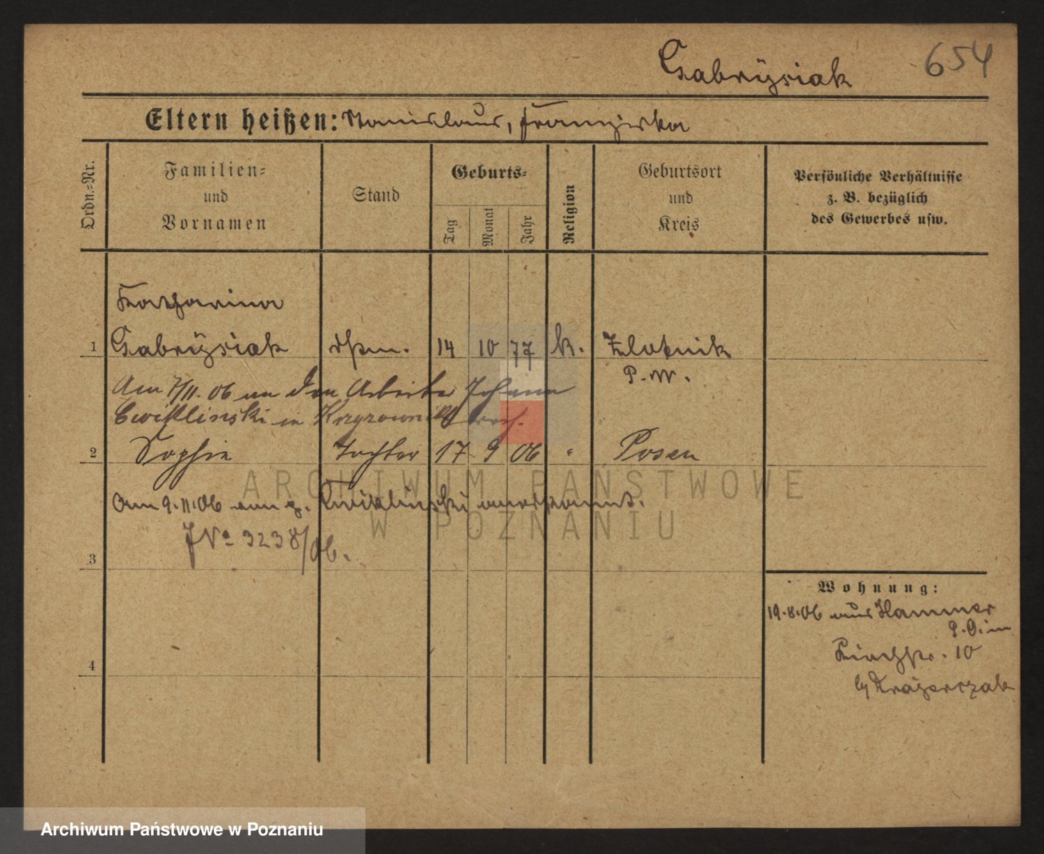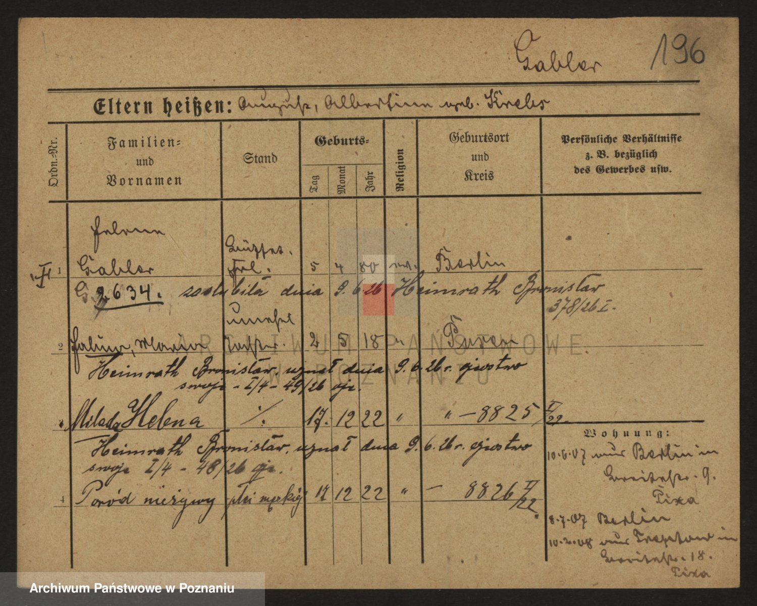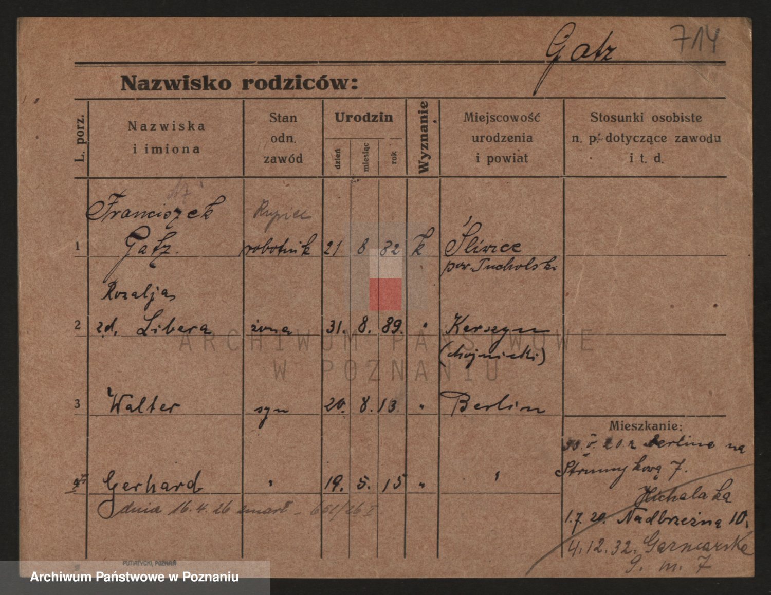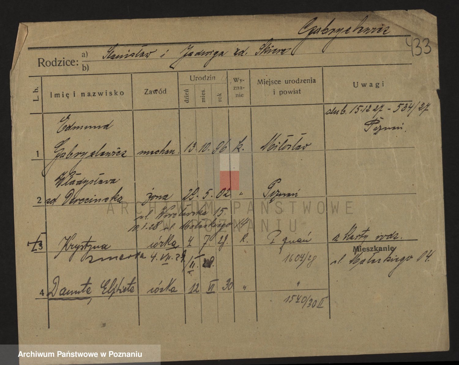 Podgląd karty osobowej dostępny jest po kliknięciu na nazwisko lub ikonkę karty. Można dokonywać powiększenia (ikony na górze) lub przechodzić między kolejnymi skanami (strzałki po bokach).
