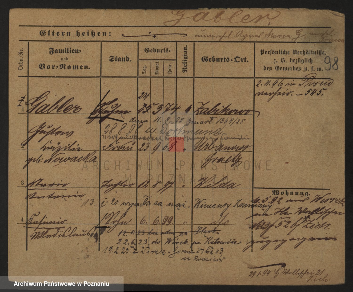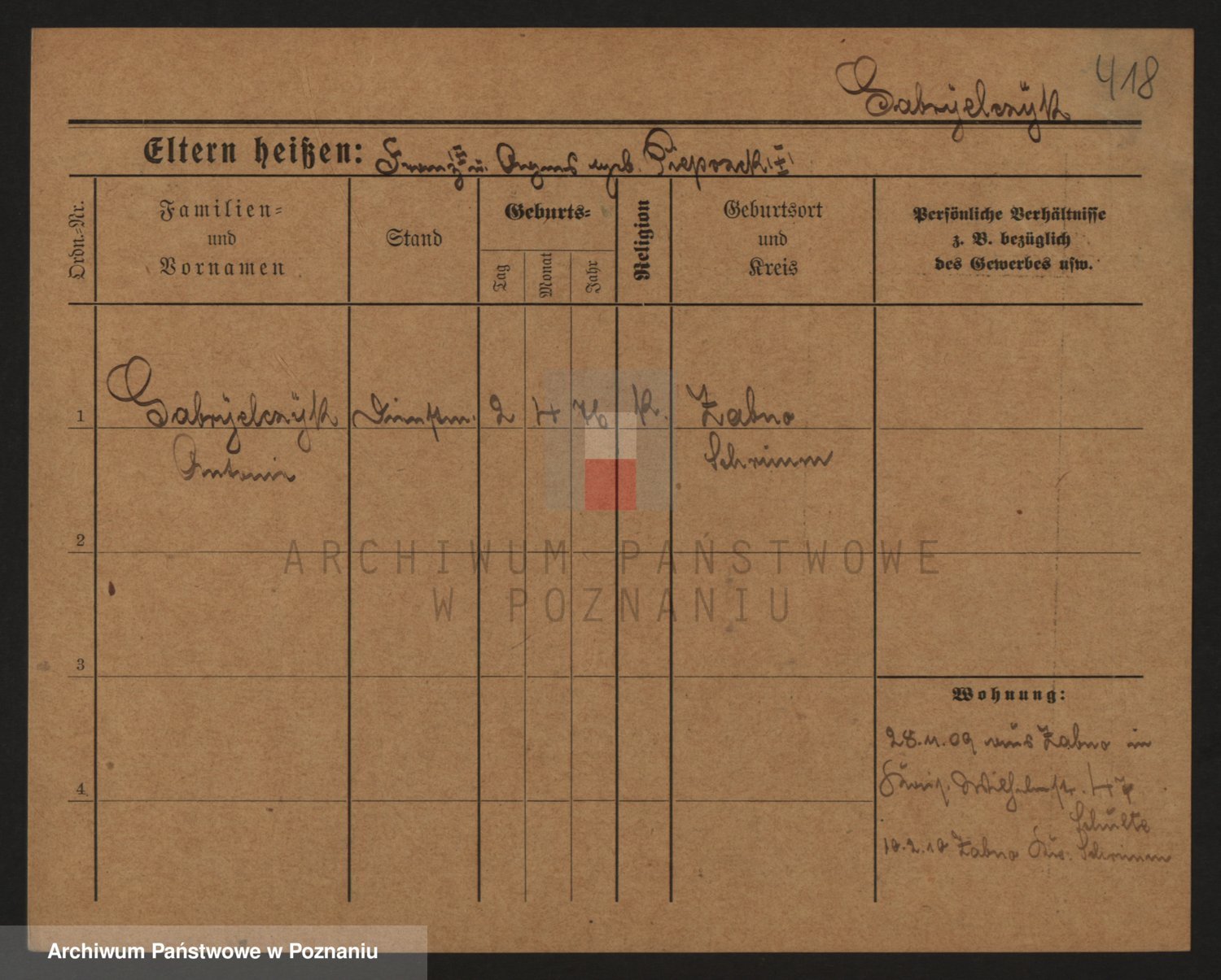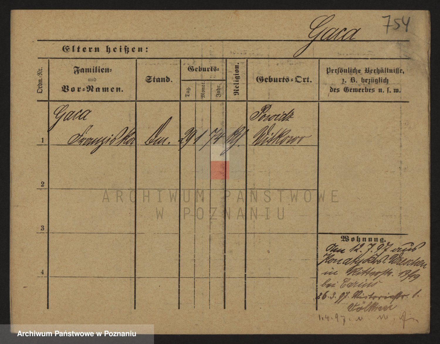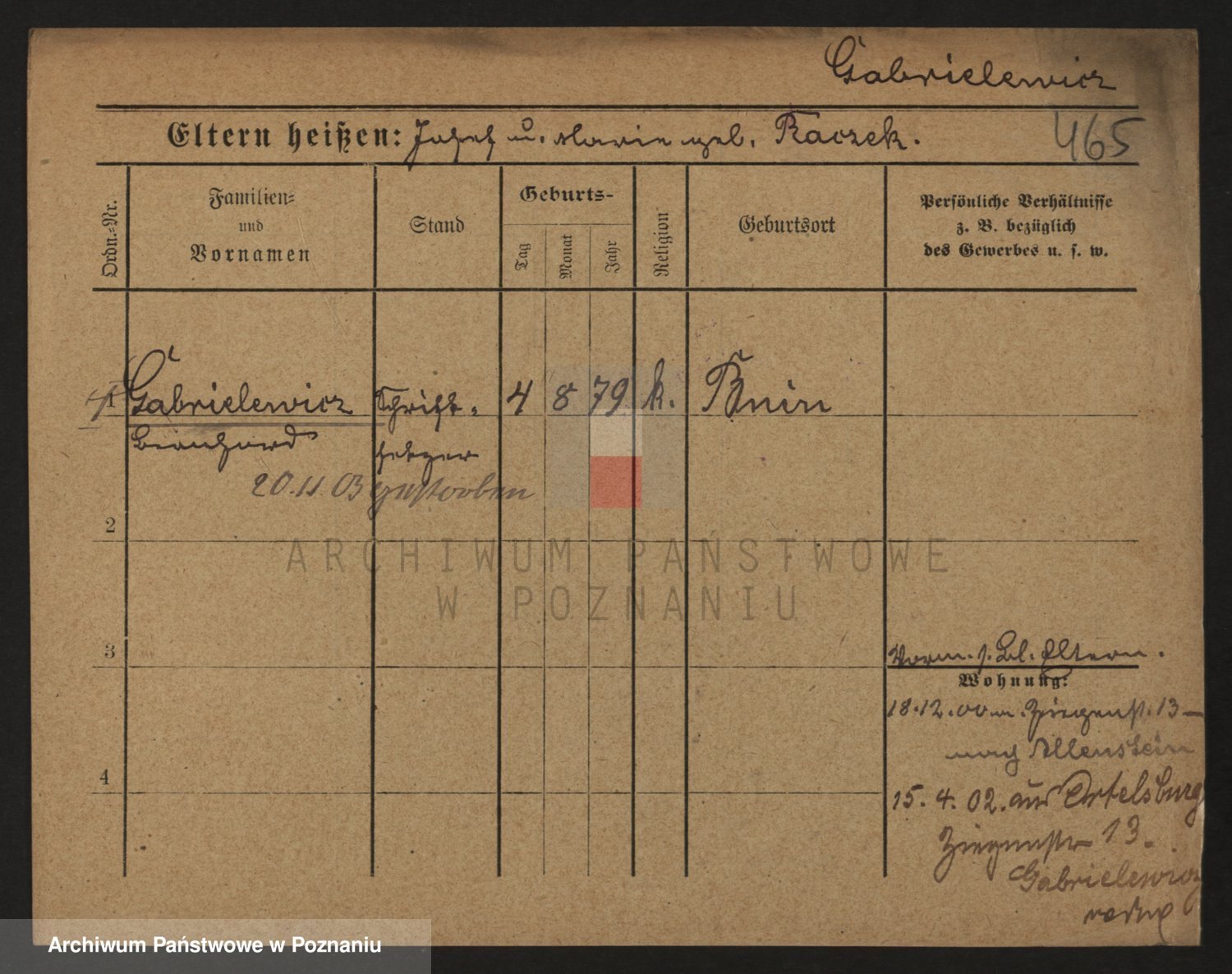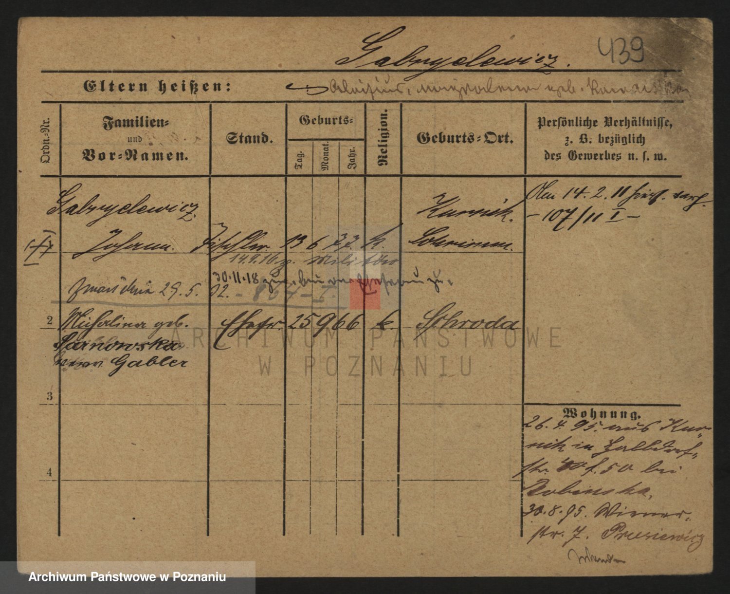 Podgląd karty osobowej dostępny jest po kliknięciu na nazwisko lub ikonkę karty. Można dokonywać powiększenia (ikony na górze) lub przechodzić między kolejnymi skanami (strzałki po bokach).