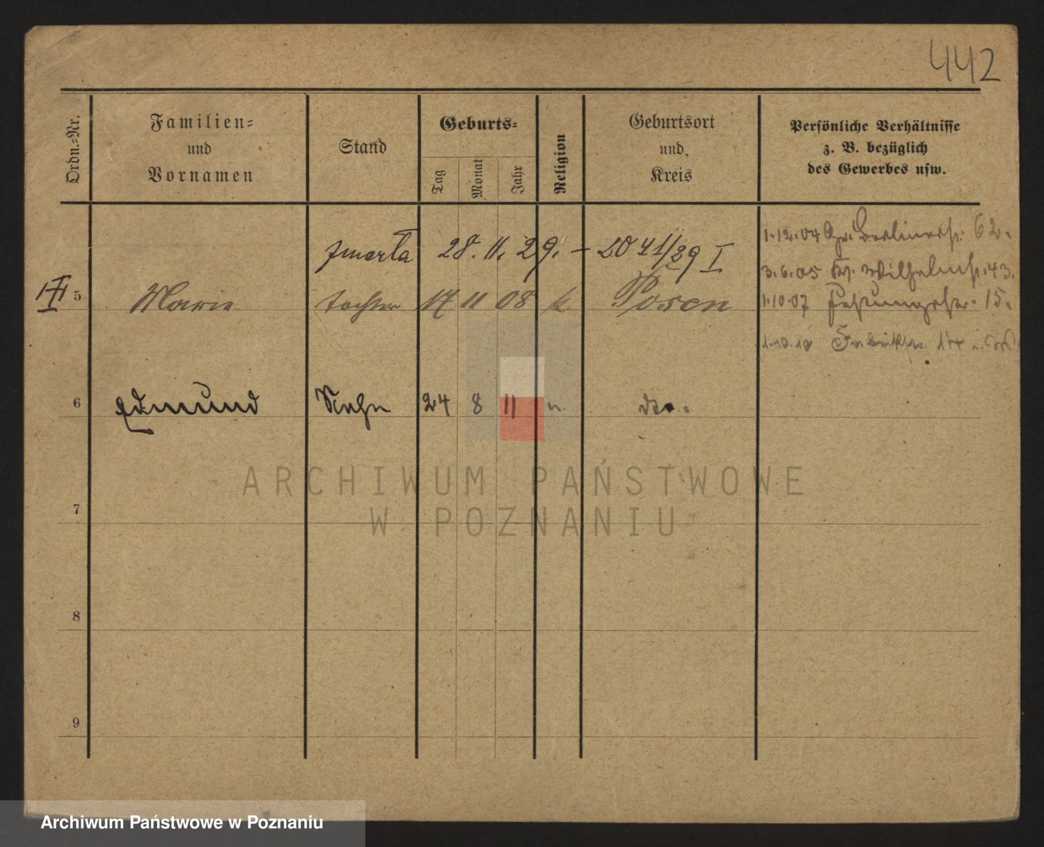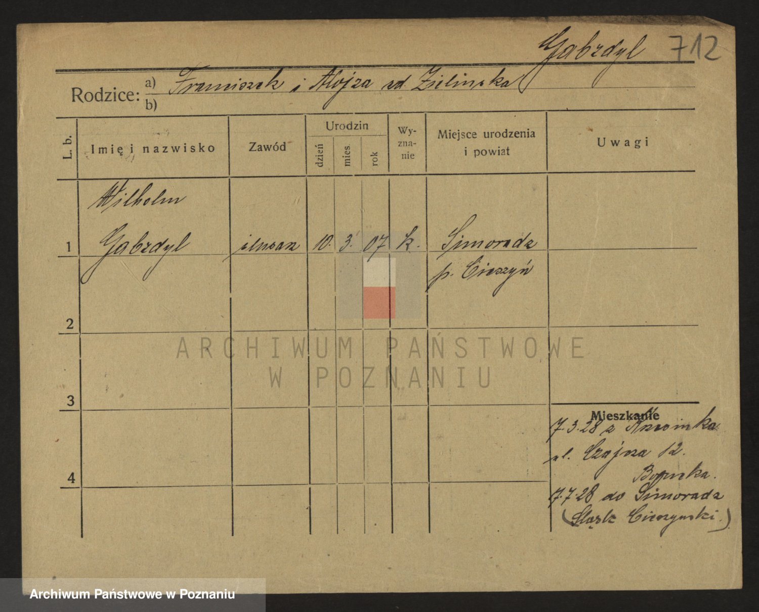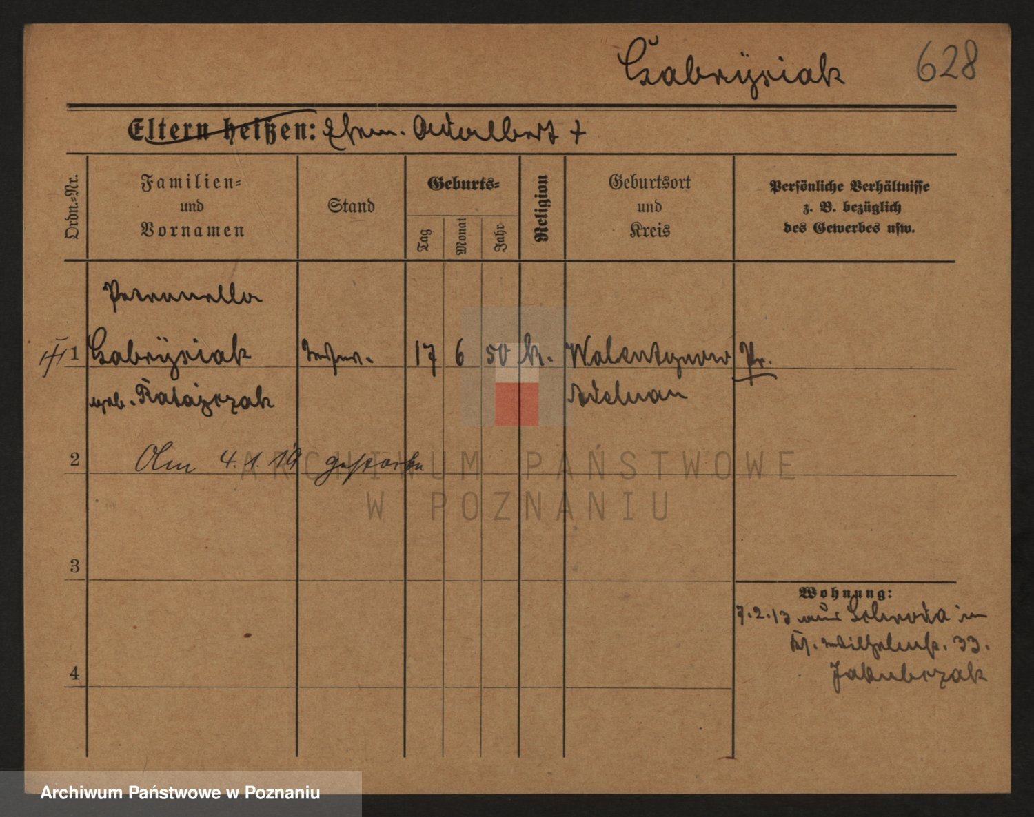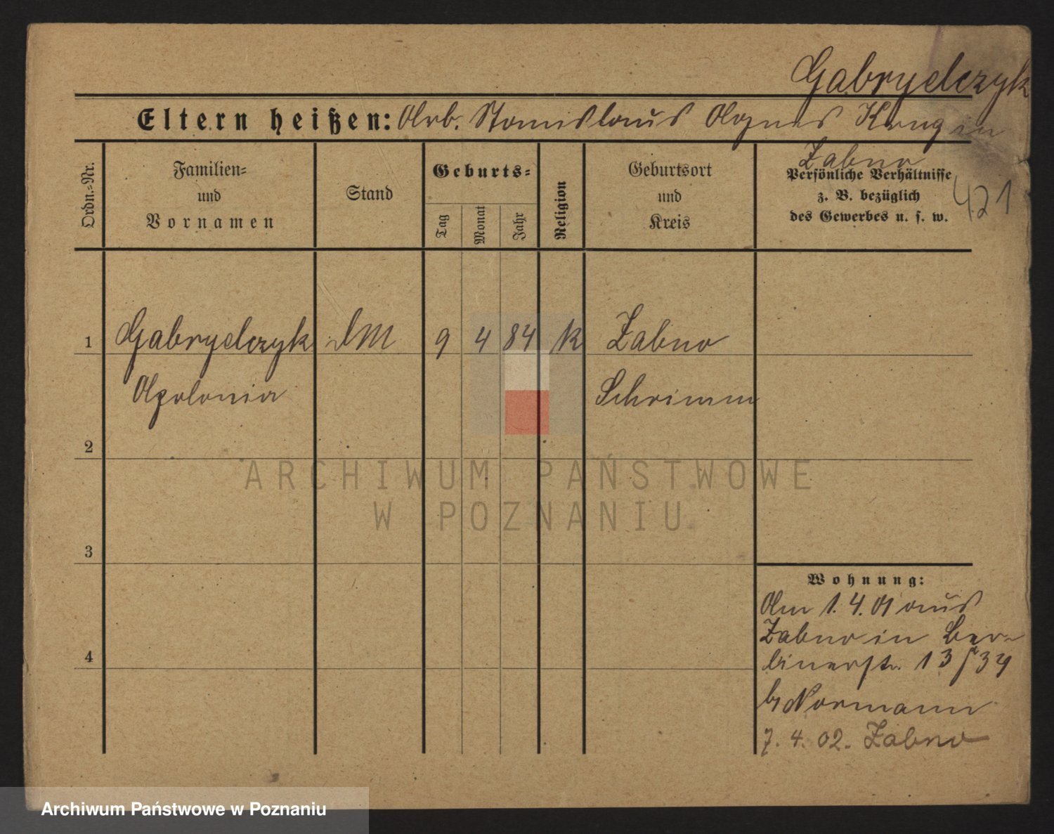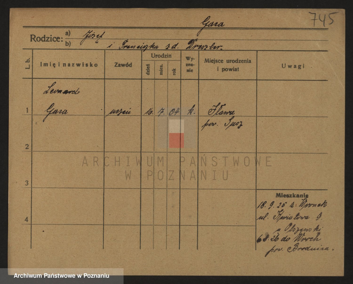 Podgląd karty osobowej dostępny jest po kliknięciu na nazwisko lub ikonkę karty. Można dokonywać powiększenia (ikony na górze) lub przechodzić między kolejnymi skanami (strzałki po bokach).
