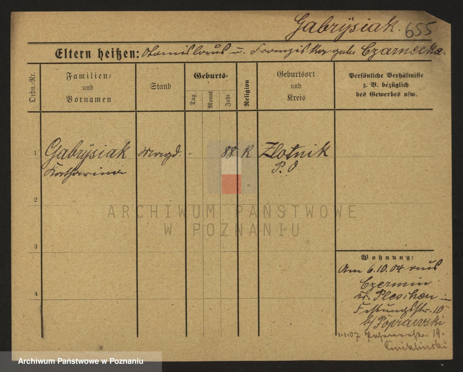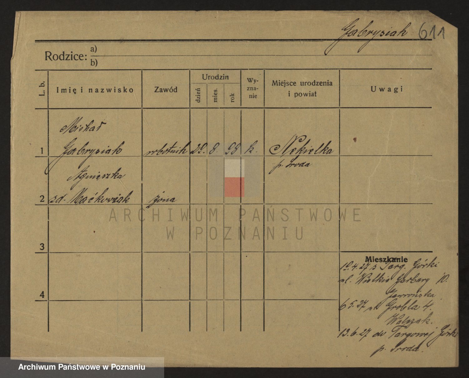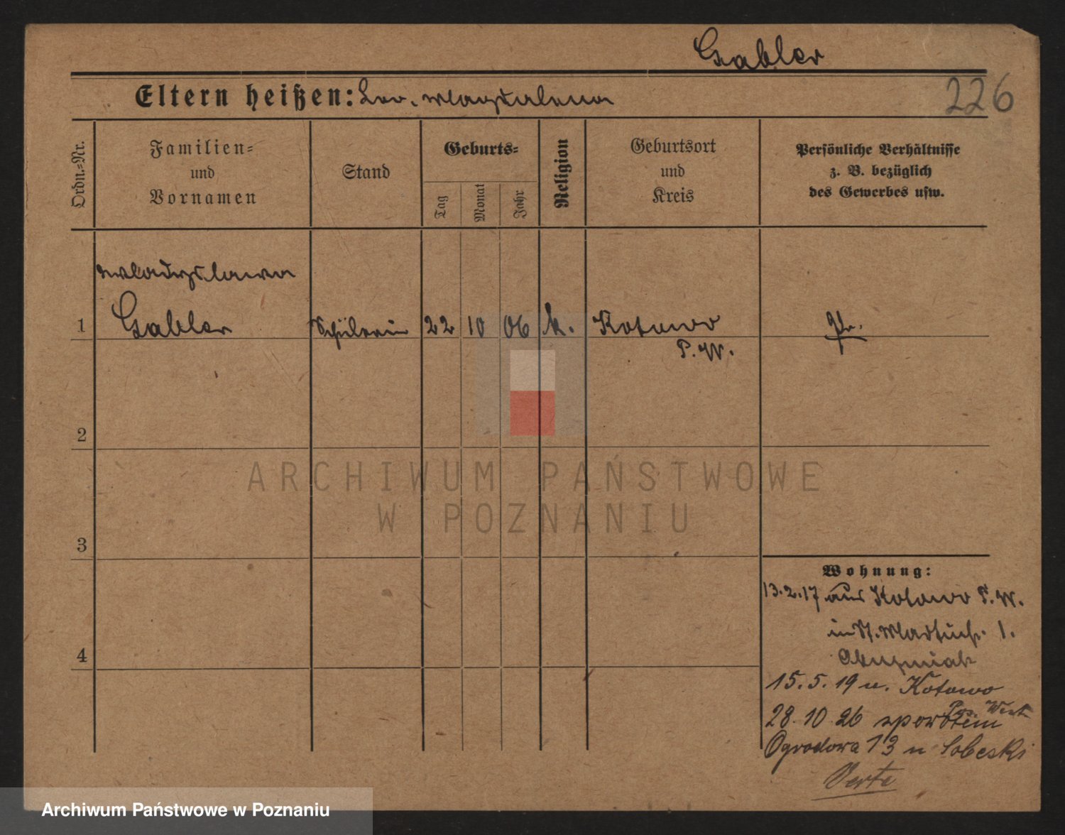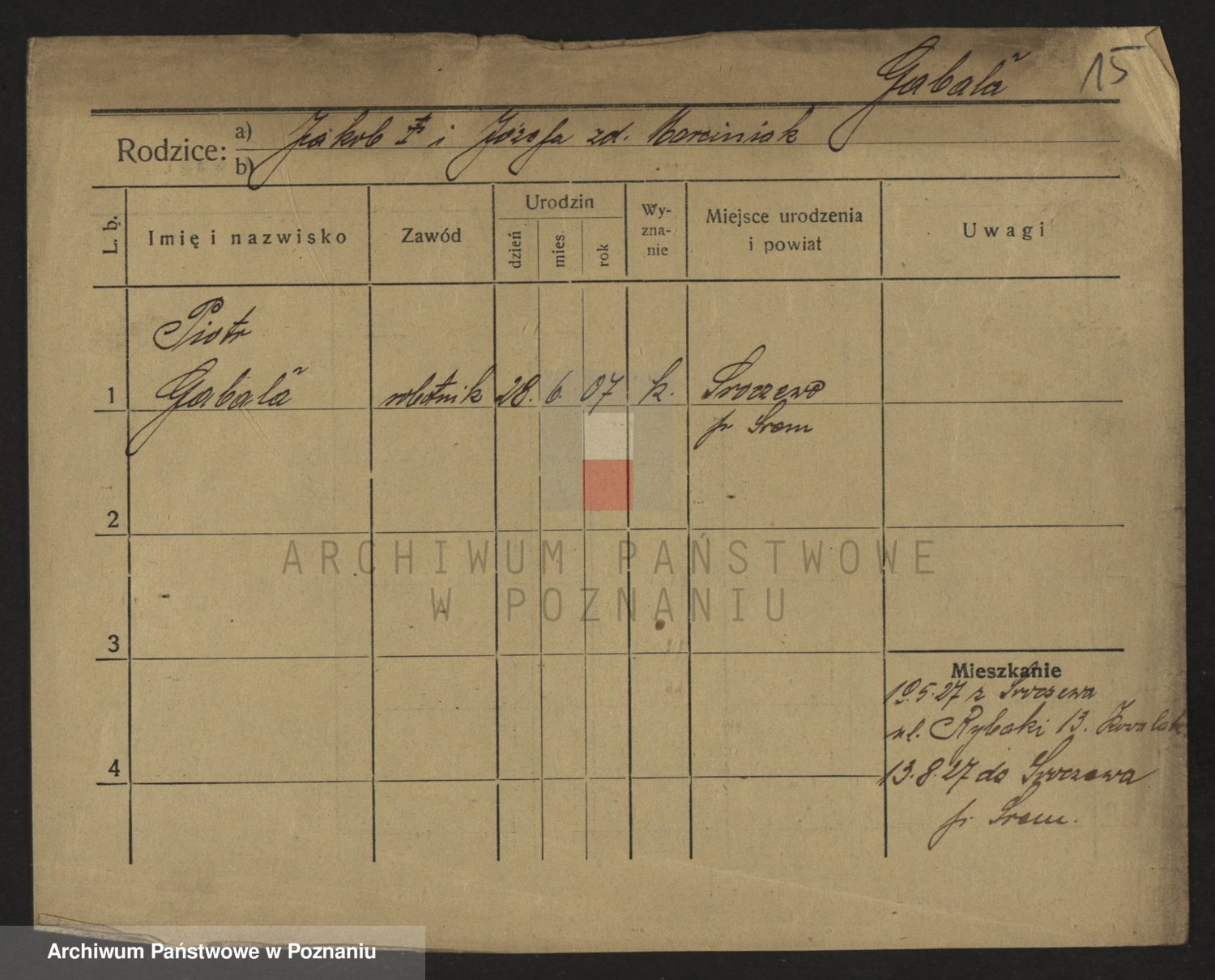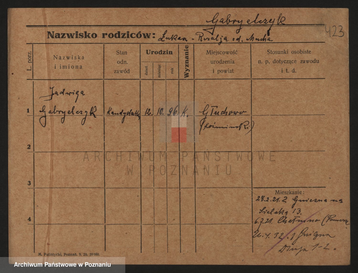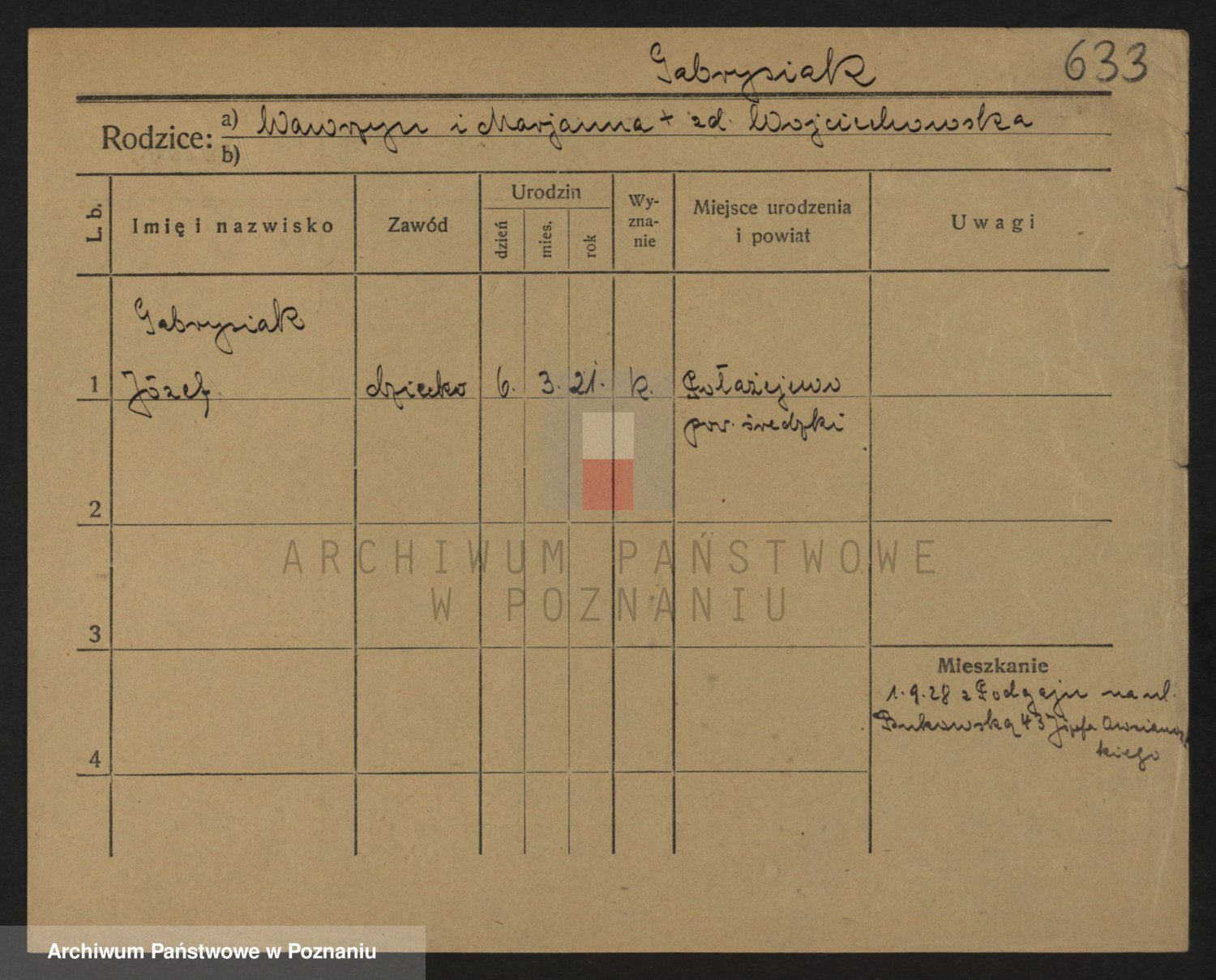 Podgląd karty osobowej dostępny jest po kliknięciu na nazwisko lub ikonkę karty. Można dokonywać powiększenia (ikony na górze) lub przechodzić między kolejnymi skanami (strzałki po bokach).