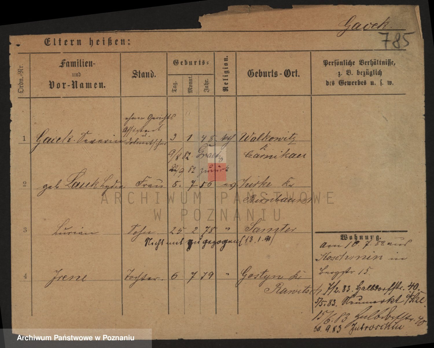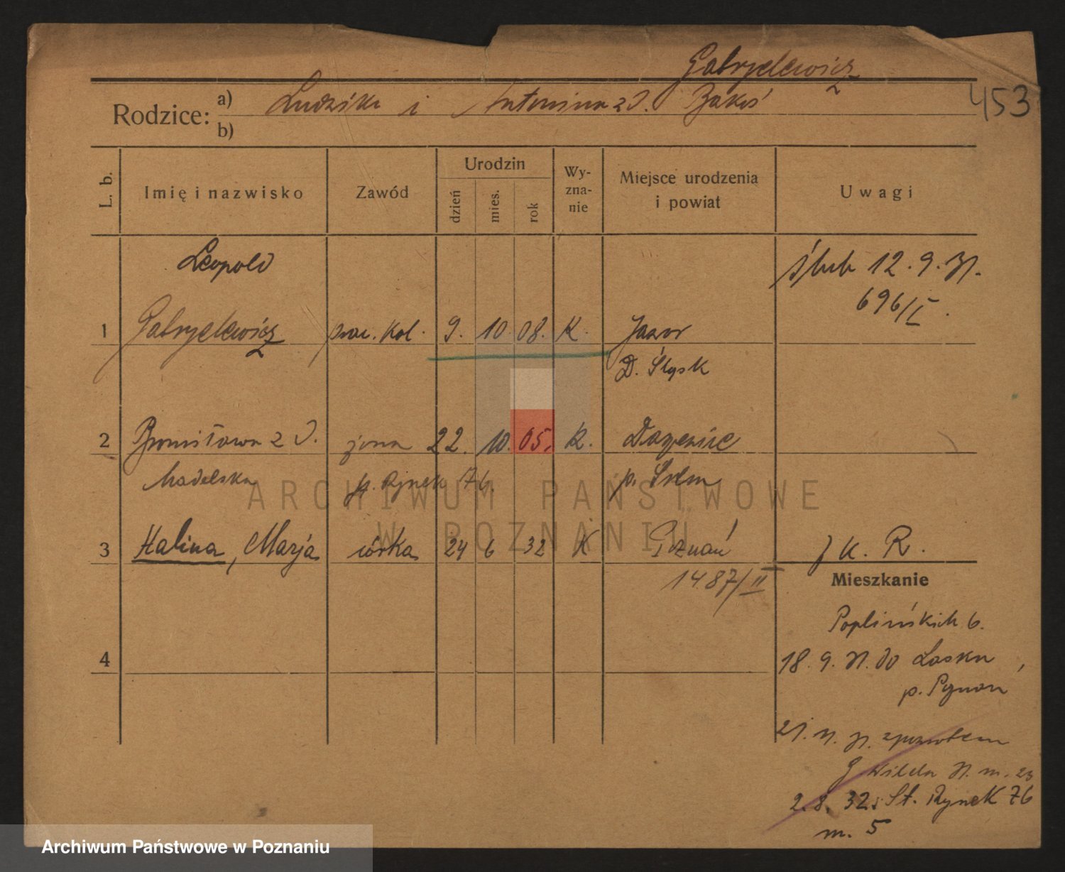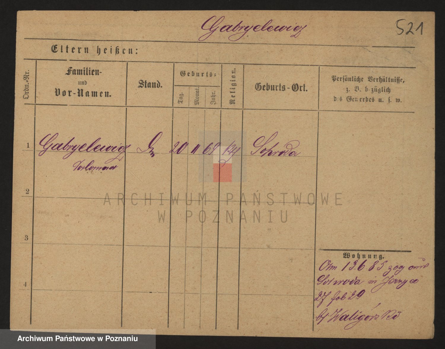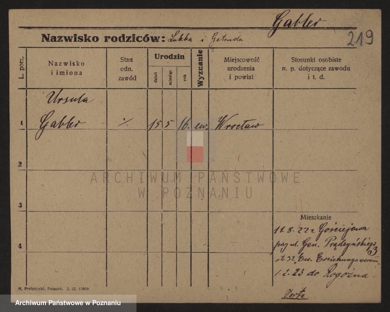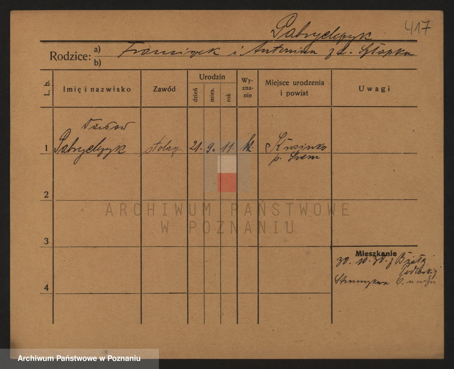 Podgląd karty osobowej dostępny jest po kliknięciu na nazwisko lub ikonkę karty. Można dokonywać powiększenia (ikony na górze) lub przechodzić między kolejnymi skanami (strzałki po bokach).