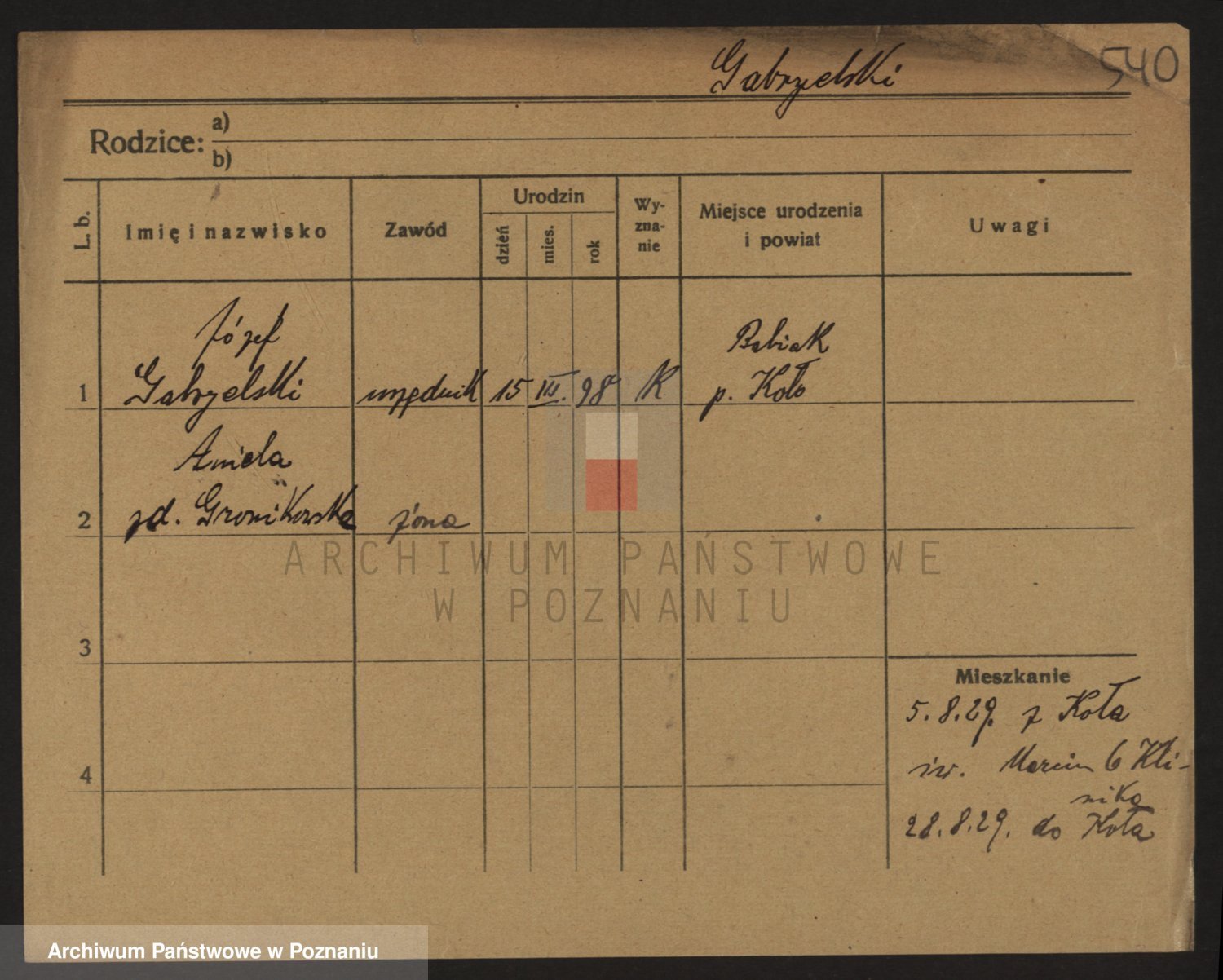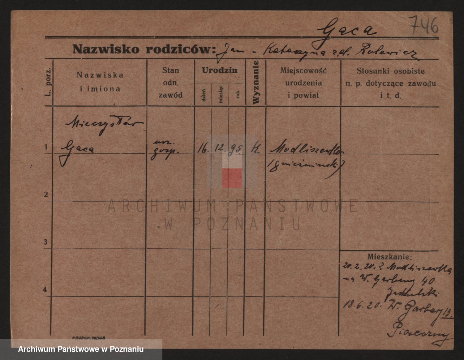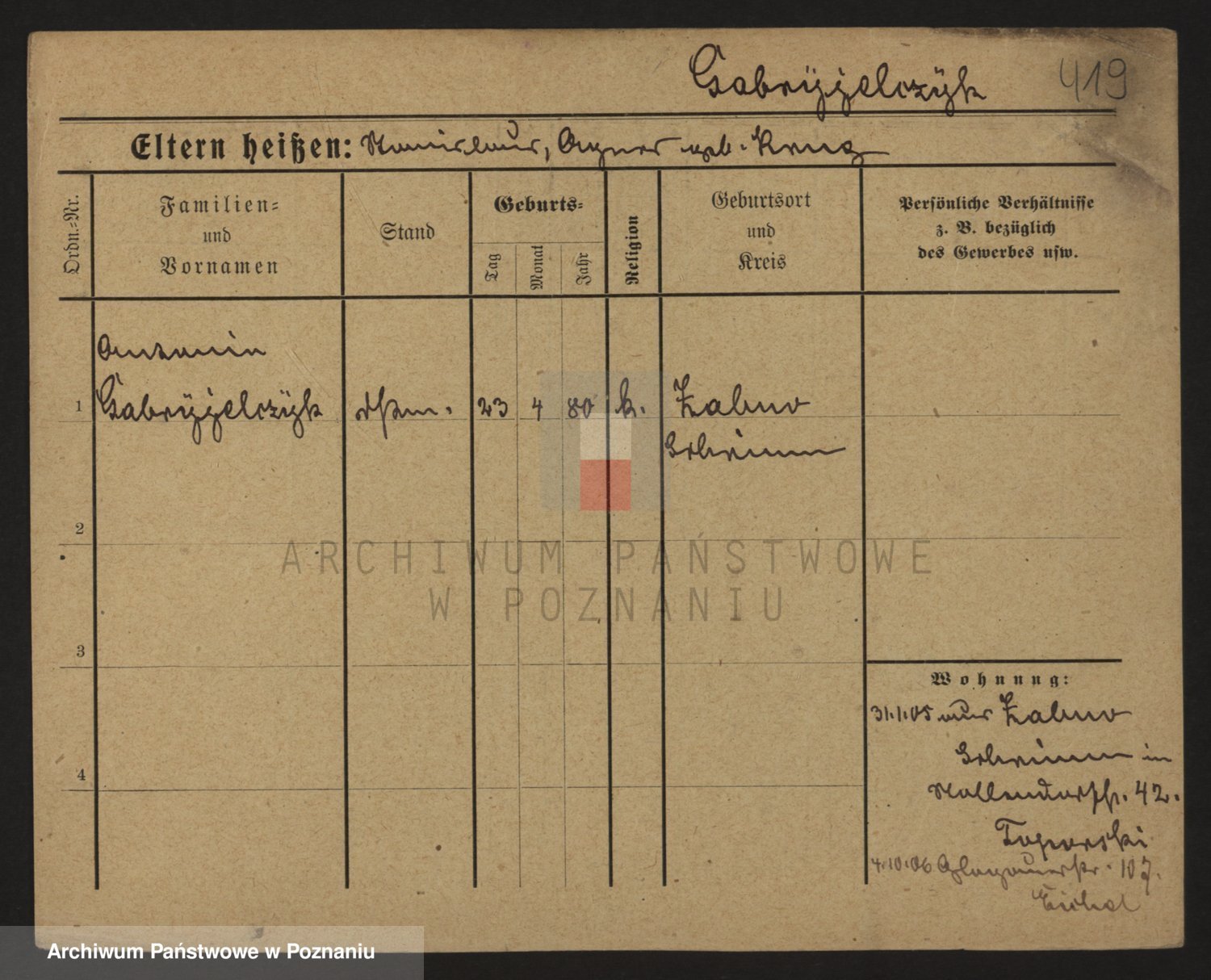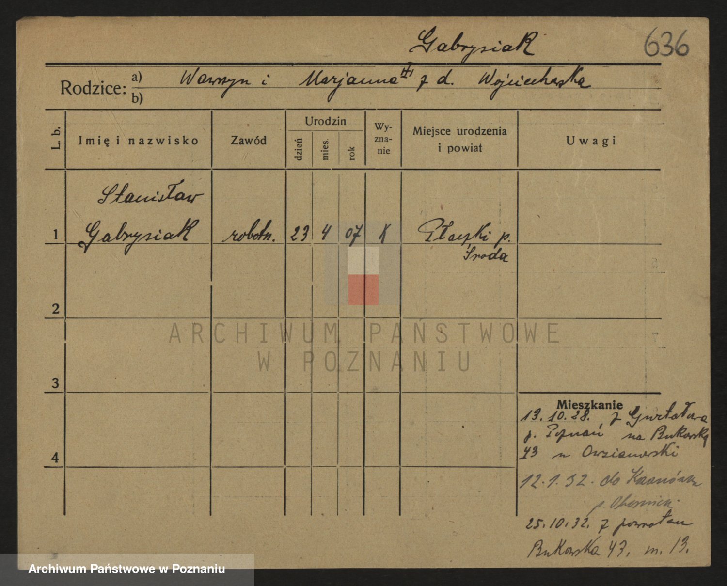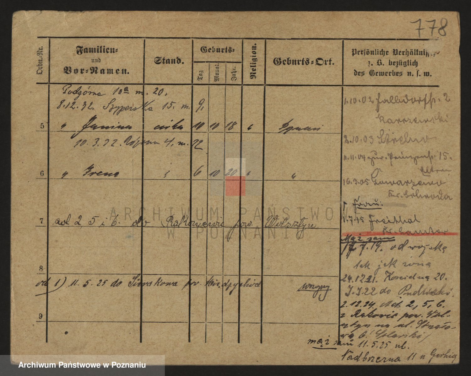 Podgląd karty osobowej dostępny jest po kliknięciu na nazwisko lub ikonkę karty. Można dokonywać powiększenia (ikony na górze) lub przechodzić między kolejnymi skanami (strzałki po bokach).